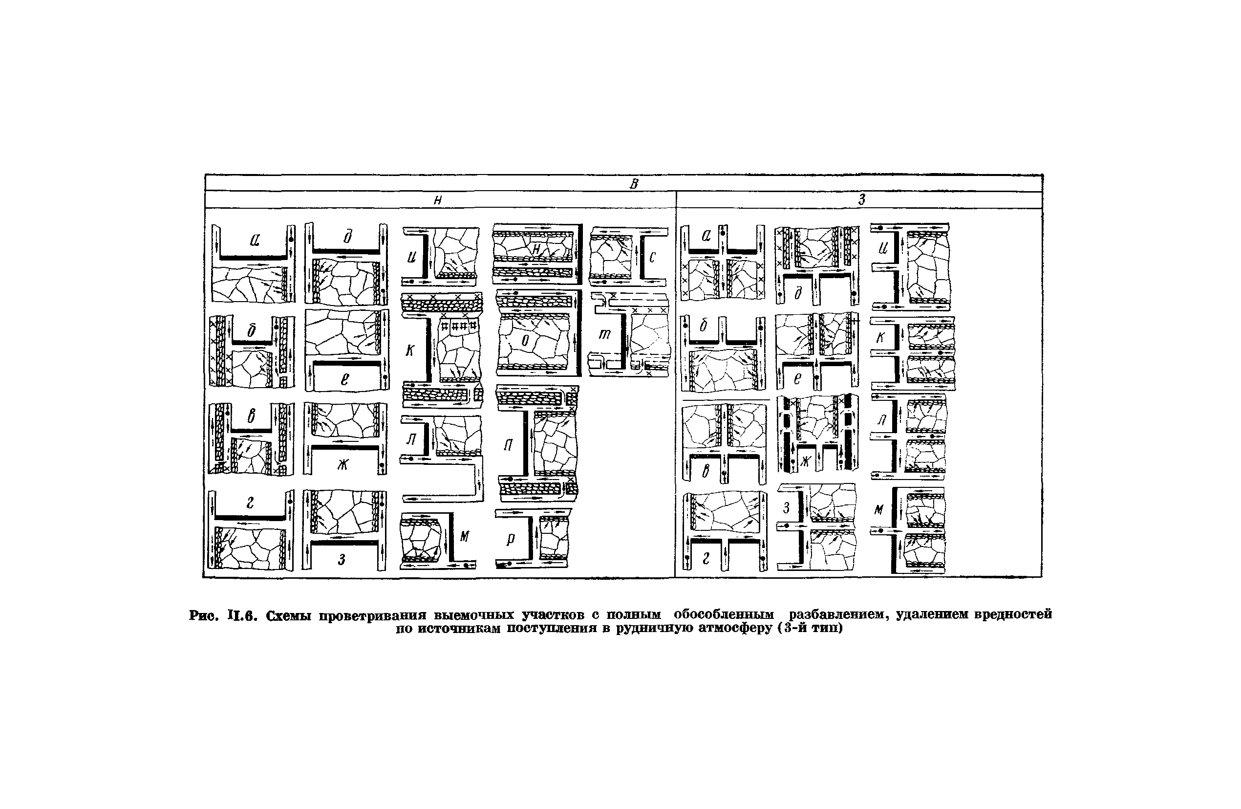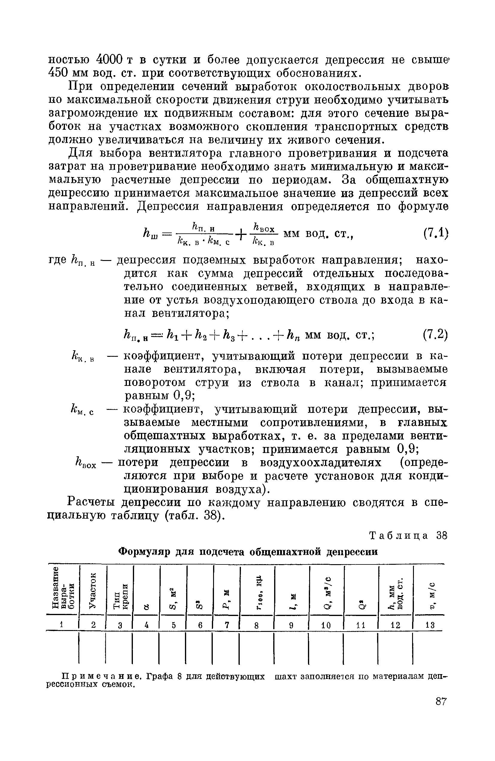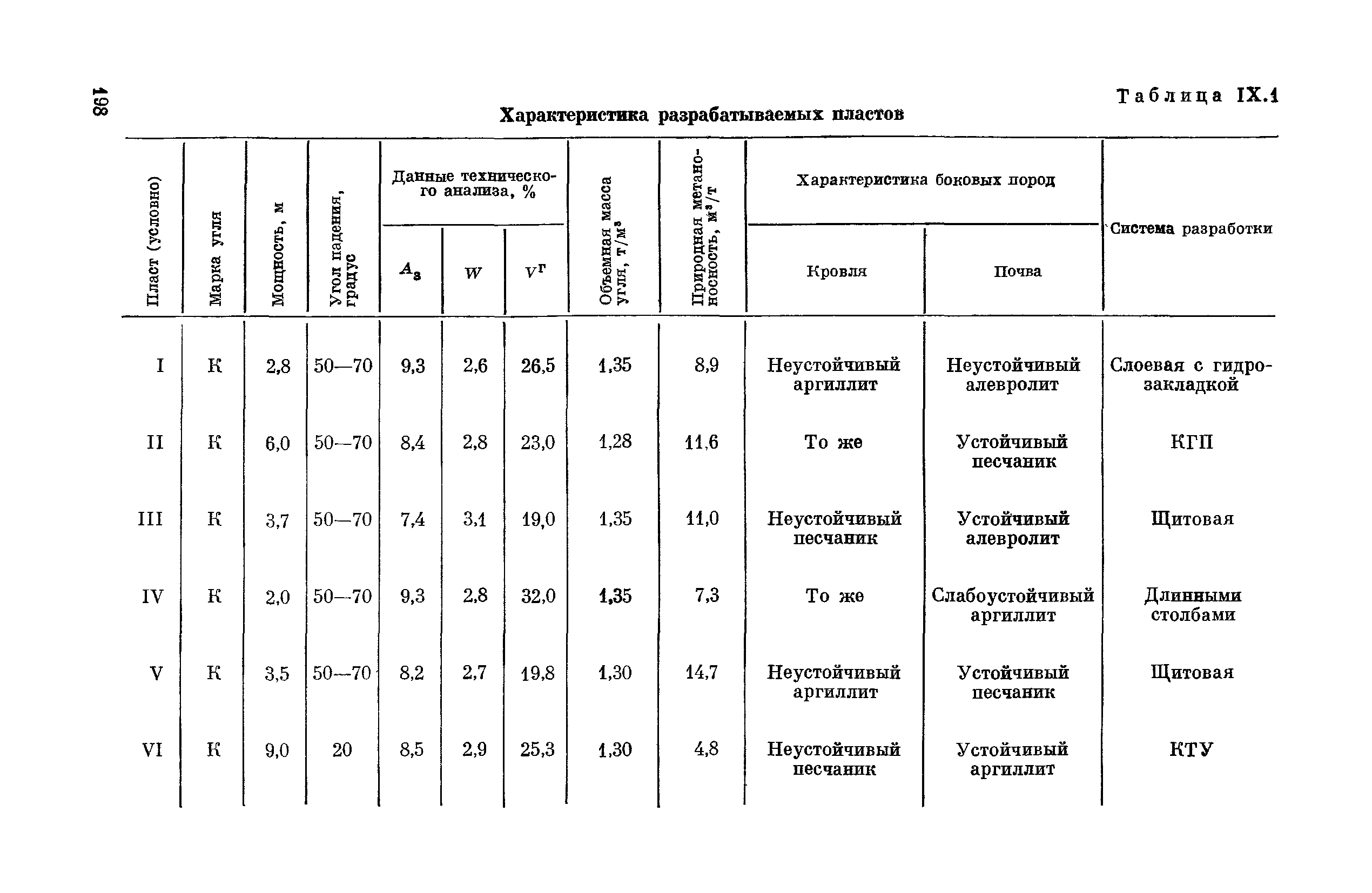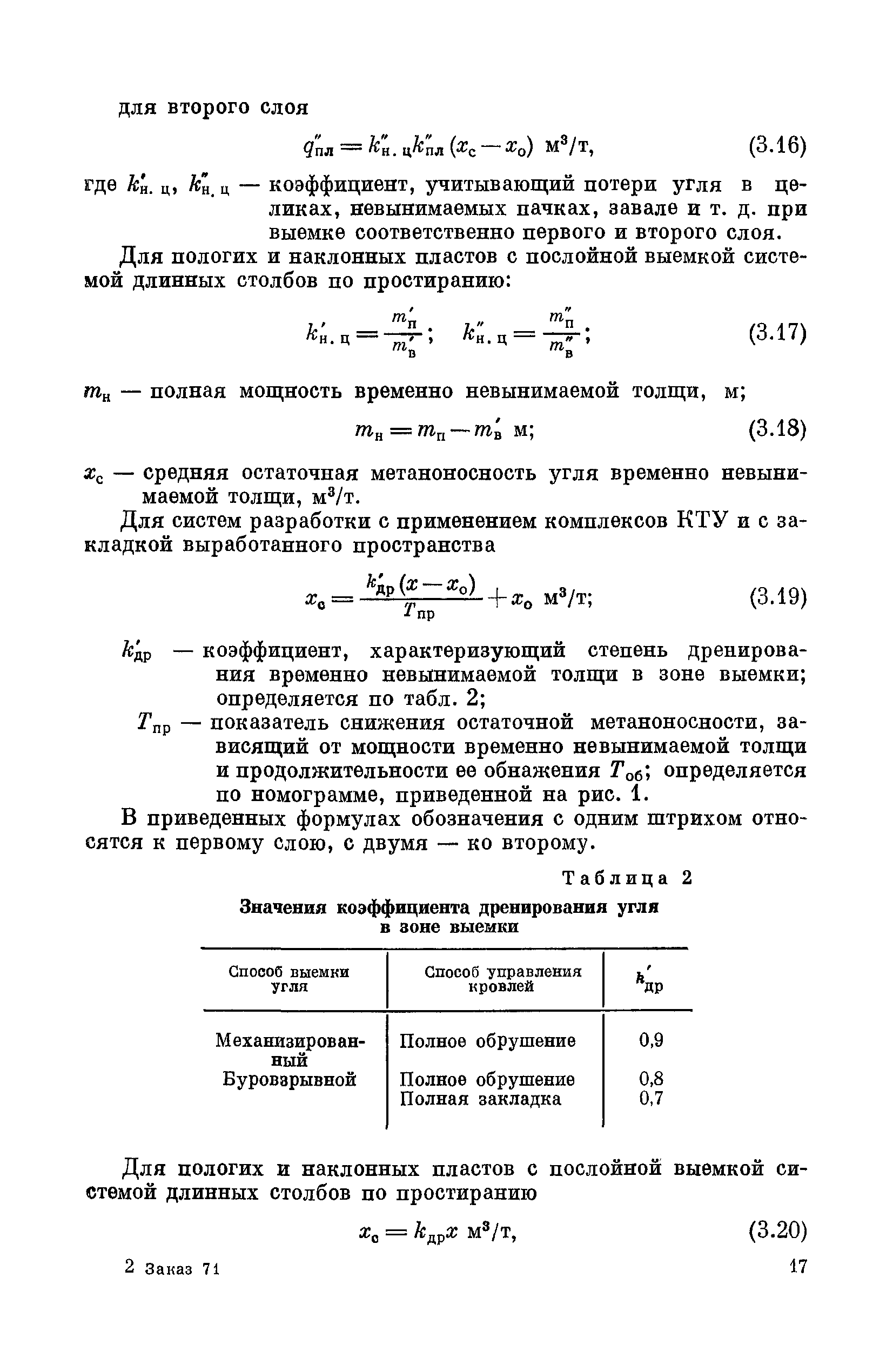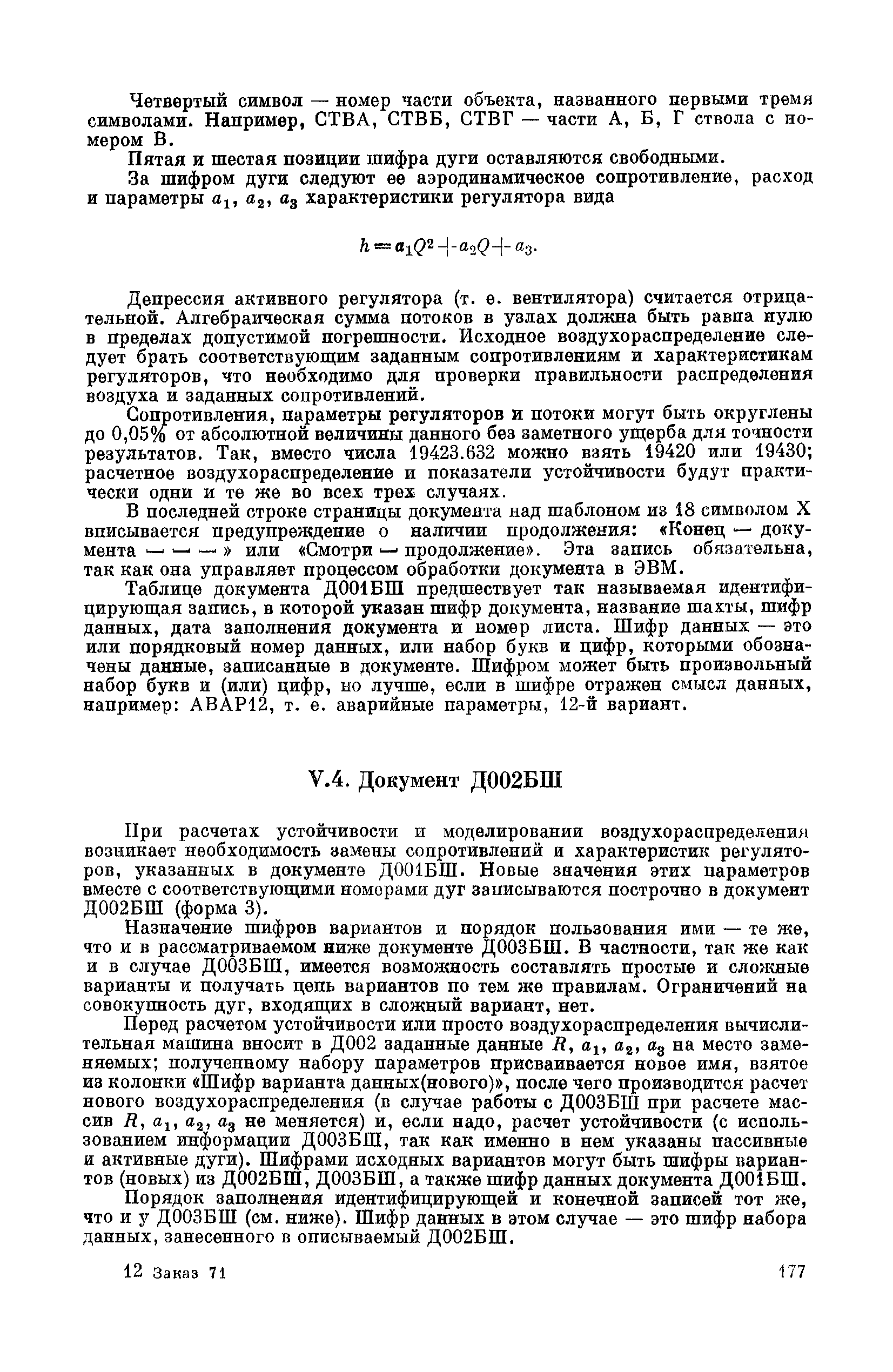 | Оглавление: | Предисловие Основные условные обозначения 1 Общие положения 1.1 Геологоразведочные организации 1.2 Угольные шахты 1.3 Проектные организации 1.4 Научно-исследовательские институты 2 Порядок проектирования вентиляции угольных шахт 3 Прогноз метанообильности выработок угольных шахт 3.1 Прогноз газообильности выработок по метаноносности угольных пластов 3.1.1 Метановыделение из пласта 3.1.2 Метановыделение из сближенных угольных пластов (спутников) 3.1.3 Метановыделение из вмещающих пород 3.1.4 Метанообильность подготовительных выработок 3.1.5 Метановыделение из старых выработанных пространств ранее отработанных этажей 3.2 Горностатистический метод прогноза 3.2.1 Принцип п область применения 3.2.2 Способ расчета и получения исходных данных 3.2.3 Способ обработки исходных данных 4 Схемы и способы проветривания шахт 4.1 Схемы проветривания выемочных участков 4.1.1 Основные требования к схемам проветривания 4.1.2 Область применения основных схем 4.2 Выбор схемы и способа проветривания шахты 5 Проектирование проветривания подготовительных выработок 5.1 Общие положения 5.2 Расход воздуха для проветривания одиночных подготовительных выработок 5.2.1 По газовыделению 5.2.2. По расходу ВВ 5.2.3 По наибольшему числу людей 5.2.4 По минимальной скорости движения воздуха 5.2.5 По тепловому фактору 5.2.6 Расчет производительности вентилятора 5.3 Расход воздуха для проветривания параллельных выработок 5.4 Расход воздуха для проветривания выработок, проводимых широким ходом 5.5 Выбор способа проветривания 5.6 Выбор и аэродинамический расчет трубопроводов 5.7 Выбор вентиляторов жесткого проветривания 5.8 Установка вентиляторов местного проветривания 6 Расчет расхода воздуха для проветривания угольных шахт 6.1 Общие положения 6.2 Упрощенный расчет расхода воздуха 6.2.1 Для Донецкого бассейна и шахт с аналогичными условиями 6.2.2 Для Кузнецкого бассейна и шахт с аналогичными условиями 6.3 Допустимая нагрузка на очистную выработку по газовому фактору 6.3.1 Для забоев типа лав 6.3.2 Для систем разработки с очистными забоями типа камер 6.4 Полный расчет расхода воздуха 6.4.1 Расход воздуха для проветривания забоев 6.4.2 Расход воздуха для проветривания выемочного участка 6.4.3 Расход воздуха для проветривания камер 6.4.4 Утечки воздуха через вентиляционные сооружения 6.4.5 Расход воздуха для проветривания вентиляционного участка и шахты 6.4.6 Производительность вентиляторных установок 7 Расчет депрессии шахт 7.1 Общешахтная депрессия 7.2 Расчет оптимальных сечений выработок 7.2.1 Исходные данные 7.2.2 Определение расчетной депрессии направлений 7.2.3 Обеспечение точности результата упрощенного расчета 7.2.4 Выбор определяющего направления 7.2.5 Расчет сечений выработок направления 7.2.6 Возможная корректировка местоположения воздухоподающего и вентиляционного стволов 7.2.7 Техника расчета сечений выработок 7.3 Размещение и расчет регуляторов распределения воздуха в горных выработках 8 Выбор вентиляторов 8.1 Вентиляторы для одиночной работы 8.2 Вентиляторы для совместной работы 9 Определение устойчивости проветривания шахт и повышение ее при конструировании схем 9.1 Расчет устойчивости проветривания 9.1.1 Общие сведения 9.1.2 Исходные данные и порядок анализа 9.1.3 Нахождение диагоналей и ветвей, влияющих на направление движения воздуха в диагоналях 9.1.4 Предварительный анализ устойчивости 9.1.5 О