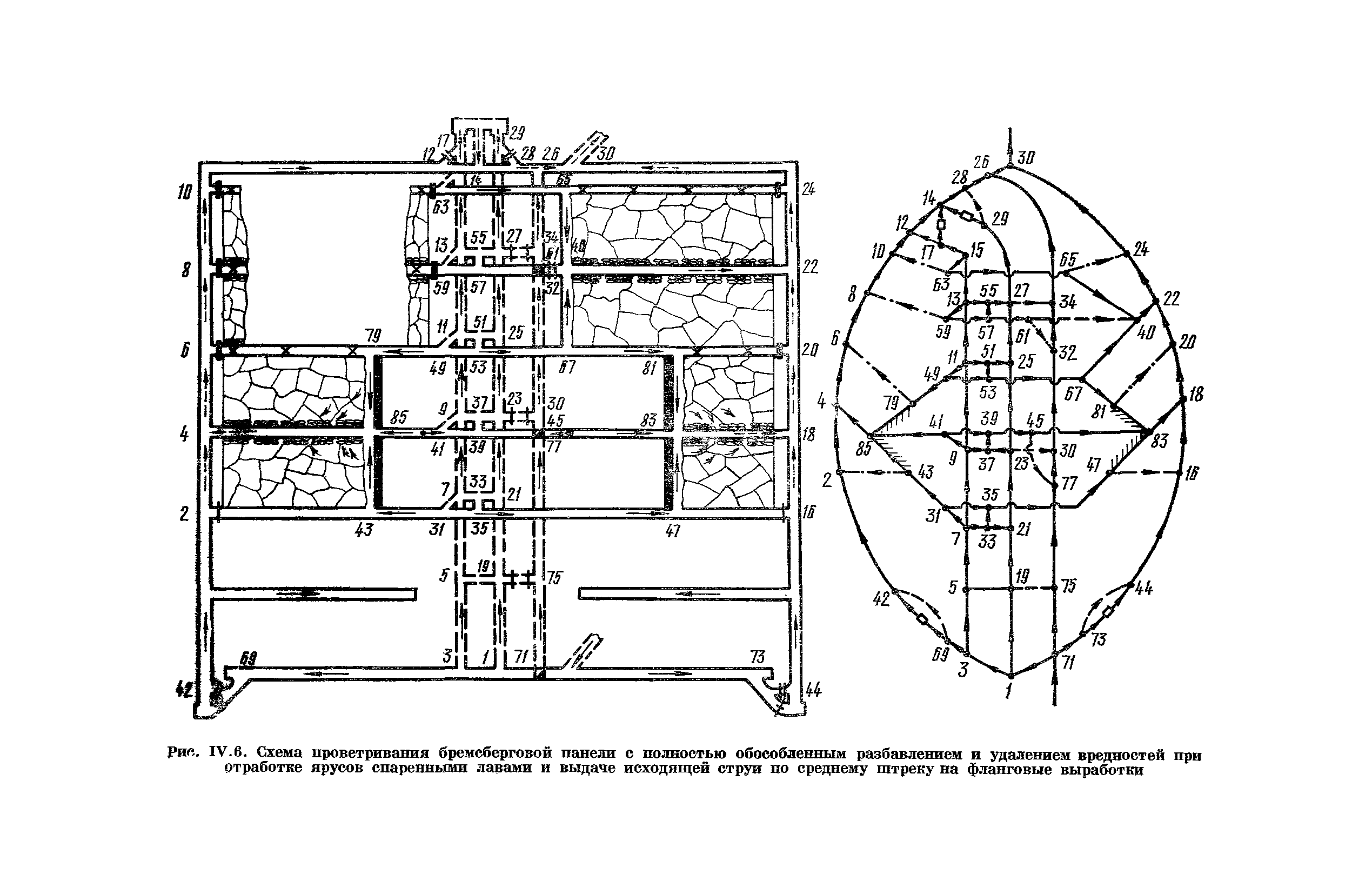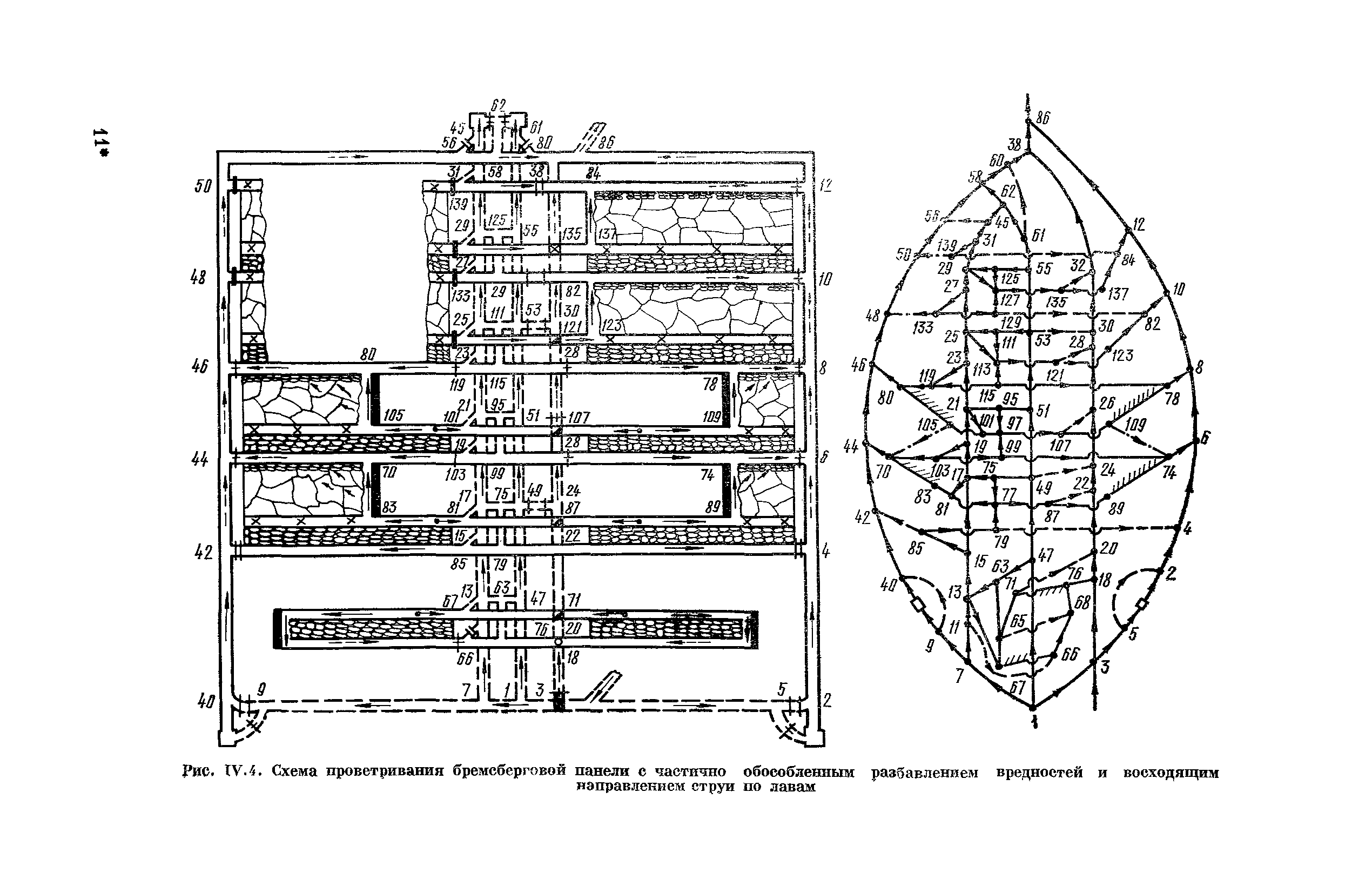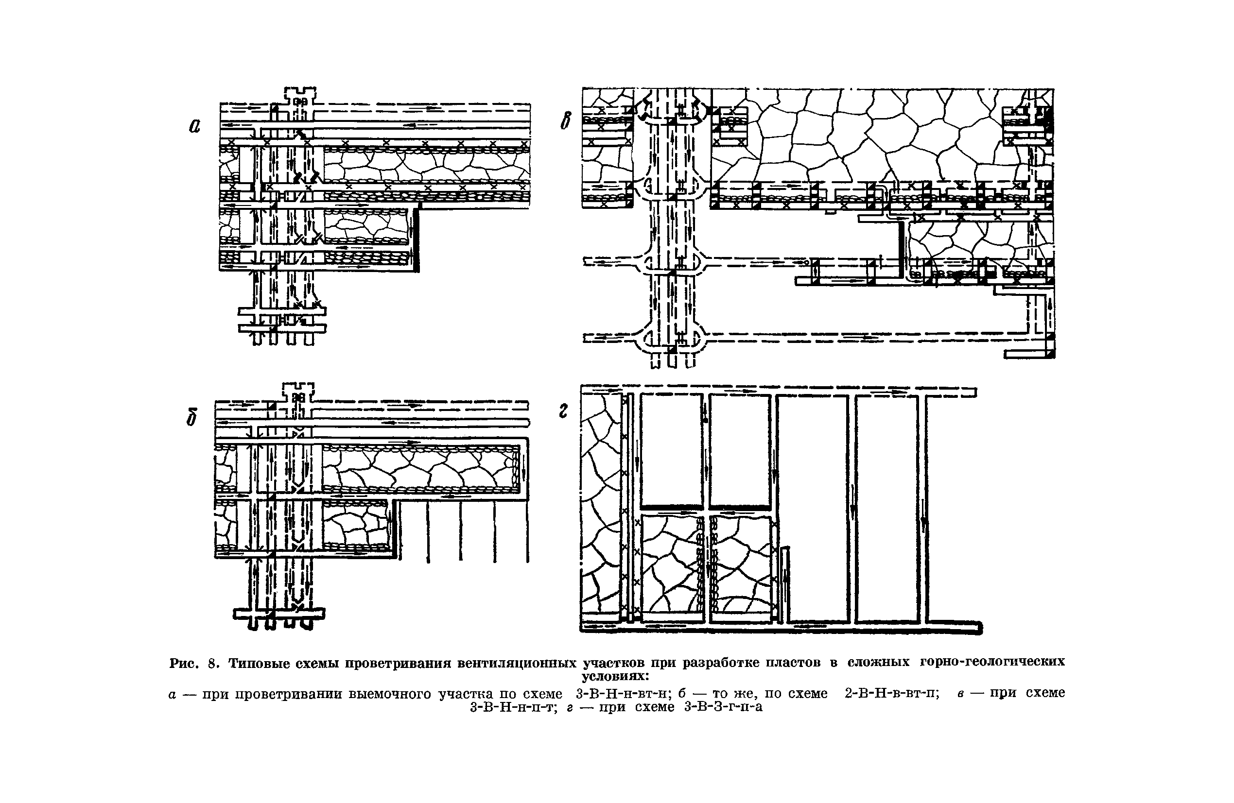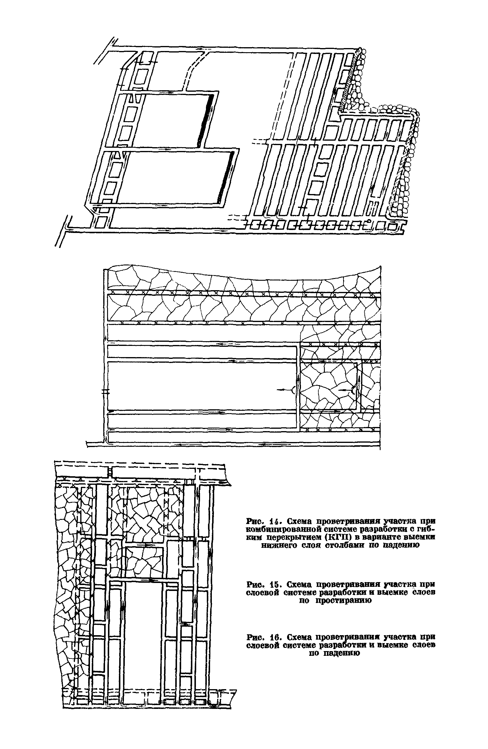 | Оглавление: | Предисловие Основные условные обозначения 1 Общие положения 1.1 Геологоразведочные организации 1.2 Угольные шахты 1.3 Проектные организации 1.4 Научно-исследовательские институты 2 Порядок проектирования вентиляции угольных шахт 3 Прогноз метанообильности выработок угольных шахт 3.1 Прогноз газообильности выработок по метаноносности угольных пластов 3.1.1 Метановыделение из пласта 3.1.2 Метановыделение из сближенных угольных пластов (спутников) 3.1.3 Метановыделение из вмещающих пород 3.1.4 Метанообильность подготовительных выработок 3.1.5 Метановыделение из старых выработанных пространств ранее отработанных этажей 3.2 Горностатистический метод прогноза 3.2.1 Принцип п область применения 3.2.2 Способ расчета и получения исходных данных 3.2.3 Способ обработки исходных данных 4 Схемы и способы проветривания шахт 4.1 Схемы проветривания выемочных участков 4.1.1 Основные требования к схемам проветривания 4.1.2 Область применения основных схем 4.2 Выбор схемы и способа проветривания шахты 5 Проектирование проветривания подготовительных выработок 5.1 Общие положения 5.2 Расход воздуха для проветривания одиночных подготовительных выработок 5.2.1 По газовыделению 5.2.2. По расходу ВВ 5.2.3 По наибольшему числу людей 5.2.4 По минимальной скорости движения воздуха 5.2.5 По тепловому фактору 5.2.6 Расчет производительности вентилятора 5.3 Расход воздуха для проветривания параллельных выработок 5.4 Расход воздуха для проветривания выработок, проводимых широким ходом 5.5 Выбор способа проветривания 5.6 Выбор и аэродинамический расчет трубопроводов 5.7 Выбор вентиляторов жесткого проветривания 5.8 Установка вентиляторов местного проветривания 6 Расчет расхода воздуха для проветривания угольных шахт 6.1 Общие положения 6.2 Упрощенный расчет расхода воздуха 6.2.1 Для Донецкого бассейна и шахт с аналогичными условиями 6.2.2 Для Кузнецкого бассейна и шахт с аналогичными условиями 6.3 Допустимая нагрузка на очистную выработку по газовому фактору 6.3.1 Для забоев типа лав 6.3.2 Для систем разработки с очистными забоями типа камер 6.4 Полный расчет расхода воздуха 6.4.1 Расход воздуха для проветривания забоев 6.4.2 Расход воздуха для проветривания выемочного участка 6.4.3 Расход воздуха для проветривания камер 6.4.4 Утечки воздуха через вентиляционные сооружения 6.4.5 Расход воздуха для проветривания вентиляционного участка и шахты 6.4.6 Производительность вентиляторных установок 7 Расчет депрессии шахт 7.1 Общешахтная депрессия 7.2 Расчет оптимальных сечений выработок 7.2.1 Исходные данные 7.2.2 Определение расчетной депрессии направлений 7.2.3 Обеспечение точности результата упрощенного расчета 7.2.4 Выбор определяющего направления 7.2.5 Расчет сечений выработок направления 7.2.6 Возможная корректировка местоположения воздухоподающего и вентиляционного стволов 7.2.7 Техника расчета сечений выработок 7.3 Размещение и расчет регуляторов распределения воздуха в горных выработках 8 Выбор вентиляторов 8.1 Вентиляторы для одиночной работы 8.2 Вентиляторы для совместной работы 9 Определение устойчивости проветривания шахт и повышение ее при конструировании схем 9.1 Расчет устойчивости проветривания 9.1.1 Общие сведения 9.1.2 Исходные данные и порядок анализа 9.1.3 Нахождение диагоналей и ветвей, влияющих на направление движения воздуха в диагоналях 9.1.4 Предварительный анализ устойчивости 9.1.5 О