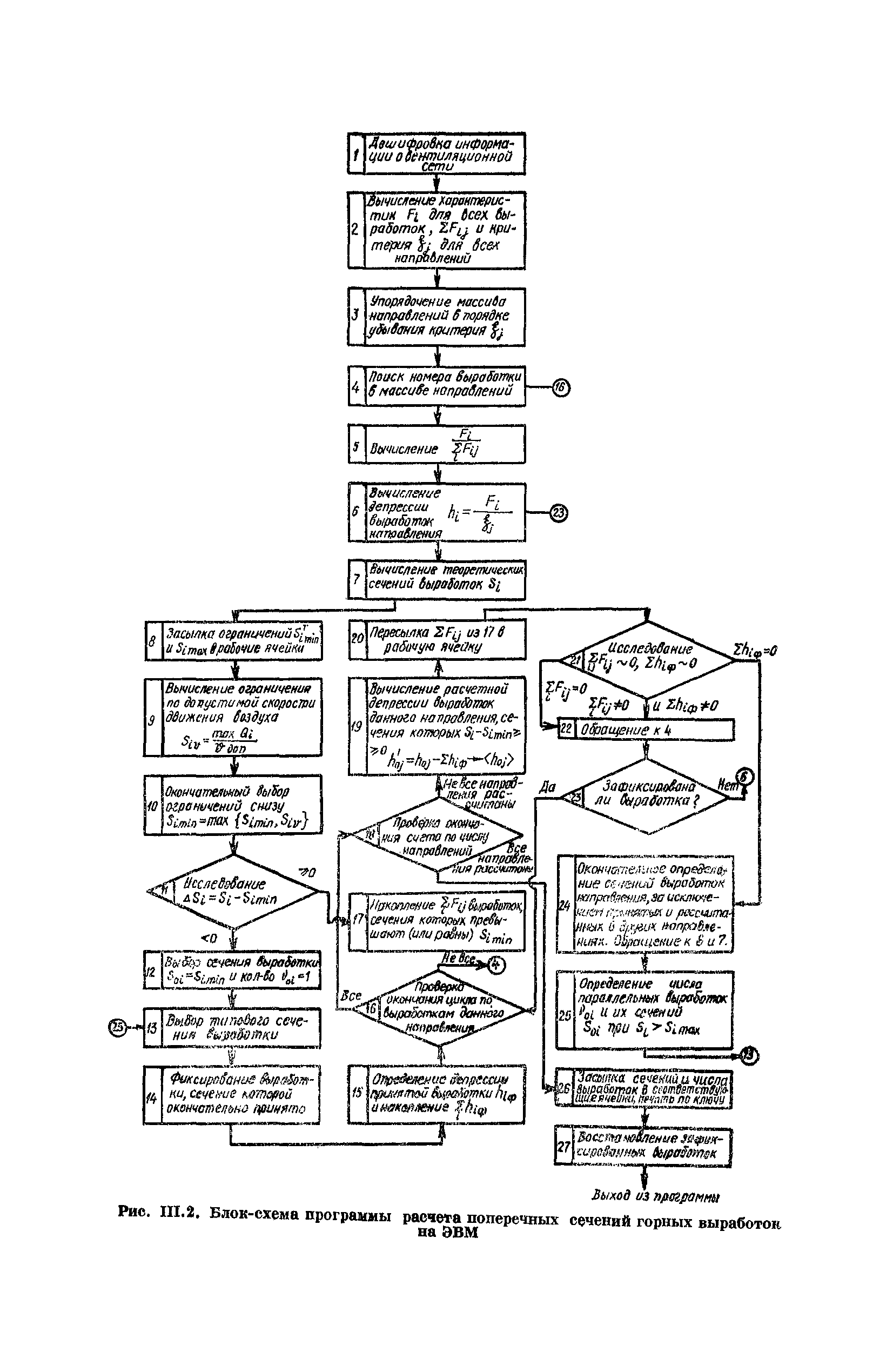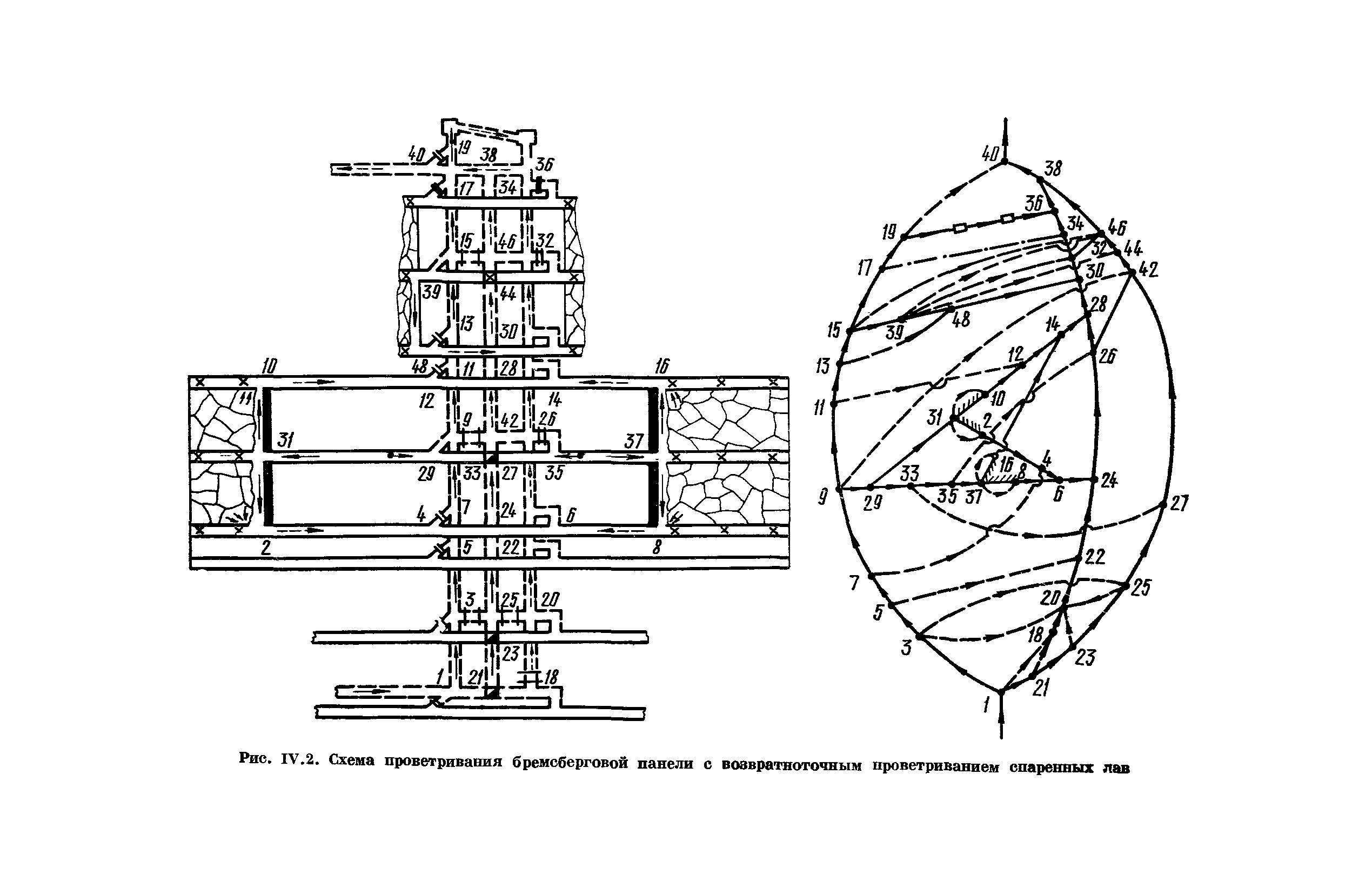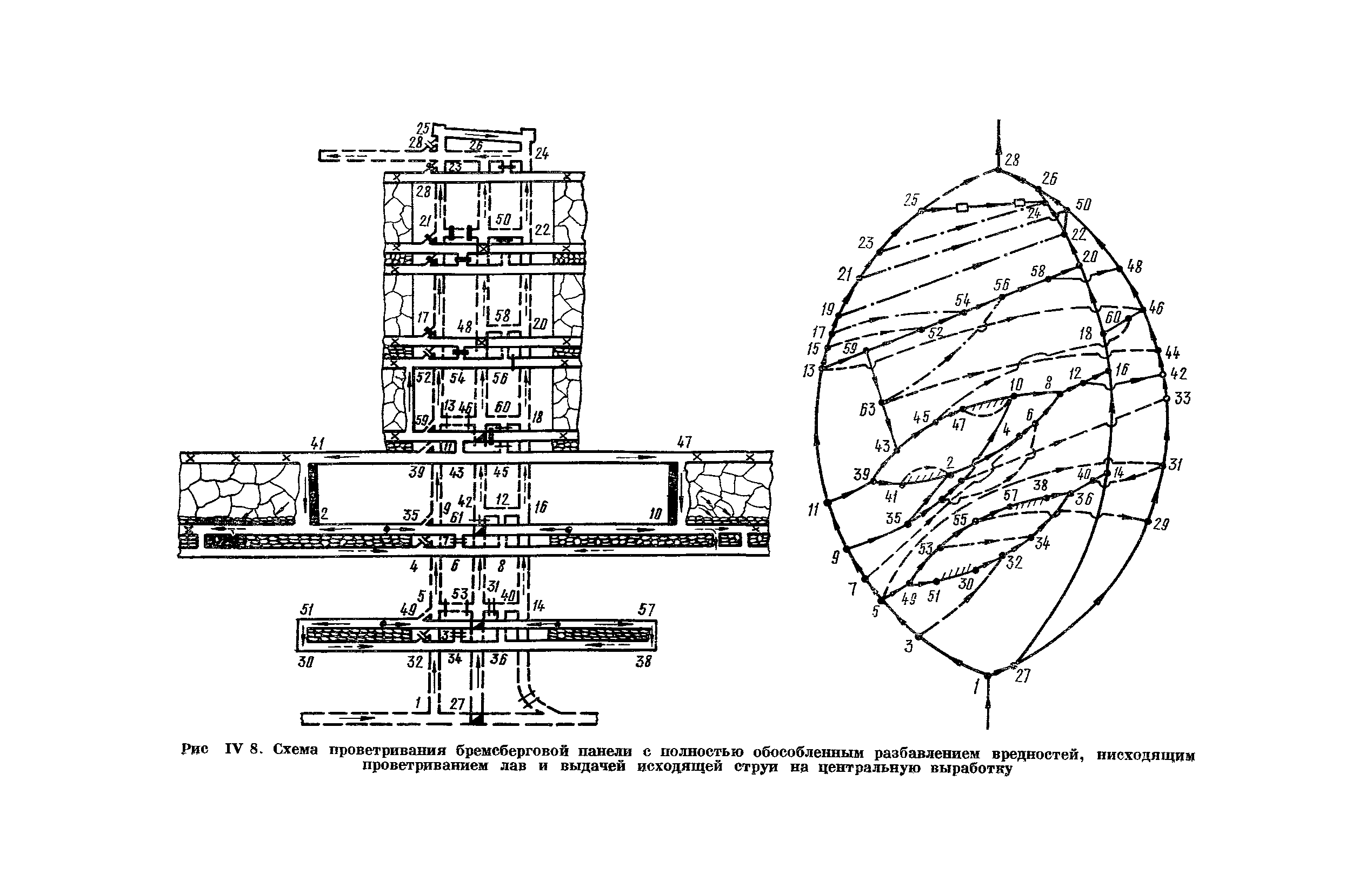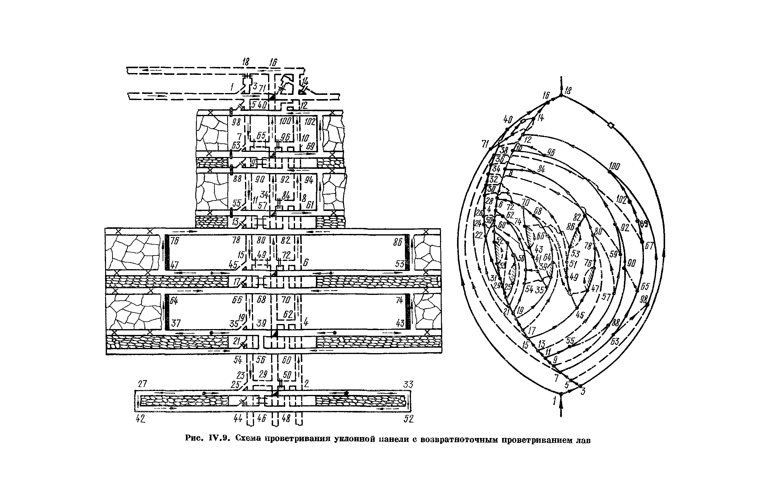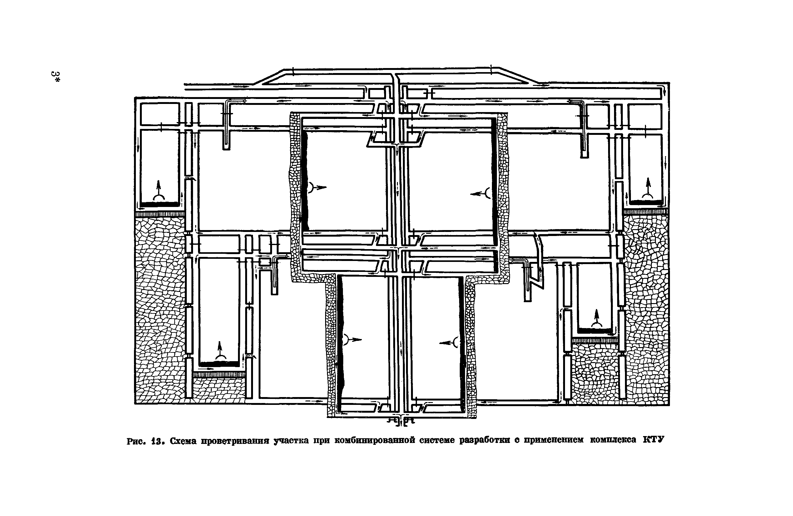 | Оглавление: | Предисловие Основные условные обозначения 1 Общие положения 1.1 Геологоразведочные организации 1.2 Угольные шахты 1.3 Проектные организации 1.4 Научно-исследовательские институты 2 Порядок проектирования вентиляции угольных шахт 3 Прогноз метанообильности выработок угольных шахт 3.1 Прогноз газообильности выработок по метаноносности угольных пластов 3.1.1 Метановыделение из пласта 3.1.2 Метановыделение из сближенных угольных пластов (спутников) 3.1.3 Метановыделение из вмещающих пород 3.1.4 Метанообильность подготовительных выработок 3.1.5 Метановыделение из старых выработанных пространств ранее отработанных этажей 3.2 Горностатистический метод прогноза 3.2.1 Принцип п область применения 3.2.2 Способ расчета и получения исходных данных 3.2.3 Способ обработки исходных данных 4 Схемы и способы проветривания шахт 4.1 Схемы проветривания выемочных участков 4.1.1 Основные требования к схемам проветривания 4.1.2 Область применения основных схем 4.2 Выбор схемы и способа проветривания шахты 5 Проектирование проветривания подготовительных выработок 5.1 Общие положения 5.2 Расход воздуха для проветривания одиночных подготовительных выработок 5.2.1 По газовыделению 5.2.2. По расходу ВВ 5.2.3 По наибольшему числу людей 5.2.4 По минимальной скорости движения воздуха 5.2.5 По тепловому фактору 5.2.6 Расчет производительности вентилятора 5.3 Расход воздуха для проветривания параллельных выработок 5.4 Расход воздуха для проветривания выработок, проводимых широким ходом 5.5 Выбор способа проветривания 5.6 Выбор и аэродинамический расчет трубопроводов 5.7 Выбор вентиляторов жесткого проветривания 5.8 Установка вентиляторов местного проветривания 6 Расчет расхода воздуха для проветривания угольных шахт 6.1 Общие положения 6.2 Упрощенный расчет расхода воздуха 6.2.1 Для Донецкого бассейна и шахт с аналогичными условиями 6.2.2 Для Кузнецкого бассейна и шахт с аналогичными условиями 6.3 Допустимая нагрузка на очистную выработку по газовому фактору 6.3.1 Для забоев типа лав 6.3.2 Для систем разработки с очистными забоями типа камер 6.4 Полный расчет расхода воздуха 6.4.1 Расход воздуха для проветривания забоев 6.4.2 Расход воздуха для проветривания выемочного участка 6.4.3 Расход воздуха для проветривания камер 6.4.4 Утечки воздуха через вентиляционные сооружения 6.4.5 Расход воздуха для проветривания вентиляционного участка и шахты 6.4.6 Производительность вентиляторных установок 7 Расчет депрессии шахт 7.1 Общешахтная депрессия 7.2 Расчет оптимальных сечений выработок 7.2.1 Исходные данные 7.2.2 Определение расчетной депрессии направлений 7.2.3 Обеспечение точности результата упрощенного расчета 7.2.4 Выбор определяющего направления 7.2.5 Расчет сечений выработок направления 7.2.6 Возможная корректировка местоположения воздухоподающего и вентиляционного стволов 7.2.7 Техника расчета сечений выработок 7.3 Размещение и расчет регуляторов распределения воздуха в горных выработках 8 Выбор вентиляторов 8.1 Вентиляторы для одиночной работы 8.2 Вентиляторы для совместной работы 9 Определение устойчивости проветривания шахт и повышение ее при конструировании схем 9.1 Расчет устойчивости проветривания 9.1.1 Общие сведения 9.1.2 Исходные данные и порядок анализа 9.1.3 Нахождение диагоналей и ветвей, влияющих на направление движения воздуха в диагоналях 9.1.4 Предварительный анализ устойчивости 9.1.5 О