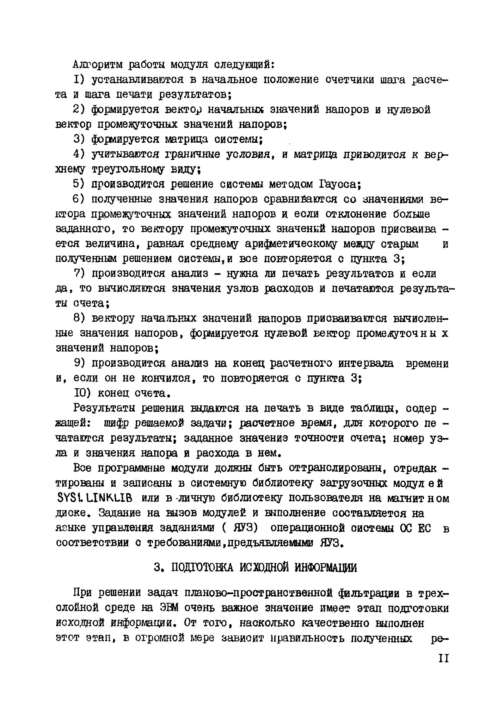| Область применения: | Документ предназначен для численного моделирования на ЭВМ методом конечных элементов (МКЭ) нестационарных планово-пространственных задач фильтрации в трехслойной среде. Программы составлены на алгоритмическом языке ПЛ/I и предназначены для выполнения под управлением операционной системы ОС ЕС на ЭВМ с оперативной памятью не менее 512К. Приведены указания по подготовке исходной информации и работе с программами на ЭВМ УС-1022. Указания рассчитаны для использования работниками НИИ, производственных и проектных организаций |