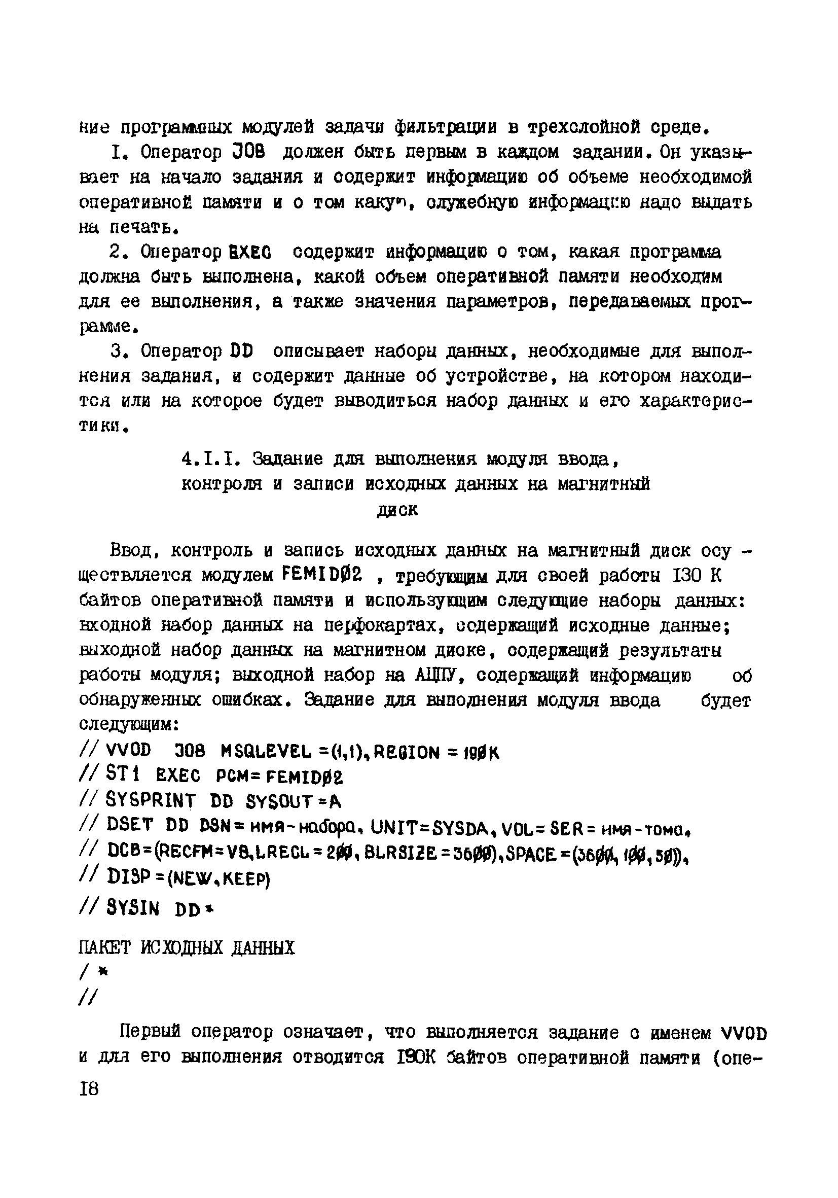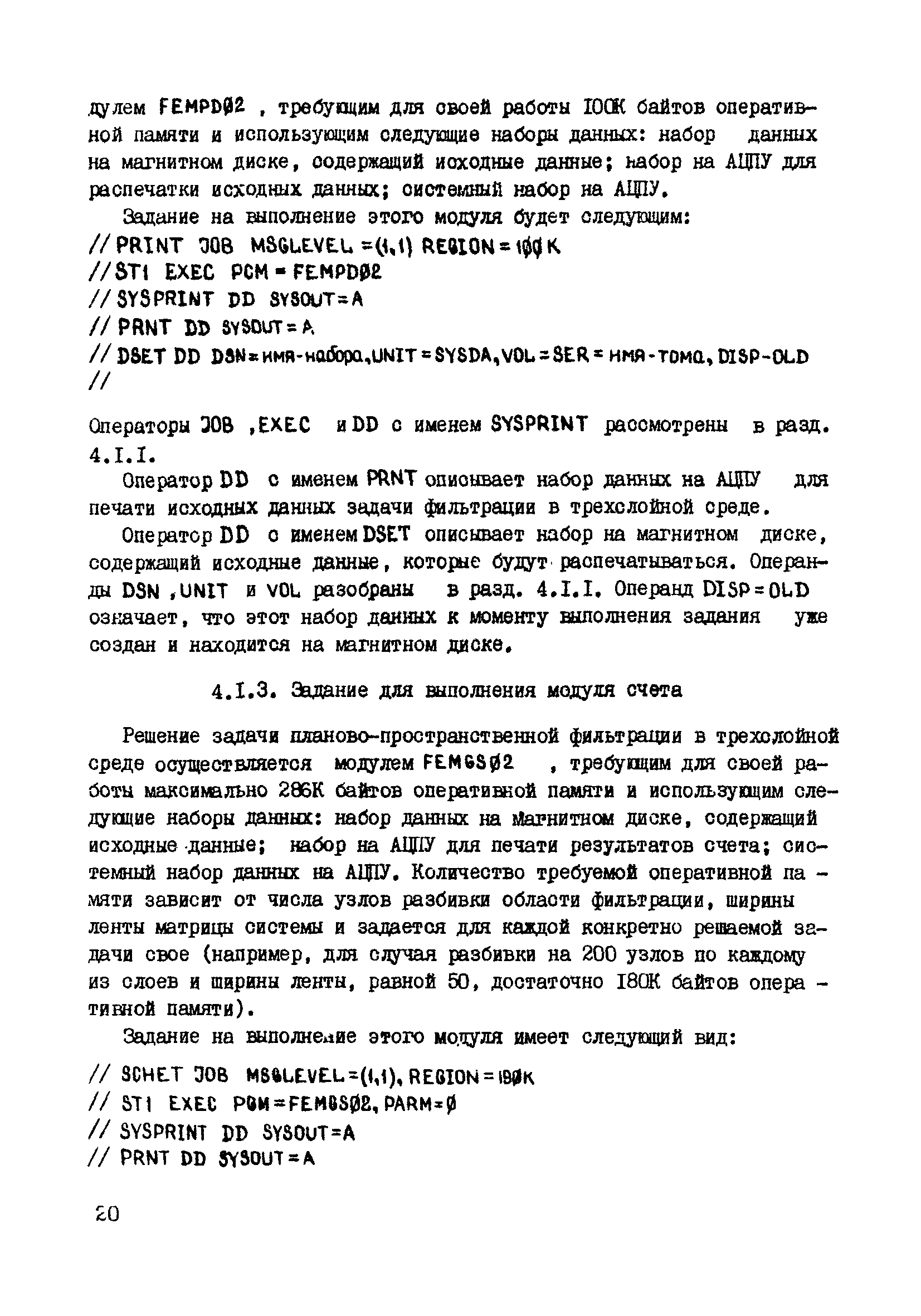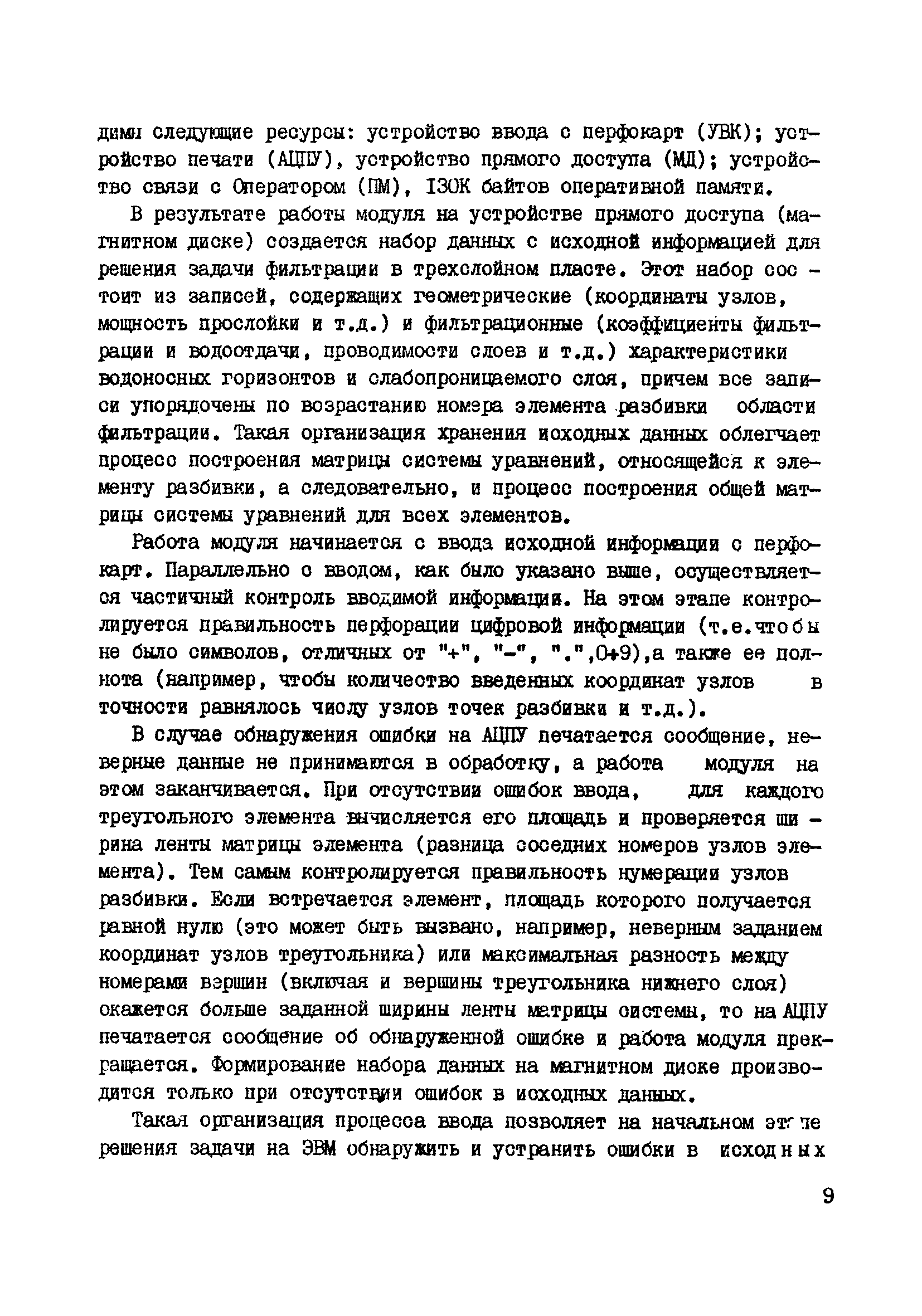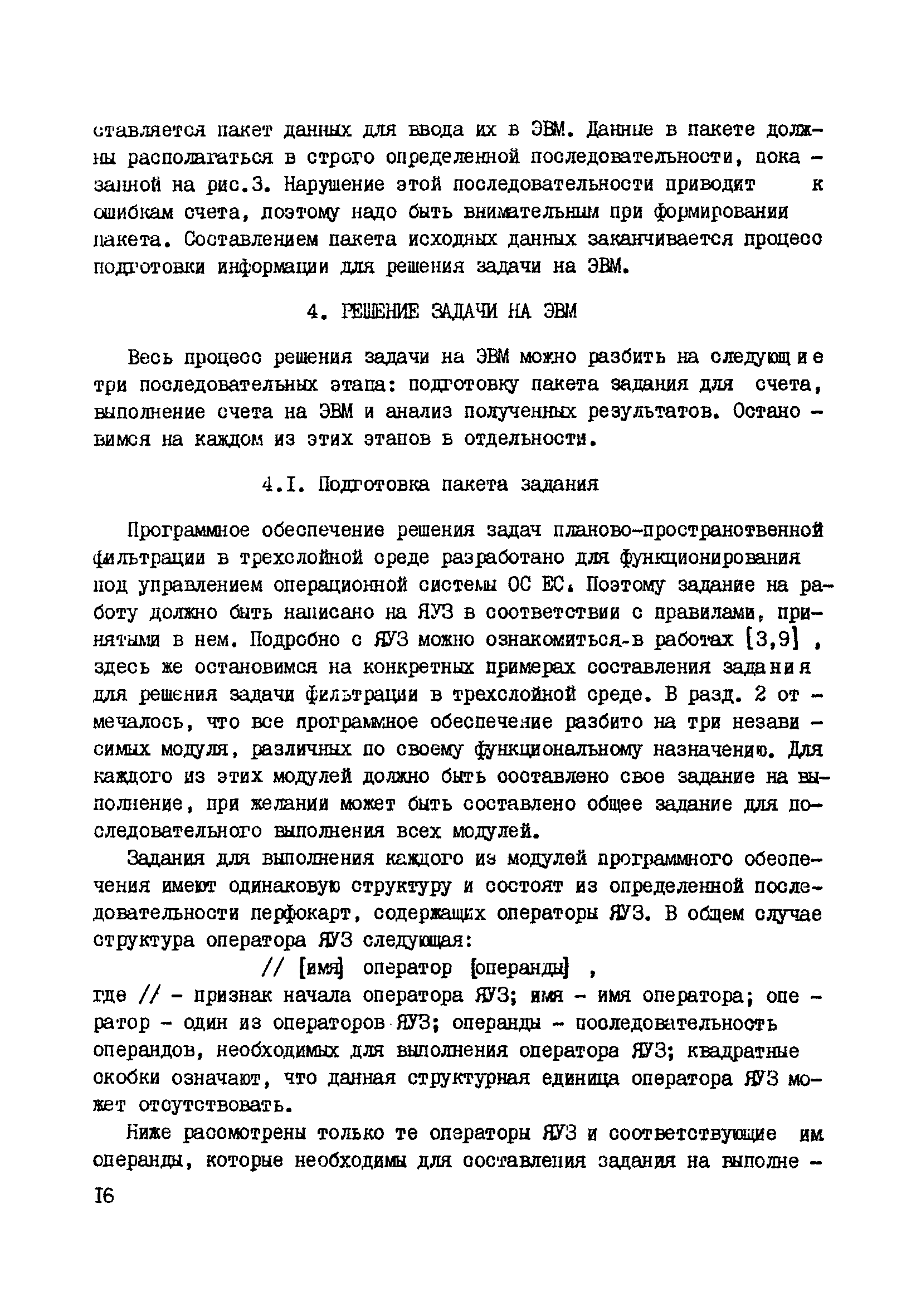| Оглавление: | Введение 1 Постановка задачи 2 Описание программного обеспечения 3 Подготовка исходной информации 3.1 Гидрогеологическая постановка задачи 3.2 Конечно-элементная схематизация области исследований 3.3 Подготовка исходных данных к перфорации 4 Решение задачи на ЭВМ 4.1 Подготовка пакета задания 4.1.1 Задание для выполнения модуля ввода, контроля и записи исходных данных на магнитный диск 4.1.2 Задание для выполнения модуля печати исходных данных 4.1.3 Задание для выполнения модуля счета 4.2 Выполнение счета на ЭВМ 5 Пример подготовки исходной информации Литература |