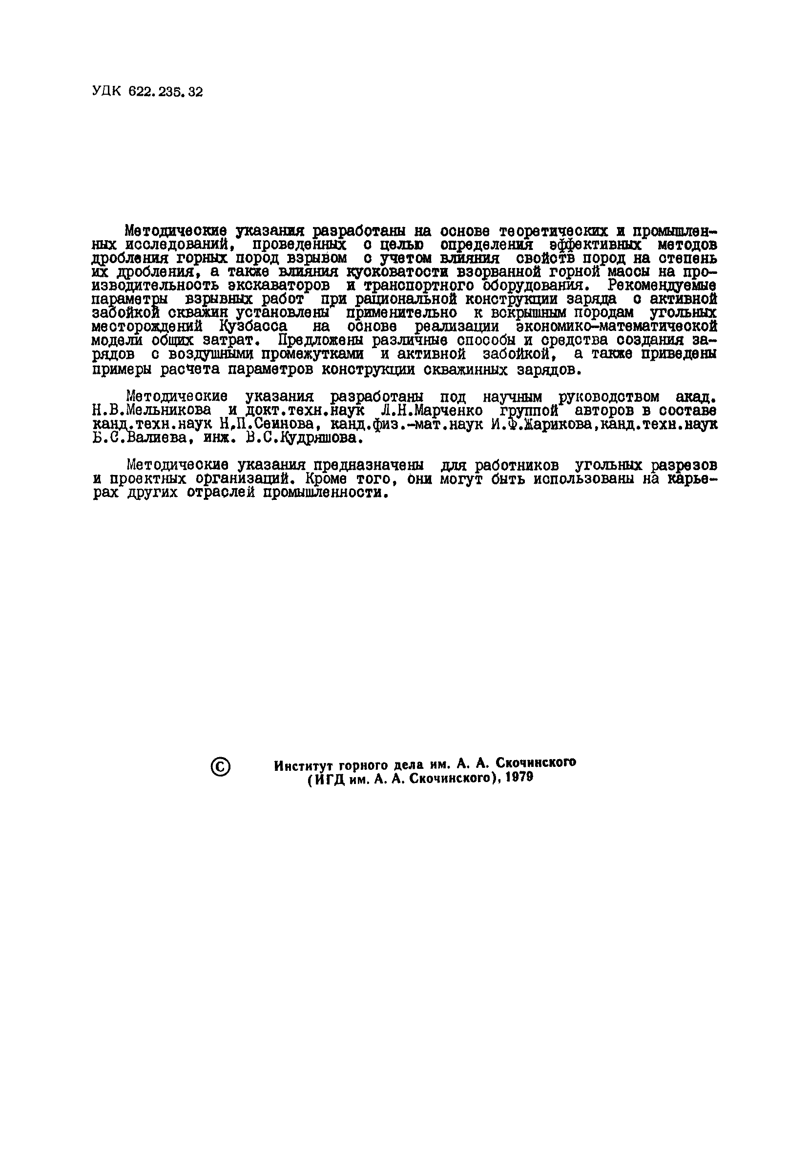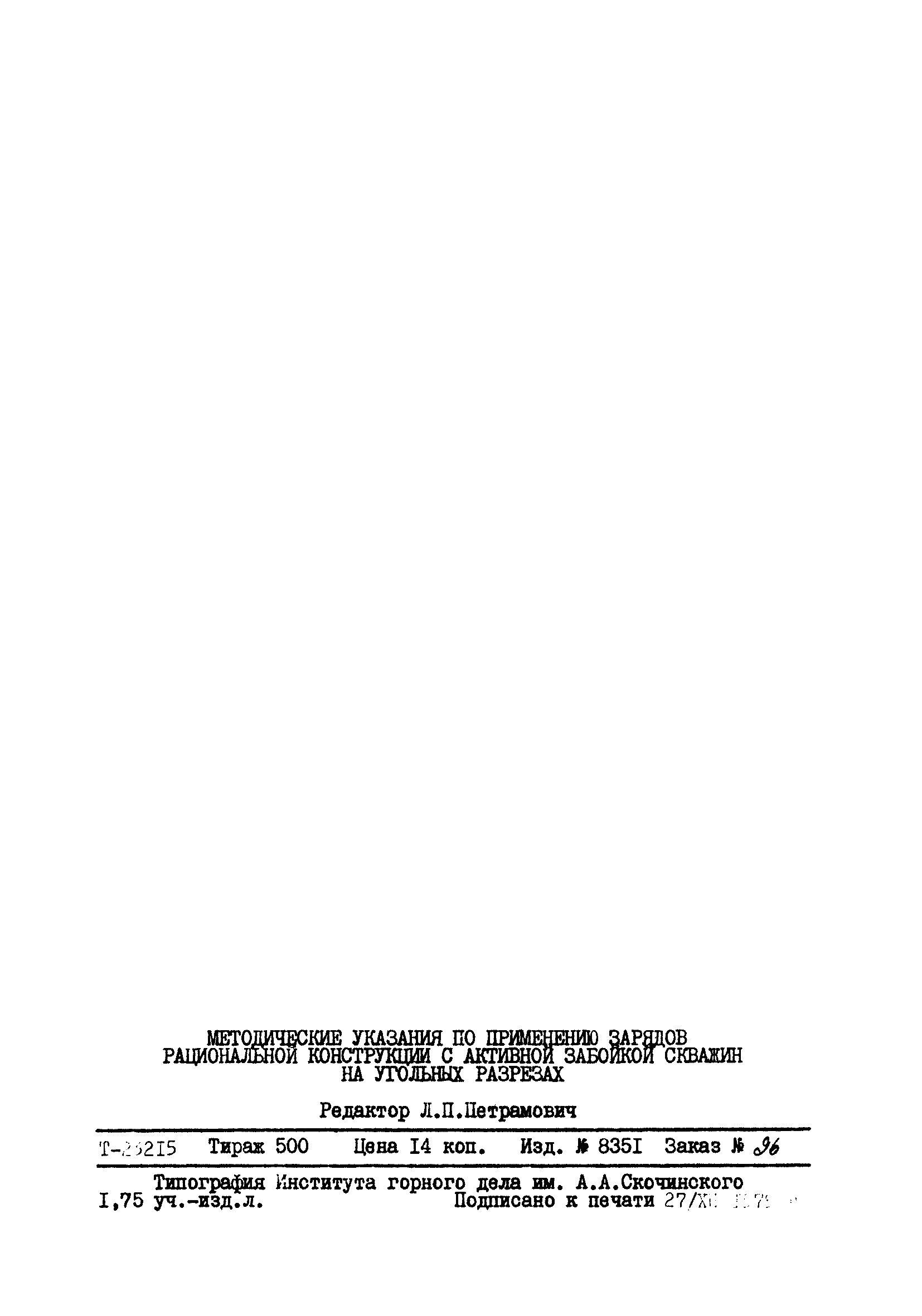 | Название рус.: | Методические указания по применению зарядов рациональной конструкции с активной забойкой скважин на угольных разрезах |
