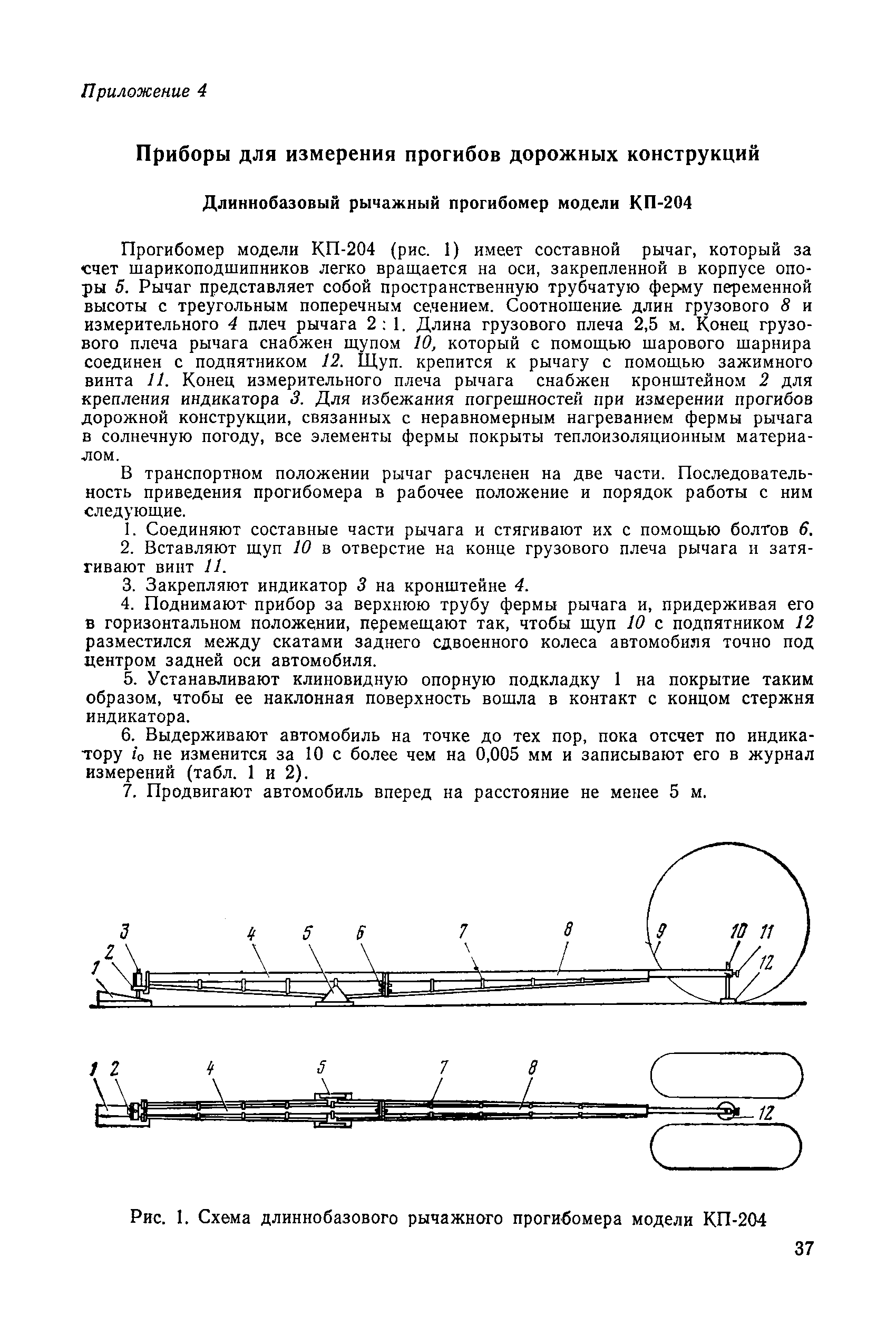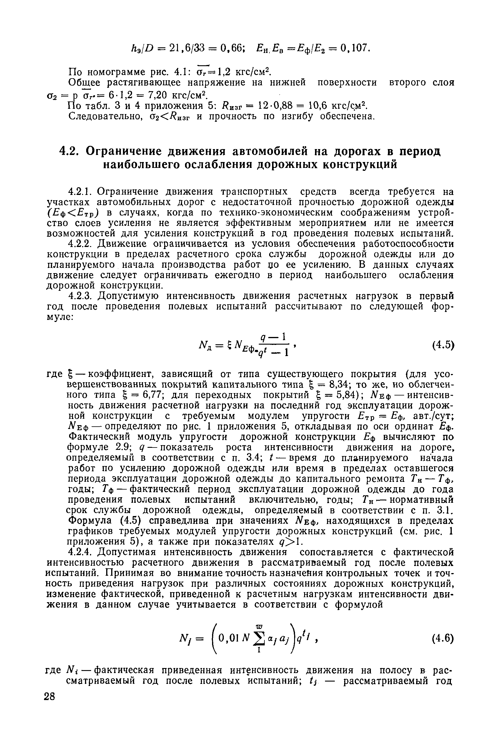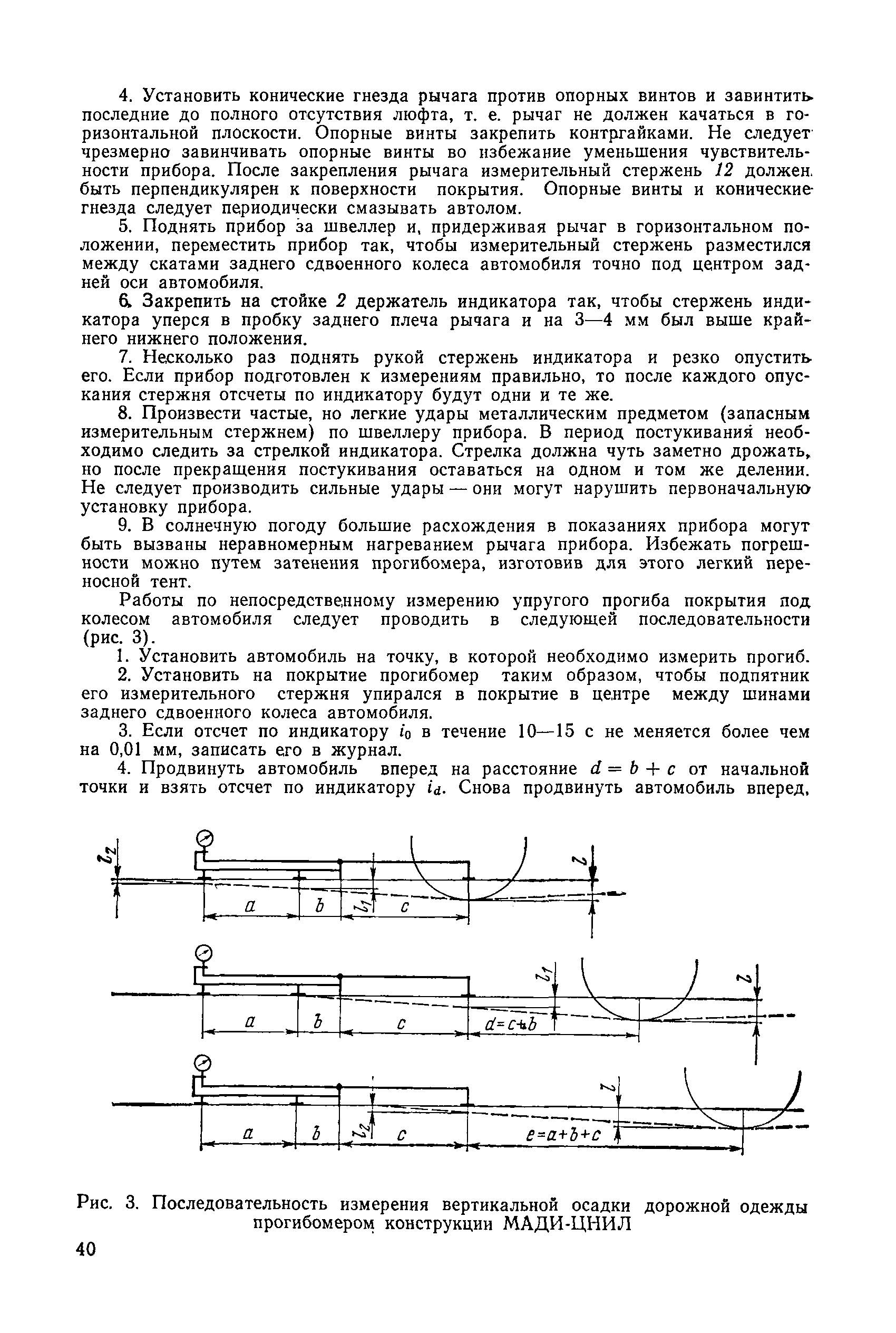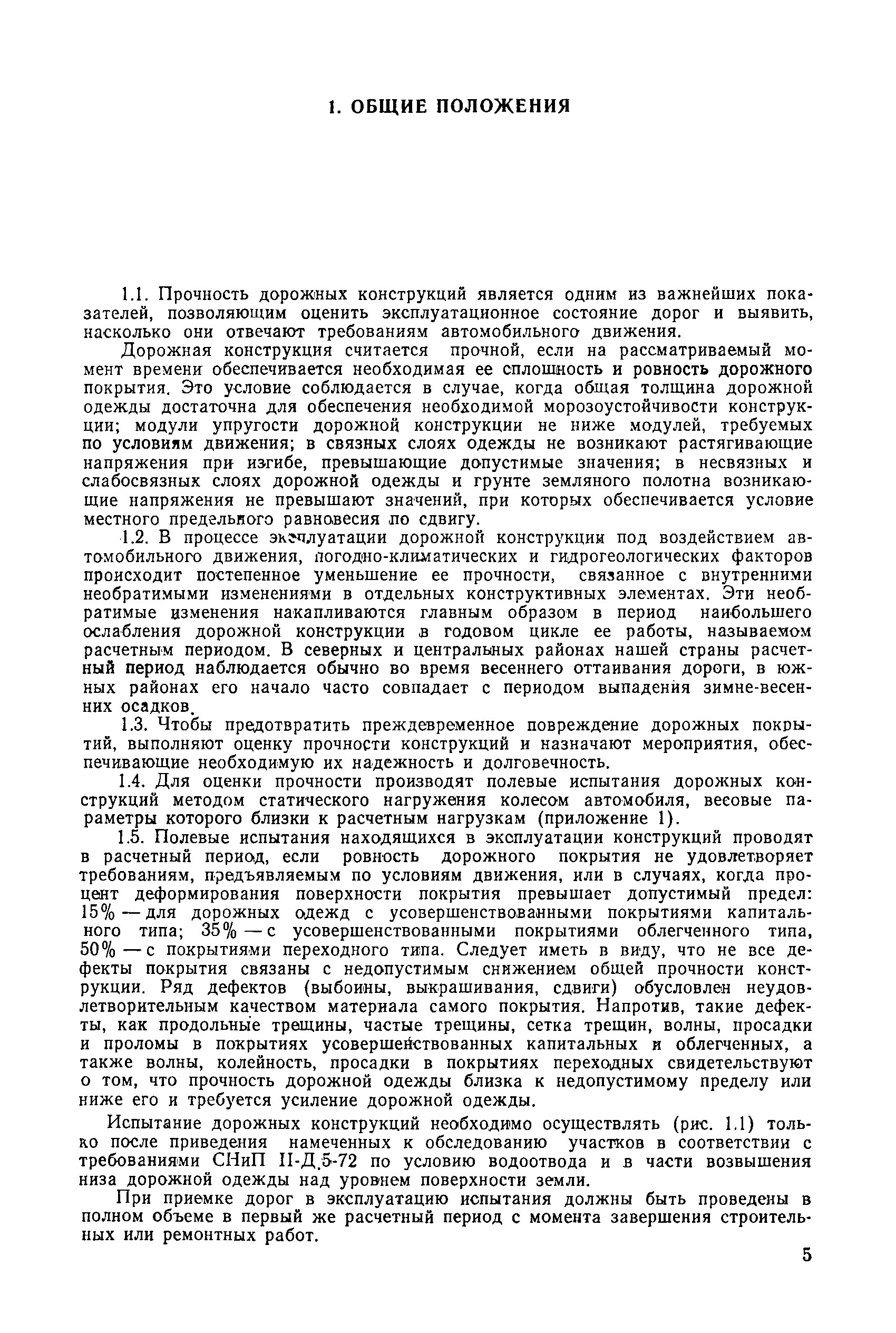 | Оглавление: | Введение 1 Общие положения 2 Оценка прочности нежестких дорожных одежд по величине упругого прогиба под колесом автомобиля 3 Назначение требуемой прочности нежестких дорожных конструкций 4 Мероприятия по повышению долговечности дорожных одежд Приложение 1. Автомобильные нагрузки Приложение 2. Определение весовых параметров автомобильной нагрузки Приложение 3. Состав и оснащение бригады, проводящей полевые испытания. Расчет количества бригад Приложение 4. Приборы для измерения прогибов дорожных конструкций Приложение 5. Расчетные параметры дорожных конструкций с нежесткими типами покрытий |