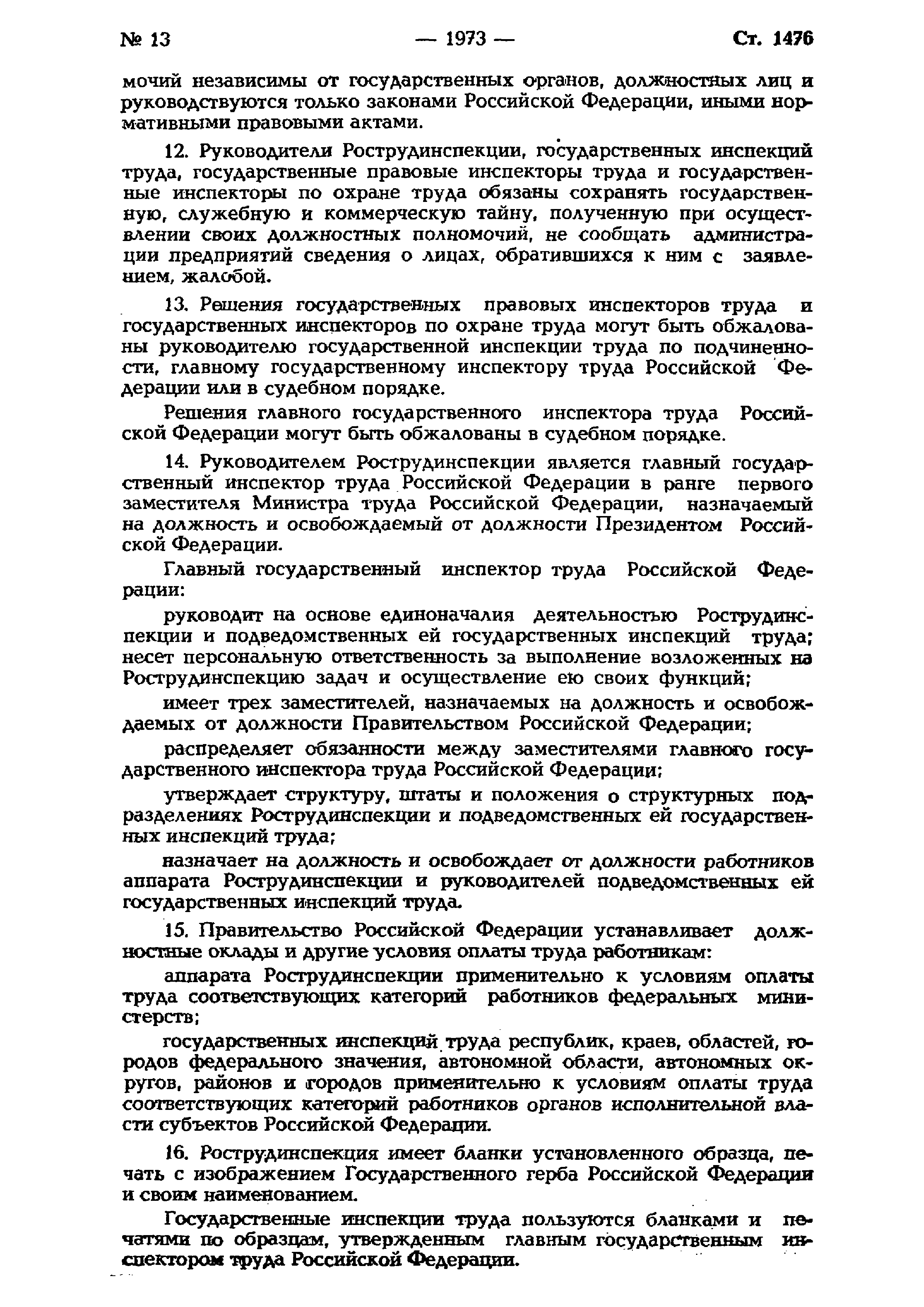 | Название рус.: | Положение о Федеральной инспекции труда при Министерстве труда Российской Федерации (Рострудинспекции) |
