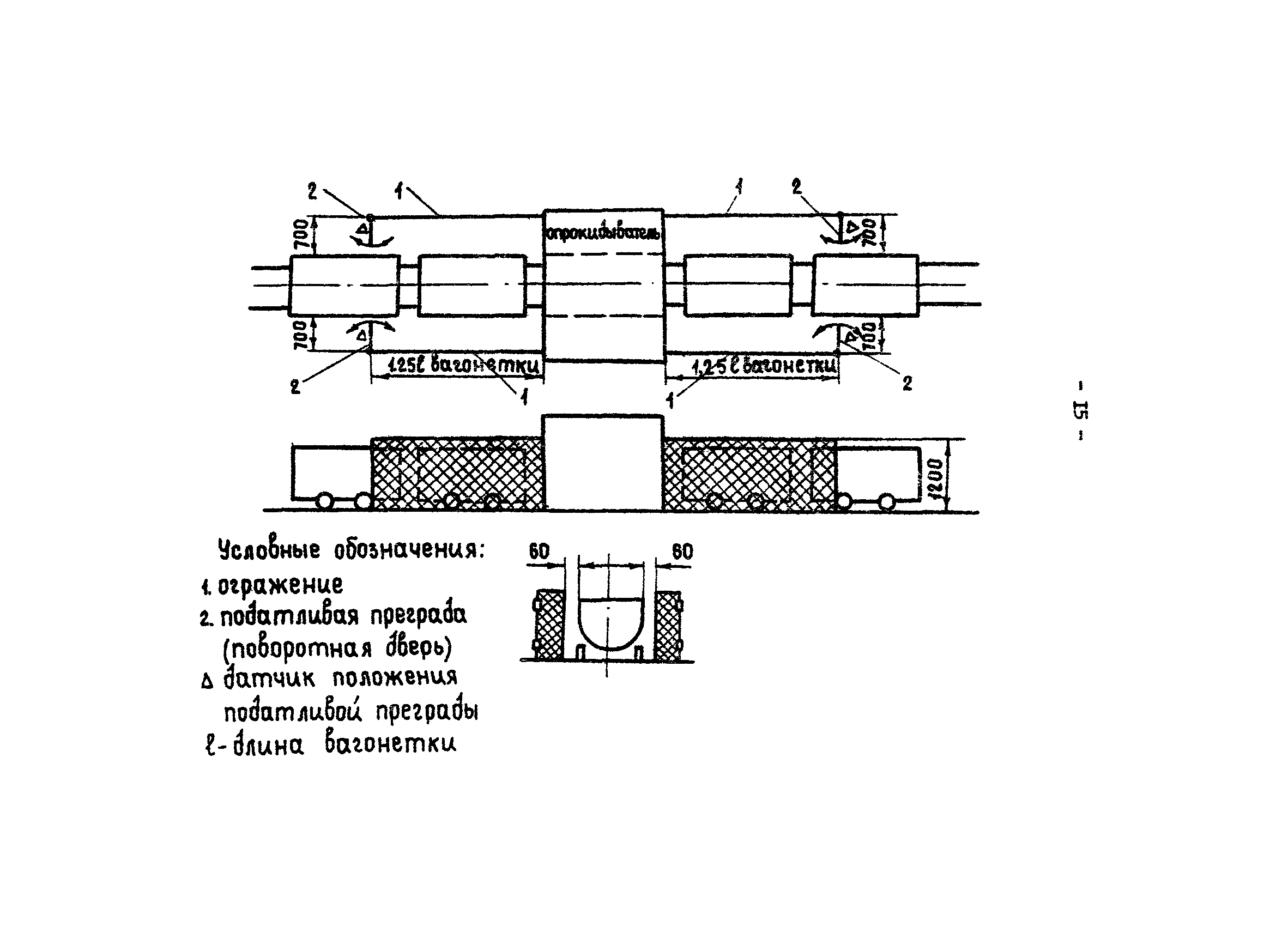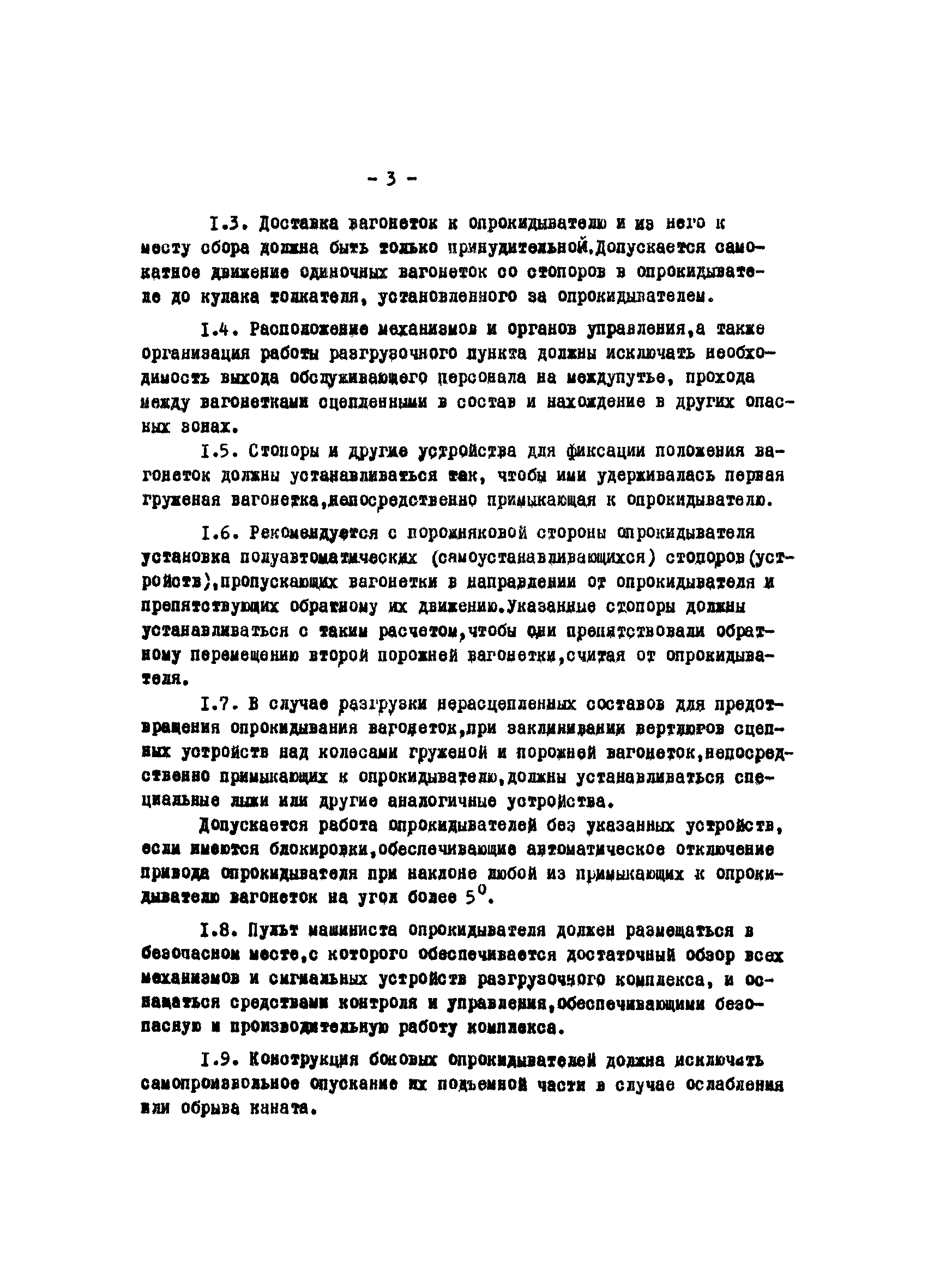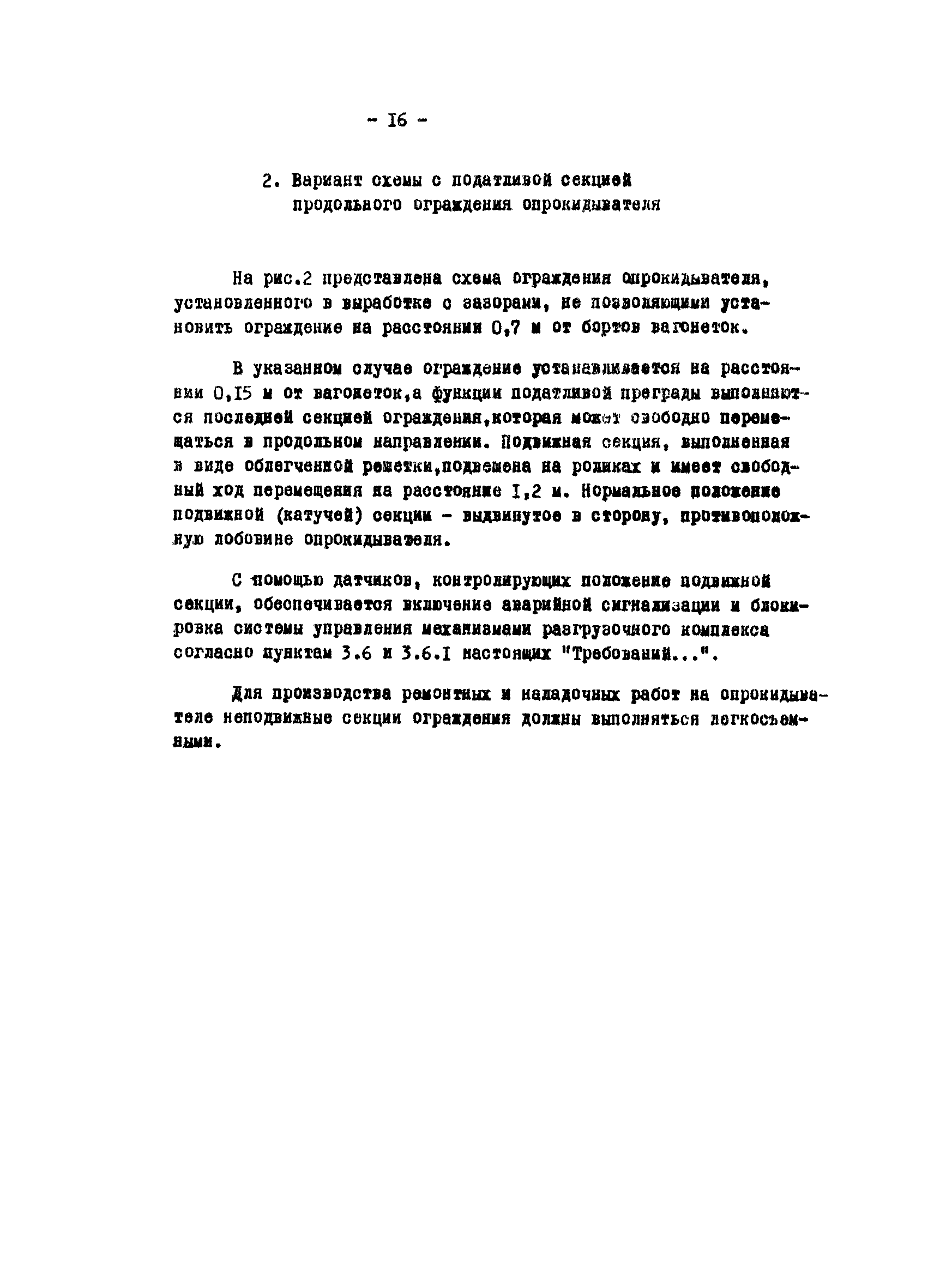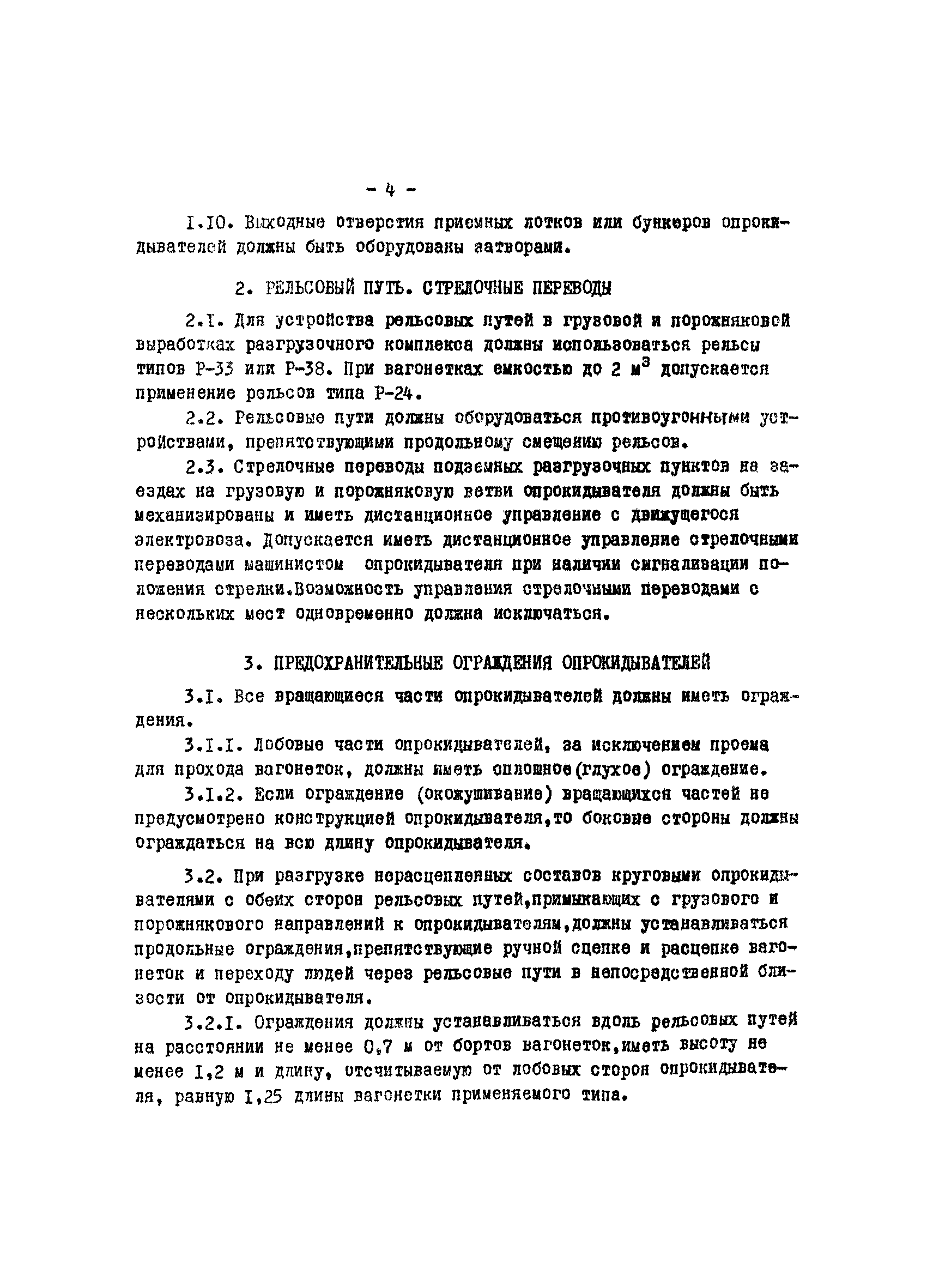 | Оглавление: | 1 Механизмы комплекса разгрузки вагонеток опрокидывателями 2 Рельсовый путь. Стрелочные переводы 3 Предохранительные ограждения опрокидывателей 4 Энергоснабжение, управление механизмами, блокировки 5 Сигнализация, связь, освещение 6 Требования к безопасной эксплуатации 7 Техническая документация Приложение. Варианты схем предохранительного ограждения опрокидывателей |