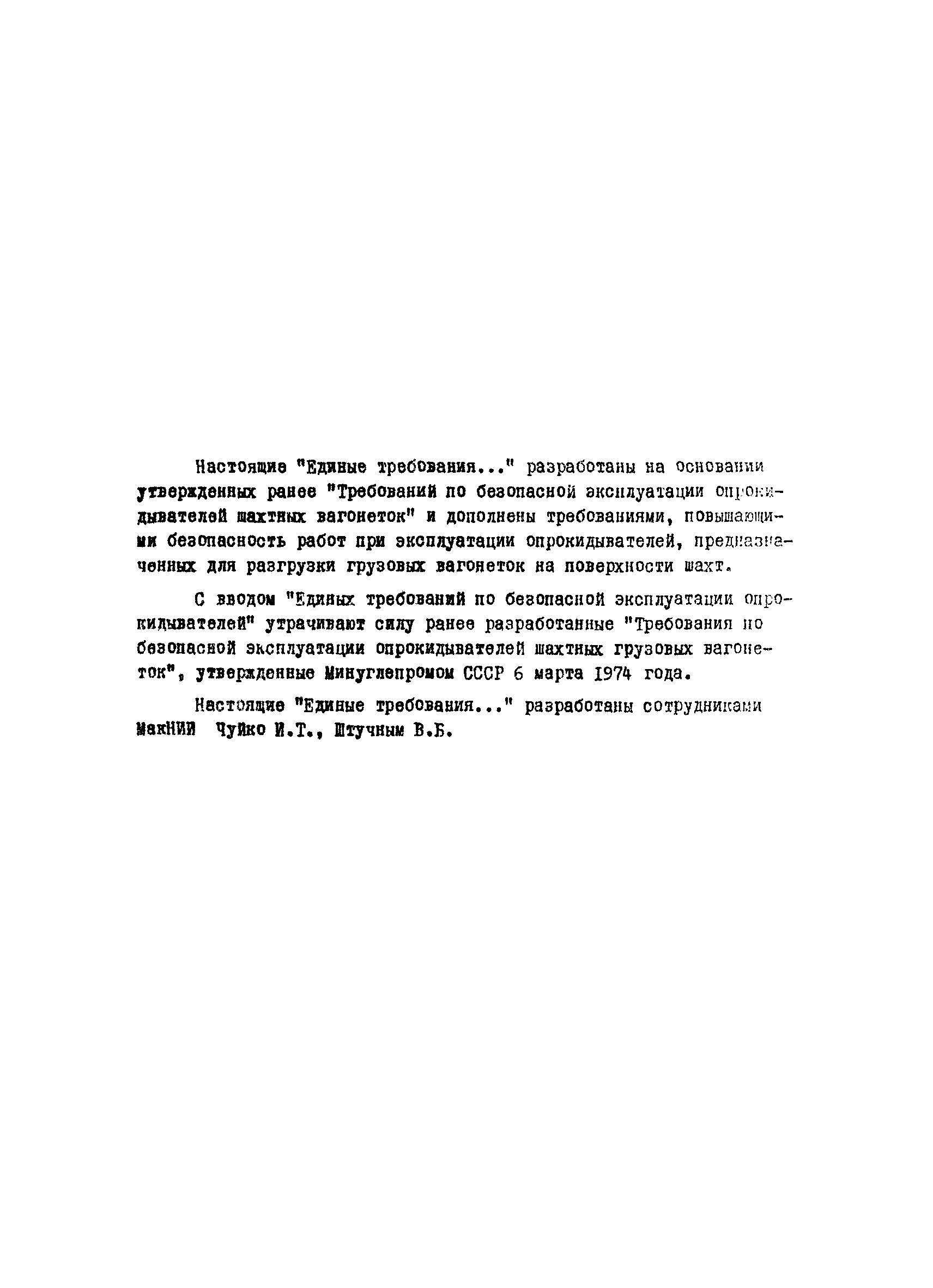 | Область применения: | Документ обязателен при эксплуатации опрокидывателей, предназначенных для разгрузки грузовых вагонеток на поверхности шахт |