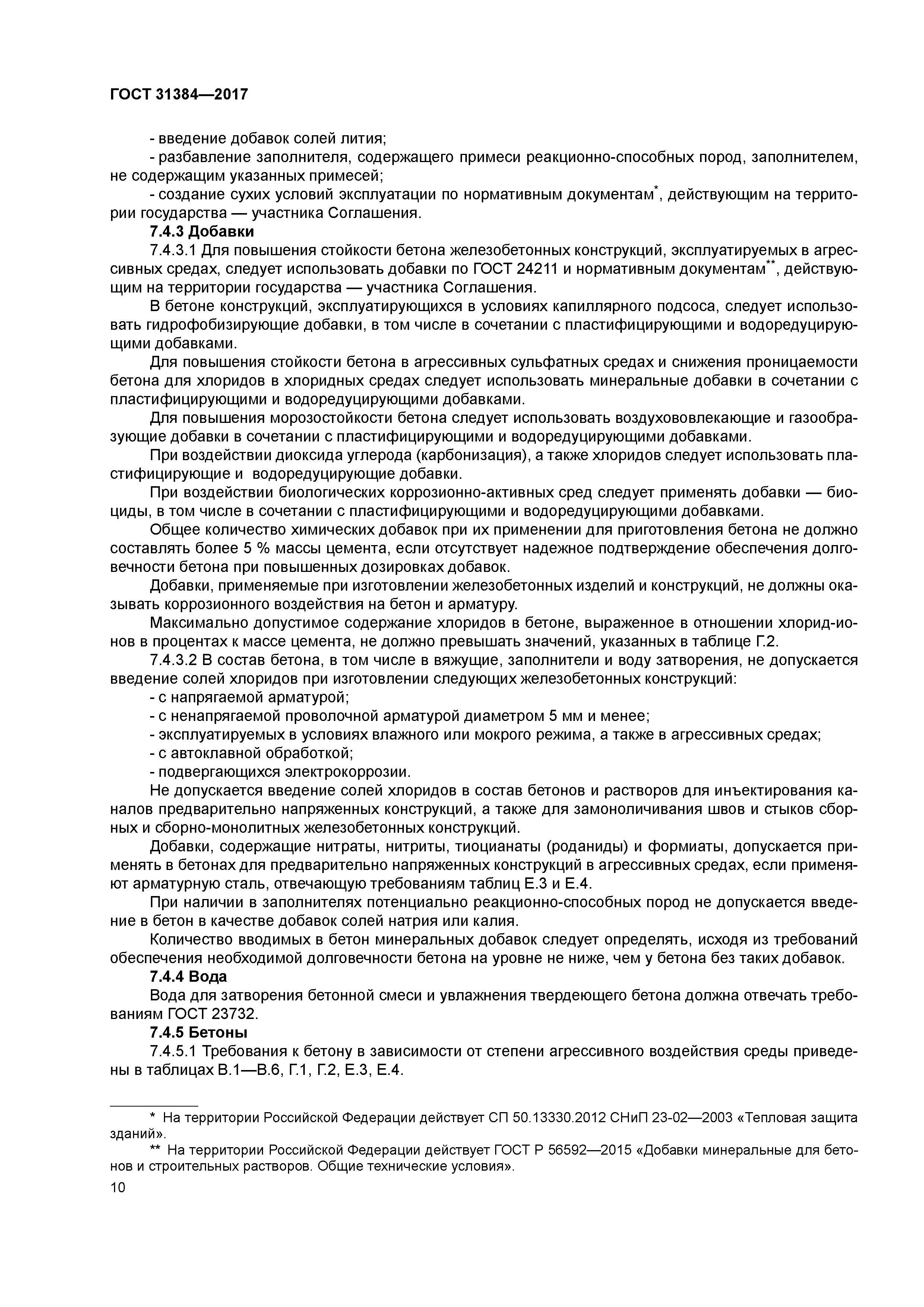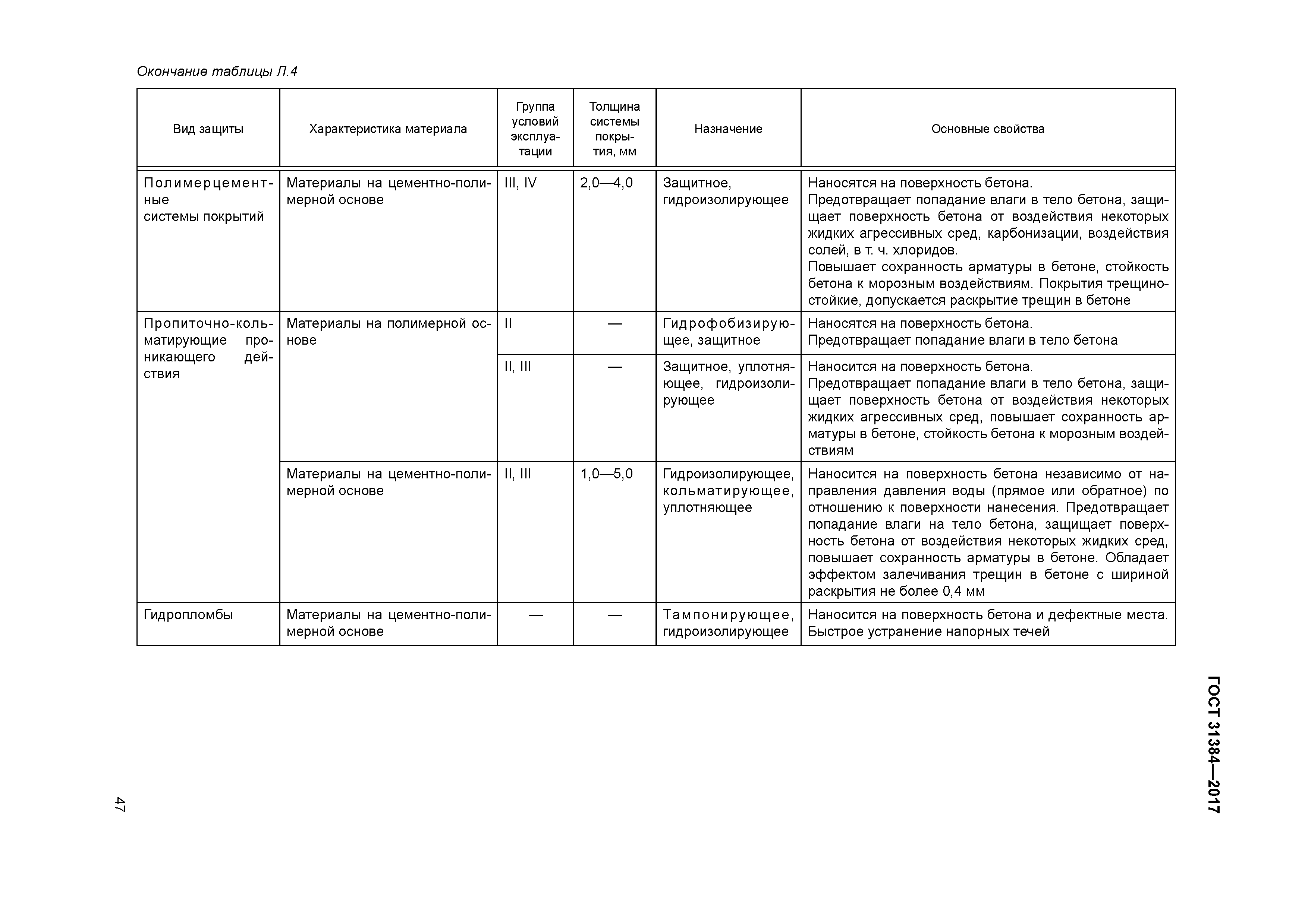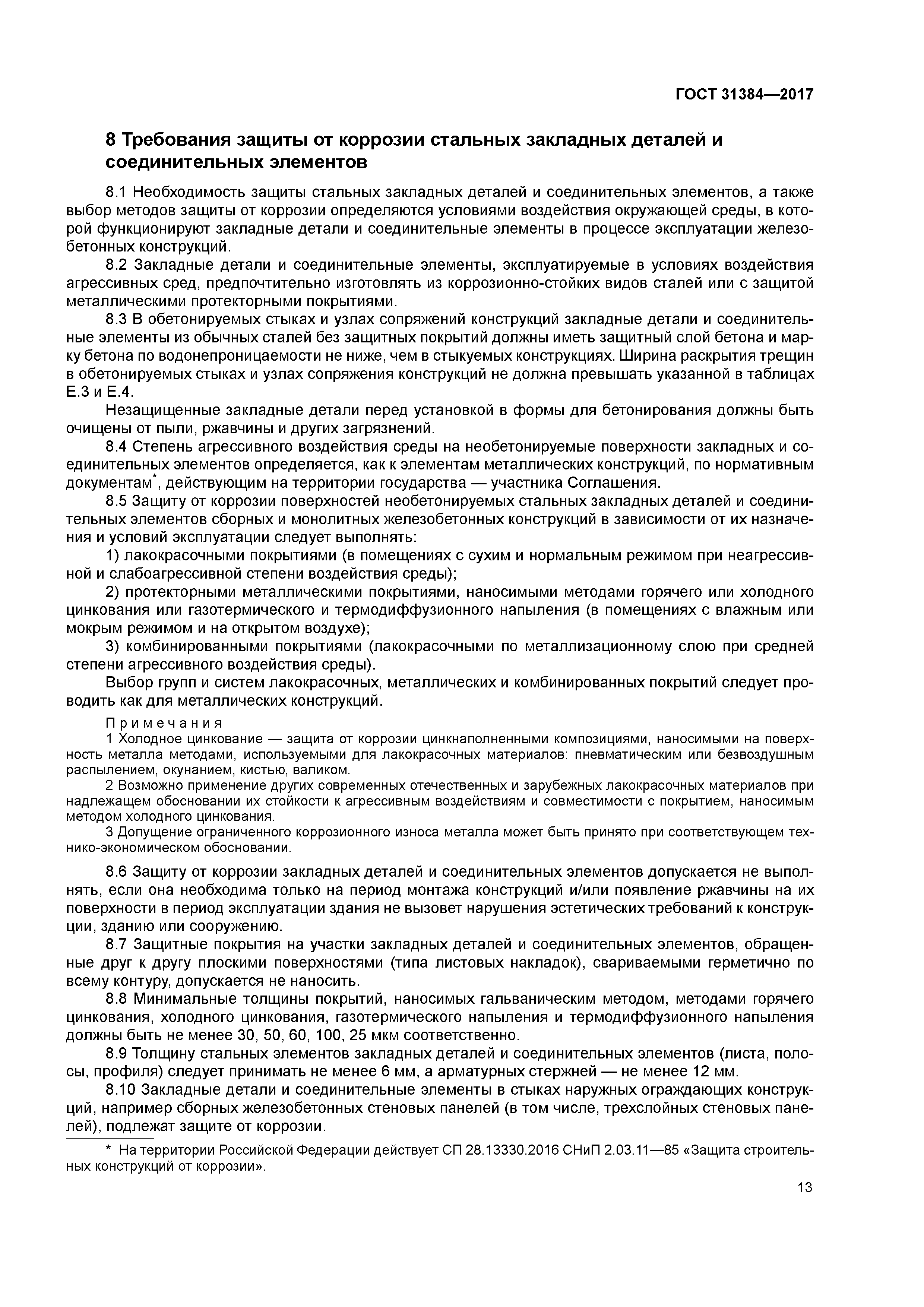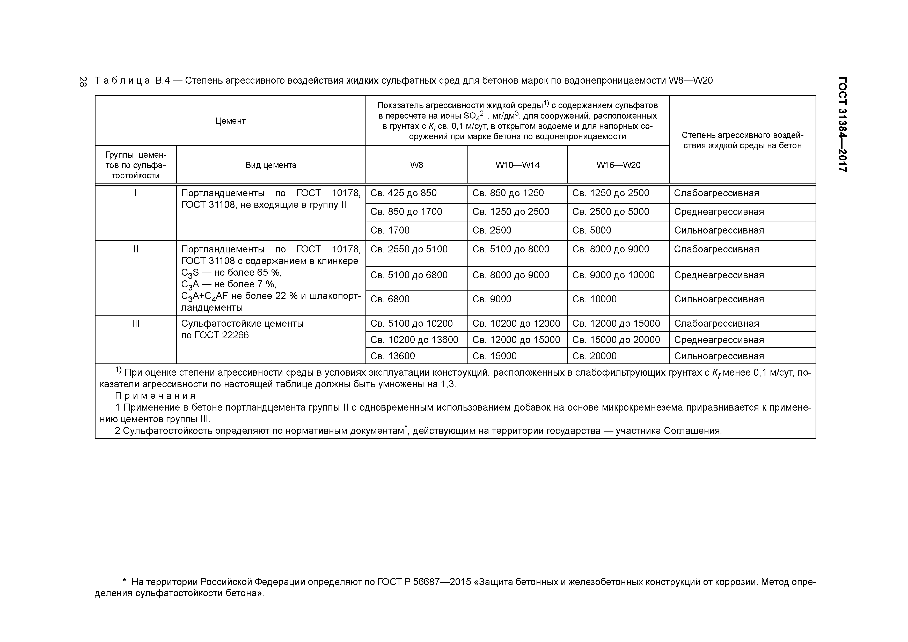 | Область применения: | Стандарт устанавливает требования, учитываемые при проектировании защиты от коррозии бетонных и железобетонных конструкций в зданиях и сооружениях, как вновь возводимых, так и реконструируемых, предназначенных для эксплуатации в агрессивных средах с температурой от минус 70 °С до плюс 50 °С. В стандарте определены технические требования к защите от коррозии бетонных и железобетонных конструкций для срока эксплуатации 50 лет. Для бетонных и железобетонных конструкций со сроком эксплуатации 100 лет и конструкций зданий и сооружений класса КС-3, имеющих повышенный уровень ответственности по ГОСТ 27751, оценка степени агрессивности повышается на один уровень. Если оценка степени агрессивности среды не может быть увеличена (например, для сильноагрессивной среды), защита от коррозии выполняется по специальному проекту. Проектирование реконструкции зданий и сооружений должно предусматривать анализ коррозионного состояния конструкций и защитных покрытий с учетом вида и степени агрессивности среды в новых условиях эксплуатации. Требования стандарта следует учитывать при разработке других нормативных документов, а также технических условий, по которым изготовляются или возводятся конструкции конкретных видов, для которых устанавливают нормируемые показатели качества, обеспечивающие технологическую и техническую эффективность, а также при разработке технологической и проектной документации на данные конструкции. Требования стандарта не распространяются на проектирование защиты бетонных и железобетонных конструкций от коррозии, вызываемой радиоактивными веществами, а также на проектирование конструкций из специальных бетонов (полимербетонов, бетонополимеров, кислото-, жаростойких бетонов и т. п.). |
