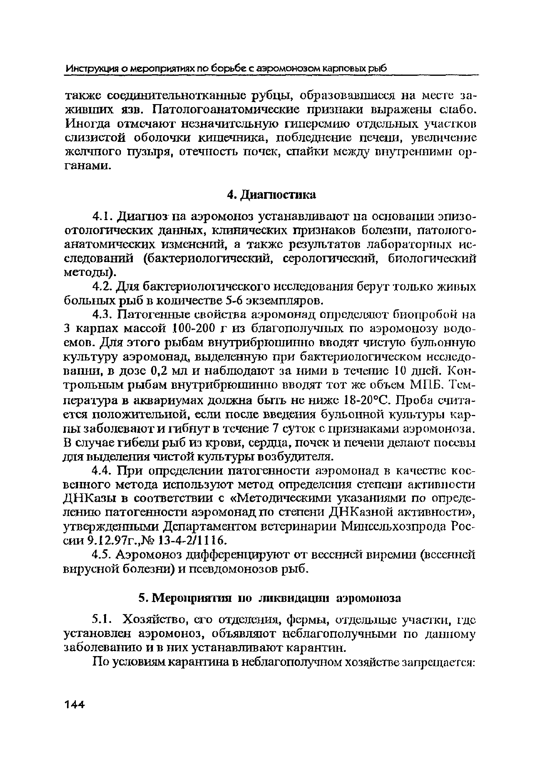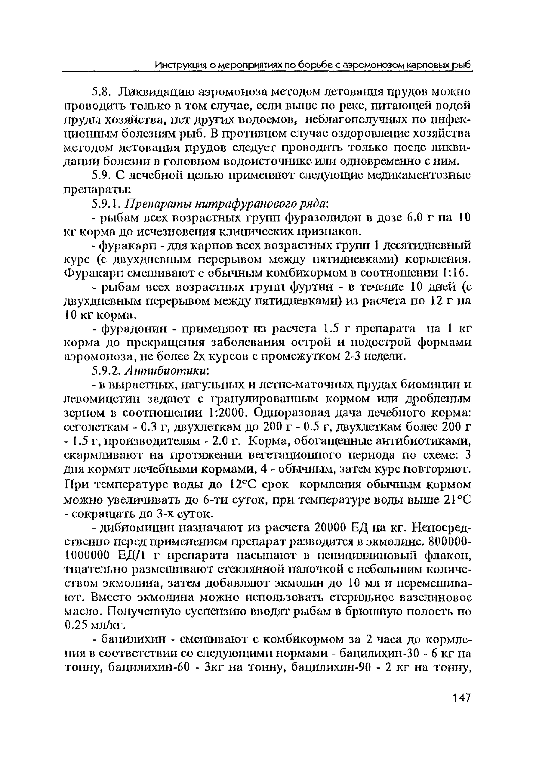 | Название рус.: | Инструкция о мероприятиях по борьбе с аэромонозом карповых рыб |