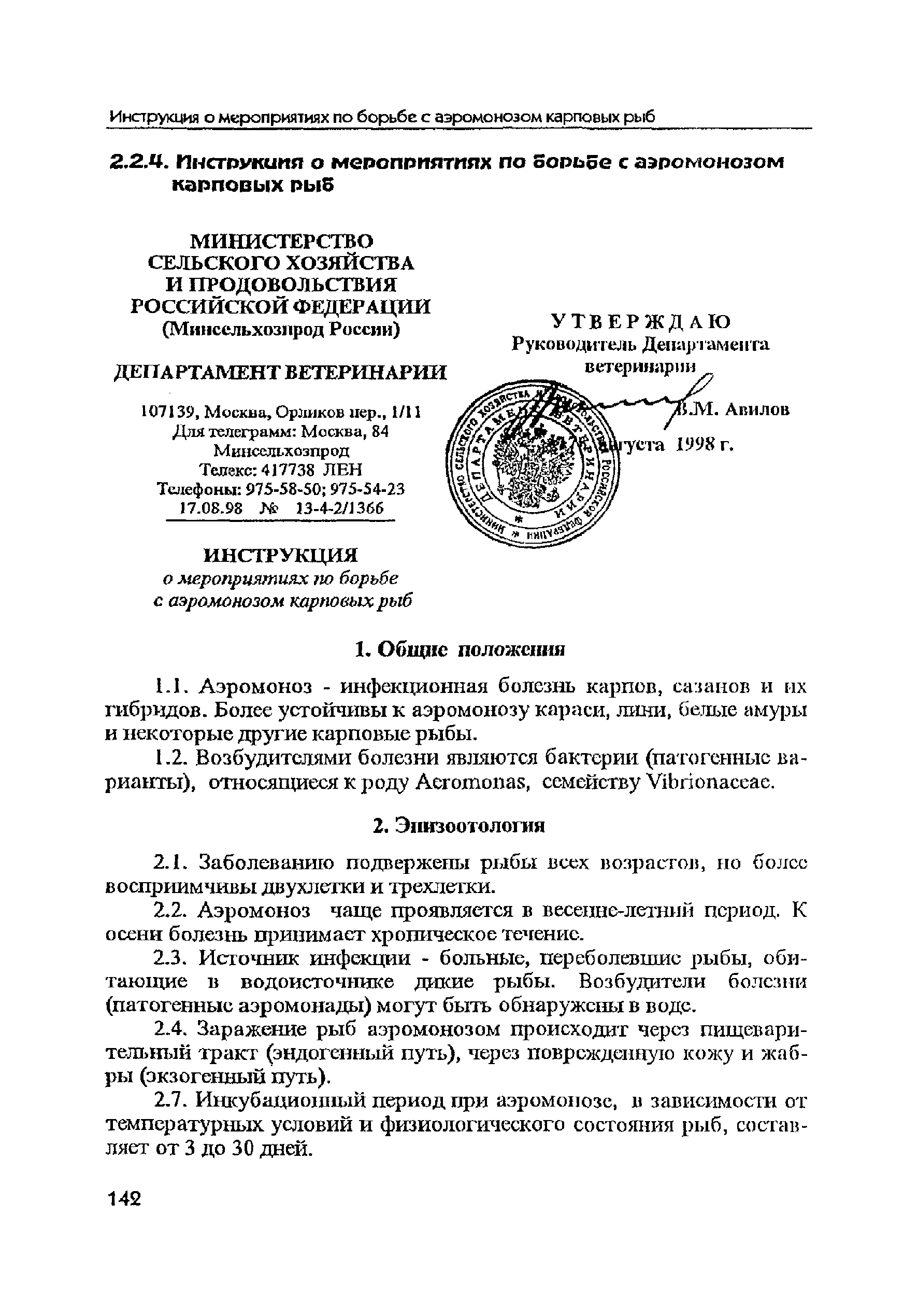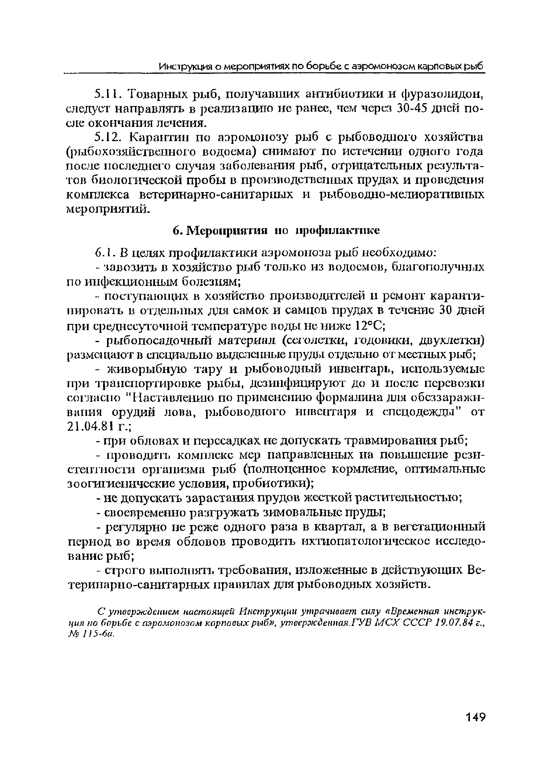 | Заменяет собой: | - «Временная инструкция по борьбе с аэромонозом карповых рыб»