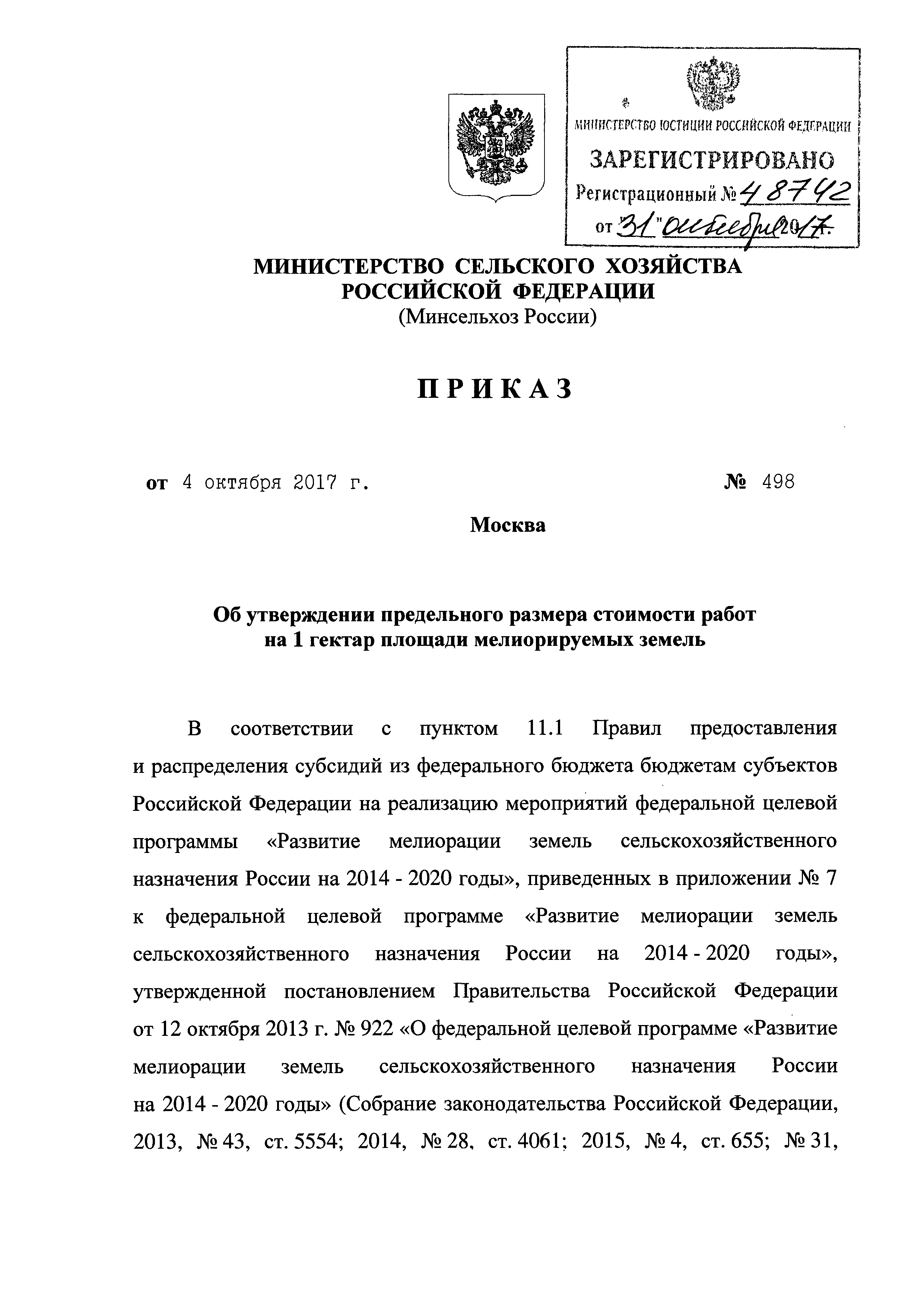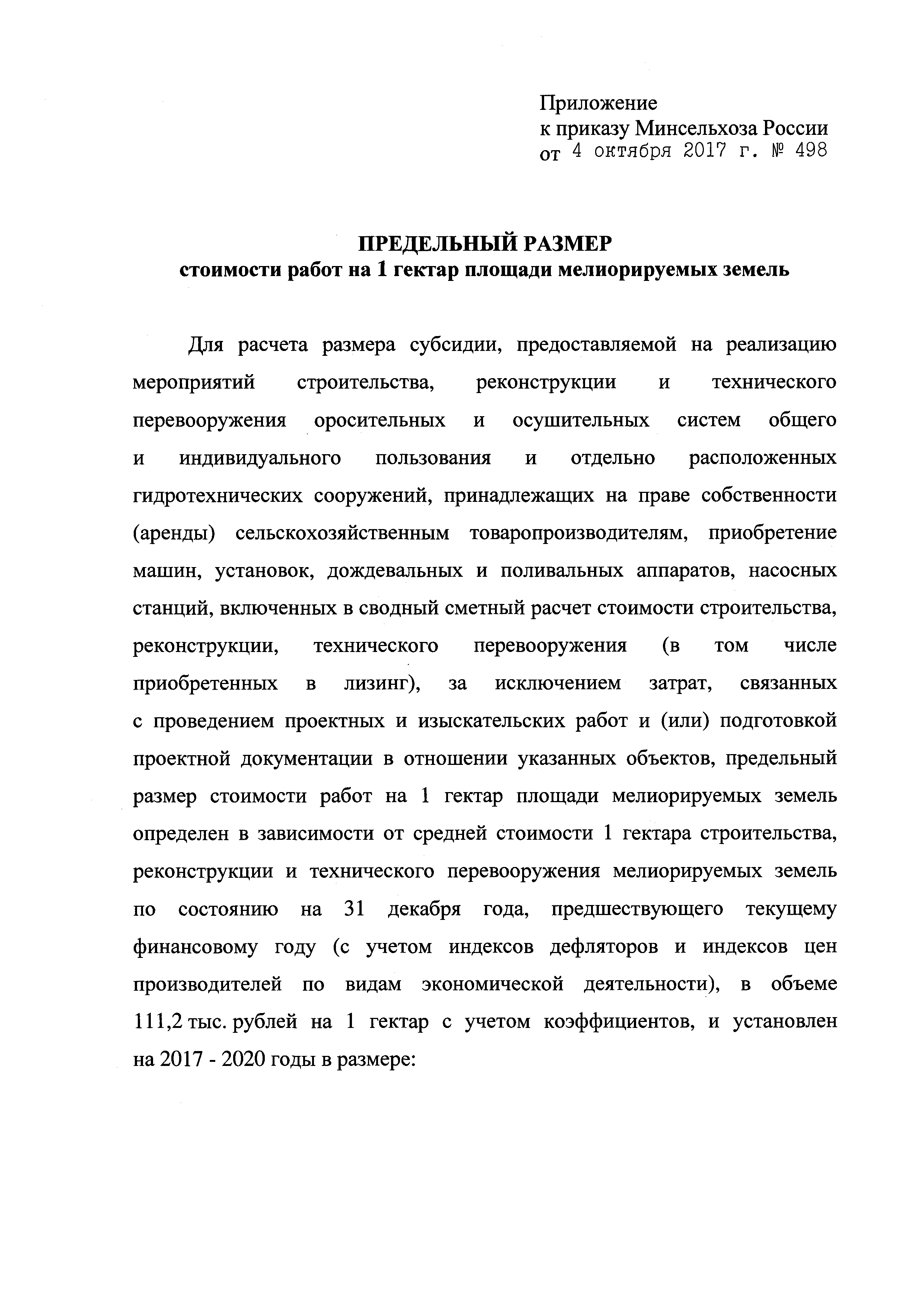 | Название рус.: | Предельный размер стоимости работ на 1 гектар площади мелиорируемых земель |