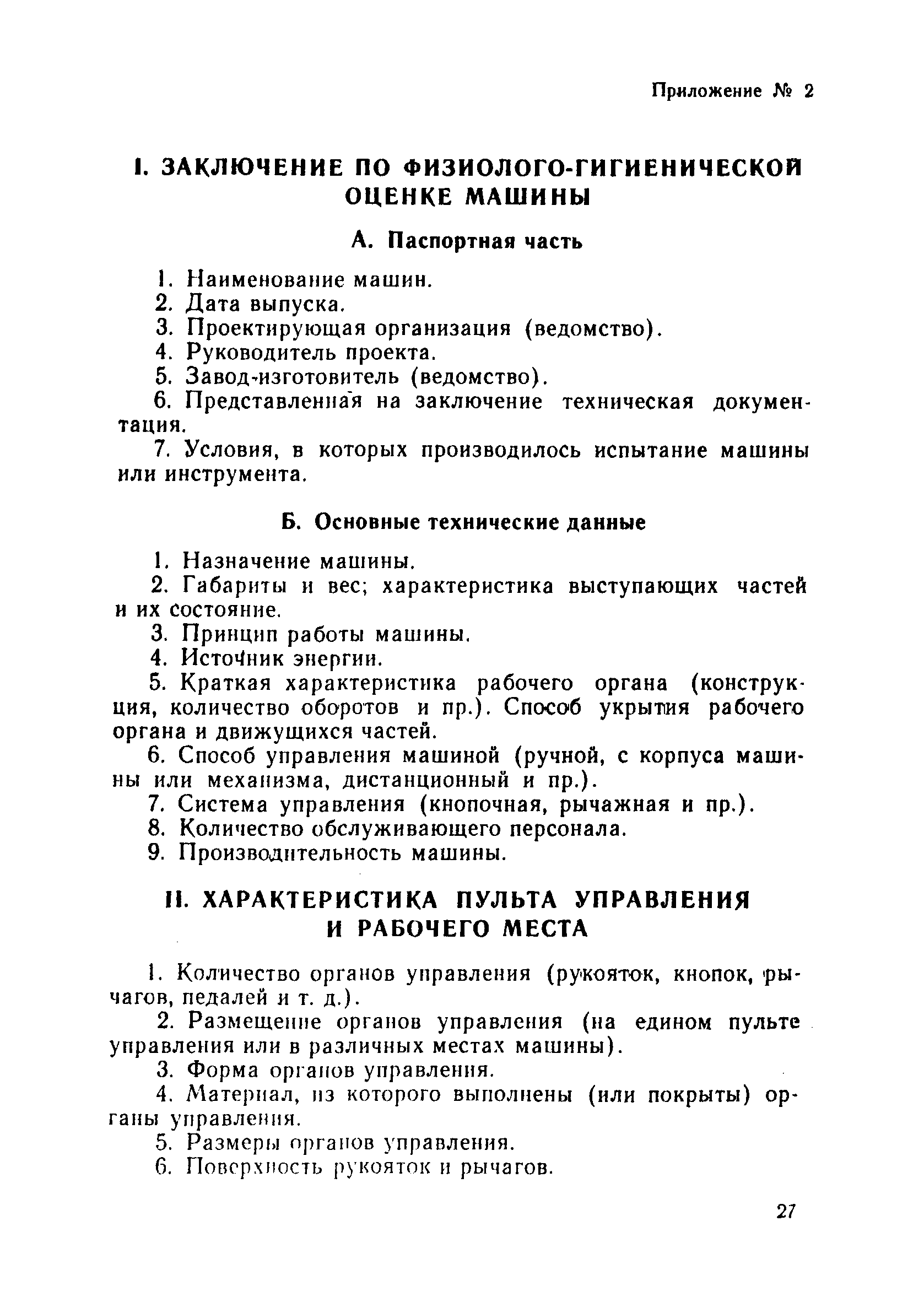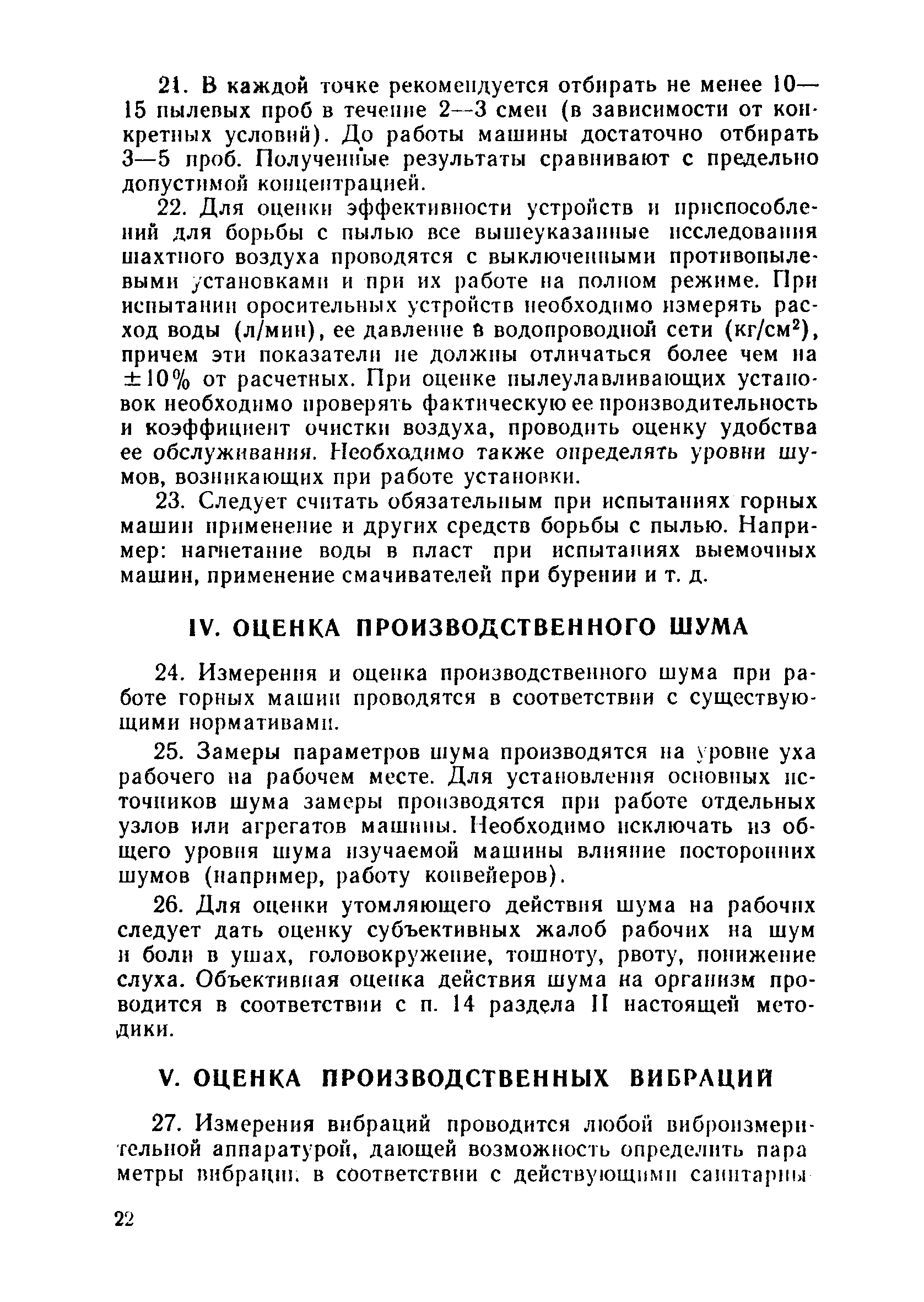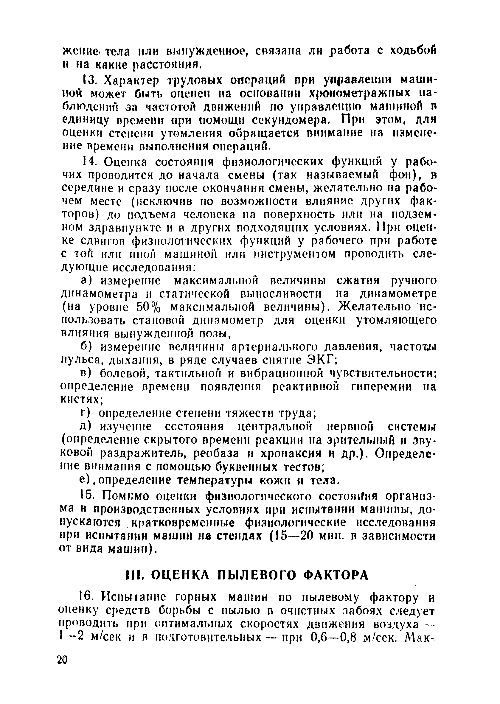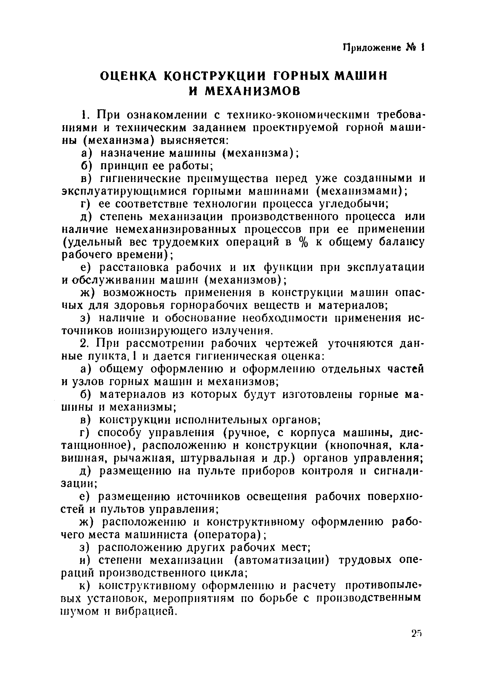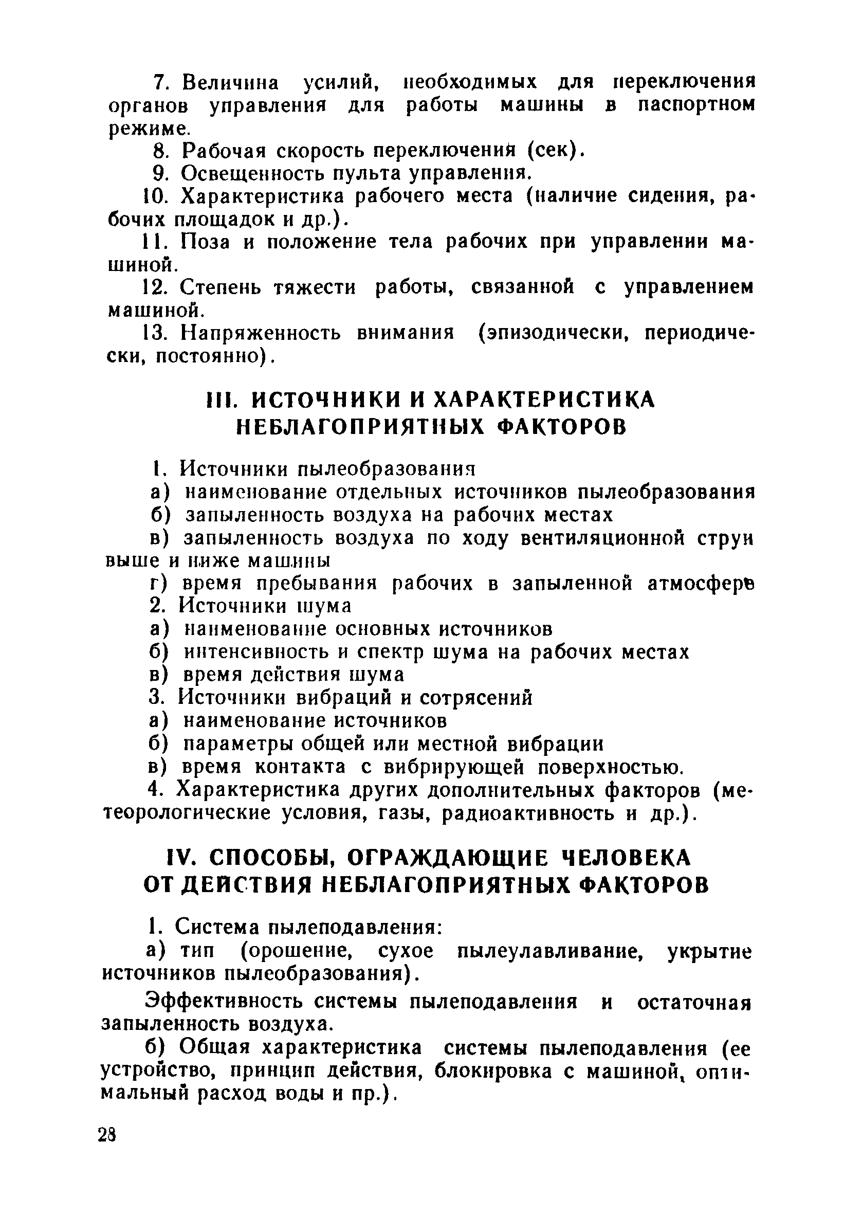 | Оглавление: | I Общие положения II Оценка конструктивных особенностей машин и управления III Оценка пылевого фактора IV Оценка производственного шума V Оценка производственных вибраций VI Характеристика освещения VII Дополнительные факторы Приложение 1. Оценка конструкции горных машин и механизмов Приложение 2. Заключение по физиолого-гигиенической оценке машины. Характеристика пульта управления и рабочего места Характеристика пульта управления и рабочего места. Источники и характеристика неблагоприятных факторов Способы, ограждающие человека от действия неблагоприятных факторов |