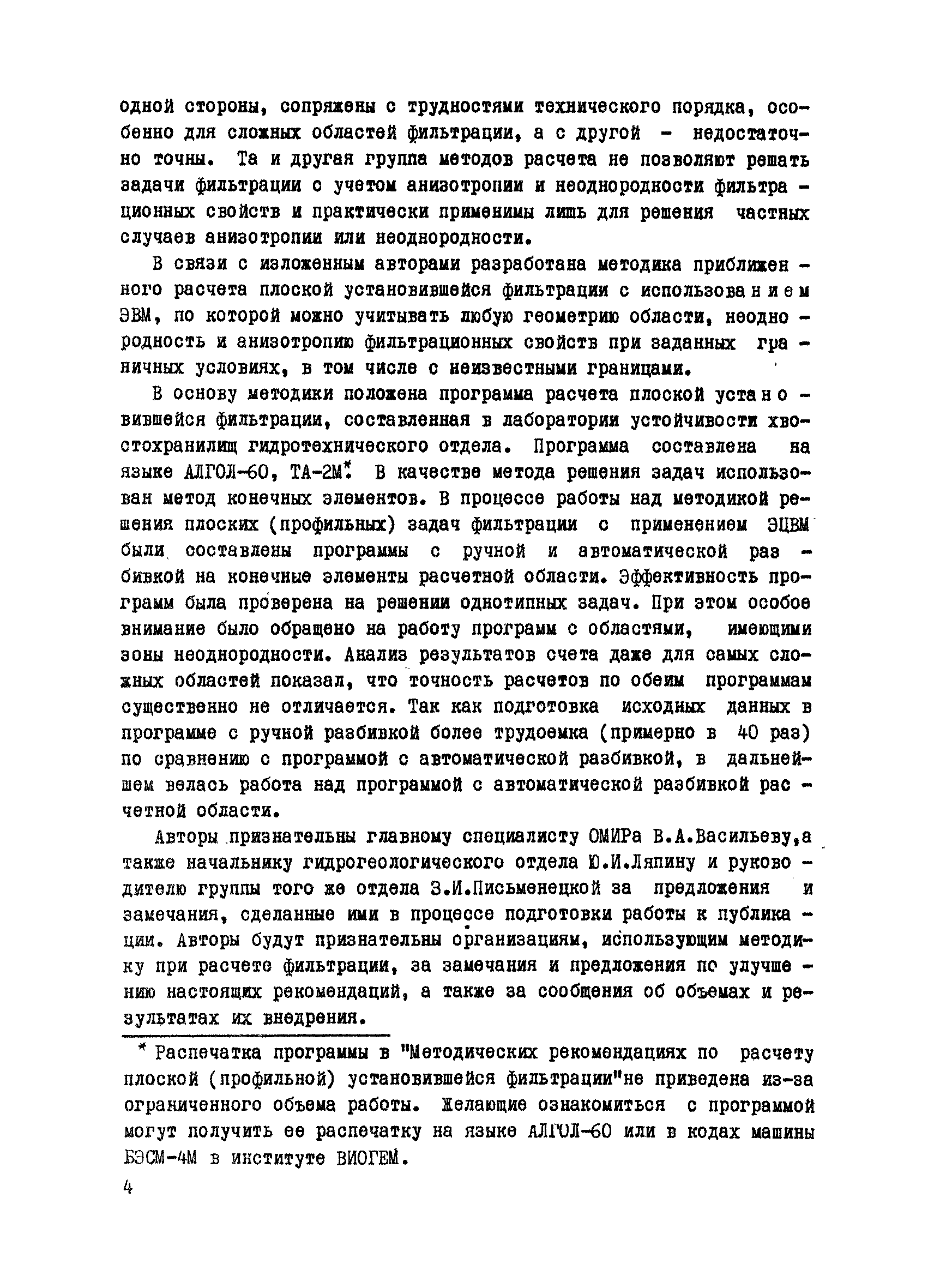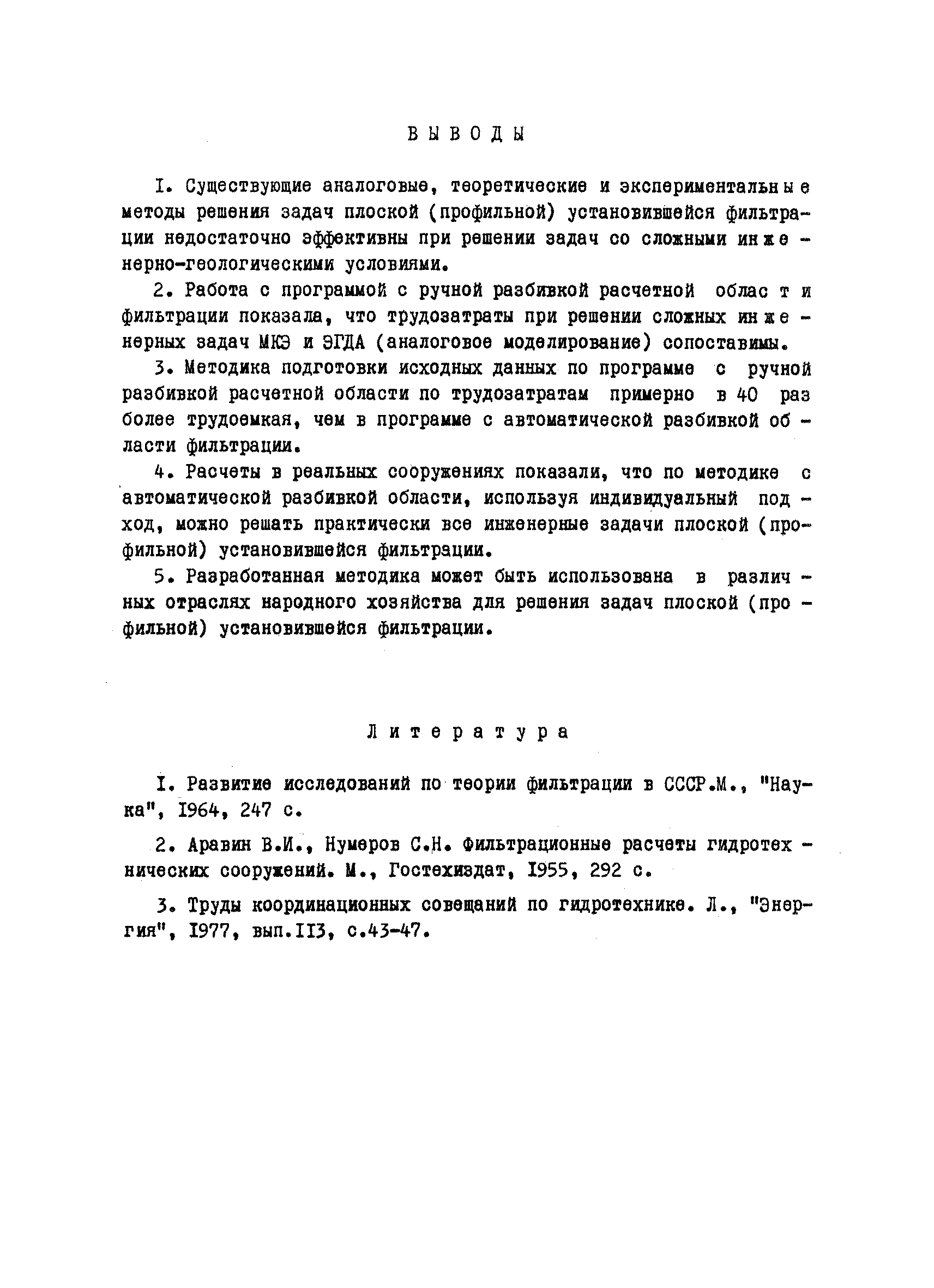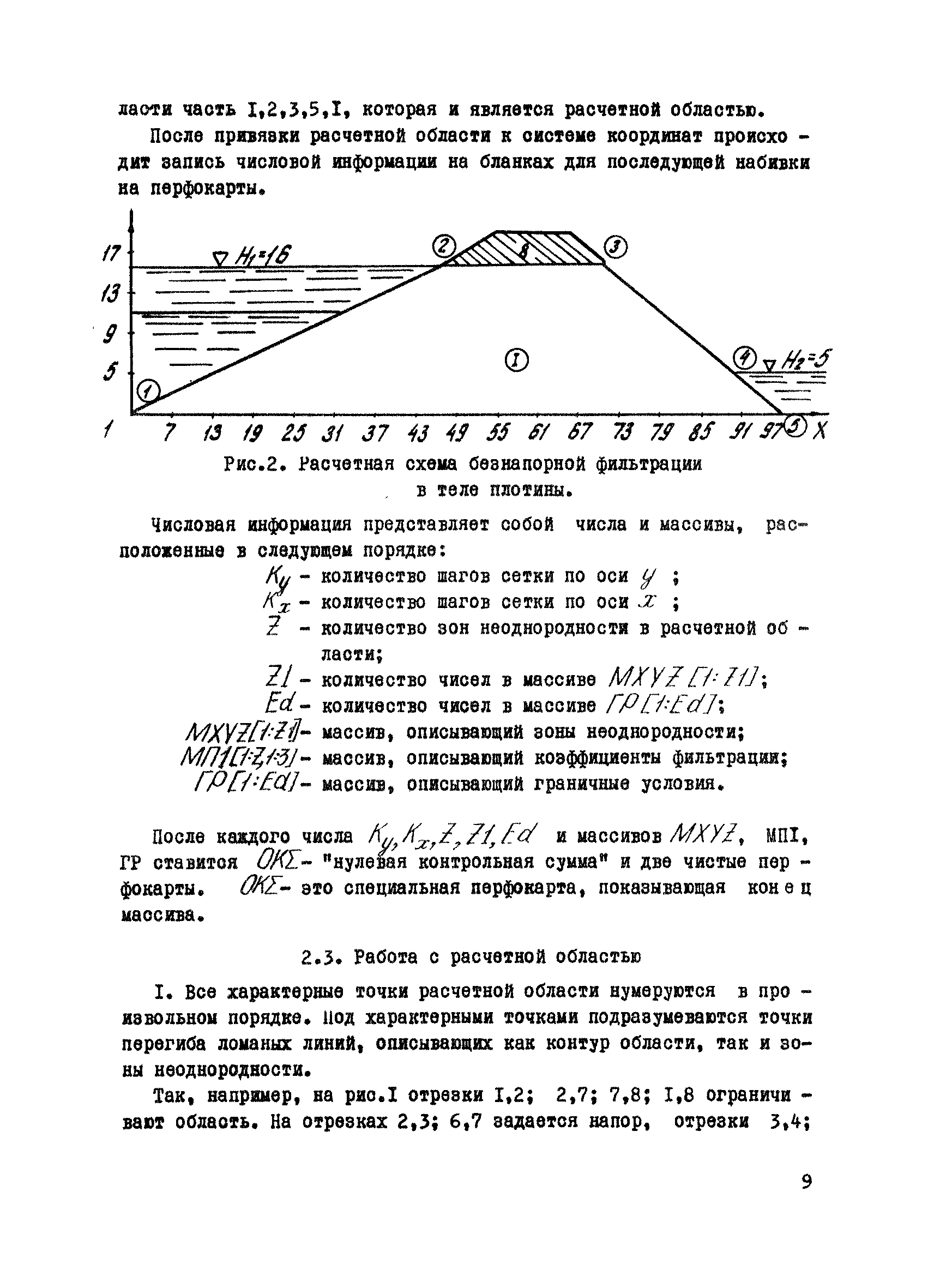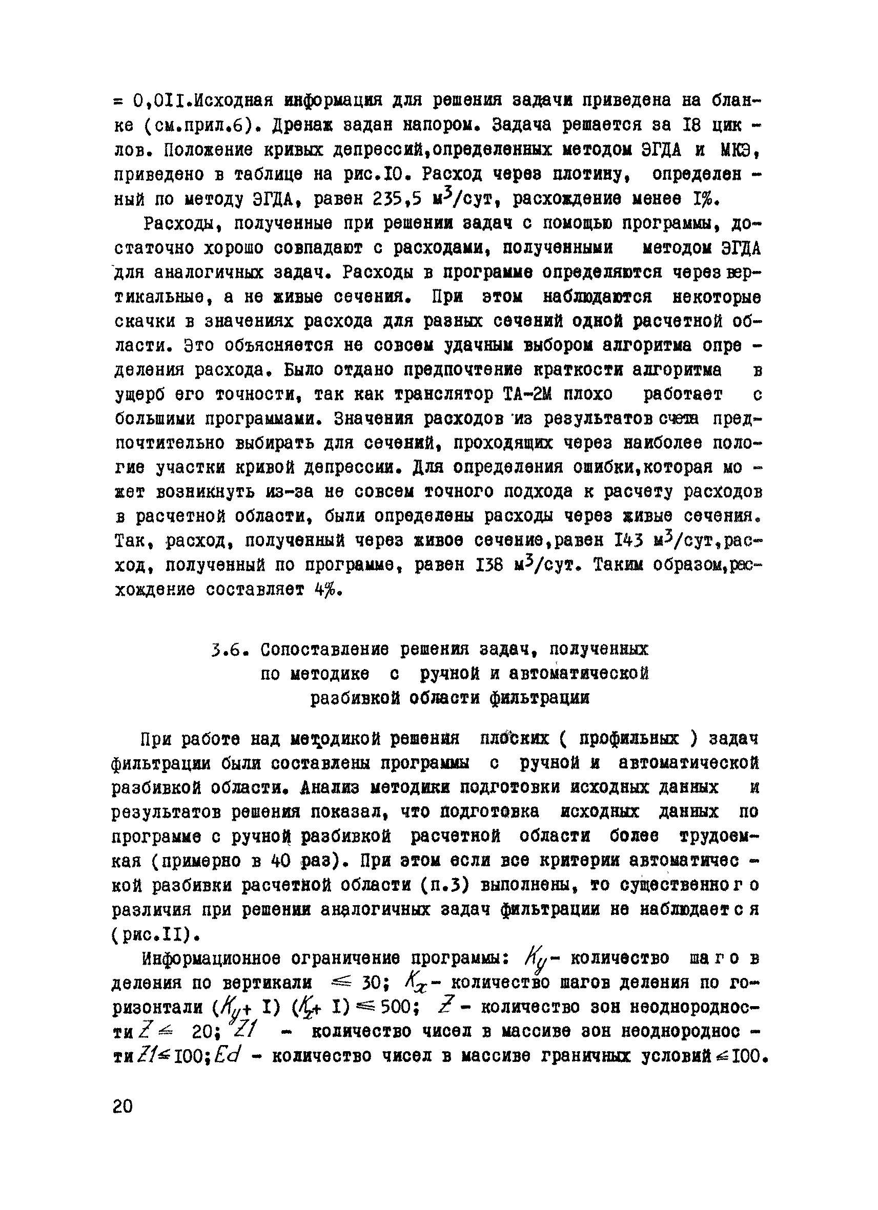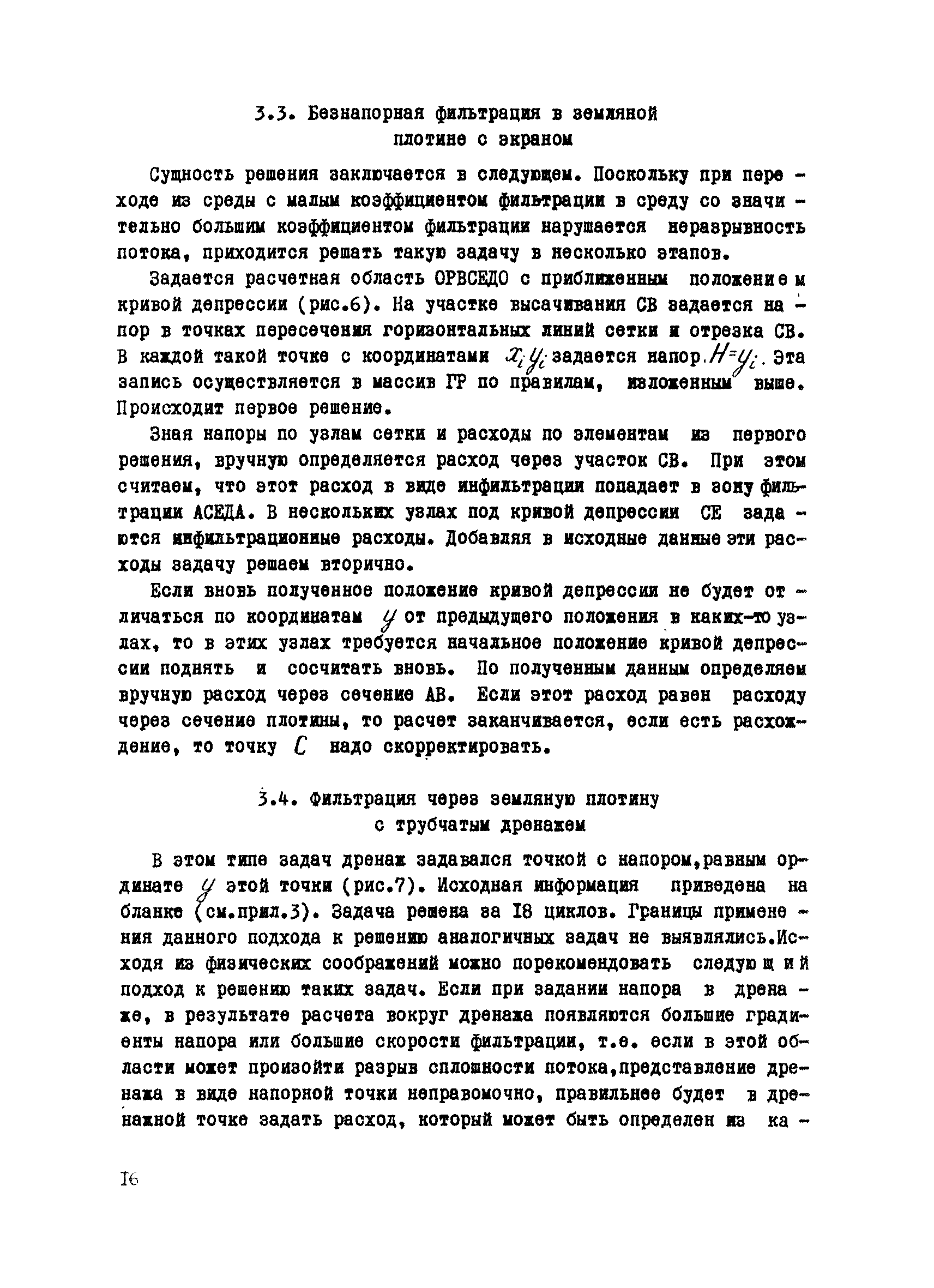 Методические рекомендации по расчету плоской (профильной) установившейся фильтрации| Статус: | справочные материалы, мп, тпр | | Название рус.: | Методические рекомендации по расчету плоской (профильной) установившейся фильтрации | | Дата добавления в базу: | 01.01.2018 | | Дата актуализации: | 01.01.2021 | | Область применения: | В рекомендациях приводится методика, позволяющая решать плоские профильные задачи фильтрации при одновременном наличии анизотропии и неоднородности фильтрационных свойств. По программе с автоматической разбивкой области, используя индивидуальный подход, можно решать практически все инженерные задачи. Рекомендации могут быть использованы специалистами, работающими в области исследования и проектирования гидротехнических сооружений. | | Оглавление: | Введение 1 Теоретические основы методики 2 Алгоритм и описание программы решения задач 2.1 Блок—схема программы 2.2 Подготовка исходной информации 2.3 Работа с расчетной областью 2.4 Подготовка числовой информации для ЭВМ 3 Примеры решения плоских профильных задач фильтрации 3.1 Фильтрация через основание бетонной плоти со шпунтом, напорная фильтрация 3.2 Фильтрация в земляной плотине с каменно-набросной призмой 3.3 Безнапорная фильтрация в земляной плотине с экраном 3.4 Фильтрация через земляную плотину с трубчатым дренажем 3.5 Фильтрация в земляной плотине с ленточным дренажем 3.6 Сопоставление решения задач, полученных по методике с ручной и автоматической разбивкой области фильтрации Выводы Литература Приложения (1 - 6) | | Разработан: | ВИОГЕМ