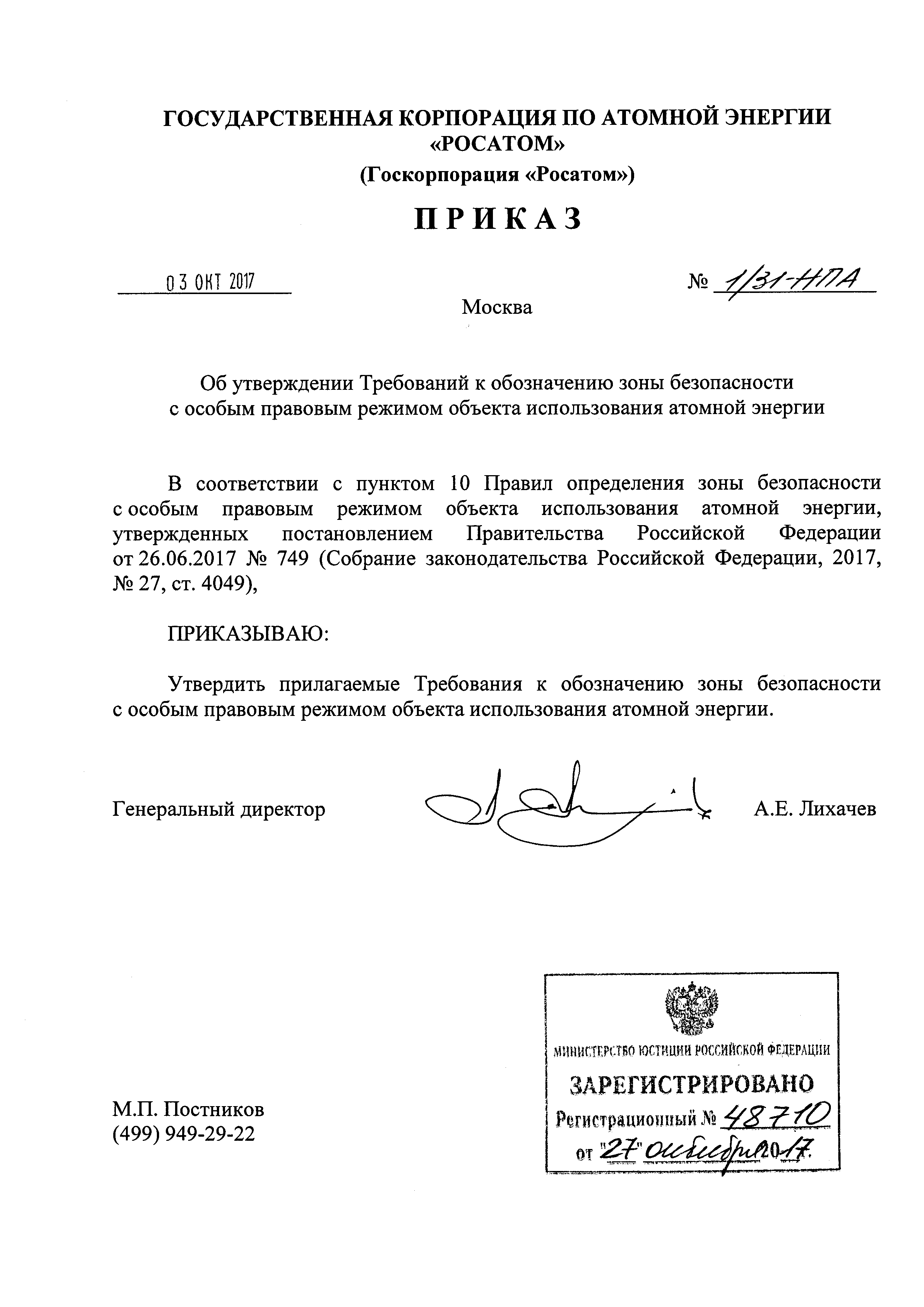| Утверждён: | 03.10.2017 Государственная корпорация по атомной энергии РОСАТОМ (1-31/НПА)