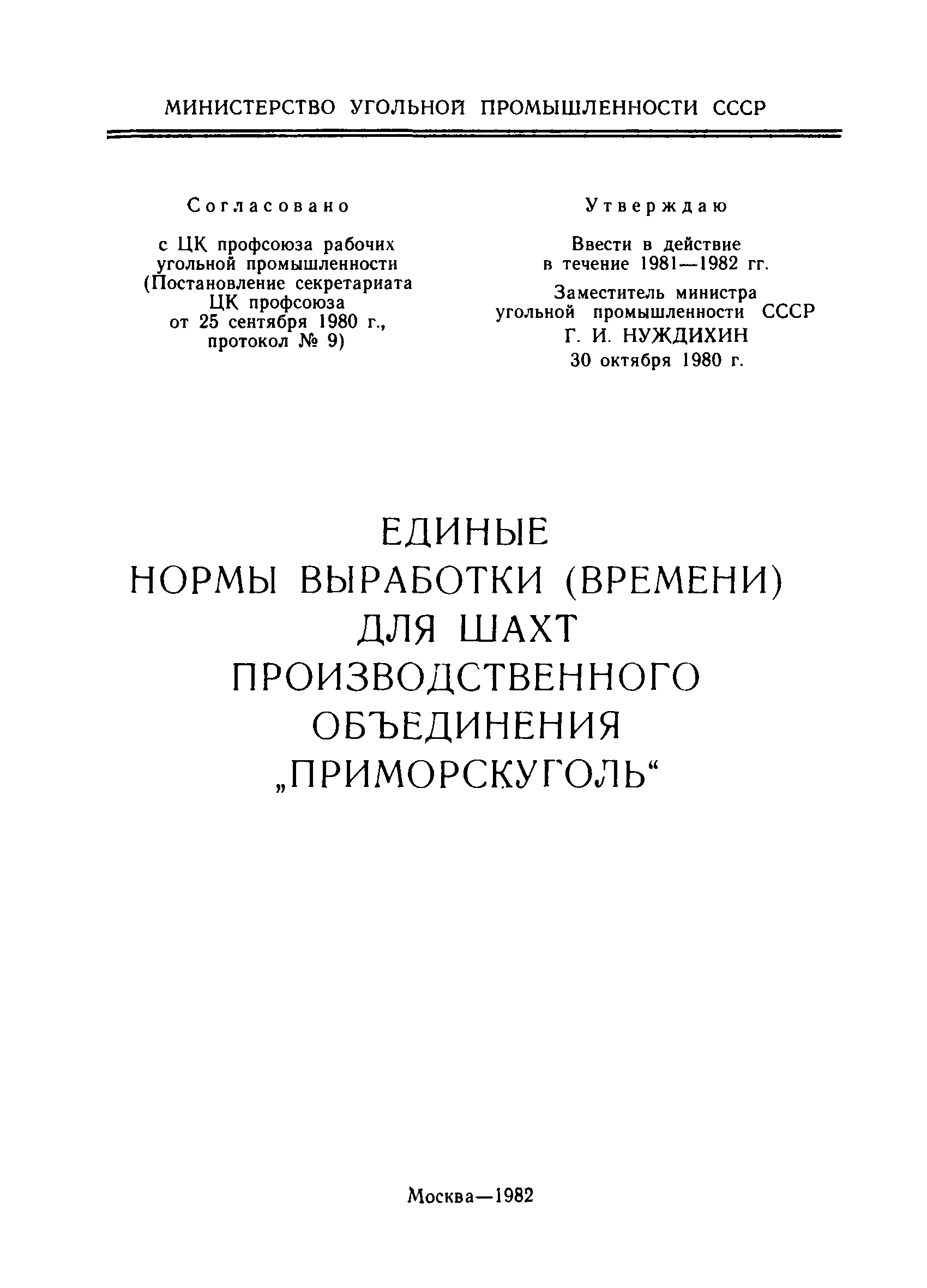 | | Принят: | 25.09.1980 ЦК профсоюза рабочих угольной промышленности (9)
