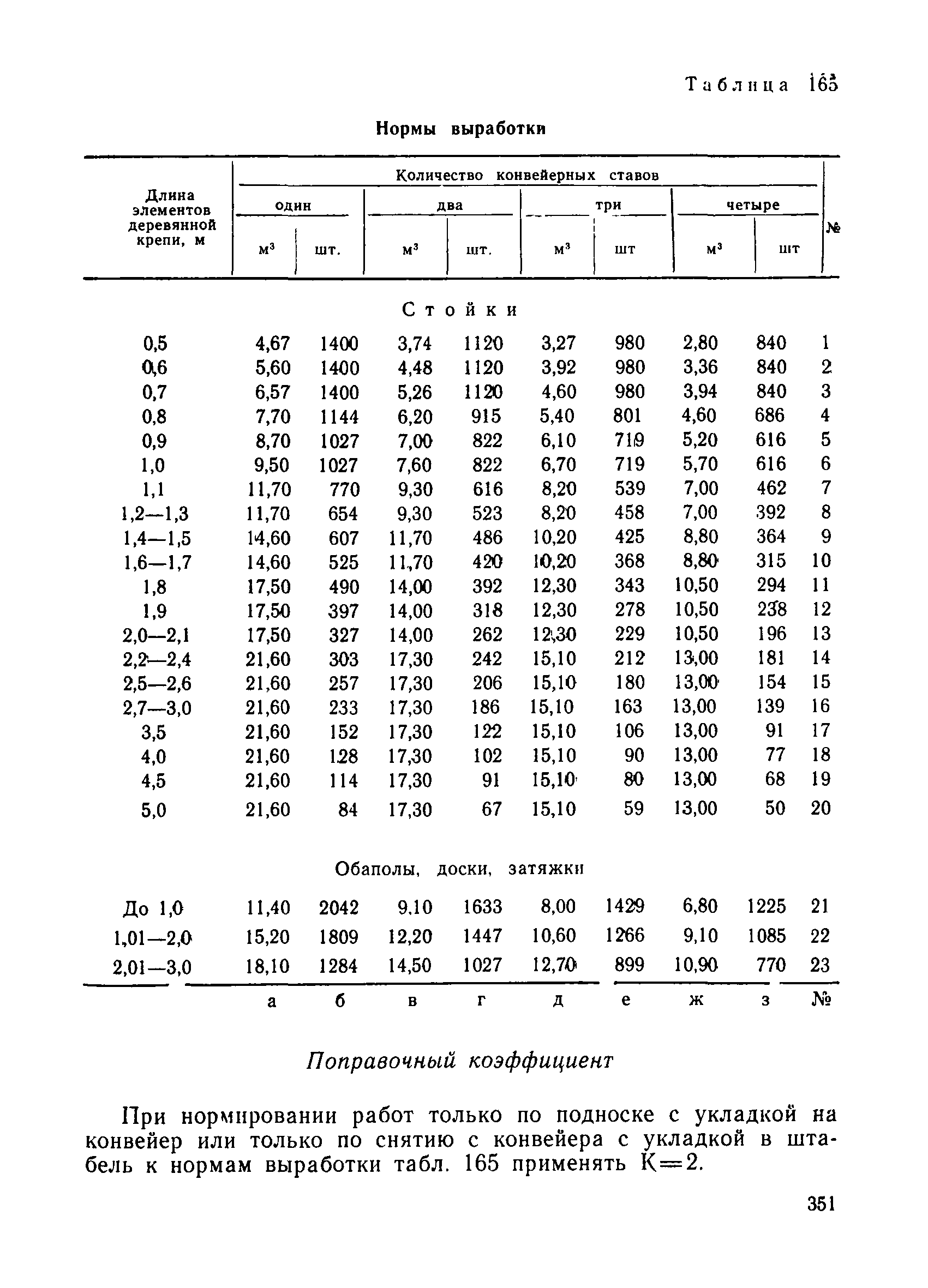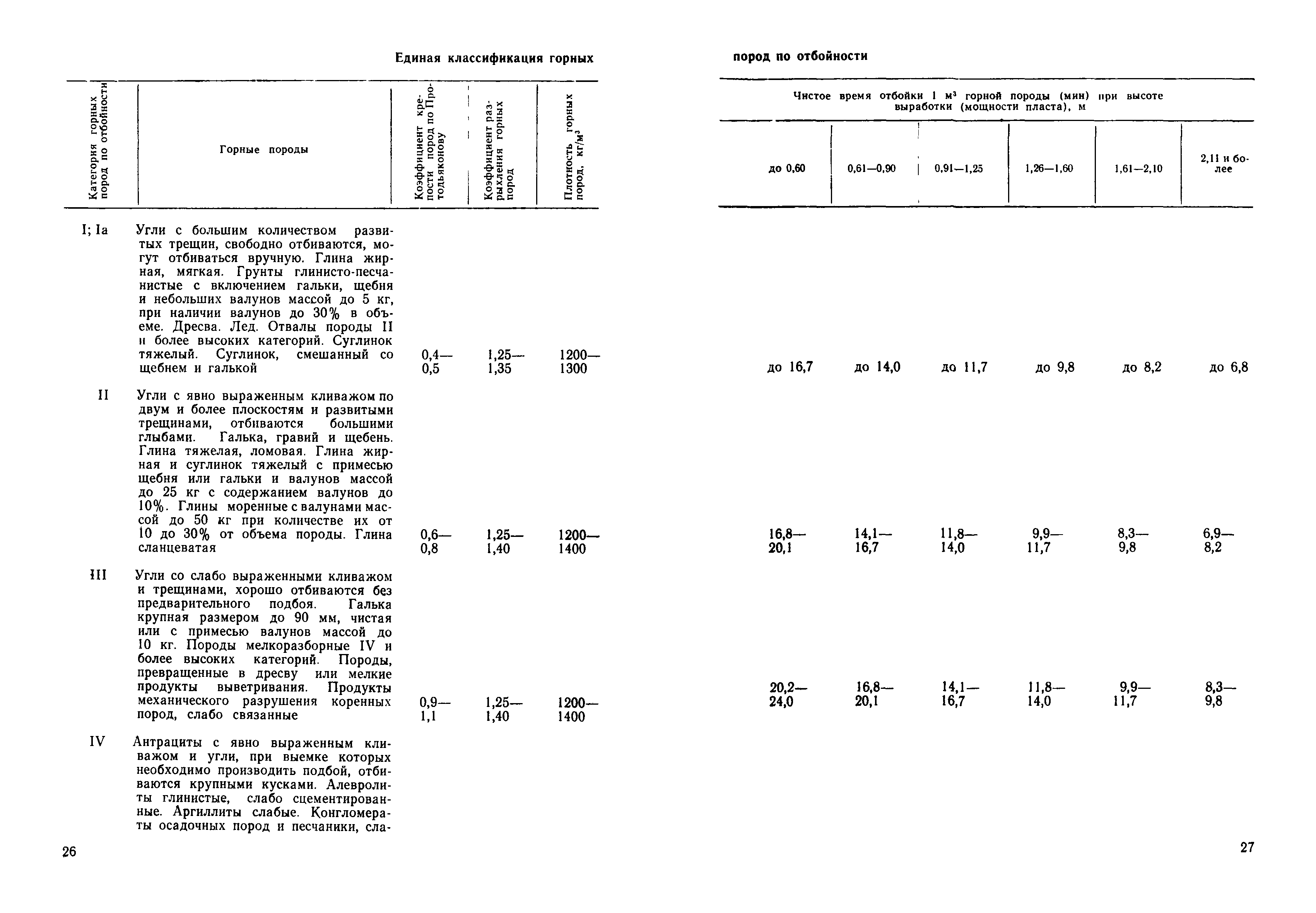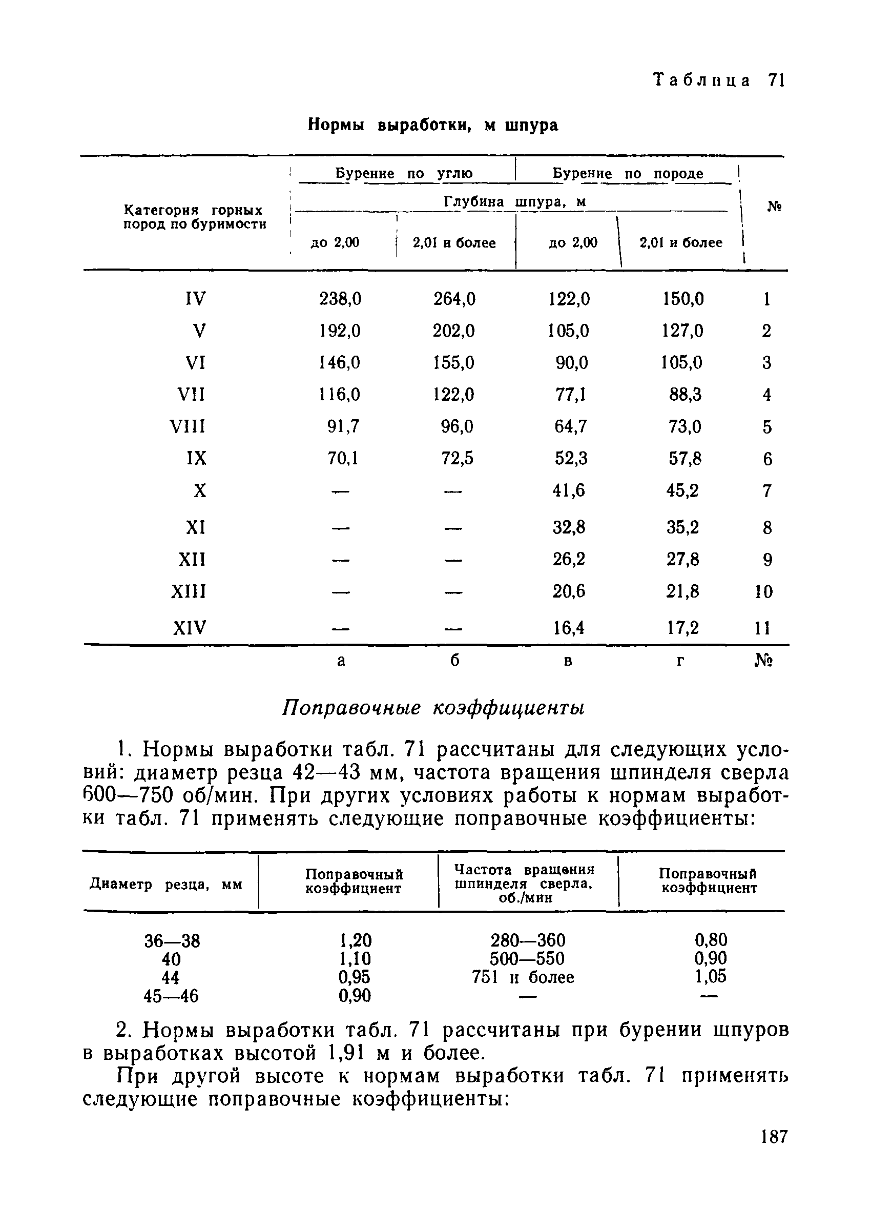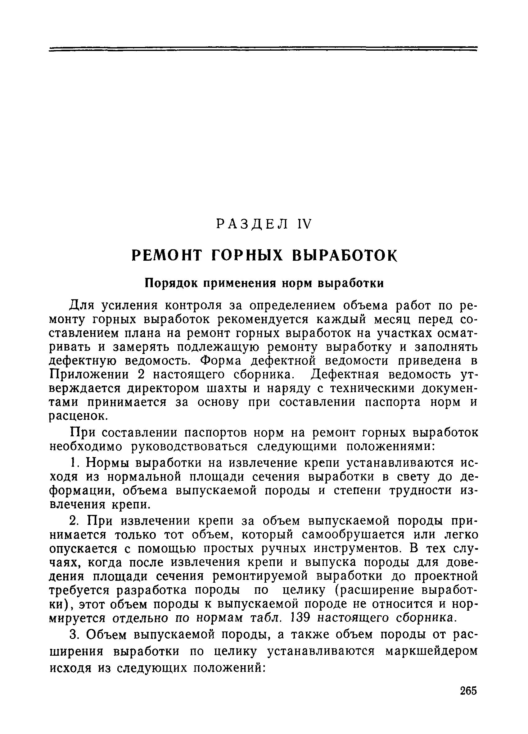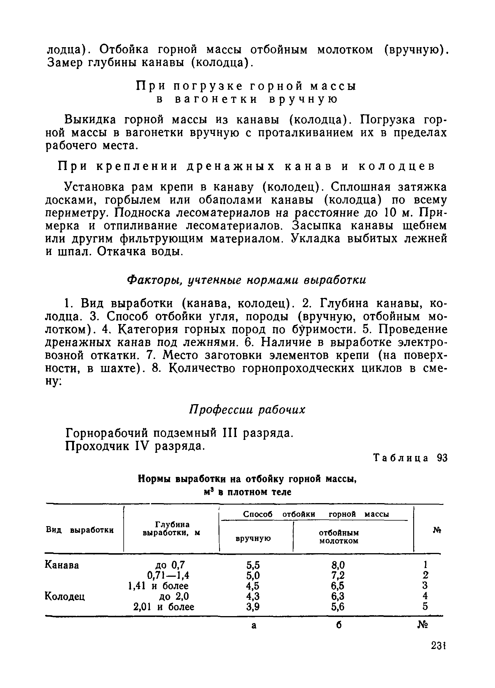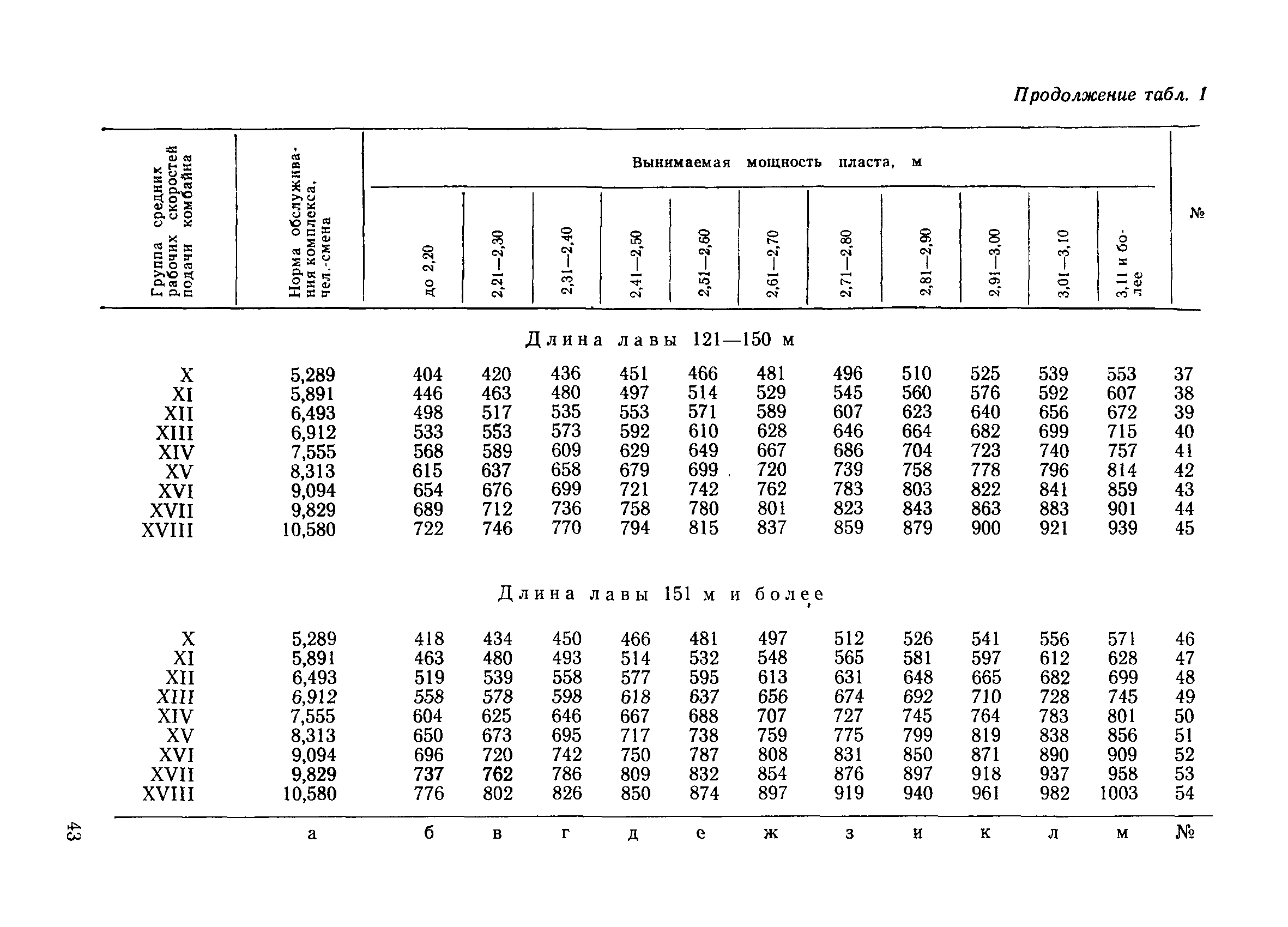 Единые нормы выработки (времени) для шахт производственного объединения "Приморскуголь"| Статус: | справочные материалы, мп, тпр | | Название рус.: | Единые нормы выработки (времени) для шахт производственного объединения "Приморскуголь" | | Дата добавления в базу: | 01.01.2018 | | Дата актуализации: | 01.01.2021 | | Область применения: | Единые нормы выработки (времени) обязательны для применения на всех действующих шахтах производственного объединения "Приморскуголь" | | Оглавление: | Общая часть Техническая часть Нормативная часть Раздел I. Очистные работы § 1. Выемка угля механизированными комплексами типа КМ-81 § 2. Выемка угля механизированными комплексами типов ОМКТ, ОКП, МК § 3. Выемка угля узкозахватными комбайнами типов КШ и ГШ-68 § 4. Оформление забоя после выемки угля узкозахватными комбайнами типов КШ и ГШ-68 § 5. Выемка угля узкозахватными комбайнами 1К-101, 2К-52, МК-67, БК-52 § 6. Оформление забоя после выемки угля узкозахватными комбайнами 1K-101, 2К-52, МК-67 и БК-52 § 7. Выемка угля комбайнами типов УКР, «Темп», КТ, А-70 в лавах на пластах наклонного и крутого падения § 8. Спуск (перегон) комбайнов типов УКР, «Темп», КТ, А-70 в лавах на пластах наклонного и крутого падения с передвижкой крана-балки § 9. Передвижка предохранительной лебедки 1ЛГКН § 10. Оформление забоя после выемки угля комбайнами типов УКР, «Темп», КТ, А-70 в лавах на пластах наклонного падения § 11. Выемка угля в лавах комбайном «Урал-2М» и подготовка его к выемке следующей полосы угля § 12. Оформление забоя после выемки угля комбайном «Урал-2М» § 13. Передвижка гидрофицированной посадочной крепи «Спутник» § 14. Выемка угля в лавах, оборудованных комбайнами К-56М A. Выемка угля Б. Разворот комбайна на пластах пологого падения B. Перегон комбайна § 15. Выемка угля проходческими комбайнами в очистных забоях на пластах пологого падения § 16. Навалоотбойка, навалка угля § 17. Бурение шпуров по углю ручными электросверлами (пневмосверлами) в лавах и камерах § 18. Уборка угля в очистных забоях с помощью скреперной установки § 19. Передвижка скреперной установки § 20. Выемка угля отбойными молотками § 21. Выемка угля с применением ВМ в очистных забоях на пластах крутого падения § 22. Крепление очистных забоев на пластах пологого и наклонного падения металлическими (клиновыми и гидравлическими) стойками § 23. Крепление очистных забоев деревянной крепью § 24. Возведение за комбайном временной деревянной крепи, предусмотренной паспортом крепления § 25. Навеска и снятие металлических шарнирных верхняков § 26. Затяжка кровли, почвы и забоя при креплении § 27. Передвижка специальной крепи типа ОКС на сопряжениях лав со штреками § 28. Установка рам на сопряжениях лав с прилегающими выработками § 29. Выбивка и извлечение металлических (клиновых и гидравлических) стоек в лавах на пластах пологого и наклонного падения при посадке кровли на металлическую органную крепь § 30. Возведение деревянной органной крепи § 31. Кладка и переноска деревянных костров § 32. Установка распорной крепи в очистных забоях § 33. Посадка кровли при помощи лебедки § 34. Бурение шпуров в стойках при посадке кровли с помощью малогабаритных патронов § 35. Передвижка перегружателей гидродомкратом при помощи упорной стойки § 36. Переноска рештаков (листов) в лавах на пластах пологого и наклонного падения § 37. Переноска деревянных рештаков (откосов) в лавах на пластах круто