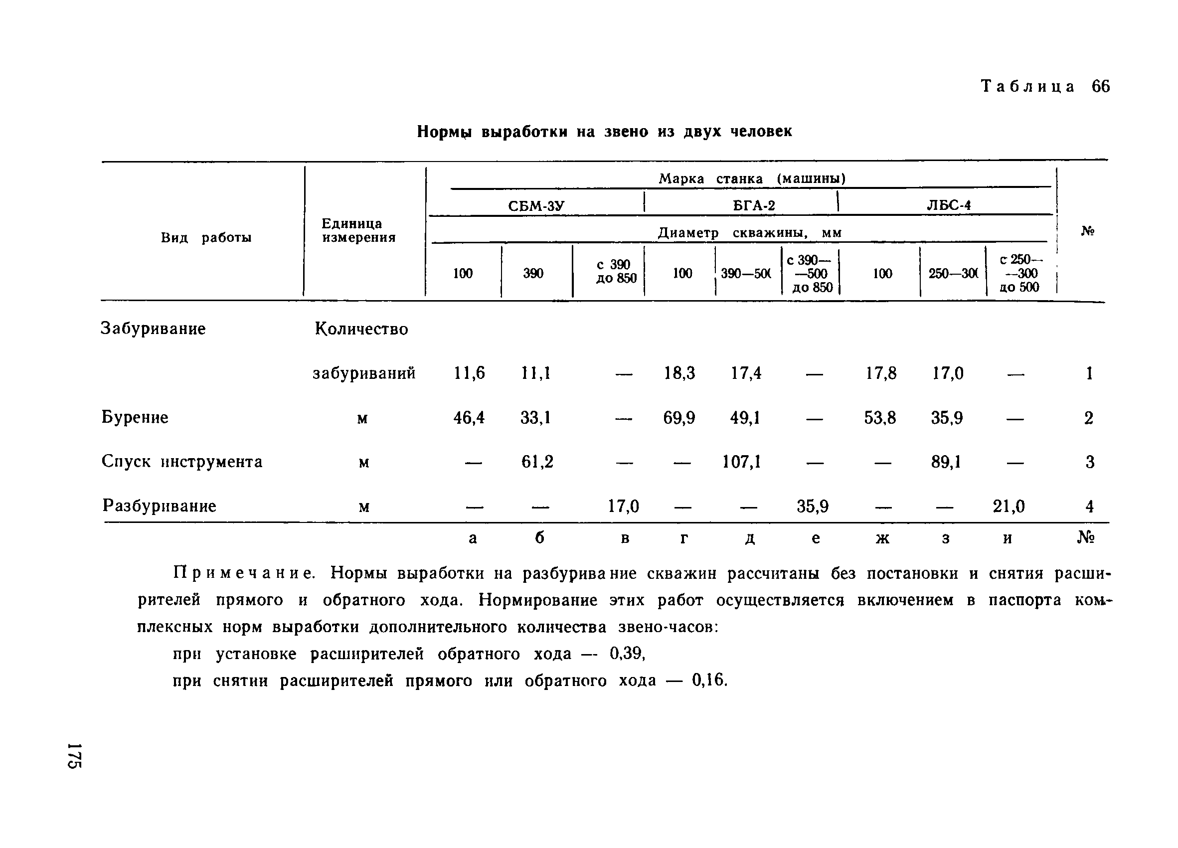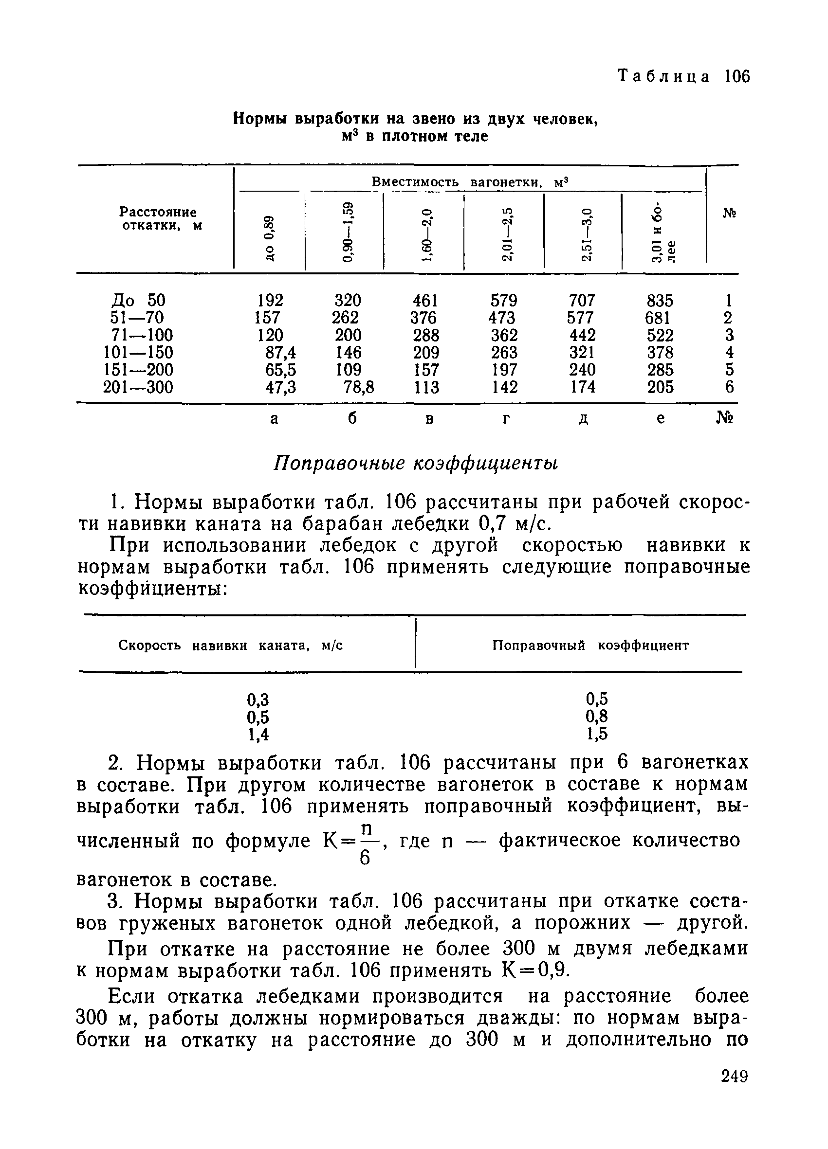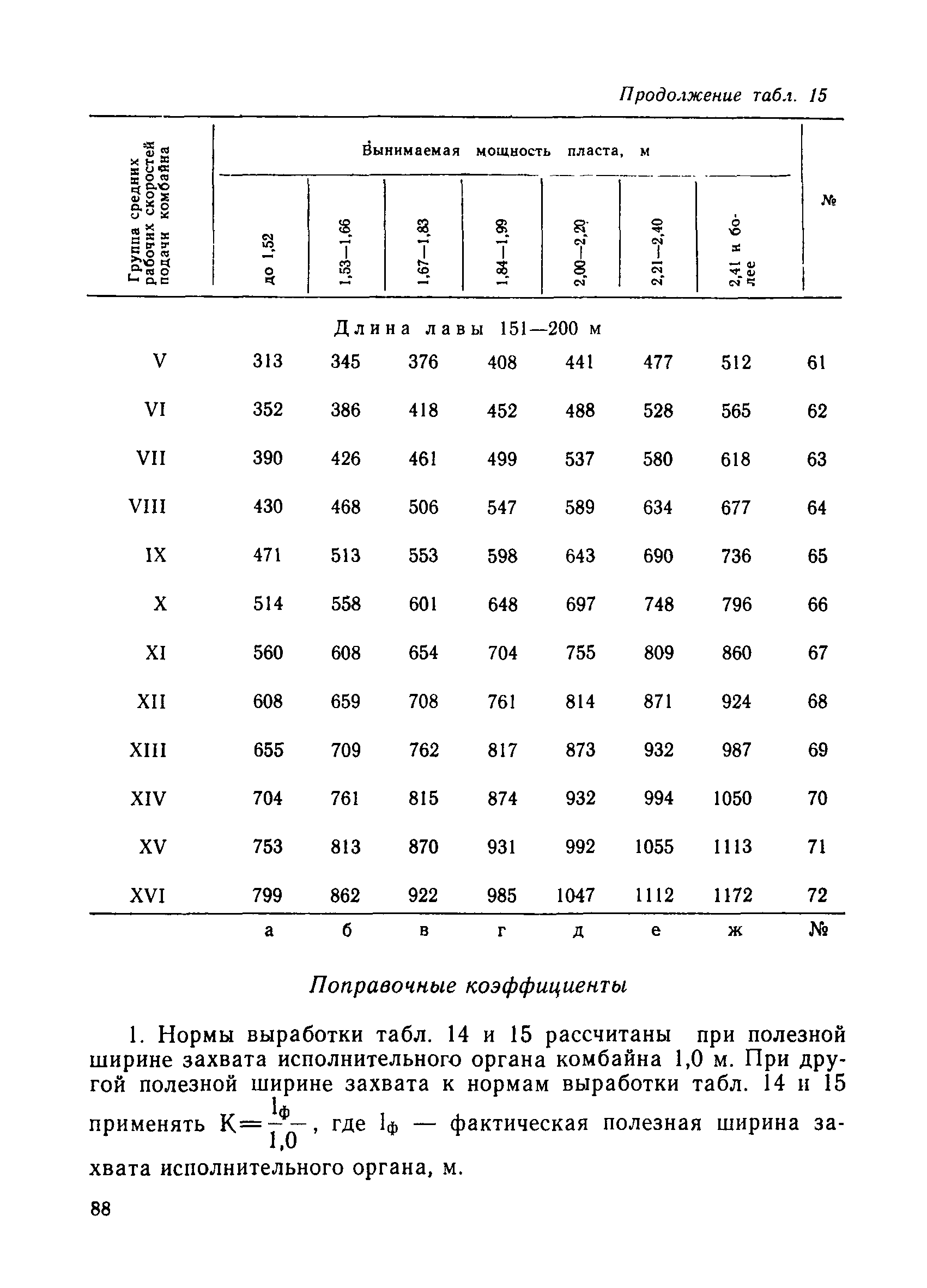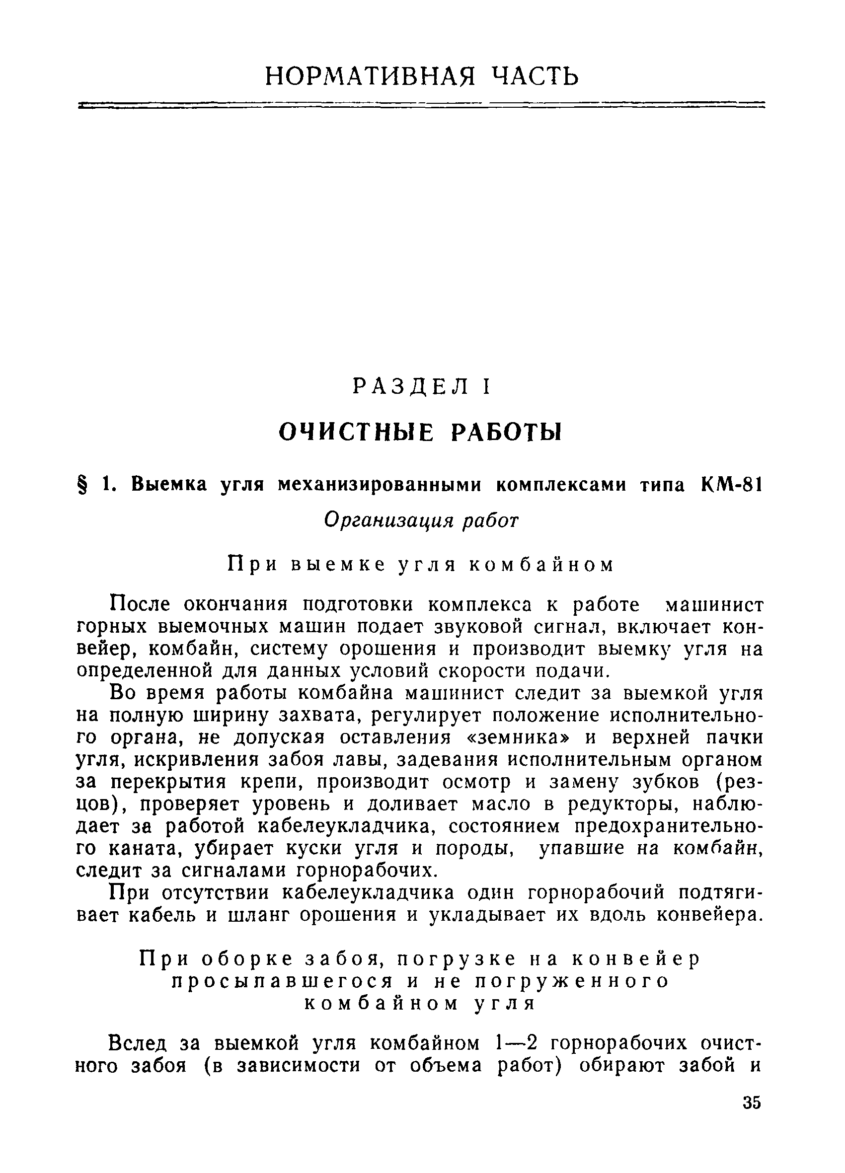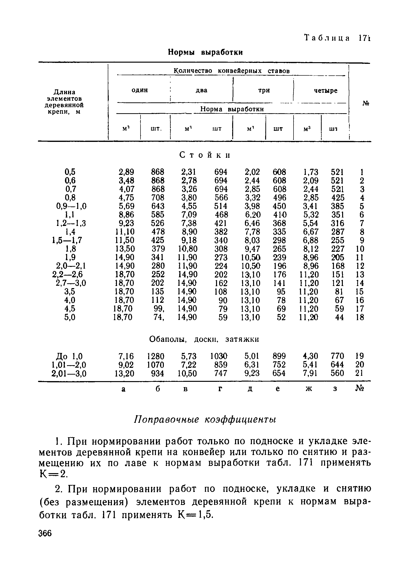 Единые нормы выработки (времени) для шахт производственного объединения "Приморскуголь"| Статус: | справочные материалы, мп, тпр | | Название рус.: | Единые нормы выработки (времени) для шахт производственного объединения "Приморскуголь" | | Дата добавления в базу: | 01.01.2018 | | Дата актуализации: | 01.01.2021 | | Область применения: | Единые нормы выработки (времени) обязательны для применения на всех действующих шахтах производственного объединения "Приморскуголь" | | Оглавление: | Общая часть Техническая часть Нормативная часть Раздел I. Очистные работы § 1. Выемка угля механизированными комплексами типа КМ-81 § 2. Выемка угля механизированными комплексами типов ОМКТ, ОКП, МК § 3. Выемка угля узкозахватными комбайнами типов КШ и ГШ-68 § 4. Оформление забоя после выемки угля узкозахватными комбайнами типов КШ и ГШ-68 § 5. Выемка угля узкозахватными комбайнами 1К-101, 2К-52, МК-67, БК-52 § 6. Оформление забоя после выемки угля узкозахватными комбайнами 1K-101, 2К-52, МК-67 и БК-52 § 7. Выемка угля комбайнами типов УКР, «Темп», КТ, А-70 в лавах на пластах наклонного и крутого падения § 8. Спуск (перегон) комбайнов типов УКР, «Темп», КТ, А-70 в лавах на пластах наклонного и крутого падения с передвижкой крана-балки § 9. Передвижка предохранительной лебедки 1ЛГКН § 10. Оформление забоя после выемки угля комбайнами типов УКР, «Темп», КТ, А-70 в лавах на пластах наклонного падения § 11. Выемка угля в лавах комбайном «Урал-2М» и подготовка его к выемке следующей полосы угля § 12. Оформление забоя после выемки угля комбайном «Урал-2М» § 13. Передвижка гидрофицированной посадочной крепи «Спутник» § 14. Выемка угля в лавах, оборудованных комбайнами К-56М A. Выемка угля Б. Разворот комбайна на пластах пологого падения B. Перегон комбайна § 15. Выемка угля проходческими комбайнами в очистных забоях на пластах пологого падения § 16. Навалоотбойка, навалка угля § 17. Бурение шпуров по углю ручными электросверлами (пневмосверлами) в лавах и камерах § 18. Уборка угля в очистных забоях с помощью скреперной установки § 19. Передвижка скреперной установки § 20. Выемка угля отбойными молотками § 21. Выемка угля с применением ВМ в очистных забоях на пластах крутого падения § 22. Крепление очистных забоев на пластах пологого и наклонного падения металлическими (клиновыми и гидравлическими) стойками § 23. Крепление очистных забоев деревянной крепью § 24. Возведение за комбайном временной деревянной крепи, предусмотренной паспортом крепления § 25. Навеска и снятие металлических шарнирных верхняков § 26. Затяжка кровли, почвы и забоя при креплении § 27. Передвижка специальной крепи типа ОКС на сопряжениях лав со штреками § 28. Установка рам на сопряжениях лав с прилегающими выработками § 29. Выбивка и извлечение металлических (клиновых и гидравлических) стоек в лавах на пластах пологого и наклонного падения при посадке кровли на металлическую органную крепь § 30. Возведение деревянной органной крепи § 31. Кладка и переноска деревянных костров § 32. Установка распорной крепи в очистных забоях § 33. Посадка кровли при помощи лебедки § 34. Бурение шпуров в стойках при посадке кровли с помощью малогабаритных патронов § 35. Передвижка перегружателей гидродомкратом при помощи упорной стойки § 36. Переноска рештаков (листов) в лавах на пластах пологого и наклонного падения § 37. Переноска деревянных рештаков (откосов) в лавах на пластах круто