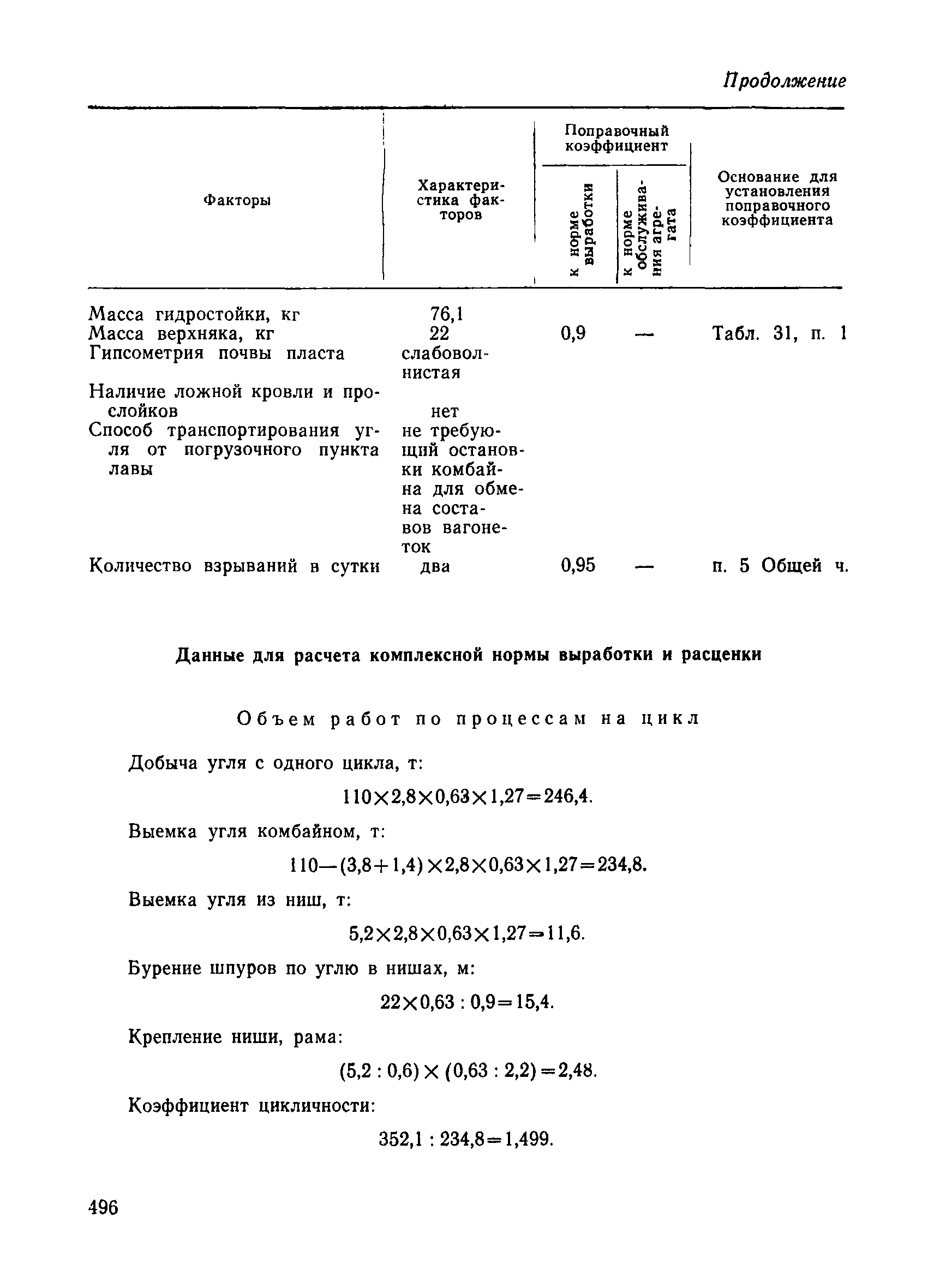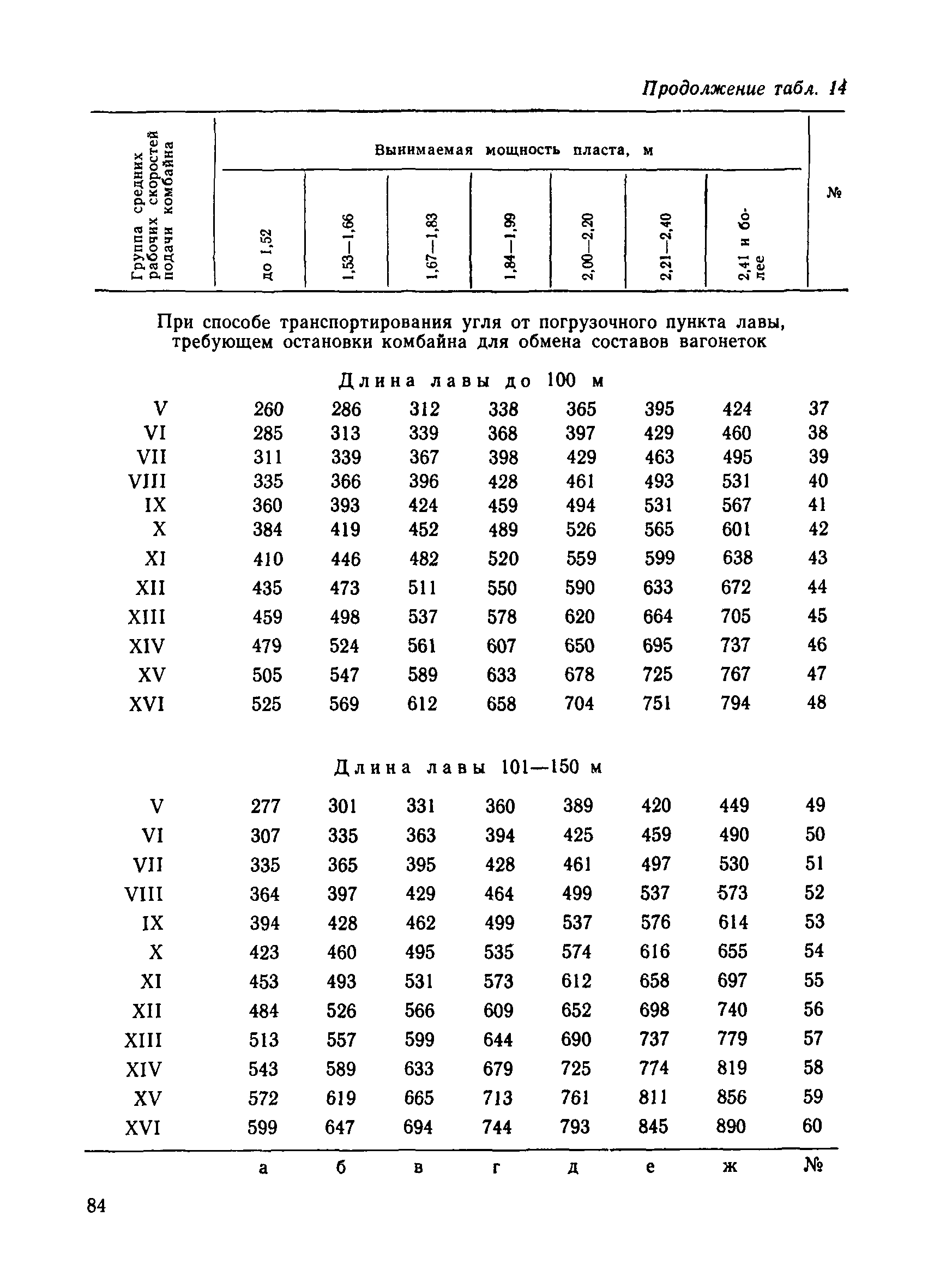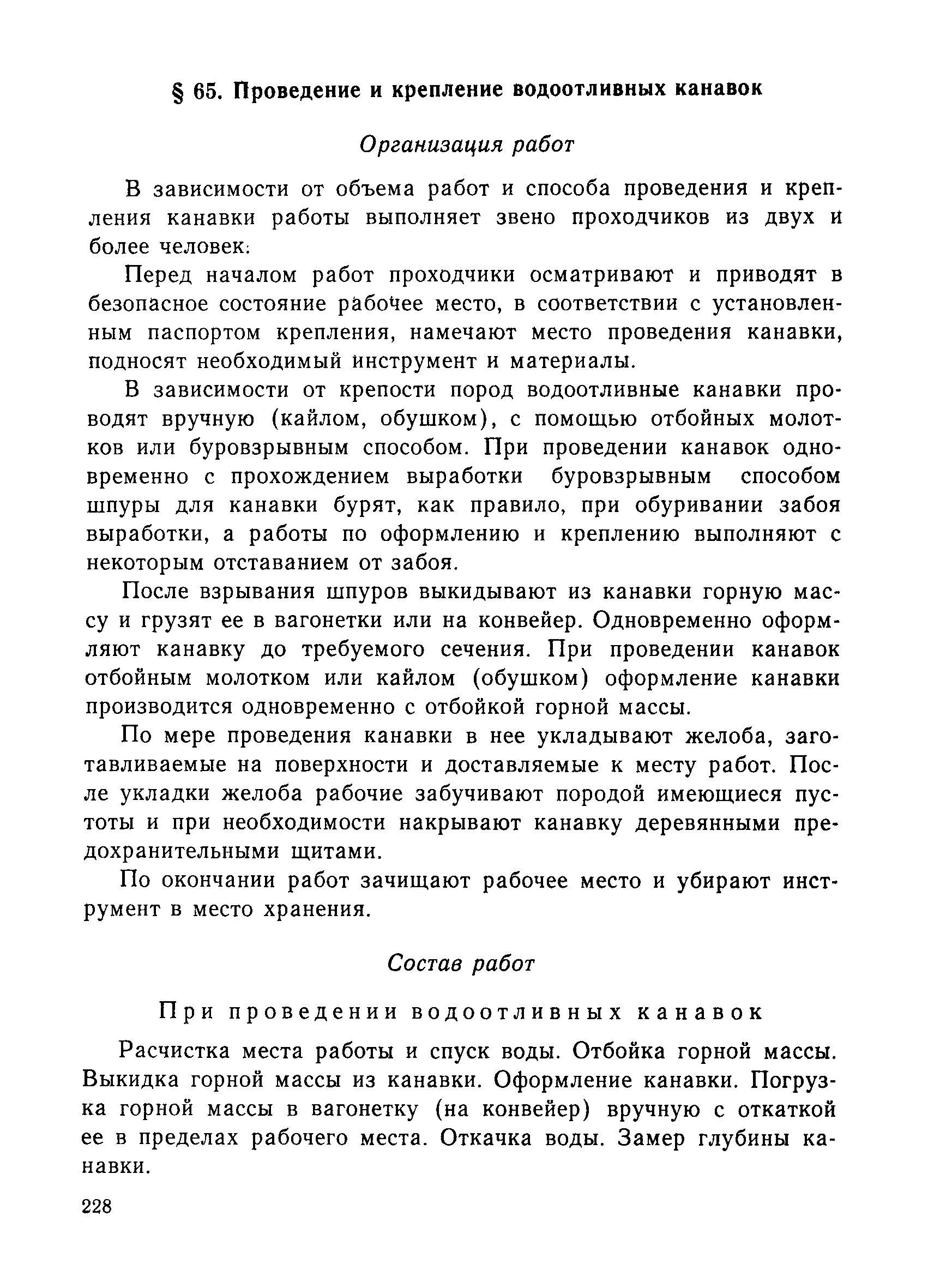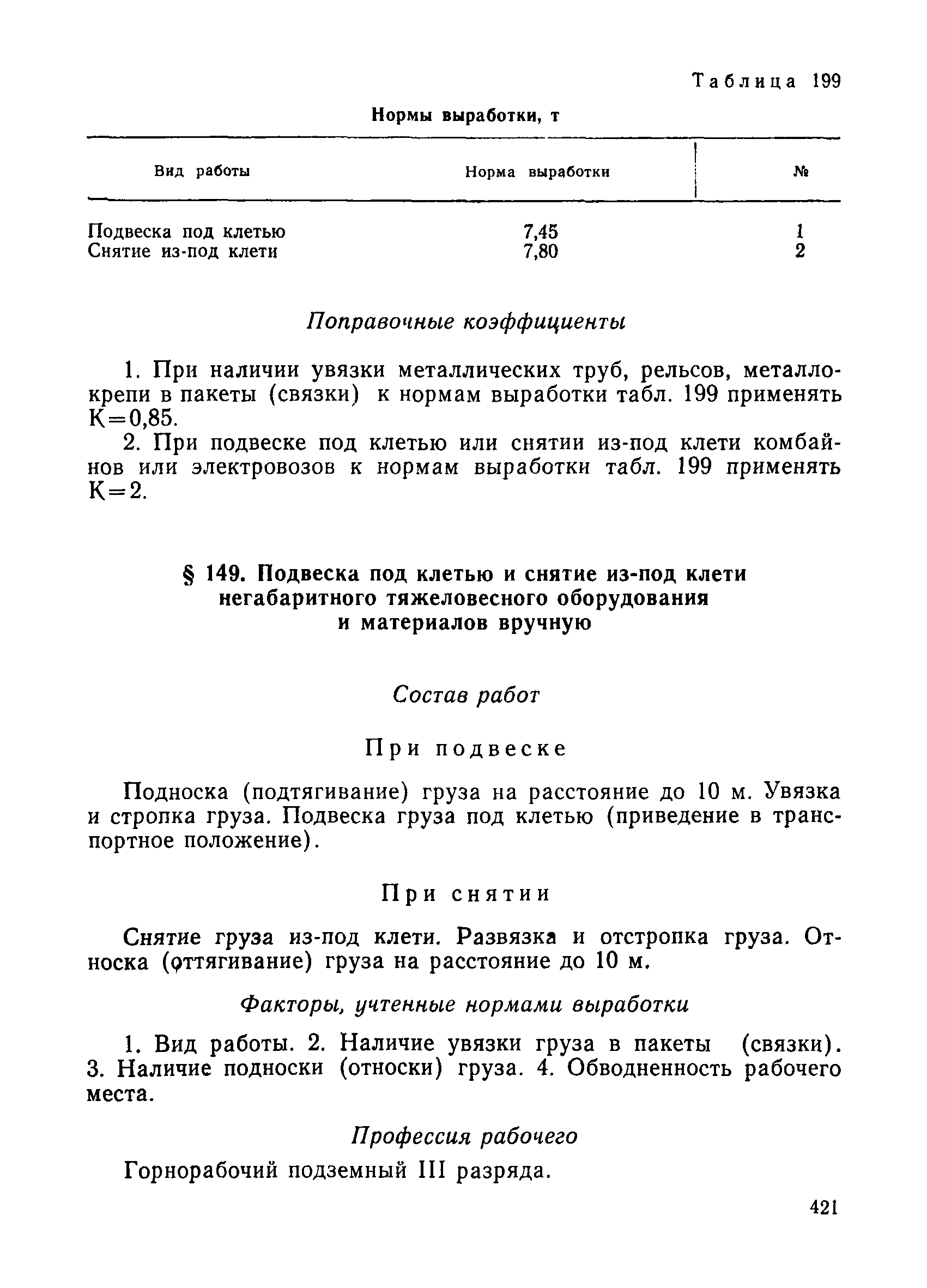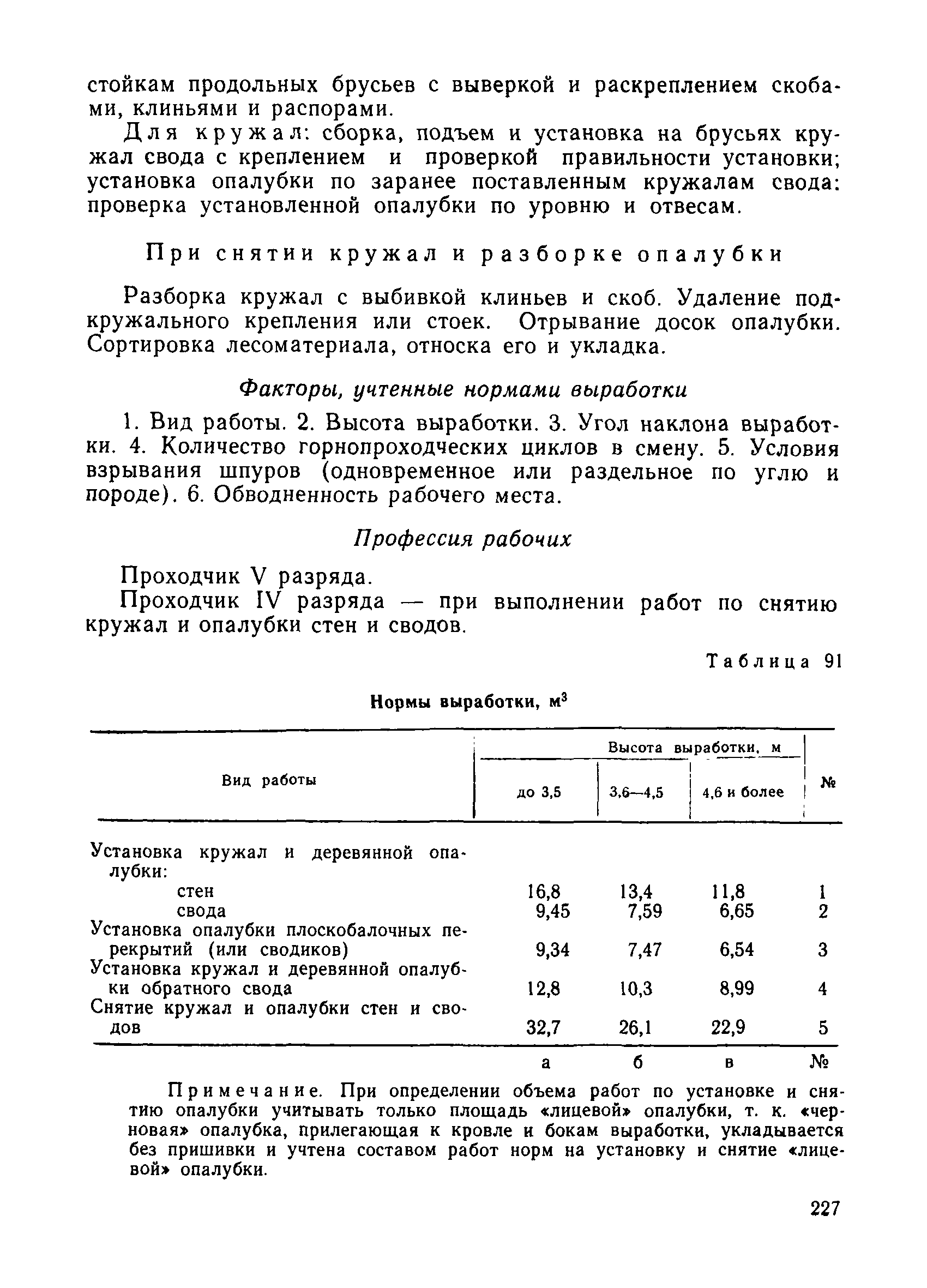 Единые нормы выработки (времени) для шахт производственного объединения "Приморскуголь"| Статус: | справочные материалы, мп, тпр | | Название рус.: | Единые нормы выработки (времени) для шахт производственного объединения "Приморскуголь" | | Дата добавления в базу: | 01.01.2018 | | Дата актуализации: | 01.01.2021 | | Область применения: | Единые нормы выработки (времени) обязательны для применения на всех действующих шахтах производственного объединения "Приморскуголь" | | Оглавление: | Общая часть Техническая часть Нормативная часть Раздел I. Очистные работы § 1. Выемка угля механизированными комплексами типа КМ-81 § 2. Выемка угля механизированными комплексами типов ОМКТ, ОКП, МК § 3. Выемка угля узкозахватными комбайнами типов КШ и ГШ-68 § 4. Оформление забоя после выемки угля узкозахватными комбайнами типов КШ и ГШ-68 § 5. Выемка угля узкозахватными комбайнами 1К-101, 2К-52, МК-67, БК-52 § 6. Оформление забоя после выемки угля узкозахватными комбайнами 1K-101, 2К-52, МК-67 и БК-52 § 7. Выемка угля комбайнами типов УКР, «Темп», КТ, А-70 в лавах на пластах наклонного и крутого падения § 8. Спуск (перегон) комбайнов типов УКР, «Темп», КТ, А-70 в лавах на пластах наклонного и крутого падения с передвижкой крана-балки § 9. Передвижка предохранительной лебедки 1ЛГКН § 10. Оформление забоя после выемки угля комбайнами типов УКР, «Темп», КТ, А-70 в лавах на пластах наклонного падения § 11. Выемка угля в лавах комбайном «Урал-2М» и подготовка его к выемке следующей полосы угля § 12. Оформление забоя после выемки угля комбайном «Урал-2М» § 13. Передвижка гидрофицированной посадочной крепи «Спутник» § 14. Выемка угля в лавах, оборудованных комбайнами К-56М A. Выемка угля Б. Разворот комбайна на пластах пологого падения B. Перегон комбайна § 15. Выемка угля проходческими комбайнами в очистных забоях на пластах пологого падения § 16. Навалоотбойка, навалка угля § 17. Бурение шпуров по углю ручными электросверлами (пневмосверлами) в лавах и камерах § 18. Уборка угля в очистных забоях с помощью скреперной установки § 19. Передвижка скреперной установки § 20. Выемка угля отбойными молотками § 21. Выемка угля с применением ВМ в очистных забоях на пластах крутого падения § 22. Крепление очистных забоев на пластах пологого и наклонного падения металлическими (клиновыми и гидравлическими) стойками § 23. Крепление очистных забоев деревянной крепью § 24. Возведение за комбайном временной деревянной крепи, предусмотренной паспортом крепления § 25. Навеска и снятие металлических шарнирных верхняков § 26. Затяжка кровли, почвы и забоя при креплении § 27. Передвижка специальной крепи типа ОКС на сопряжениях лав со штреками § 28. Установка рам на сопряжениях лав с прилегающими выработками § 29. Выбивка и извлечение металлических (клиновых и гидравлических) стоек в лавах на пластах пологого и наклонного падения при посадке кровли на металлическую органную крепь § 30. Возведение деревянной органной крепи § 31. Кладка и переноска деревянных костров § 32. Установка распорной крепи в очистных забоях § 33. Посадка кровли при помощи лебедки § 34. Бурение шпуров в стойках при посадке кровли с помощью малогабаритных патронов § 35. Передвижка перегружателей гидродомкратом при помощи упорной стойки § 36. Переноска рештаков (листов) в лавах на пластах пологого и наклонного падения § 37. Переноска деревянных рештаков (откосов) в лавах на пластах круто