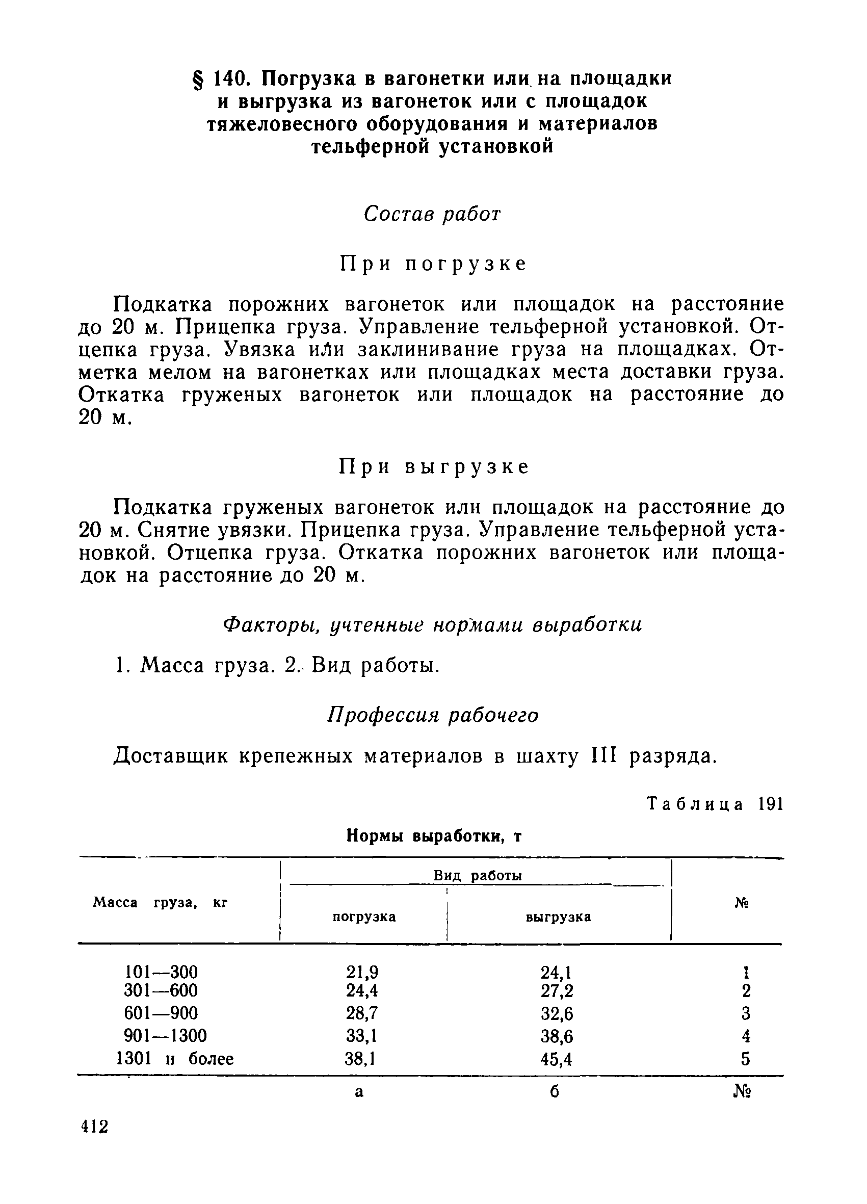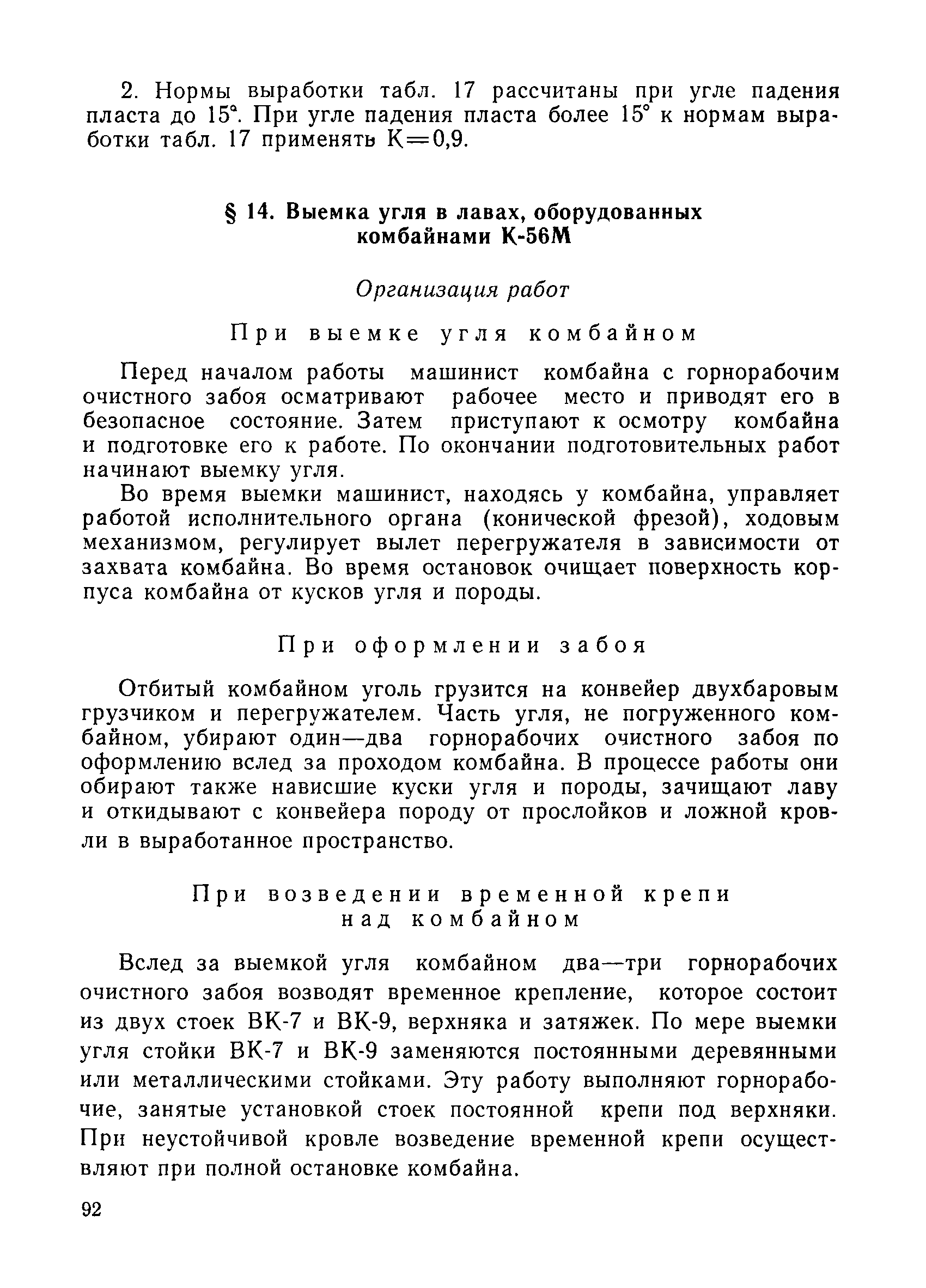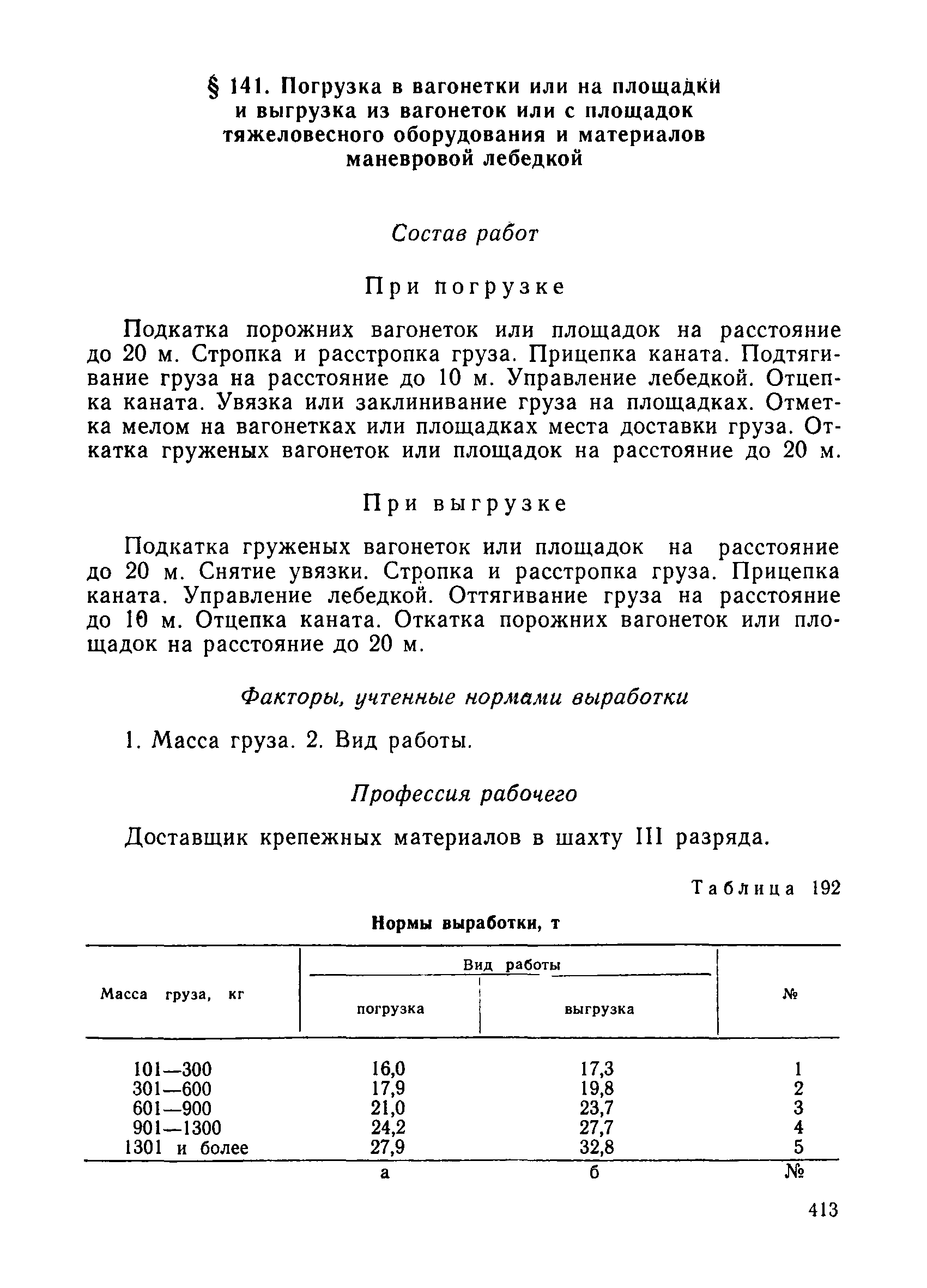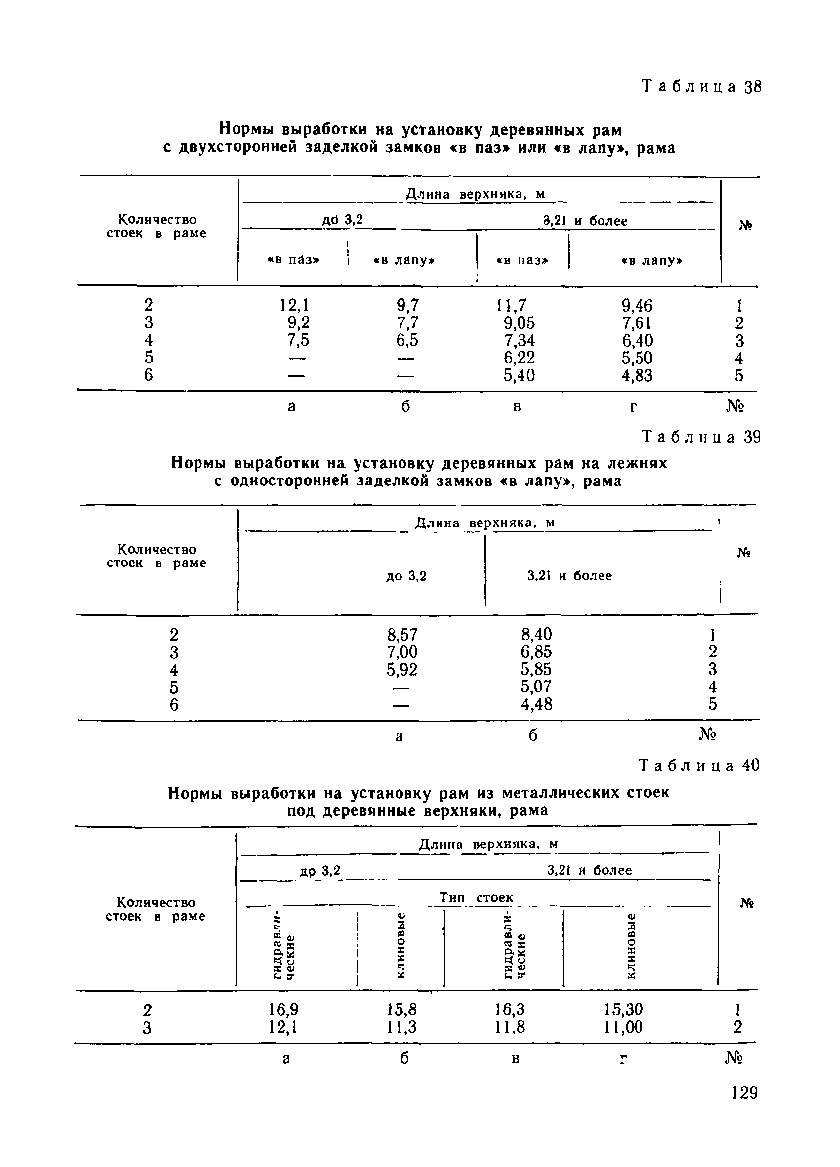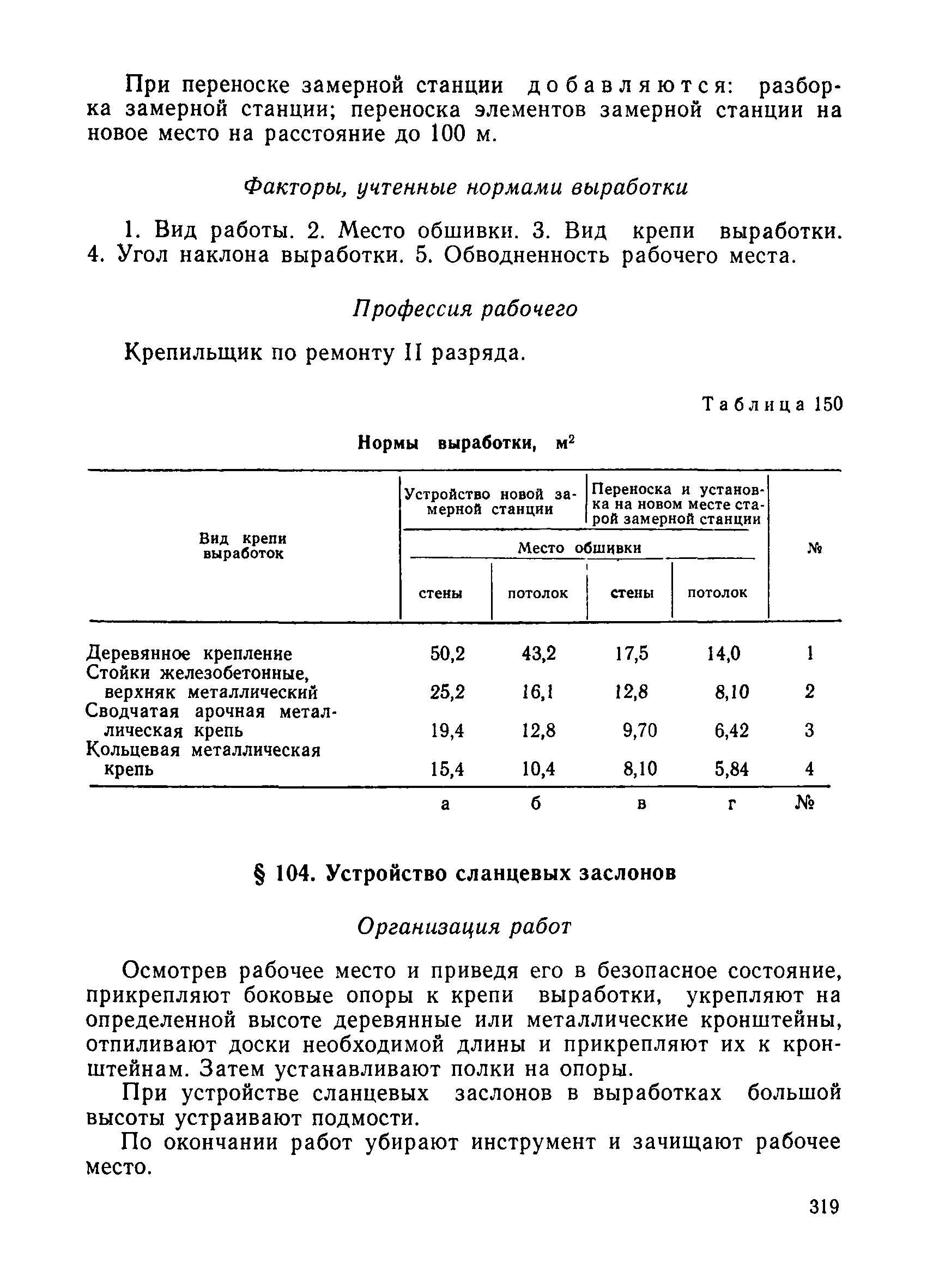 Единые нормы выработки (времени) для шахт производственного объединения "Приморскуголь"| Статус: | справочные материалы, мп, тпр | | Название рус.: | Единые нормы выработки (времени) для шахт производственного объединения "Приморскуголь" | | Дата добавления в базу: | 01.01.2018 | | Дата актуализации: | 01.01.2021 | | Область применения: | Единые нормы выработки (времени) обязательны для применения на всех действующих шахтах производственного объединения "Приморскуголь" | | Оглавление: | Общая часть Техническая часть Нормативная часть Раздел I. Очистные работы § 1. Выемка угля механизированными комплексами типа КМ-81 § 2. Выемка угля механизированными комплексами типов ОМКТ, ОКП, МК § 3. Выемка угля узкозахватными комбайнами типов КШ и ГШ-68 § 4. Оформление забоя после выемки угля узкозахватными комбайнами типов КШ и ГШ-68 § 5. Выемка угля узкозахватными комбайнами 1К-101, 2К-52, МК-67, БК-52 § 6. Оформление забоя после выемки угля узкозахватными комбайнами 1K-101, 2К-52, МК-67 и БК-52 § 7. Выемка угля комбайнами типов УКР, «Темп», КТ, А-70 в лавах на пластах наклонного и крутого падения § 8. Спуск (перегон) комбайнов типов УКР, «Темп», КТ, А-70 в лавах на пластах наклонного и крутого падения с передвижкой крана-балки § 9. Передвижка предохранительной лебедки 1ЛГКН § 10. Оформление забоя после выемки угля комбайнами типов УКР, «Темп», КТ, А-70 в лавах на пластах наклонного падения § 11. Выемка угля в лавах комбайном «Урал-2М» и подготовка его к выемке следующей полосы угля § 12. Оформление забоя после выемки угля комбайном «Урал-2М» § 13. Передвижка гидрофицированной посадочной крепи «Спутник» § 14. Выемка угля в лавах, оборудованных комбайнами К-56М A. Выемка угля Б. Разворот комбайна на пластах пологого падения B. Перегон комбайна § 15. Выемка угля проходческими комбайнами в очистных забоях на пластах пологого падения § 16. Навалоотбойка, навалка угля § 17. Бурение шпуров по углю ручными электросверлами (пневмосверлами) в лавах и камерах § 18. Уборка угля в очистных забоях с помощью скреперной установки § 19. Передвижка скреперной установки § 20. Выемка угля отбойными молотками § 21. Выемка угля с применением ВМ в очистных забоях на пластах крутого падения § 22. Крепление очистных забоев на пластах пологого и наклонного падения металлическими (клиновыми и гидравлическими) стойками § 23. Крепление очистных забоев деревянной крепью § 24. Возведение за комбайном временной деревянной крепи, предусмотренной паспортом крепления § 25. Навеска и снятие металлических шарнирных верхняков § 26. Затяжка кровли, почвы и забоя при креплении § 27. Передвижка специальной крепи типа ОКС на сопряжениях лав со штреками § 28. Установка рам на сопряжениях лав с прилегающими выработками § 29. Выбивка и извлечение металлических (клиновых и гидравлических) стоек в лавах на пластах пологого и наклонного падения при посадке кровли на металлическую органную крепь § 30. Возведение деревянной органной крепи § 31. Кладка и переноска деревянных костров § 32. Установка распорной крепи в очистных забоях § 33. Посадка кровли при помощи лебедки § 34. Бурение шпуров в стойках при посадке кровли с помощью малогабаритных патронов § 35. Передвижка перегружателей гидродомкратом при помощи упорной стойки § 36. Переноска рештаков (листов) в лавах на пластах пологого и наклонного падения § 37. Переноска деревянных рештаков (откосов) в лавах на пластах круто