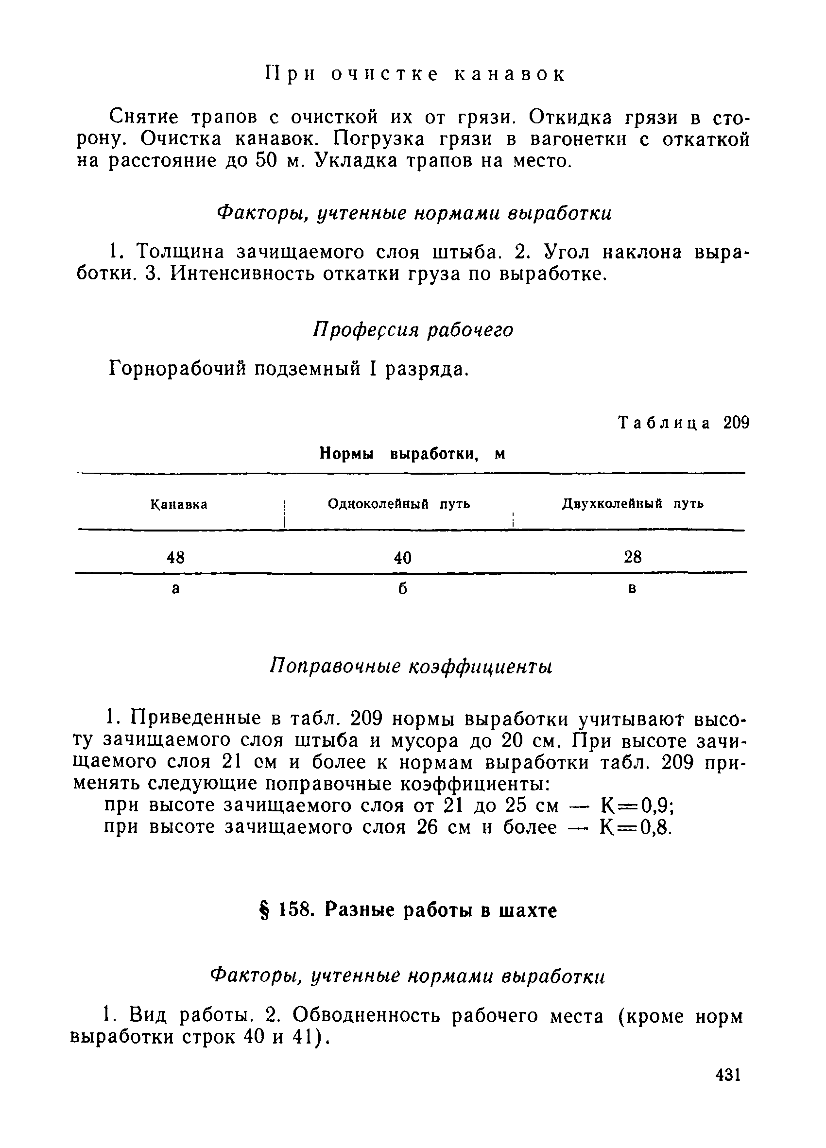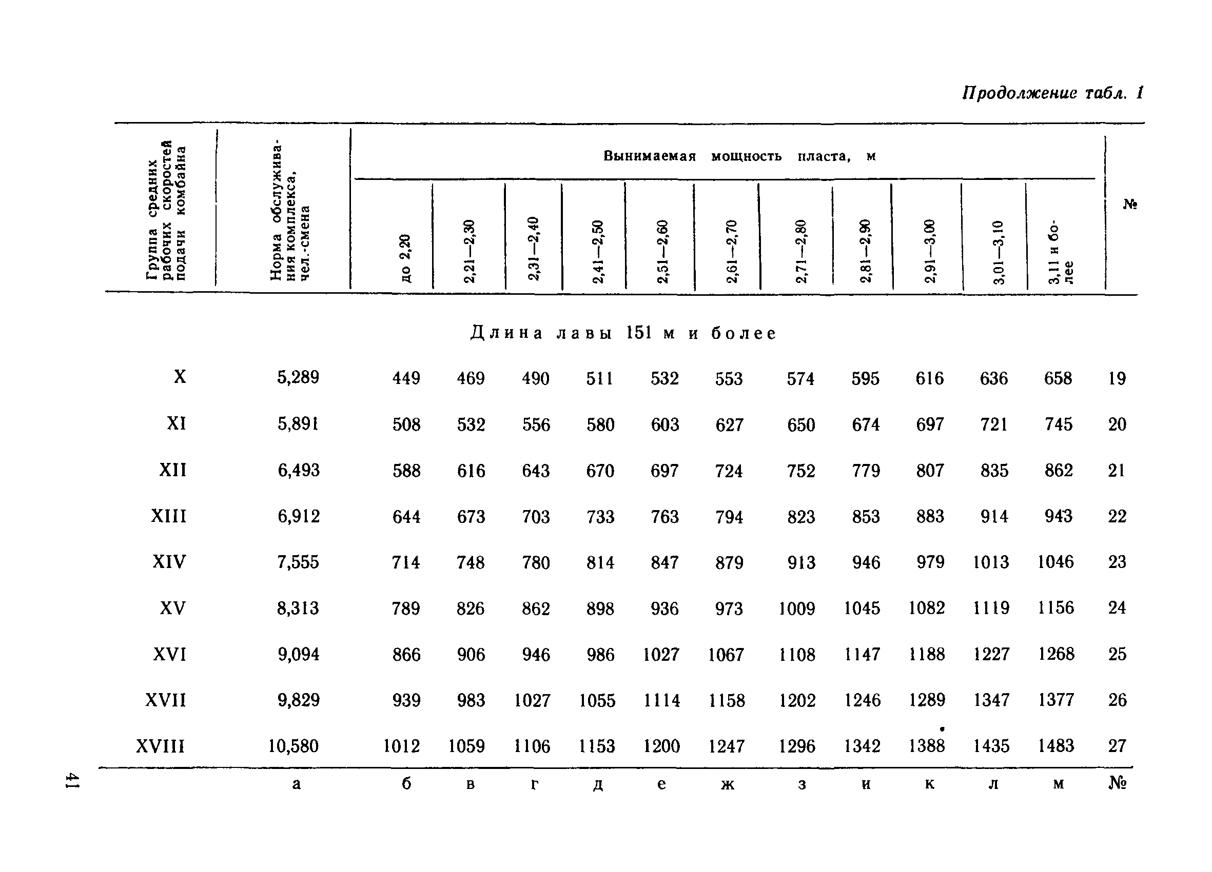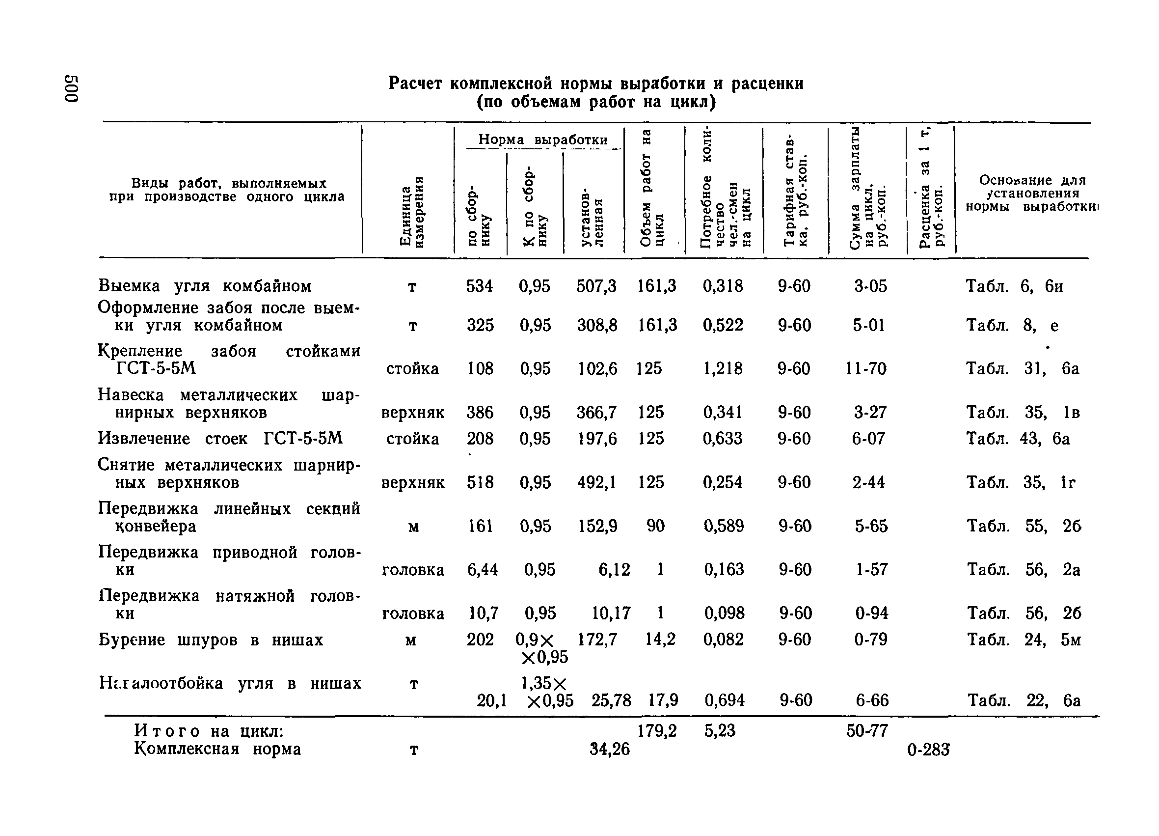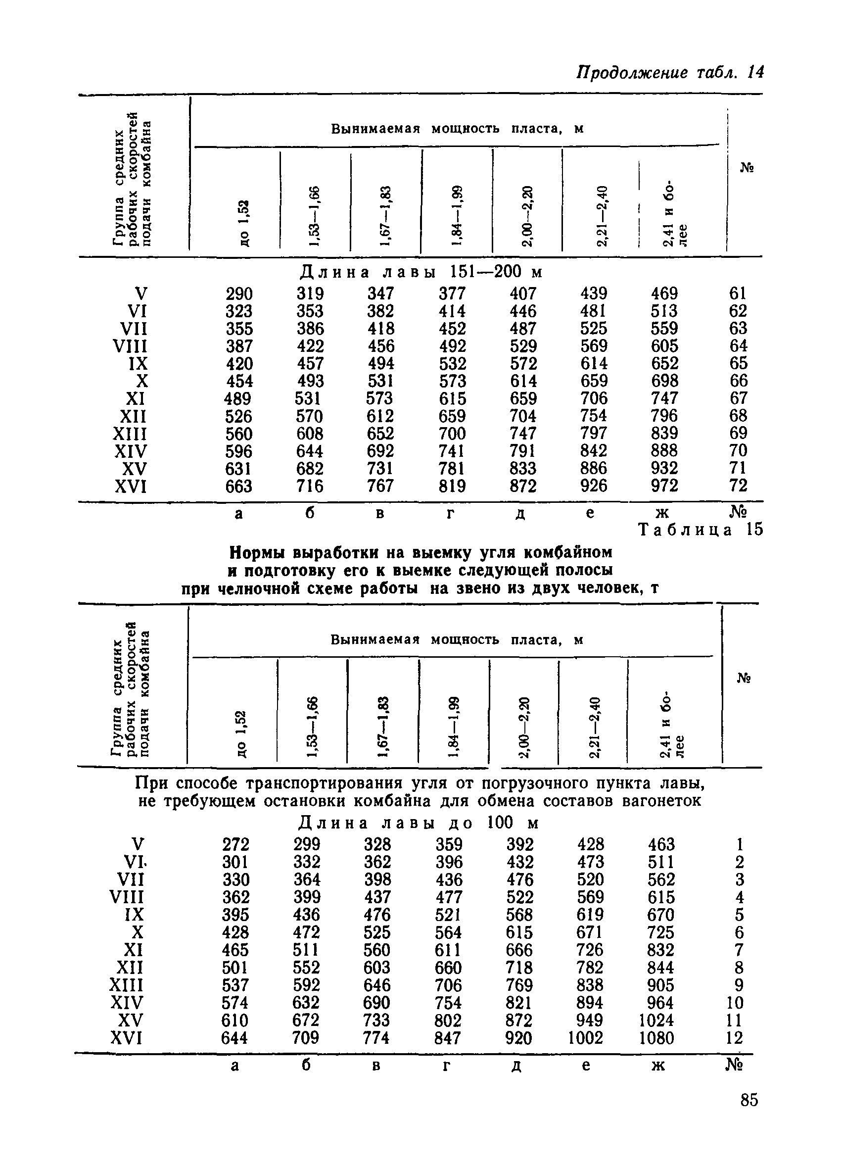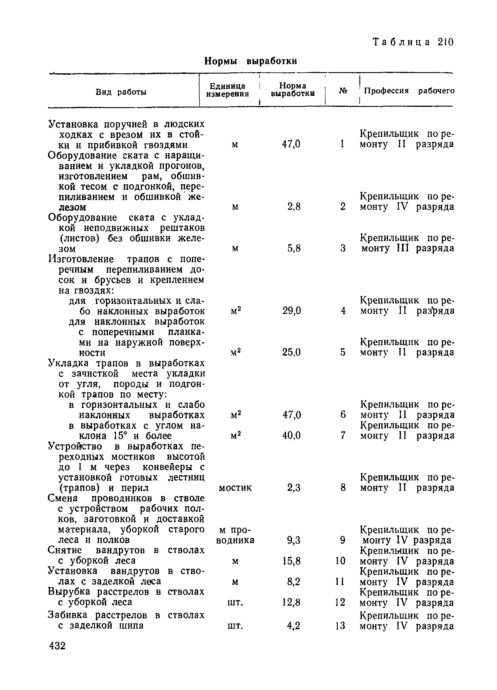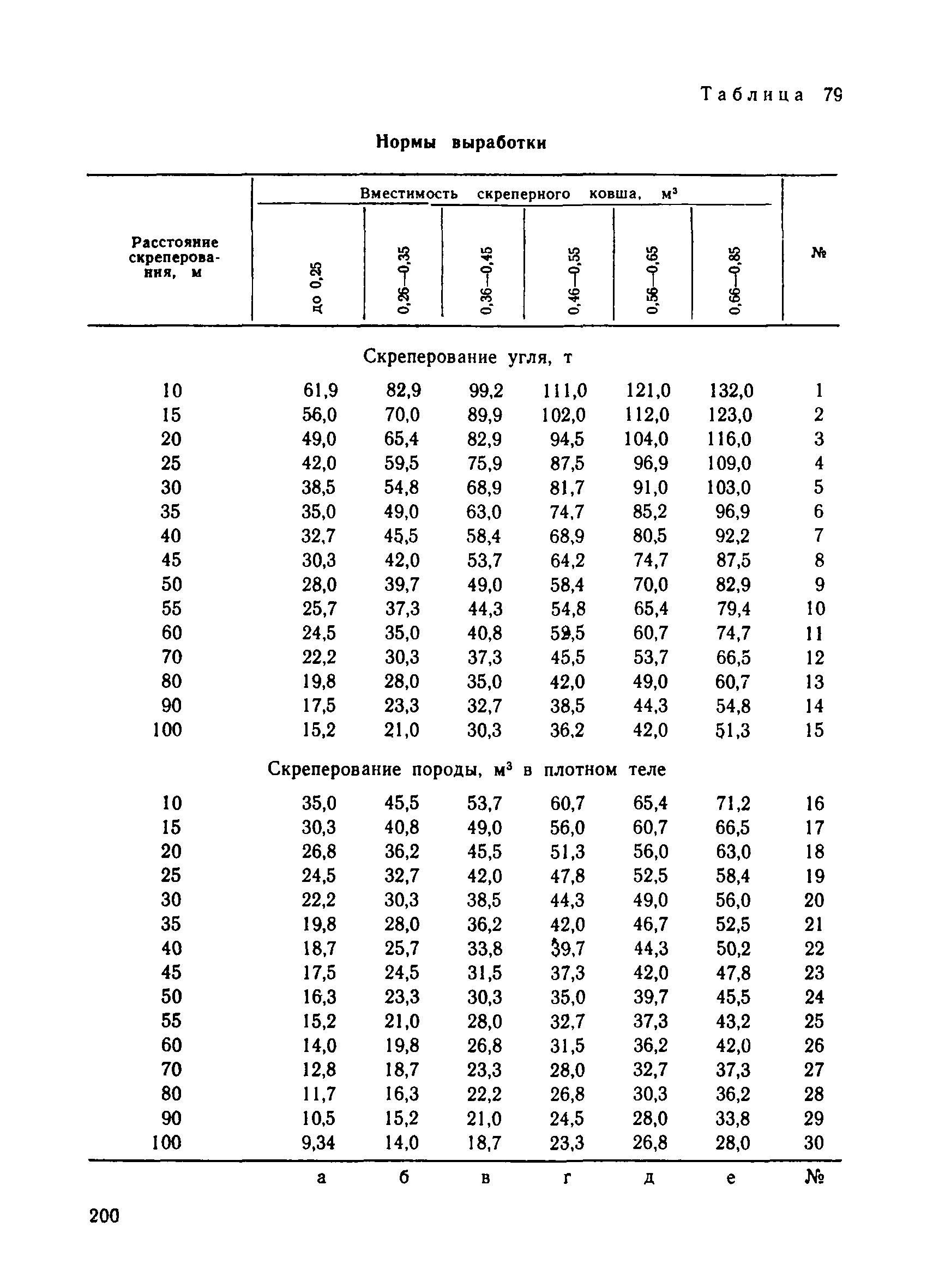 Единые нормы выработки (времени) для шахт производственного объединения "Приморскуголь"| Статус: | справочные материалы, мп, тпр | | Название рус.: | Единые нормы выработки (времени) для шахт производственного объединения "Приморскуголь" | | Дата добавления в базу: | 01.01.2018 | | Дата актуализации: | 01.01.2021 | | Область применения: | Единые нормы выработки (времени) обязательны для применения на всех действующих шахтах производственного объединения "Приморскуголь" | | Оглавление: | Общая часть Техническая часть Нормативная часть Раздел I. Очистные работы § 1. Выемка угля механизированными комплексами типа КМ-81 § 2. Выемка угля механизированными комплексами типов ОМКТ, ОКП, МК § 3. Выемка угля узкозахватными комбайнами типов КШ и ГШ-68 § 4. Оформление забоя после выемки угля узкозахватными комбайнами типов КШ и ГШ-68 § 5. Выемка угля узкозахватными комбайнами 1К-101, 2К-52, МК-67, БК-52 § 6. Оформление забоя после выемки угля узкозахватными комбайнами 1K-101, 2К-52, МК-67 и БК-52 § 7. Выемка угля комбайнами типов УКР, «Темп», КТ, А-70 в лавах на пластах наклонного и крутого падения § 8. Спуск (перегон) комбайнов типов УКР, «Темп», КТ, А-70 в лавах на пластах наклонного и крутого падения с передвижкой крана-балки § 9. Передвижка предохранительной лебедки 1ЛГКН § 10. Оформление забоя после выемки угля комбайнами типов УКР, «Темп», КТ, А-70 в лавах на пластах наклонного падения § 11. Выемка угля в лавах комбайном «Урал-2М» и подготовка его к выемке следующей полосы угля § 12. Оформление забоя после выемки угля комбайном «Урал-2М» § 13. Передвижка гидрофицированной посадочной крепи «Спутник» § 14. Выемка угля в лавах, оборудованных комбайнами К-56М A. Выемка угля Б. Разворот комбайна на пластах пологого падения B. Перегон комбайна § 15. Выемка угля проходческими комбайнами в очистных забоях на пластах пологого падения § 16. Навалоотбойка, навалка угля § 17. Бурение шпуров по углю ручными электросверлами (пневмосверлами) в лавах и камерах § 18. Уборка угля в очистных забоях с помощью скреперной установки § 19. Передвижка скреперной установки § 20. Выемка угля отбойными молотками § 21. Выемка угля с применением ВМ в очистных забоях на пластах крутого падения § 22. Крепление очистных забоев на пластах пологого и наклонного падения металлическими (клиновыми и гидравлическими) стойками § 23. Крепление очистных забоев деревянной крепью § 24. Возведение за комбайном временной деревянной крепи, предусмотренной паспортом крепления § 25. Навеска и снятие металлических шарнирных верхняков § 26. Затяжка кровли, почвы и забоя при креплении § 27. Передвижка специальной крепи типа ОКС на сопряжениях лав со штреками § 28. Установка рам на сопряжениях лав с прилегающими выработками § 29. Выбивка и извлечение металлических (клиновых и гидравлических) стоек в лавах на пластах пологого и наклонного падения при посадке кровли на металлическую органную крепь § 30. Возведение деревянной органной крепи § 31. Кладка и переноска деревянных костров § 32. Установка распорной крепи в очистных забоях § 33. Посадка кровли при помощи лебедки § 34. Бурение шпуров в стойках при посадке кровли с помощью малогабаритных патронов § 35. Передвижка перегружателей гидродомкратом при помощи упорной стойки § 36. Переноска рештаков (листов) в лавах на пластах пологого и наклонного падения § 37. Переноска деревянных рештаков (откосов) в лавах на пластах круто