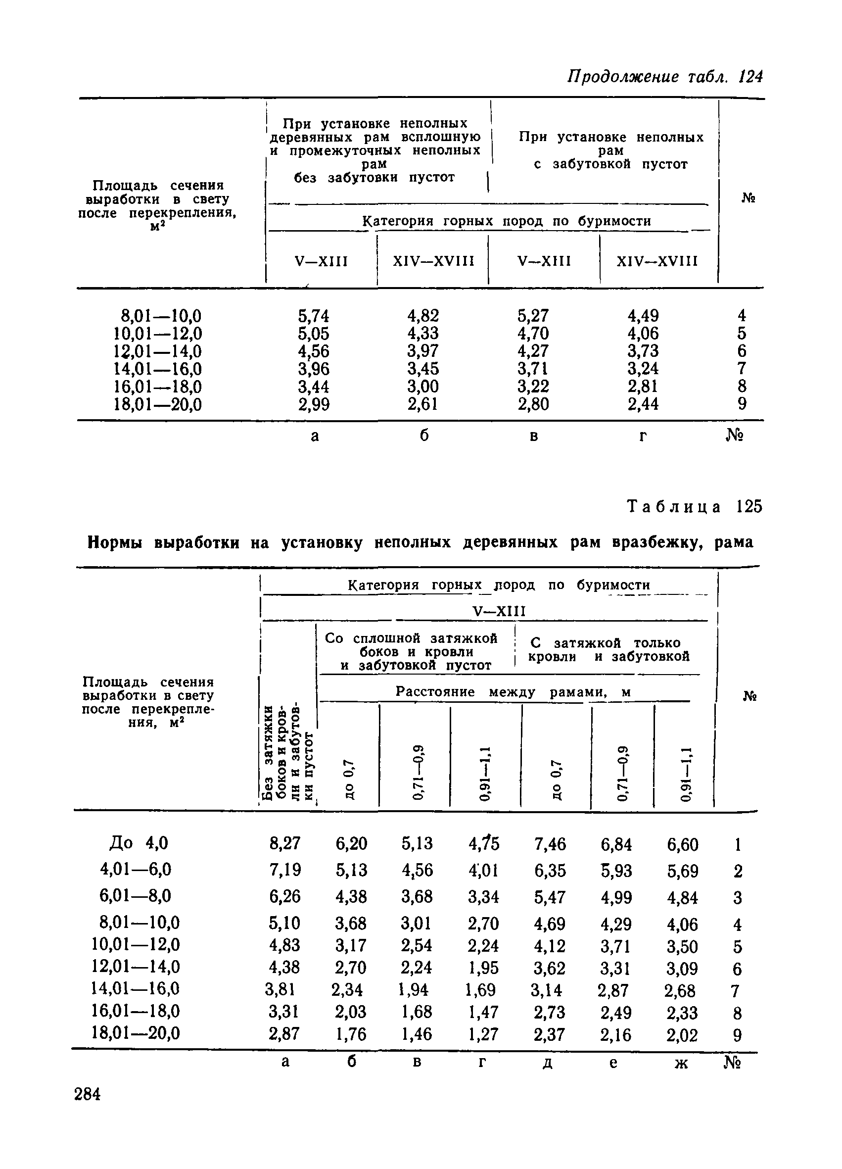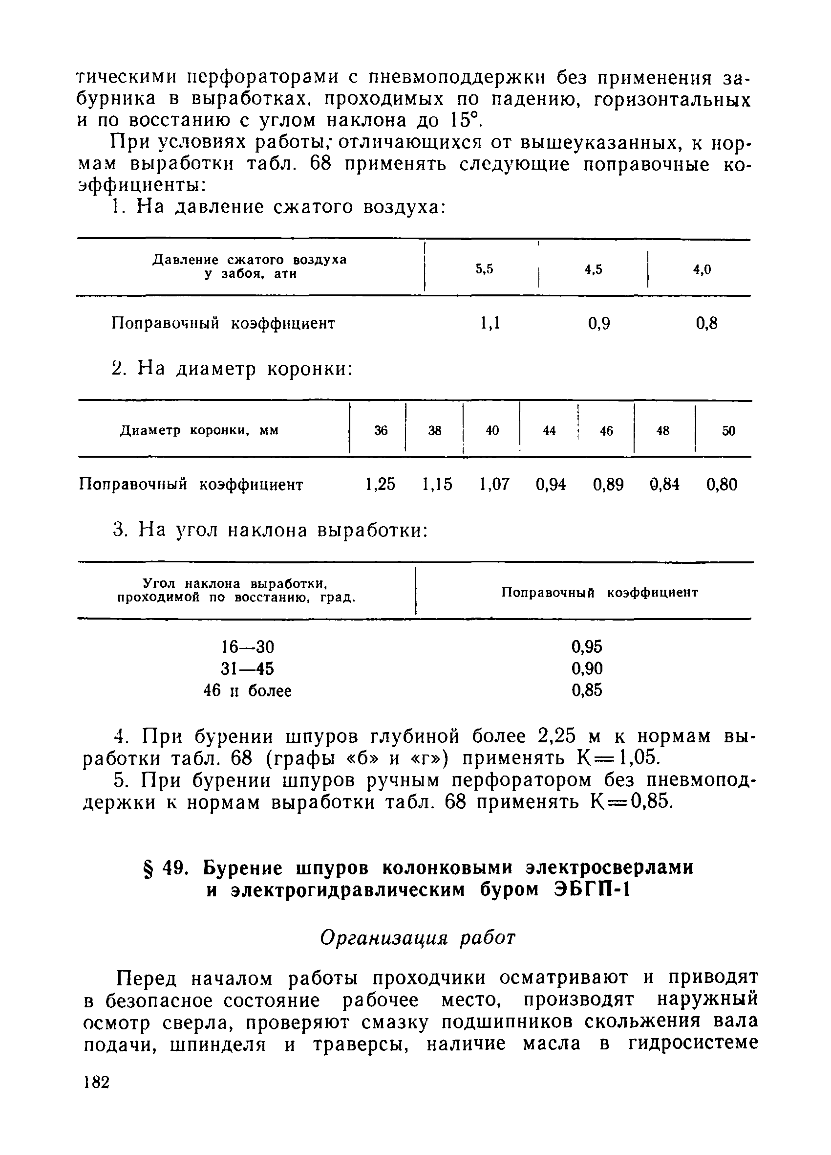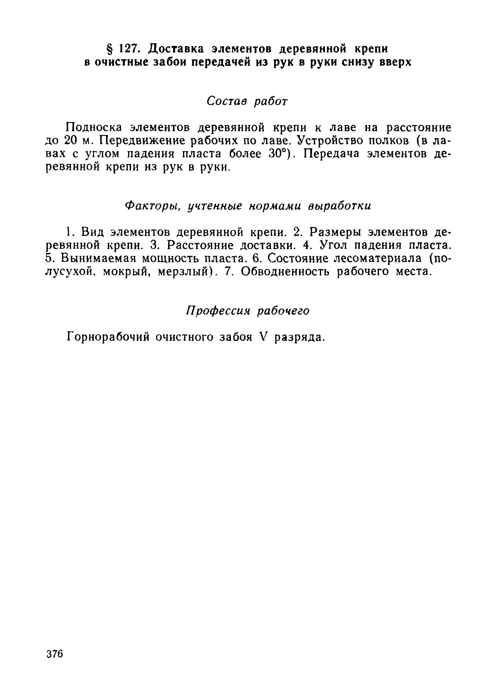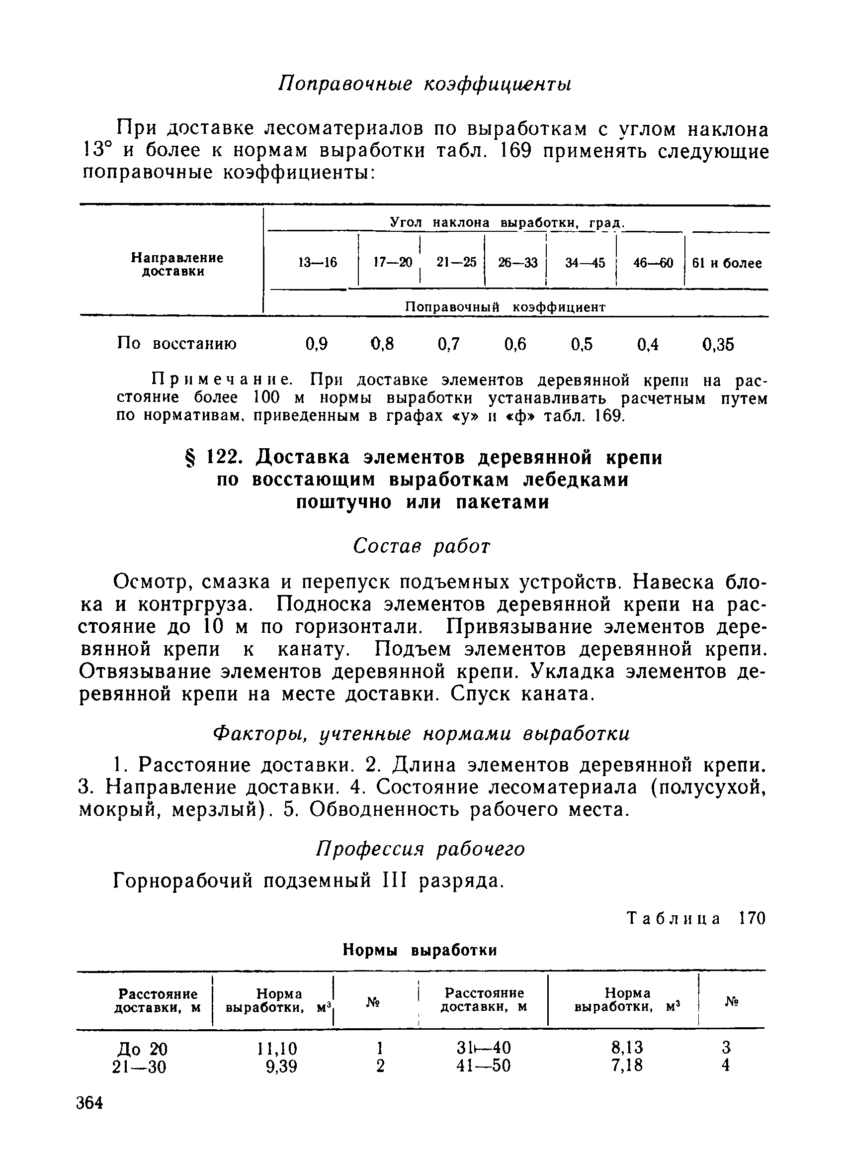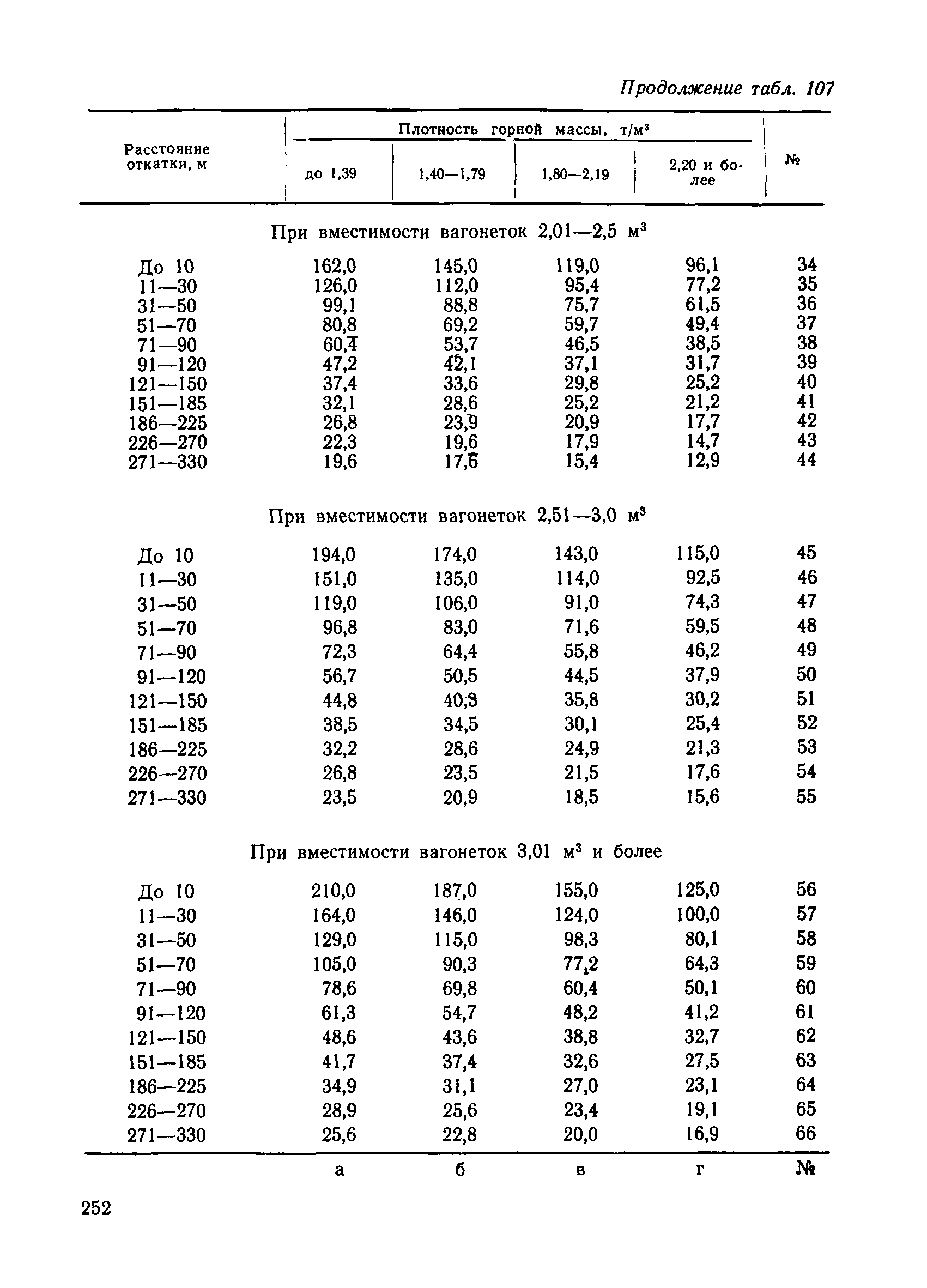 Единые нормы выработки (времени) для шахт производственного объединения "Приморскуголь"| Статус: | справочные материалы, мп, тпр | | Название рус.: | Единые нормы выработки (времени) для шахт производственного объединения "Приморскуголь" | | Дата добавления в базу: | 01.01.2018 | | Дата актуализации: | 01.01.2021 | | Область применения: | Единые нормы выработки (времени) обязательны для применения на всех действующих шахтах производственного объединения "Приморскуголь" | | Оглавление: | Общая часть Техническая часть Нормативная часть Раздел I. Очистные работы § 1. Выемка угля механизированными комплексами типа КМ-81 § 2. Выемка угля механизированными комплексами типов ОМКТ, ОКП, МК § 3. Выемка угля узкозахватными комбайнами типов КШ и ГШ-68 § 4. Оформление забоя после выемки угля узкозахватными комбайнами типов КШ и ГШ-68 § 5. Выемка угля узкозахватными комбайнами 1К-101, 2К-52, МК-67, БК-52 § 6. Оформление забоя после выемки угля узкозахватными комбайнами 1K-101, 2К-52, МК-67 и БК-52 § 7. Выемка угля комбайнами типов УКР, «Темп», КТ, А-70 в лавах на пластах наклонного и крутого падения § 8. Спуск (перегон) комбайнов типов УКР, «Темп», КТ, А-70 в лавах на пластах наклонного и крутого падения с передвижкой крана-балки § 9. Передвижка предохранительной лебедки 1ЛГКН § 10. Оформление забоя после выемки угля комбайнами типов УКР, «Темп», КТ, А-70 в лавах на пластах наклонного падения § 11. Выемка угля в лавах комбайном «Урал-2М» и подготовка его к выемке следующей полосы угля § 12. Оформление забоя после выемки угля комбайном «Урал-2М» § 13. Передвижка гидрофицированной посадочной крепи «Спутник» § 14. Выемка угля в лавах, оборудованных комбайнами К-56М A. Выемка угля Б. Разворот комбайна на пластах пологого падения B. Перегон комбайна § 15. Выемка угля проходческими комбайнами в очистных забоях на пластах пологого падения § 16. Навалоотбойка, навалка угля § 17. Бурение шпуров по углю ручными электросверлами (пневмосверлами) в лавах и камерах § 18. Уборка угля в очистных забоях с помощью скреперной установки § 19. Передвижка скреперной установки § 20. Выемка угля отбойными молотками § 21. Выемка угля с применением ВМ в очистных забоях на пластах крутого падения § 22. Крепление очистных забоев на пластах пологого и наклонного падения металлическими (клиновыми и гидравлическими) стойками § 23. Крепление очистных забоев деревянной крепью § 24. Возведение за комбайном временной деревянной крепи, предусмотренной паспортом крепления § 25. Навеска и снятие металлических шарнирных верхняков § 26. Затяжка кровли, почвы и забоя при креплении § 27. Передвижка специальной крепи типа ОКС на сопряжениях лав со штреками § 28. Установка рам на сопряжениях лав с прилегающими выработками § 29. Выбивка и извлечение металлических (клиновых и гидравлических) стоек в лавах на пластах пологого и наклонного падения при посадке кровли на металлическую органную крепь § 30. Возведение деревянной органной крепи § 31. Кладка и переноска деревянных костров § 32. Установка распорной крепи в очистных забоях § 33. Посадка кровли при помощи лебедки § 34. Бурение шпуров в стойках при посадке кровли с помощью малогабаритных патронов § 35. Передвижка перегружателей гидродомкратом при помощи упорной стойки § 36. Переноска рештаков (листов) в лавах на пластах пологого и наклонного падения § 37. Переноска деревянных рештаков (откосов) в лавах на пластах круто