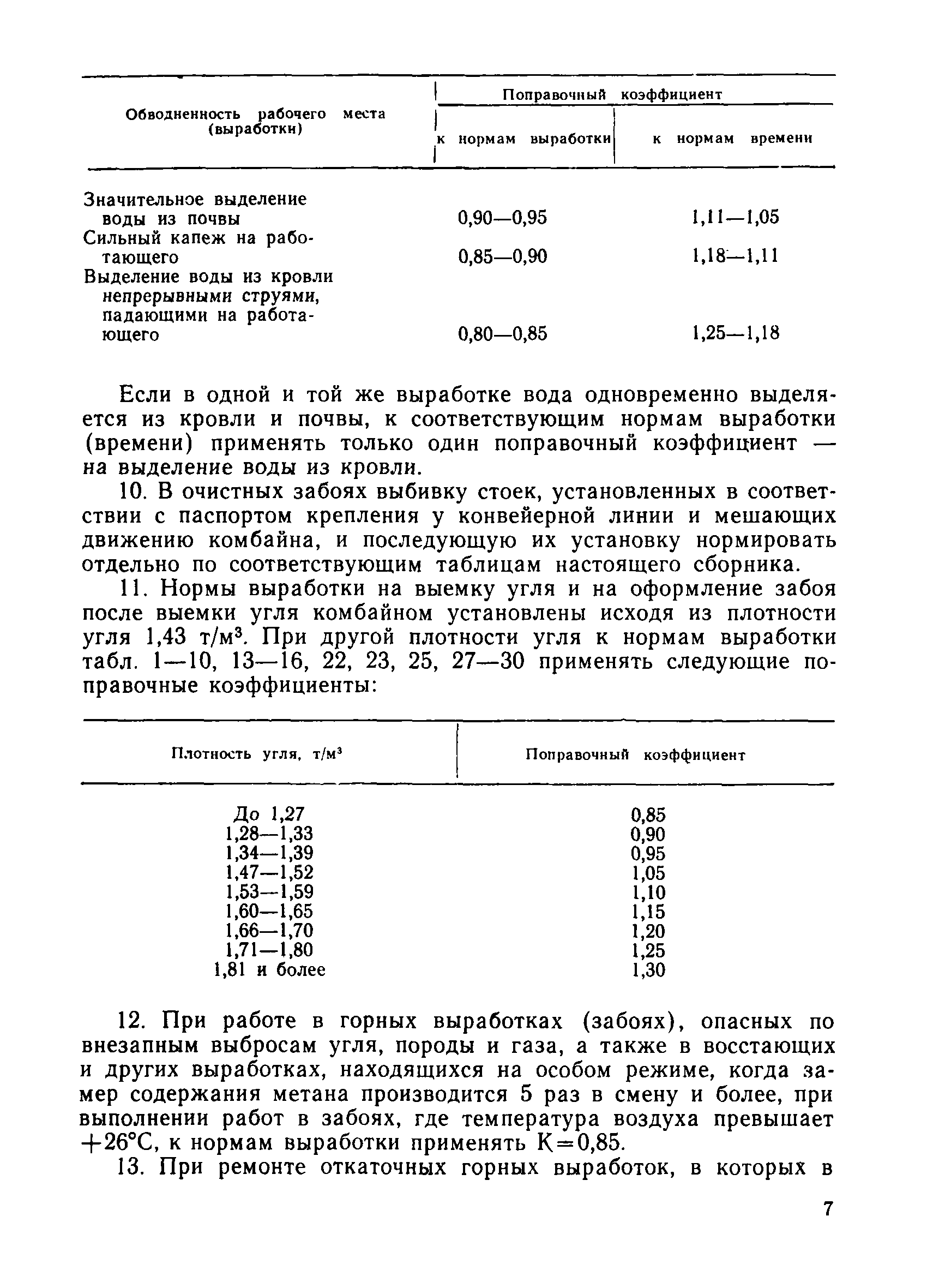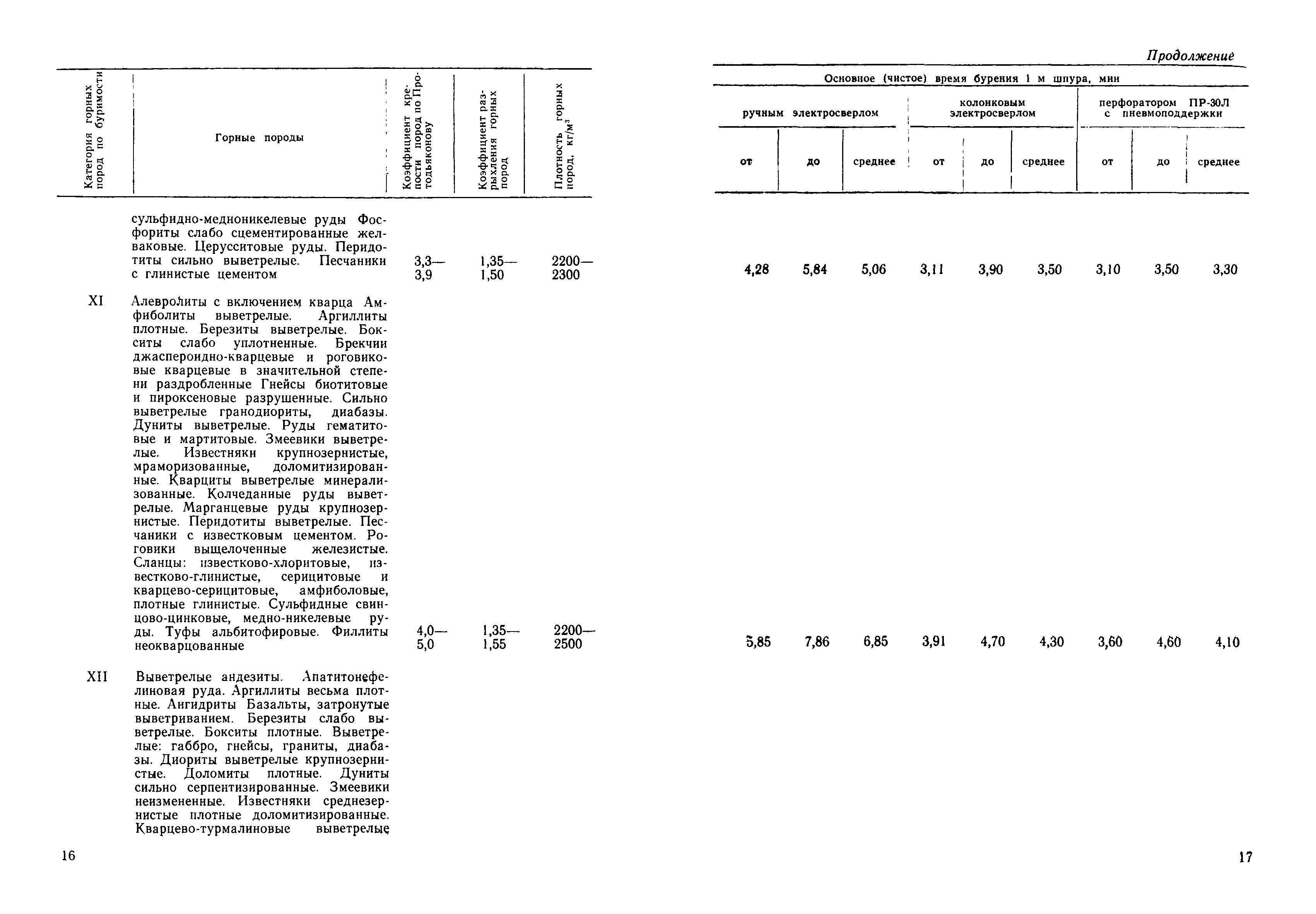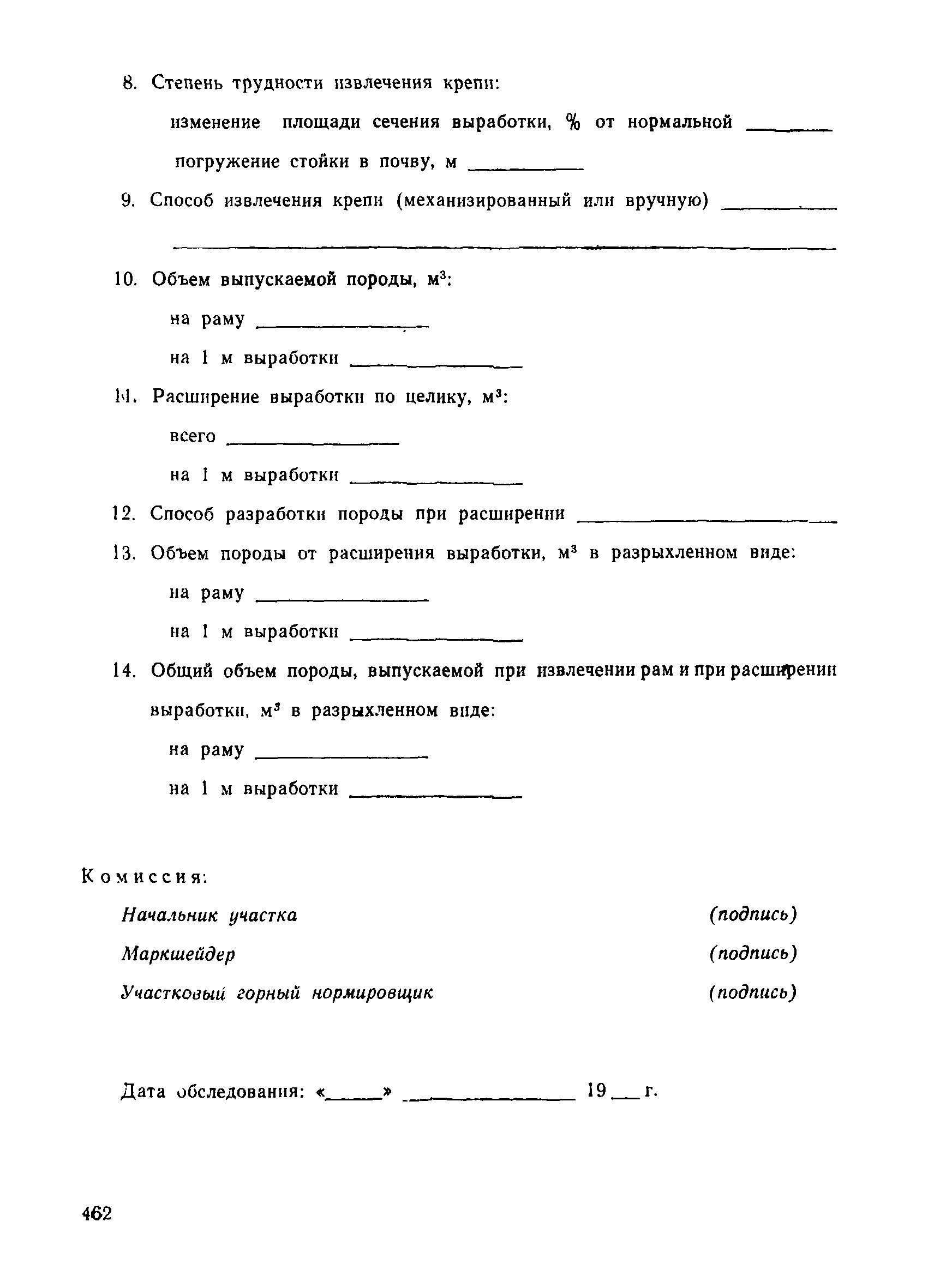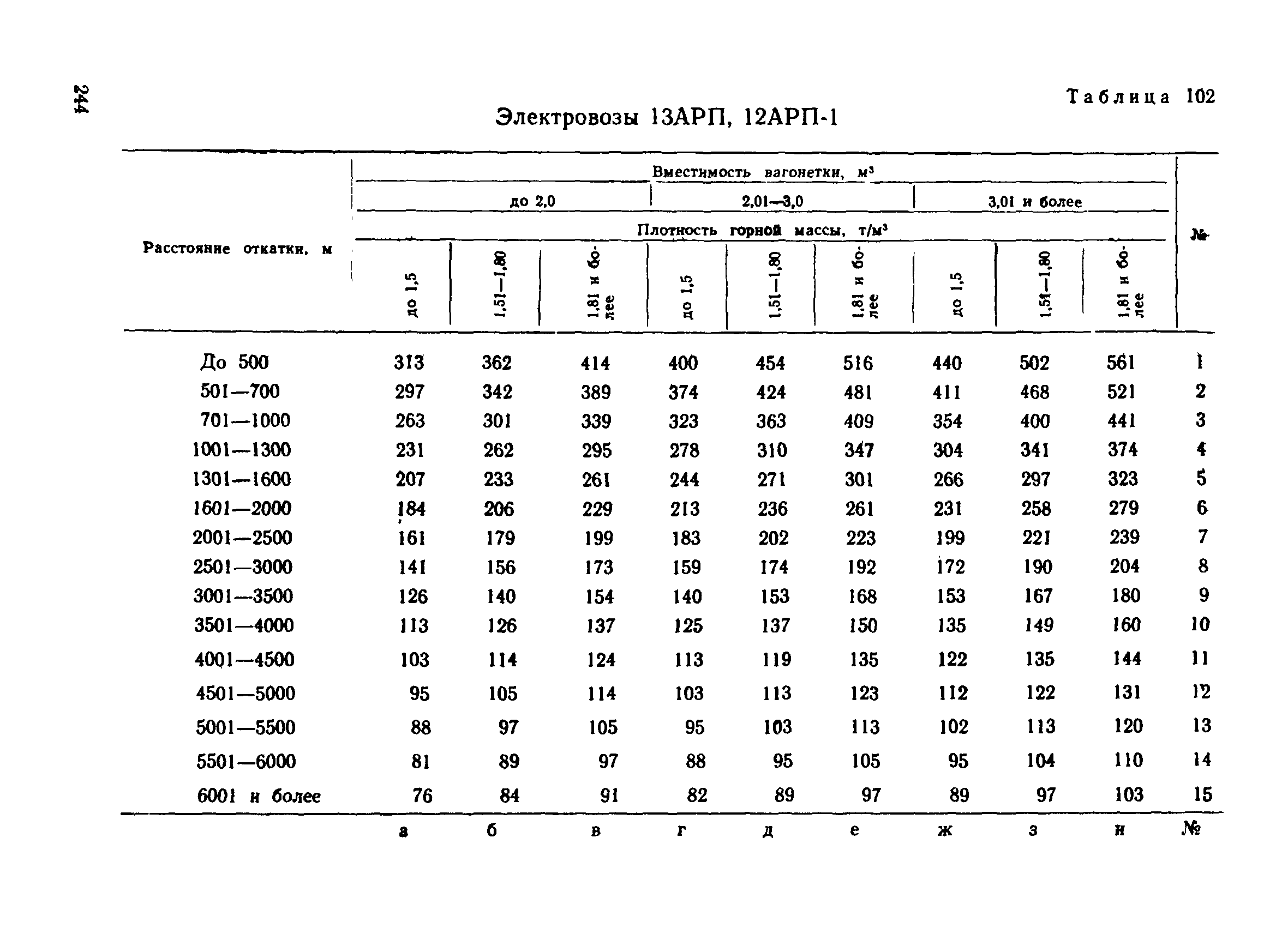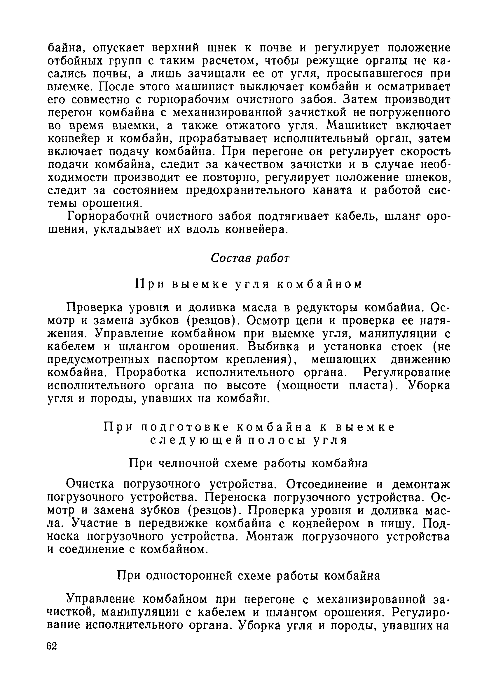 Единые нормы выработки (времени) для шахт производственного объединения "Приморскуголь"| Статус: | справочные материалы, мп, тпр | | Название рус.: | Единые нормы выработки (времени) для шахт производственного объединения "Приморскуголь" | | Дата добавления в базу: | 01.01.2018 | | Дата актуализации: | 01.01.2021 | | Область применения: | Единые нормы выработки (времени) обязательны для применения на всех действующих шахтах производственного объединения "Приморскуголь" | | Оглавление: | Общая часть Техническая часть Нормативная часть Раздел I. Очистные работы § 1. Выемка угля механизированными комплексами типа КМ-81 § 2. Выемка угля механизированными комплексами типов ОМКТ, ОКП, МК § 3. Выемка угля узкозахватными комбайнами типов КШ и ГШ-68 § 4. Оформление забоя после выемки угля узкозахватными комбайнами типов КШ и ГШ-68 § 5. Выемка угля узкозахватными комбайнами 1К-101, 2К-52, МК-67, БК-52 § 6. Оформление забоя после выемки угля узкозахватными комбайнами 1K-101, 2К-52, МК-67 и БК-52 § 7. Выемка угля комбайнами типов УКР, «Темп», КТ, А-70 в лавах на пластах наклонного и крутого падения § 8. Спуск (перегон) комбайнов типов УКР, «Темп», КТ, А-70 в лавах на пластах наклонного и крутого падения с передвижкой крана-балки § 9. Передвижка предохранительной лебедки 1ЛГКН § 10. Оформление забоя после выемки угля комбайнами типов УКР, «Темп», КТ, А-70 в лавах на пластах наклонного падения § 11. Выемка угля в лавах комбайном «Урал-2М» и подготовка его к выемке следующей полосы угля § 12. Оформление забоя после выемки угля комбайном «Урал-2М» § 13. Передвижка гидрофицированной посадочной крепи «Спутник» § 14. Выемка угля в лавах, оборудованных комбайнами К-56М A. Выемка угля Б. Разворот комбайна на пластах пологого падения B. Перегон комбайна § 15. Выемка угля проходческими комбайнами в очистных забоях на пластах пологого падения § 16. Навалоотбойка, навалка угля § 17. Бурение шпуров по углю ручными электросверлами (пневмосверлами) в лавах и камерах § 18. Уборка угля в очистных забоях с помощью скреперной установки § 19. Передвижка скреперной установки § 20. Выемка угля отбойными молотками § 21. Выемка угля с применением ВМ в очистных забоях на пластах крутого падения § 22. Крепление очистных забоев на пластах пологого и наклонного падения металлическими (клиновыми и гидравлическими) стойками § 23. Крепление очистных забоев деревянной крепью § 24. Возведение за комбайном временной деревянной крепи, предусмотренной паспортом крепления § 25. Навеска и снятие металлических шарнирных верхняков § 26. Затяжка кровли, почвы и забоя при креплении § 27. Передвижка специальной крепи типа ОКС на сопряжениях лав со штреками § 28. Установка рам на сопряжениях лав с прилегающими выработками § 29. Выбивка и извлечение металлических (клиновых и гидравлических) стоек в лавах на пластах пологого и наклонного падения при посадке кровли на металлическую органную крепь § 30. Возведение деревянной органной крепи § 31. Кладка и переноска деревянных костров § 32. Установка распорной крепи в очистных забоях § 33. Посадка кровли при помощи лебедки § 34. Бурение шпуров в стойках при посадке кровли с помощью малогабаритных патронов § 35. Передвижка перегружателей гидродомкратом при помощи упорной стойки § 36. Переноска рештаков (листов) в лавах на пластах пологого и наклонного падения § 37. Переноска деревянных рештаков (откосов) в лавах на пластах круто