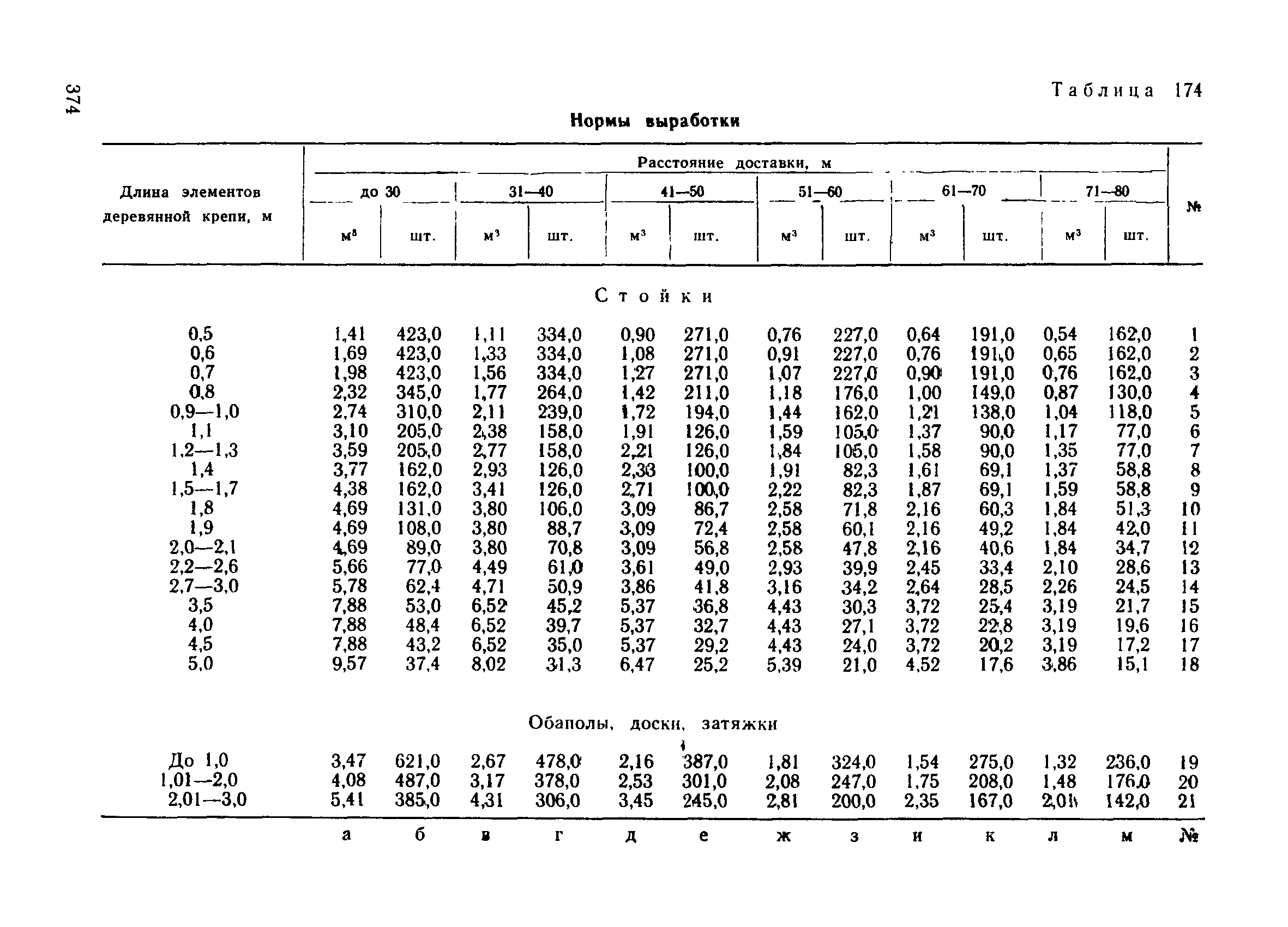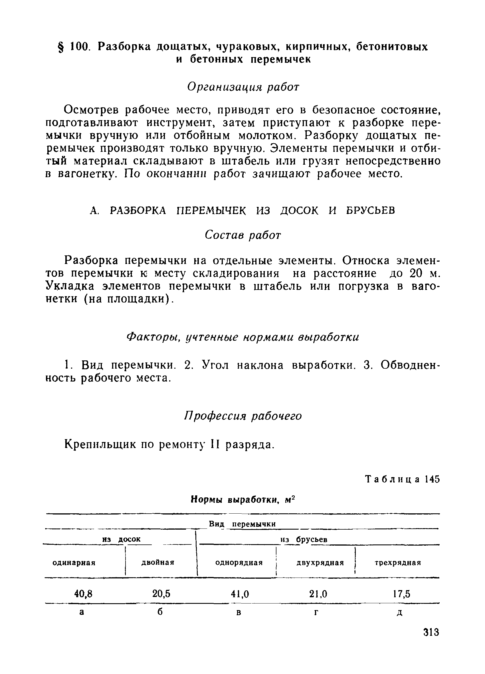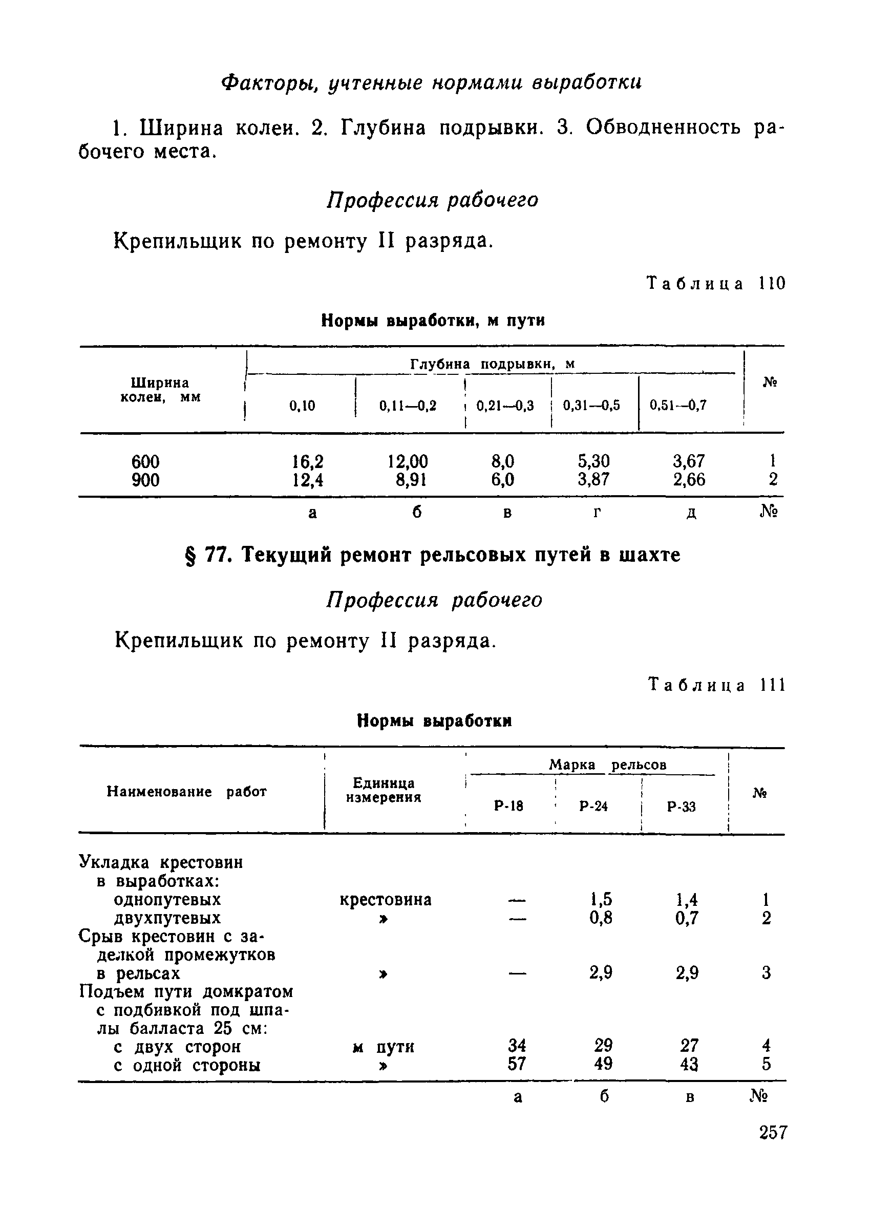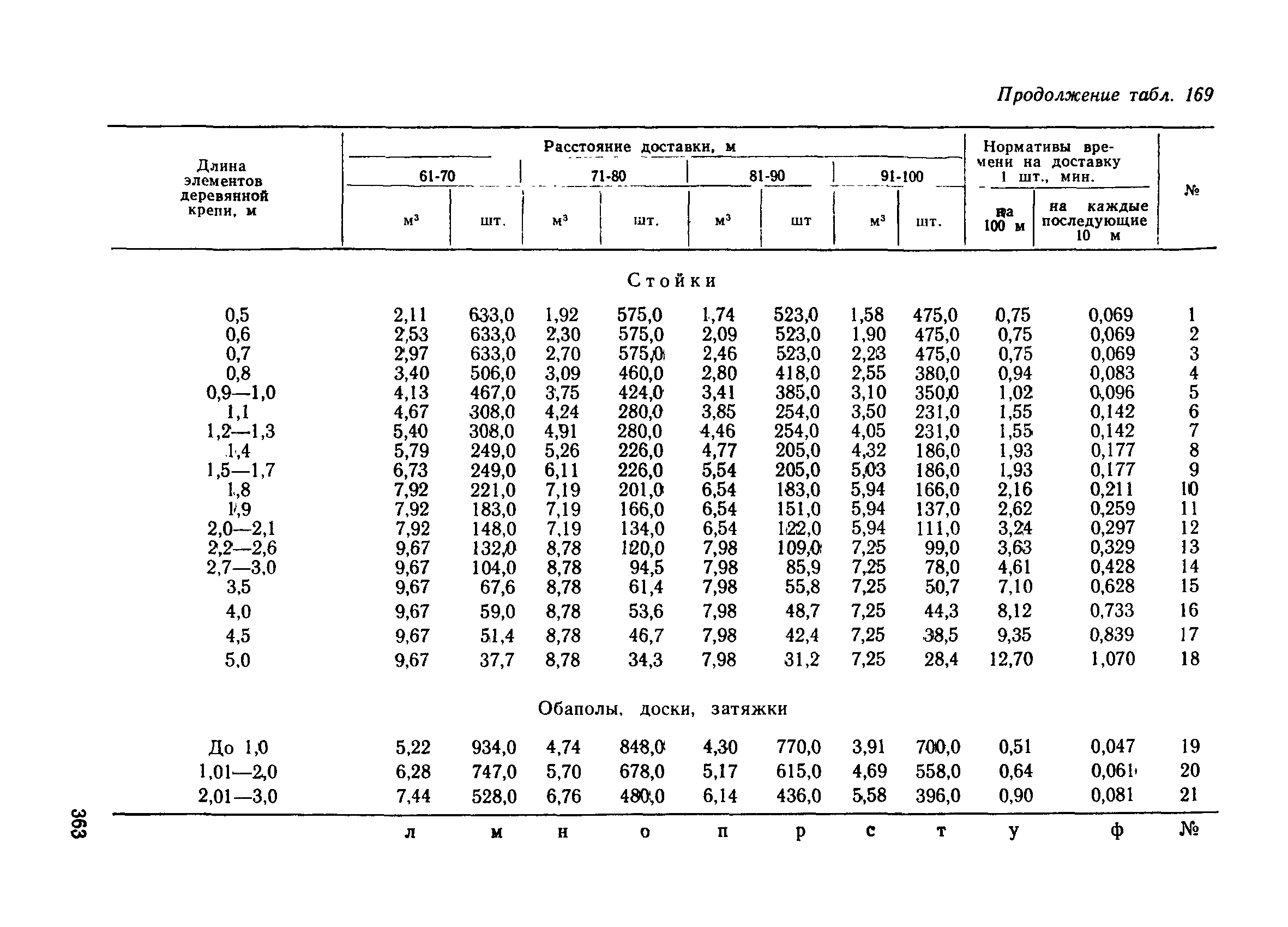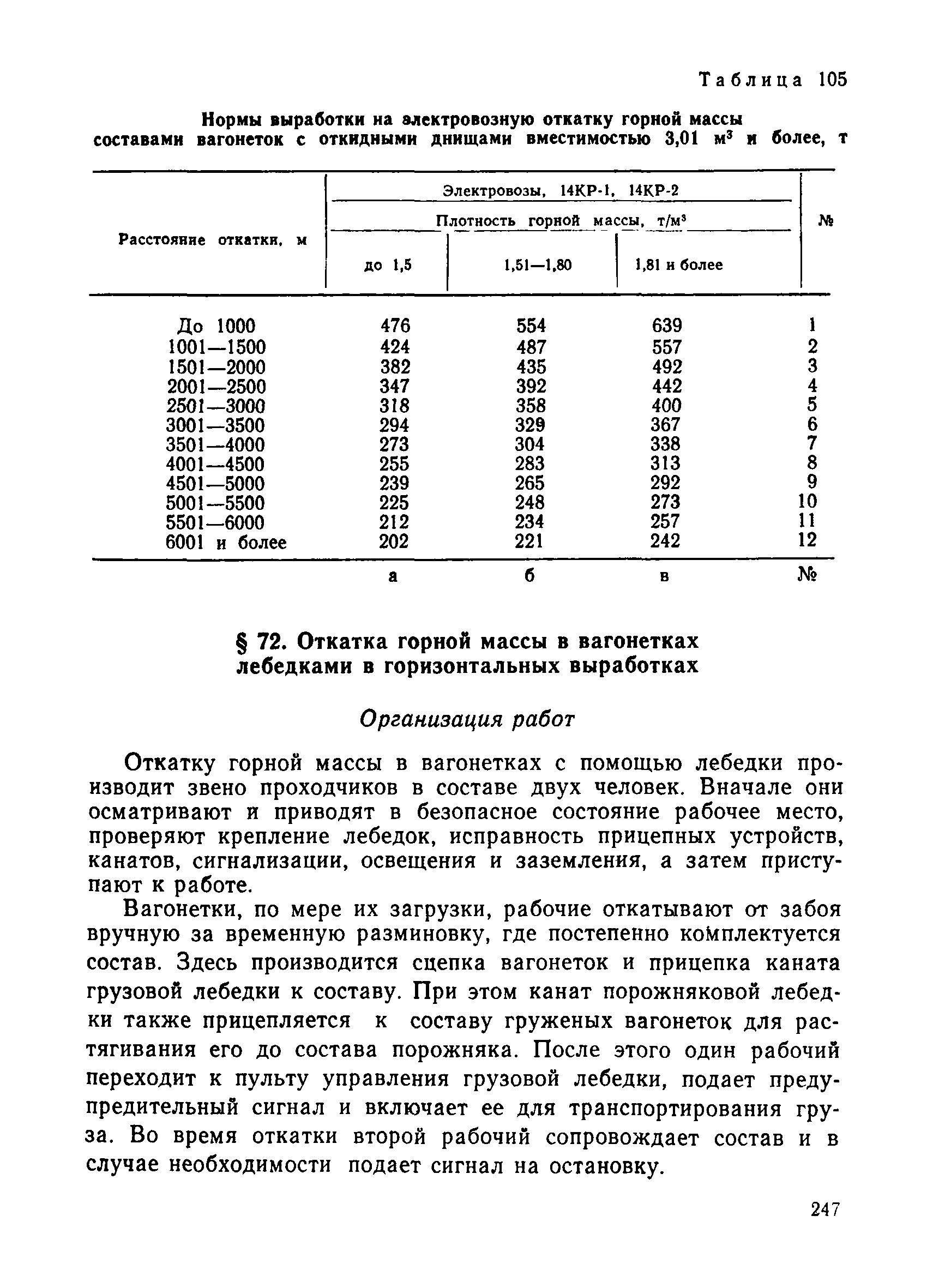 Единые нормы выработки (времени) для шахт производственного объединения "Приморскуголь"| Статус: | справочные материалы, мп, тпр | | Название рус.: | Единые нормы выработки (времени) для шахт производственного объединения "Приморскуголь" | | Дата добавления в базу: | 01.01.2018 | | Дата актуализации: | 01.01.2021 | | Область применения: | Единые нормы выработки (времени) обязательны для применения на всех действующих шахтах производственного объединения "Приморскуголь" | | Оглавление: | Общая часть Техническая часть Нормативная часть Раздел I. Очистные работы § 1. Выемка угля механизированными комплексами типа КМ-81 § 2. Выемка угля механизированными комплексами типов ОМКТ, ОКП, МК § 3. Выемка угля узкозахватными комбайнами типов КШ и ГШ-68 § 4. Оформление забоя после выемки угля узкозахватными комбайнами типов КШ и ГШ-68 § 5. Выемка угля узкозахватными комбайнами 1К-101, 2К-52, МК-67, БК-52 § 6. Оформление забоя после выемки угля узкозахватными комбайнами 1K-101, 2К-52, МК-67 и БК-52 § 7. Выемка угля комбайнами типов УКР, «Темп», КТ, А-70 в лавах на пластах наклонного и крутого падения § 8. Спуск (перегон) комбайнов типов УКР, «Темп», КТ, А-70 в лавах на пластах наклонного и крутого падения с передвижкой крана-балки § 9. Передвижка предохранительной лебедки 1ЛГКН § 10. Оформление забоя после выемки угля комбайнами типов УКР, «Темп», КТ, А-70 в лавах на пластах наклонного падения § 11. Выемка угля в лавах комбайном «Урал-2М» и подготовка его к выемке следующей полосы угля § 12. Оформление забоя после выемки угля комбайном «Урал-2М» § 13. Передвижка гидрофицированной посадочной крепи «Спутник» § 14. Выемка угля в лавах, оборудованных комбайнами К-56М A. Выемка угля Б. Разворот комбайна на пластах пологого падения B. Перегон комбайна § 15. Выемка угля проходческими комбайнами в очистных забоях на пластах пологого падения § 16. Навалоотбойка, навалка угля § 17. Бурение шпуров по углю ручными электросверлами (пневмосверлами) в лавах и камерах § 18. Уборка угля в очистных забоях с помощью скреперной установки § 19. Передвижка скреперной установки § 20. Выемка угля отбойными молотками § 21. Выемка угля с применением ВМ в очистных забоях на пластах крутого падения § 22. Крепление очистных забоев на пластах пологого и наклонного падения металлическими (клиновыми и гидравлическими) стойками § 23. Крепление очистных забоев деревянной крепью § 24. Возведение за комбайном временной деревянной крепи, предусмотренной паспортом крепления § 25. Навеска и снятие металлических шарнирных верхняков § 26. Затяжка кровли, почвы и забоя при креплении § 27. Передвижка специальной крепи типа ОКС на сопряжениях лав со штреками § 28. Установка рам на сопряжениях лав с прилегающими выработками § 29. Выбивка и извлечение металлических (клиновых и гидравлических) стоек в лавах на пластах пологого и наклонного падения при посадке кровли на металлическую органную крепь § 30. Возведение деревянной органной крепи § 31. Кладка и переноска деревянных костров § 32. Установка распорной крепи в очистных забоях § 33. Посадка кровли при помощи лебедки § 34. Бурение шпуров в стойках при посадке кровли с помощью малогабаритных патронов § 35. Передвижка перегружателей гидродомкратом при помощи упорной стойки § 36. Переноска рештаков (листов) в лавах на пластах пологого и наклонного падения § 37. Переноска деревянных рештаков (откосов) в лавах на пластах круто