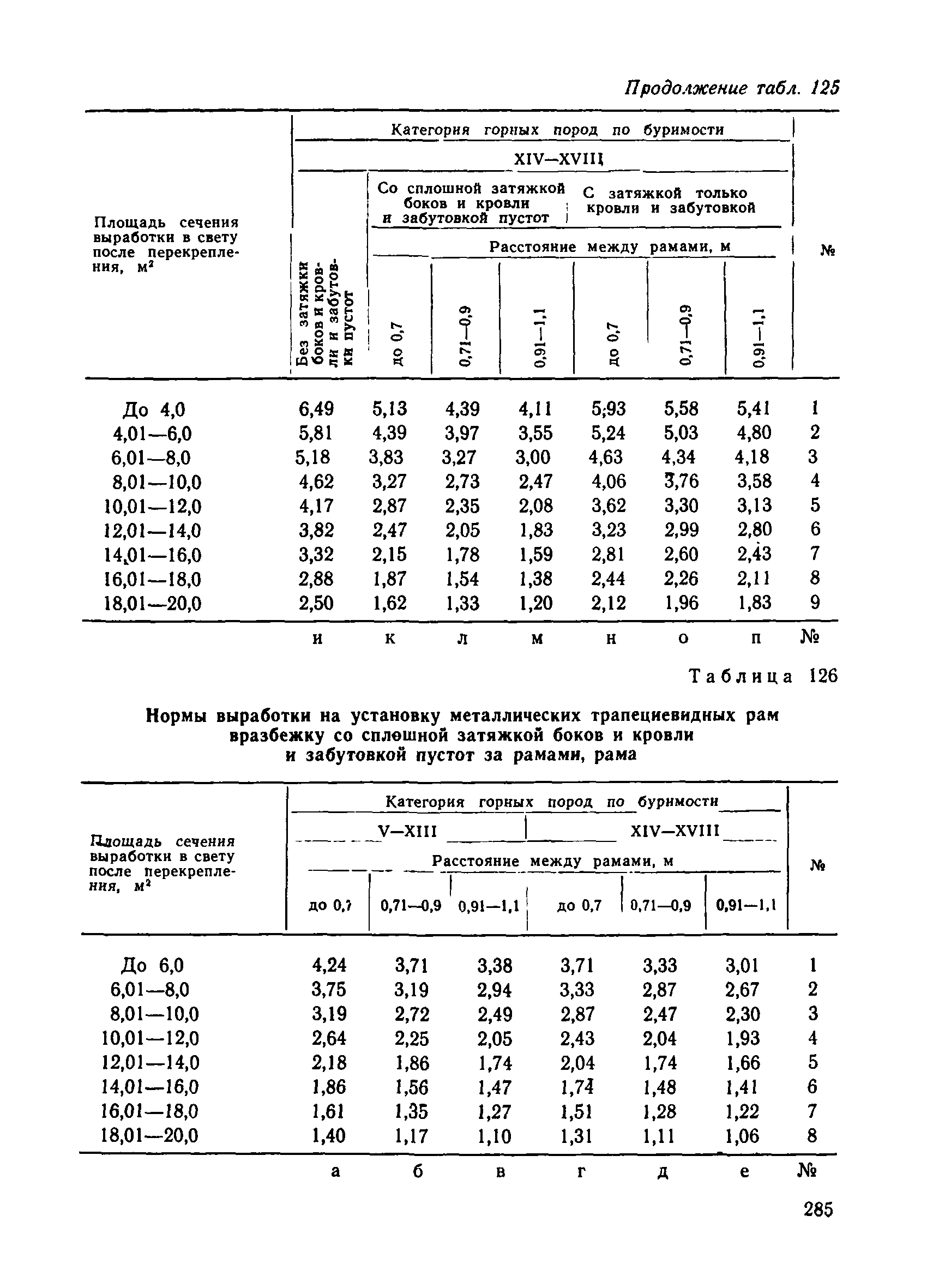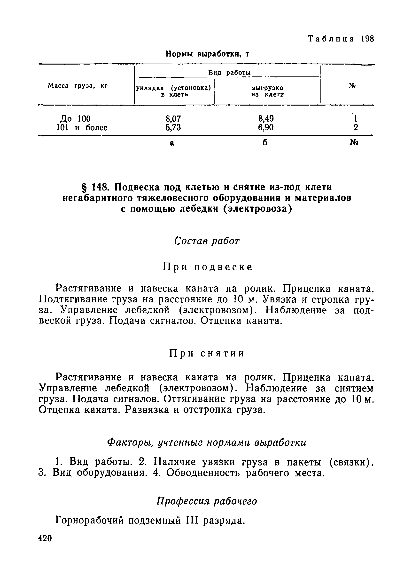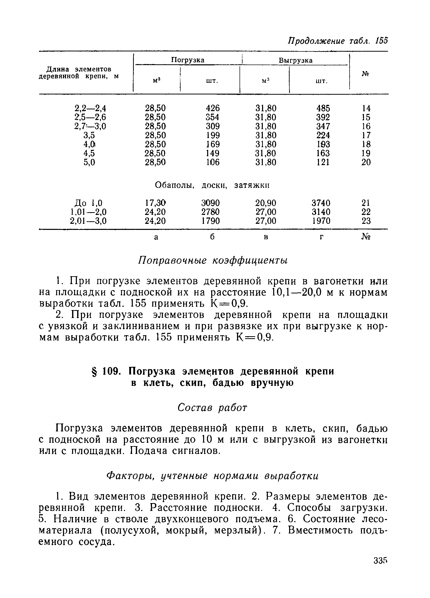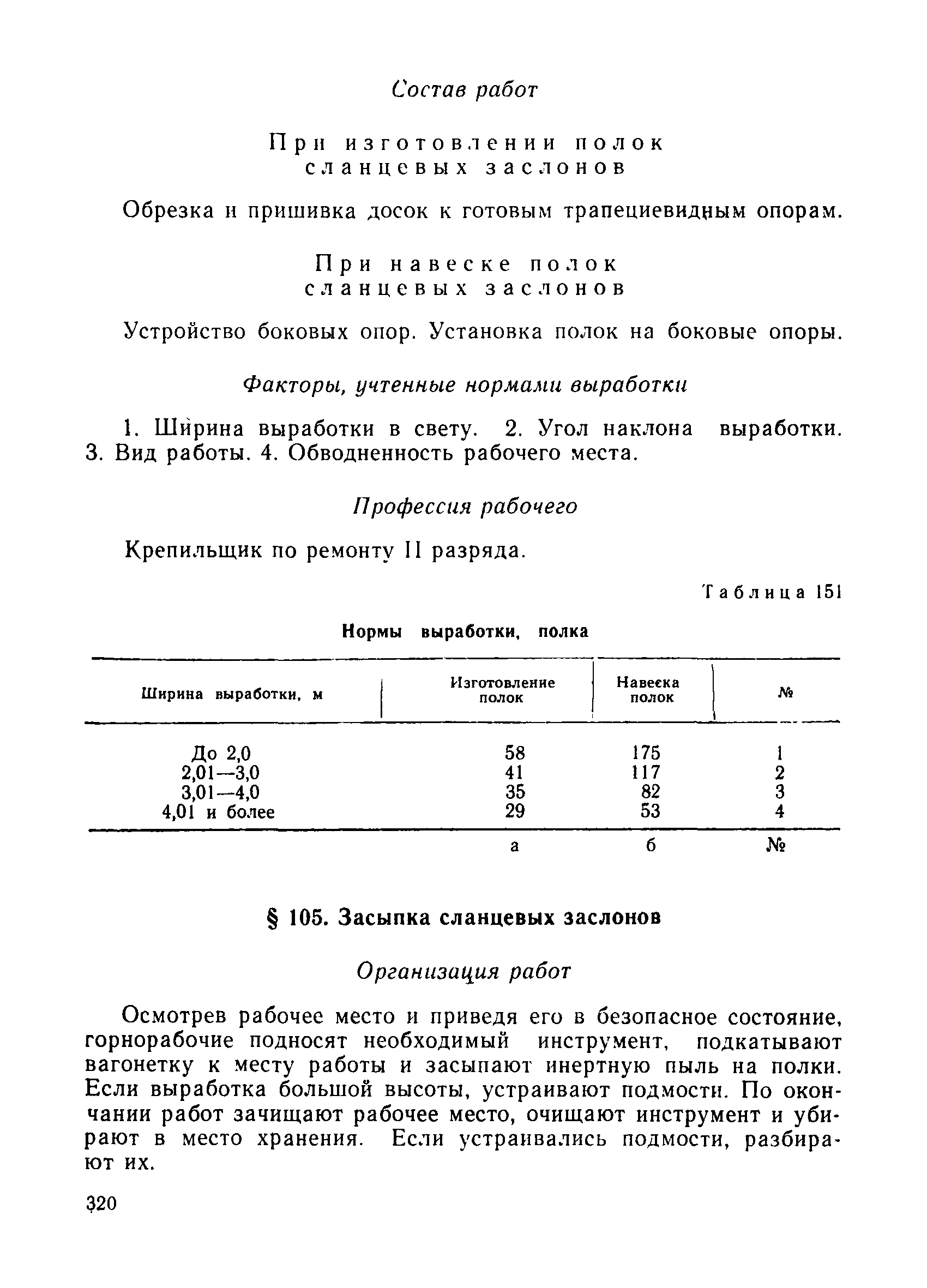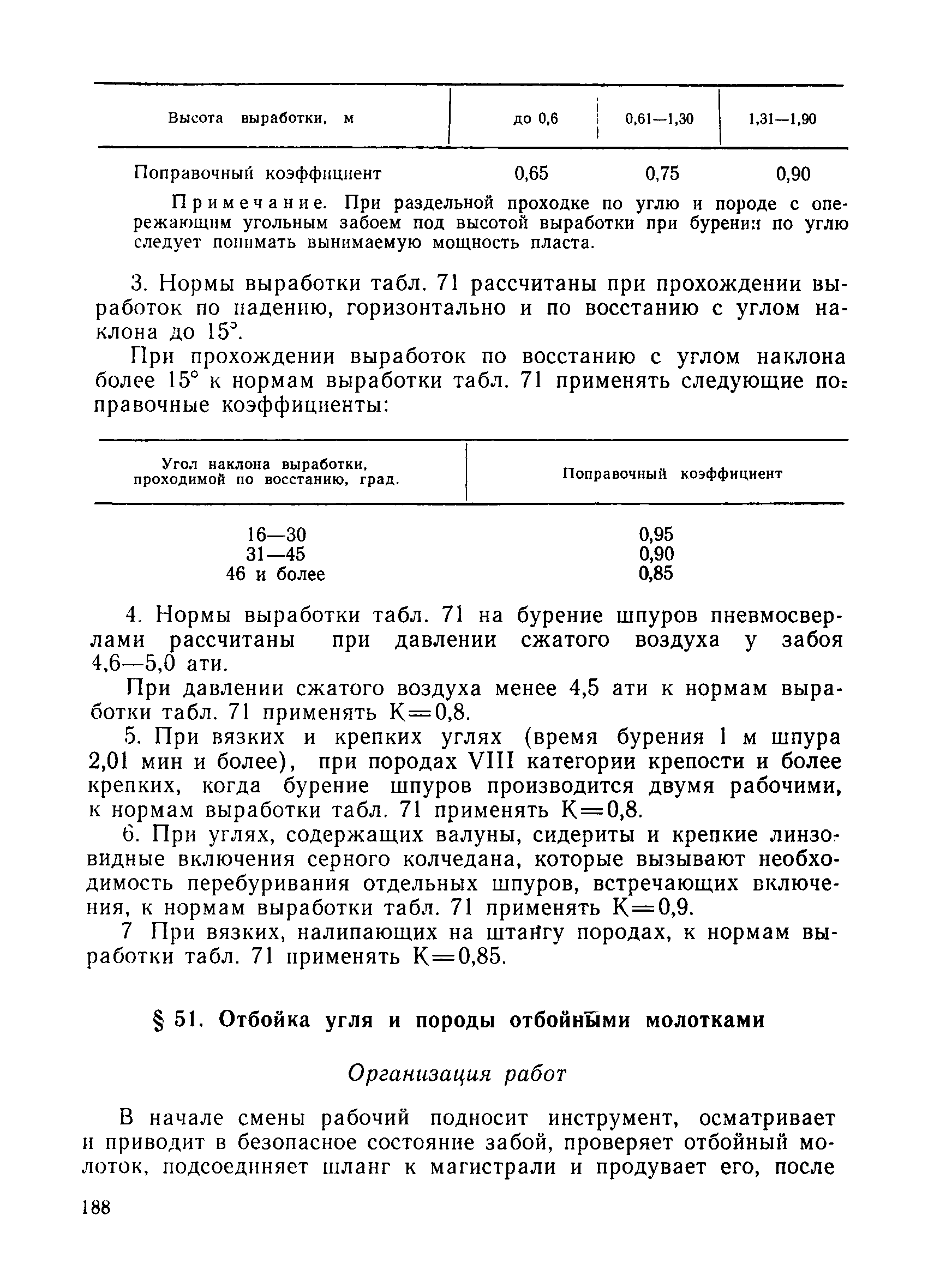 Единые нормы выработки (времени) для шахт производственного объединения "Приморскуголь"| Статус: | справочные материалы, мп, тпр | | Название рус.: | Единые нормы выработки (времени) для шахт производственного объединения "Приморскуголь" | | Дата добавления в базу: | 01.01.2018 | | Дата актуализации: | 01.01.2021 | | Область применения: | Единые нормы выработки (времени) обязательны для применения на всех действующих шахтах производственного объединения "Приморскуголь" | | Оглавление: | Общая часть Техническая часть Нормативная часть Раздел I. Очистные работы § 1. Выемка угля механизированными комплексами типа КМ-81 § 2. Выемка угля механизированными комплексами типов ОМКТ, ОКП, МК § 3. Выемка угля узкозахватными комбайнами типов КШ и ГШ-68 § 4. Оформление забоя после выемки угля узкозахватными комбайнами типов КШ и ГШ-68 § 5. Выемка угля узкозахватными комбайнами 1К-101, 2К-52, МК-67, БК-52 § 6. Оформление забоя после выемки угля узкозахватными комбайнами 1K-101, 2К-52, МК-67 и БК-52 § 7. Выемка угля комбайнами типов УКР, «Темп», КТ, А-70 в лавах на пластах наклонного и крутого падения § 8. Спуск (перегон) комбайнов типов УКР, «Темп», КТ, А-70 в лавах на пластах наклонного и крутого падения с передвижкой крана-балки § 9. Передвижка предохранительной лебедки 1ЛГКН § 10. Оформление забоя после выемки угля комбайнами типов УКР, «Темп», КТ, А-70 в лавах на пластах наклонного падения § 11. Выемка угля в лавах комбайном «Урал-2М» и подготовка его к выемке следующей полосы угля § 12. Оформление забоя после выемки угля комбайном «Урал-2М» § 13. Передвижка гидрофицированной посадочной крепи «Спутник» § 14. Выемка угля в лавах, оборудованных комбайнами К-56М A. Выемка угля Б. Разворот комбайна на пластах пологого падения B. Перегон комбайна § 15. Выемка угля проходческими комбайнами в очистных забоях на пластах пологого падения § 16. Навалоотбойка, навалка угля § 17. Бурение шпуров по углю ручными электросверлами (пневмосверлами) в лавах и камерах § 18. Уборка угля в очистных забоях с помощью скреперной установки § 19. Передвижка скреперной установки § 20. Выемка угля отбойными молотками § 21. Выемка угля с применением ВМ в очистных забоях на пластах крутого падения § 22. Крепление очистных забоев на пластах пологого и наклонного падения металлическими (клиновыми и гидравлическими) стойками § 23. Крепление очистных забоев деревянной крепью § 24. Возведение за комбайном временной деревянной крепи, предусмотренной паспортом крепления § 25. Навеска и снятие металлических шарнирных верхняков § 26. Затяжка кровли, почвы и забоя при креплении § 27. Передвижка специальной крепи типа ОКС на сопряжениях лав со штреками § 28. Установка рам на сопряжениях лав с прилегающими выработками § 29. Выбивка и извлечение металлических (клиновых и гидравлических) стоек в лавах на пластах пологого и наклонного падения при посадке кровли на металлическую органную крепь § 30. Возведение деревянной органной крепи § 31. Кладка и переноска деревянных костров § 32. Установка распорной крепи в очистных забоях § 33. Посадка кровли при помощи лебедки § 34. Бурение шпуров в стойках при посадке кровли с помощью малогабаритных патронов § 35. Передвижка перегружателей гидродомкратом при помощи упорной стойки § 36. Переноска рештаков (листов) в лавах на пластах пологого и наклонного падения § 37. Переноска деревянных рештаков (откосов) в лавах на пластах круто