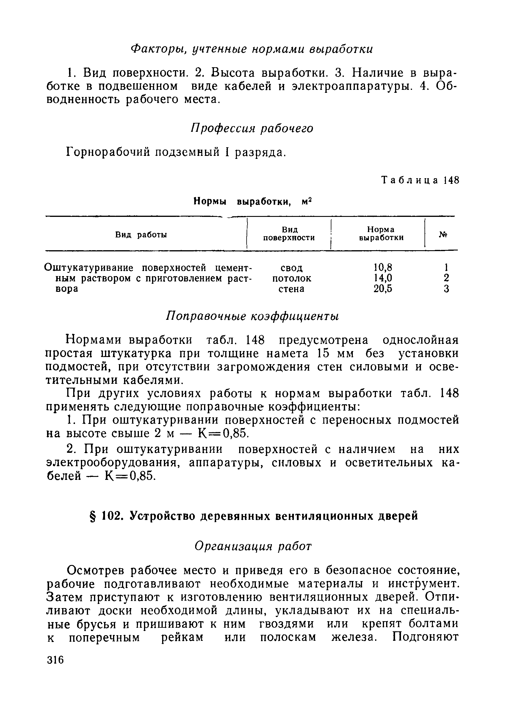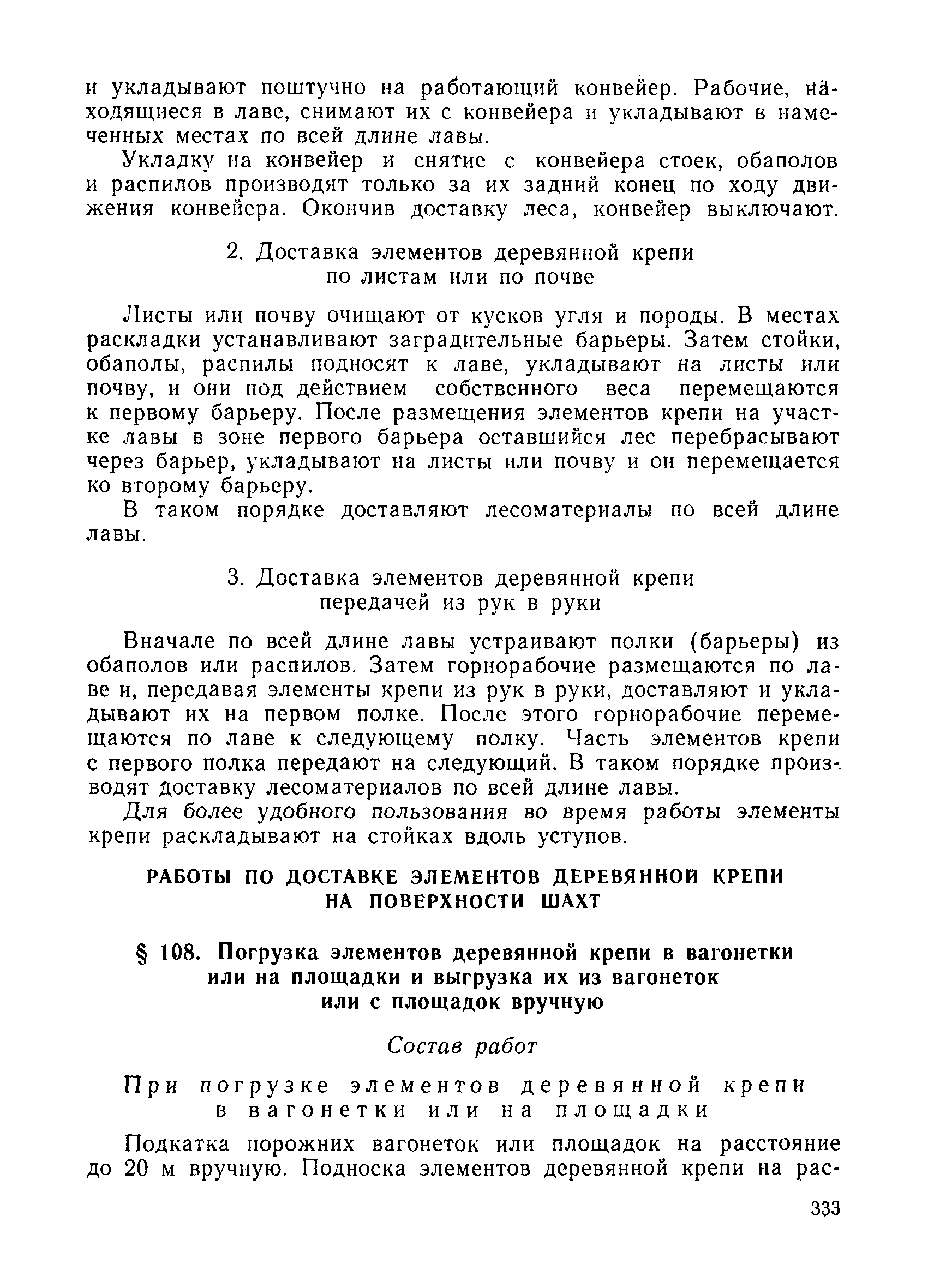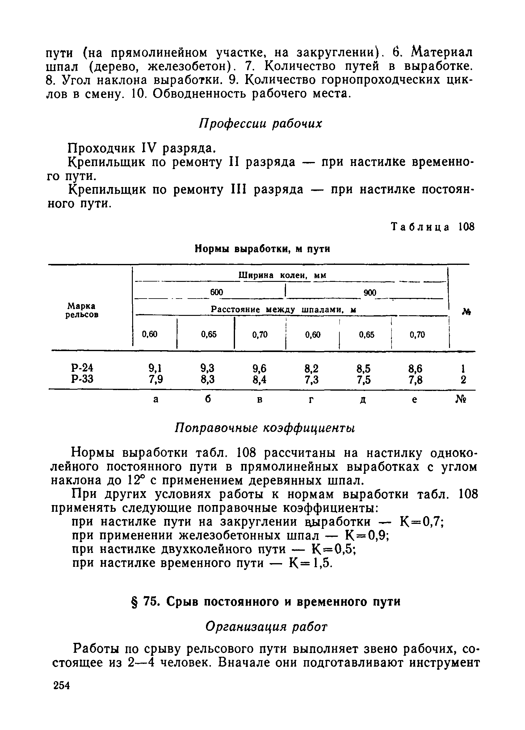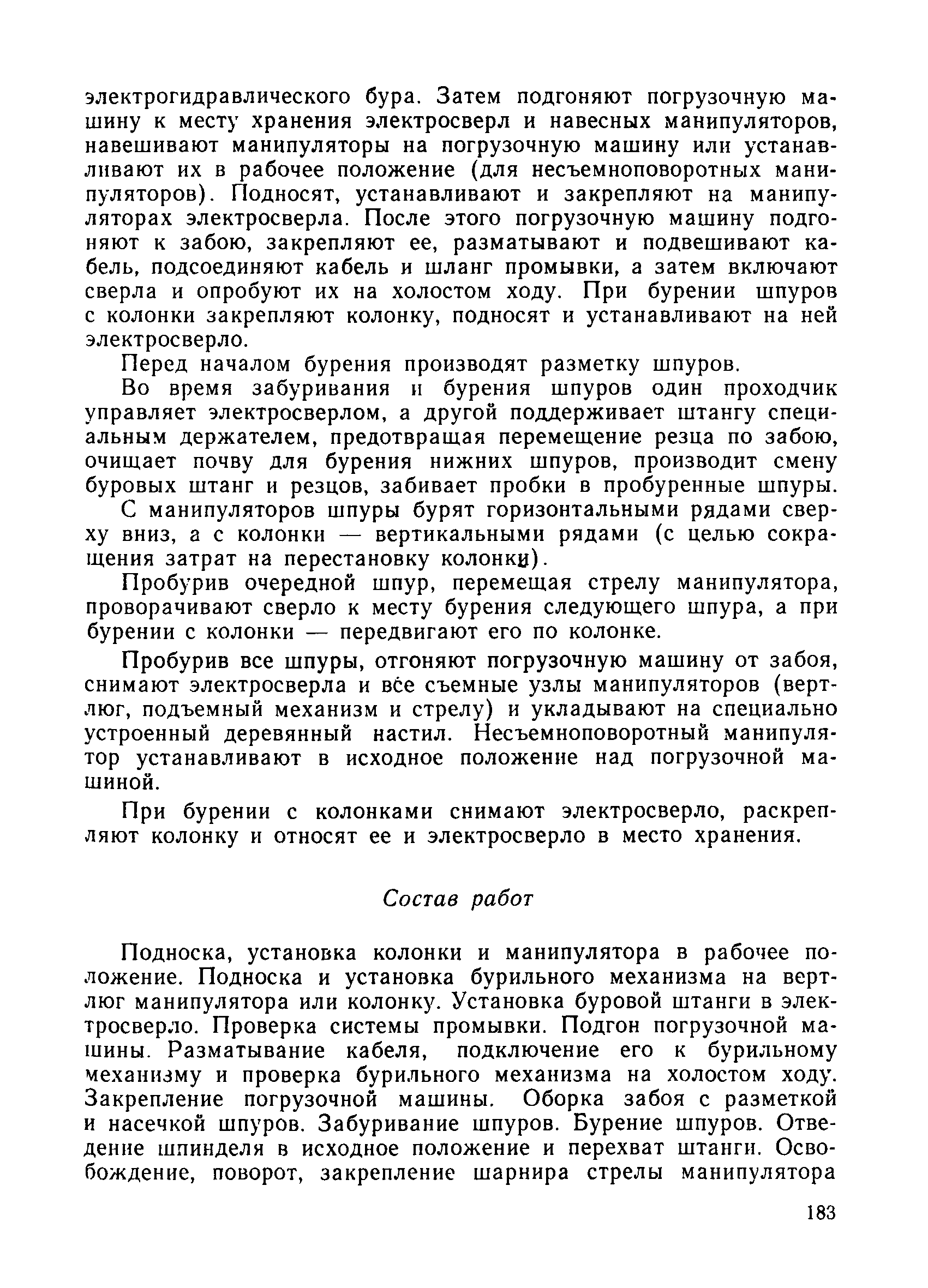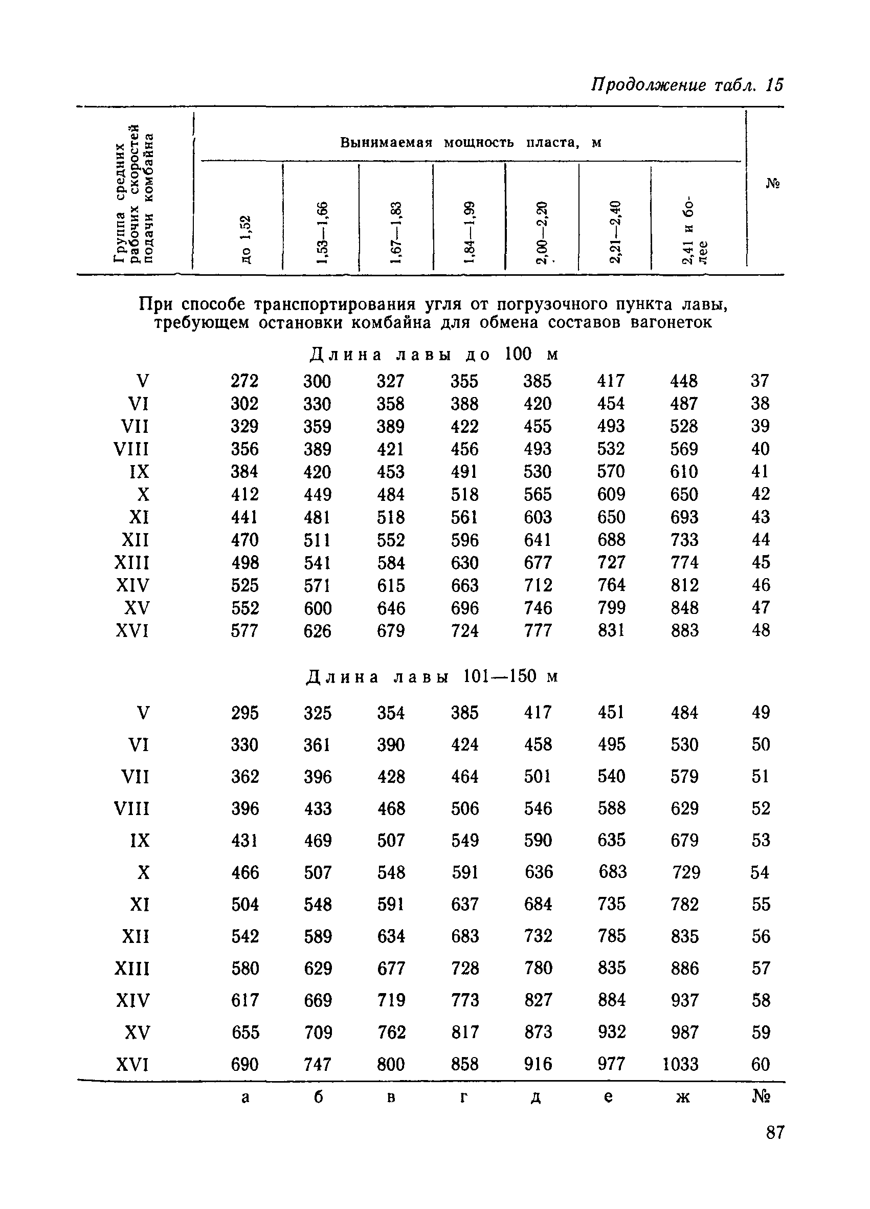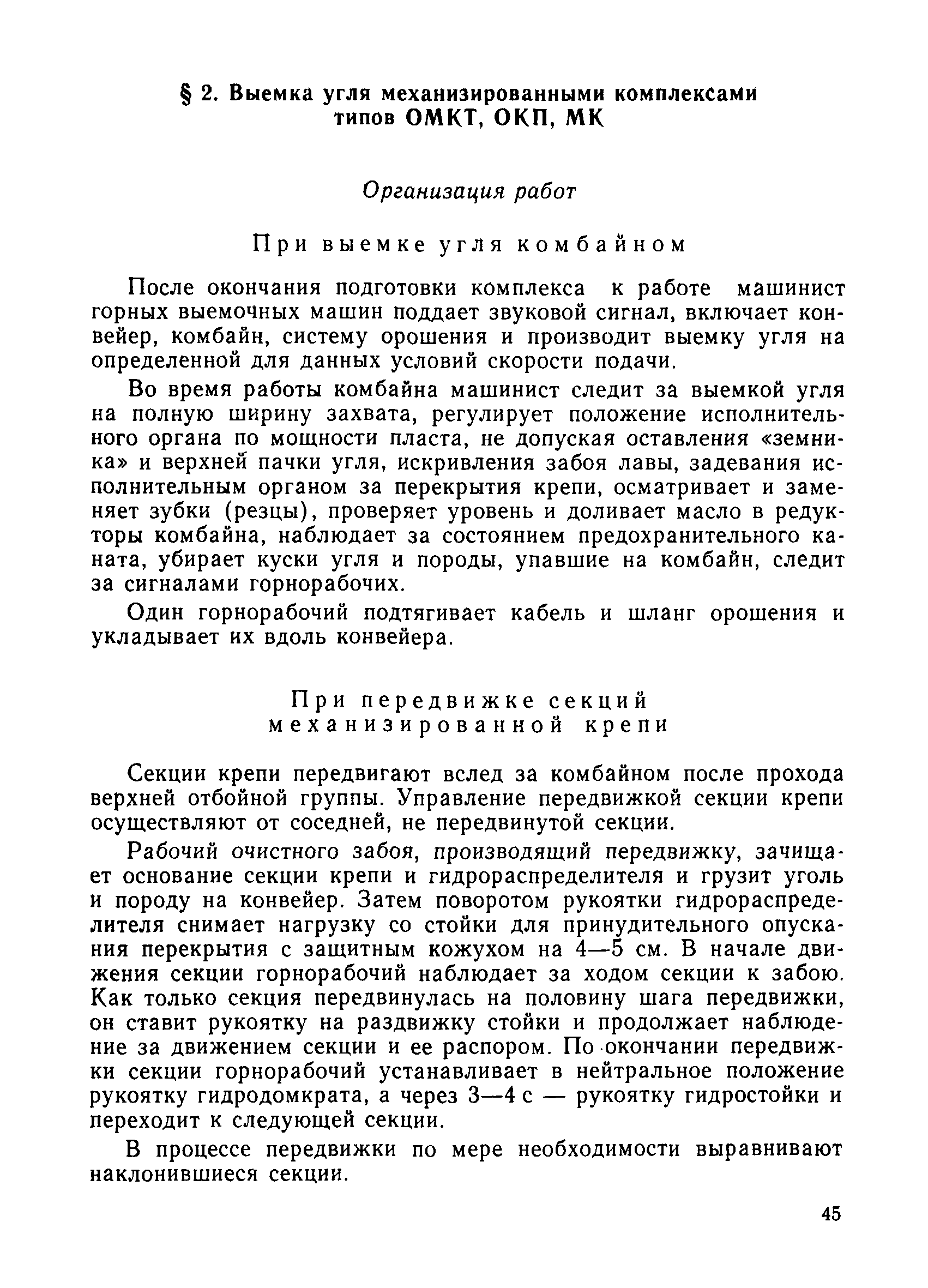 Единые нормы выработки (времени) для шахт производственного объединения "Приморскуголь"| Статус: | справочные материалы, мп, тпр | | Название рус.: | Единые нормы выработки (времени) для шахт производственного объединения "Приморскуголь" | | Дата добавления в базу: | 01.01.2018 | | Дата актуализации: | 01.01.2021 | | Область применения: | Единые нормы выработки (времени) обязательны для применения на всех действующих шахтах производственного объединения "Приморскуголь" | | Оглавление: | Общая часть Техническая часть Нормативная часть Раздел I. Очистные работы § 1. Выемка угля механизированными комплексами типа КМ-81 § 2. Выемка угля механизированными комплексами типов ОМКТ, ОКП, МК § 3. Выемка угля узкозахватными комбайнами типов КШ и ГШ-68 § 4. Оформление забоя после выемки угля узкозахватными комбайнами типов КШ и ГШ-68 § 5. Выемка угля узкозахватными комбайнами 1К-101, 2К-52, МК-67, БК-52 § 6. Оформление забоя после выемки угля узкозахватными комбайнами 1K-101, 2К-52, МК-67 и БК-52 § 7. Выемка угля комбайнами типов УКР, «Темп», КТ, А-70 в лавах на пластах наклонного и крутого падения § 8. Спуск (перегон) комбайнов типов УКР, «Темп», КТ, А-70 в лавах на пластах наклонного и крутого падения с передвижкой крана-балки § 9. Передвижка предохранительной лебедки 1ЛГКН § 10. Оформление забоя после выемки угля комбайнами типов УКР, «Темп», КТ, А-70 в лавах на пластах наклонного падения § 11. Выемка угля в лавах комбайном «Урал-2М» и подготовка его к выемке следующей полосы угля § 12. Оформление забоя после выемки угля комбайном «Урал-2М» § 13. Передвижка гидрофицированной посадочной крепи «Спутник» § 14. Выемка угля в лавах, оборудованных комбайнами К-56М A. Выемка угля Б. Разворот комбайна на пластах пологого падения B. Перегон комбайна § 15. Выемка угля проходческими комбайнами в очистных забоях на пластах пологого падения § 16. Навалоотбойка, навалка угля § 17. Бурение шпуров по углю ручными электросверлами (пневмосверлами) в лавах и камерах § 18. Уборка угля в очистных забоях с помощью скреперной установки § 19. Передвижка скреперной установки § 20. Выемка угля отбойными молотками § 21. Выемка угля с применением ВМ в очистных забоях на пластах крутого падения § 22. Крепление очистных забоев на пластах пологого и наклонного падения металлическими (клиновыми и гидравлическими) стойками § 23. Крепление очистных забоев деревянной крепью § 24. Возведение за комбайном временной деревянной крепи, предусмотренной паспортом крепления § 25. Навеска и снятие металлических шарнирных верхняков § 26. Затяжка кровли, почвы и забоя при креплении § 27. Передвижка специальной крепи типа ОКС на сопряжениях лав со штреками § 28. Установка рам на сопряжениях лав с прилегающими выработками § 29. Выбивка и извлечение металлических (клиновых и гидравлических) стоек в лавах на пластах пологого и наклонного падения при посадке кровли на металлическую органную крепь § 30. Возведение деревянной органной крепи § 31. Кладка и переноска деревянных костров § 32. Установка распорной крепи в очистных забоях § 33. Посадка кровли при помощи лебедки § 34. Бурение шпуров в стойках при посадке кровли с помощью малогабаритных патронов § 35. Передвижка перегружателей гидродомкратом при помощи упорной стойки § 36. Переноска рештаков (листов) в лавах на пластах пологого и наклонного падения § 37. Переноска деревянных рештаков (откосов) в лавах на пластах круто