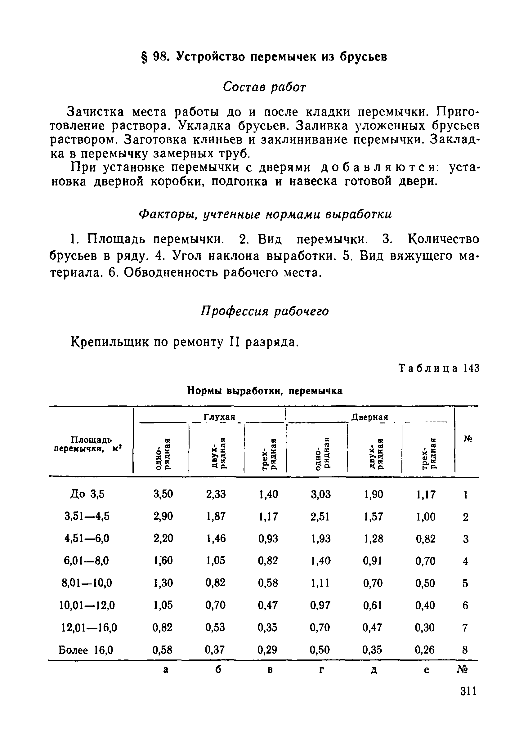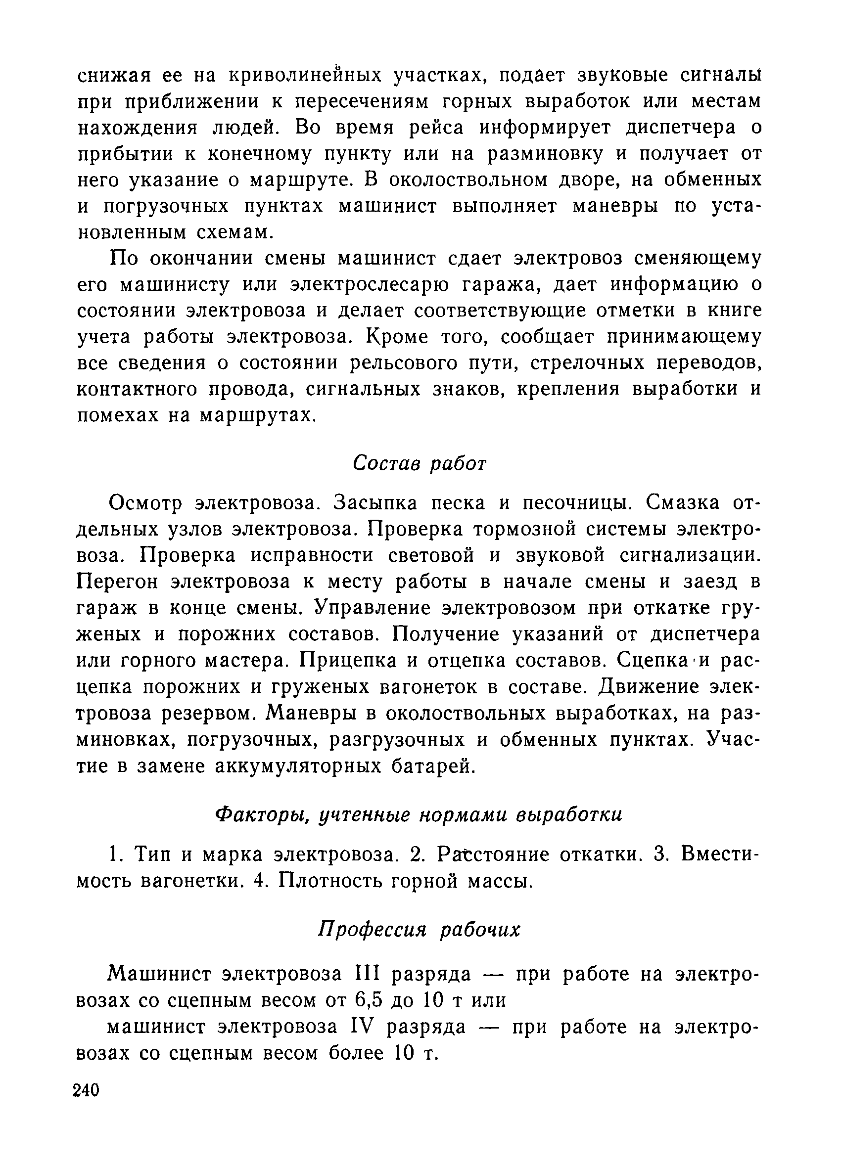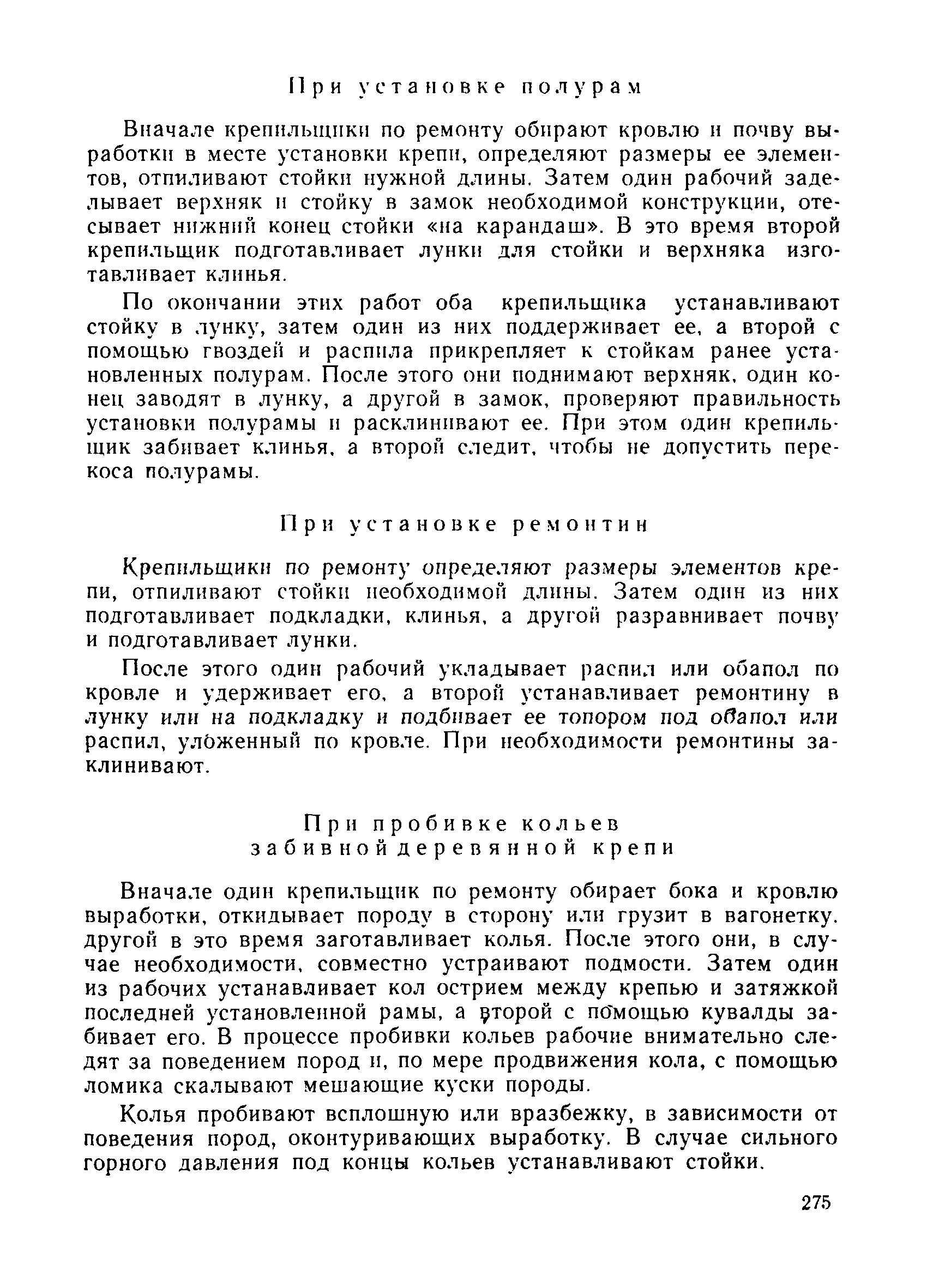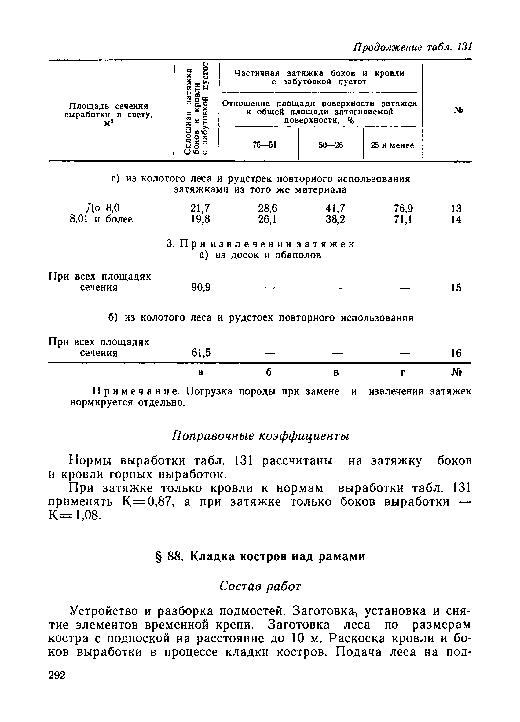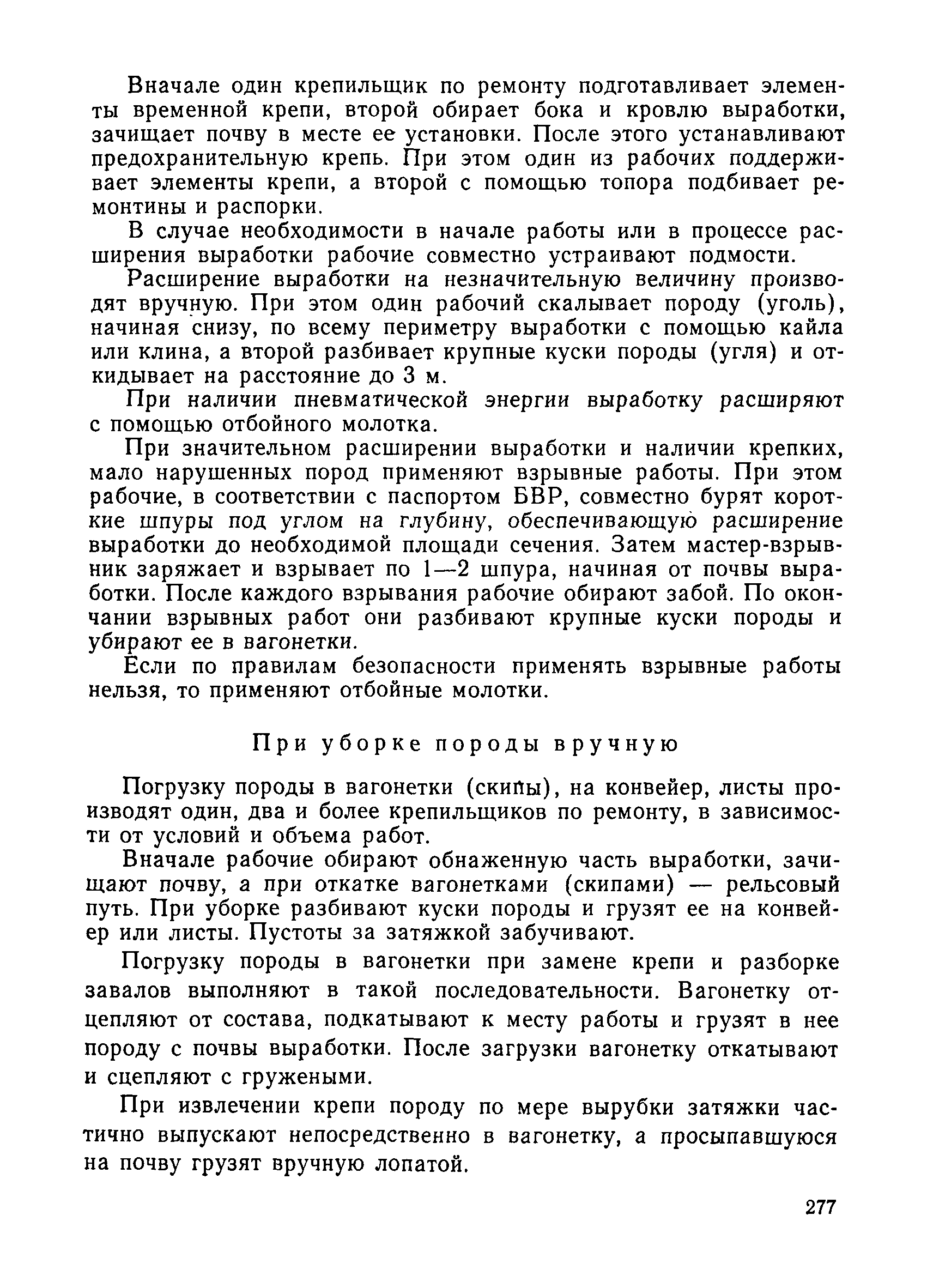 Единые нормы выработки (времени) для шахт производственного объединения "Приморскуголь"| Статус: | справочные материалы, мп, тпр | | Название рус.: | Единые нормы выработки (времени) для шахт производственного объединения "Приморскуголь" | | Дата добавления в базу: | 01.01.2018 | | Дата актуализации: | 01.01.2021 | | Область применения: | Единые нормы выработки (времени) обязательны для применения на всех действующих шахтах производственного объединения "Приморскуголь" | | Оглавление: | Общая часть Техническая часть Нормативная часть Раздел I. Очистные работы § 1. Выемка угля механизированными комплексами типа КМ-81 § 2. Выемка угля механизированными комплексами типов ОМКТ, ОКП, МК § 3. Выемка угля узкозахватными комбайнами типов КШ и ГШ-68 § 4. Оформление забоя после выемки угля узкозахватными комбайнами типов КШ и ГШ-68 § 5. Выемка угля узкозахватными комбайнами 1К-101, 2К-52, МК-67, БК-52 § 6. Оформление забоя после выемки угля узкозахватными комбайнами 1K-101, 2К-52, МК-67 и БК-52 § 7. Выемка угля комбайнами типов УКР, «Темп», КТ, А-70 в лавах на пластах наклонного и крутого падения § 8. Спуск (перегон) комбайнов типов УКР, «Темп», КТ, А-70 в лавах на пластах наклонного и крутого падения с передвижкой крана-балки § 9. Передвижка предохранительной лебедки 1ЛГКН § 10. Оформление забоя после выемки угля комбайнами типов УКР, «Темп», КТ, А-70 в лавах на пластах наклонного падения § 11. Выемка угля в лавах комбайном «Урал-2М» и подготовка его к выемке следующей полосы угля § 12. Оформление забоя после выемки угля комбайном «Урал-2М» § 13. Передвижка гидрофицированной посадочной крепи «Спутник» § 14. Выемка угля в лавах, оборудованных комбайнами К-56М A. Выемка угля Б. Разворот комбайна на пластах пологого падения B. Перегон комбайна § 15. Выемка угля проходческими комбайнами в очистных забоях на пластах пологого падения § 16. Навалоотбойка, навалка угля § 17. Бурение шпуров по углю ручными электросверлами (пневмосверлами) в лавах и камерах § 18. Уборка угля в очистных забоях с помощью скреперной установки § 19. Передвижка скреперной установки § 20. Выемка угля отбойными молотками § 21. Выемка угля с применением ВМ в очистных забоях на пластах крутого падения § 22. Крепление очистных забоев на пластах пологого и наклонного падения металлическими (клиновыми и гидравлическими) стойками § 23. Крепление очистных забоев деревянной крепью § 24. Возведение за комбайном временной деревянной крепи, предусмотренной паспортом крепления § 25. Навеска и снятие металлических шарнирных верхняков § 26. Затяжка кровли, почвы и забоя при креплении § 27. Передвижка специальной крепи типа ОКС на сопряжениях лав со штреками § 28. Установка рам на сопряжениях лав с прилегающими выработками § 29. Выбивка и извлечение металлических (клиновых и гидравлических) стоек в лавах на пластах пологого и наклонного падения при посадке кровли на металлическую органную крепь § 30. Возведение деревянной органной крепи § 31. Кладка и переноска деревянных костров § 32. Установка распорной крепи в очистных забоях § 33. Посадка кровли при помощи лебедки § 34. Бурение шпуров в стойках при посадке кровли с помощью малогабаритных патронов § 35. Передвижка перегружателей гидродомкратом при помощи упорной стойки § 36. Переноска рештаков (листов) в лавах на пластах пологого и наклонного падения § 37. Переноска деревянных рештаков (откосов) в лавах на пластах круто