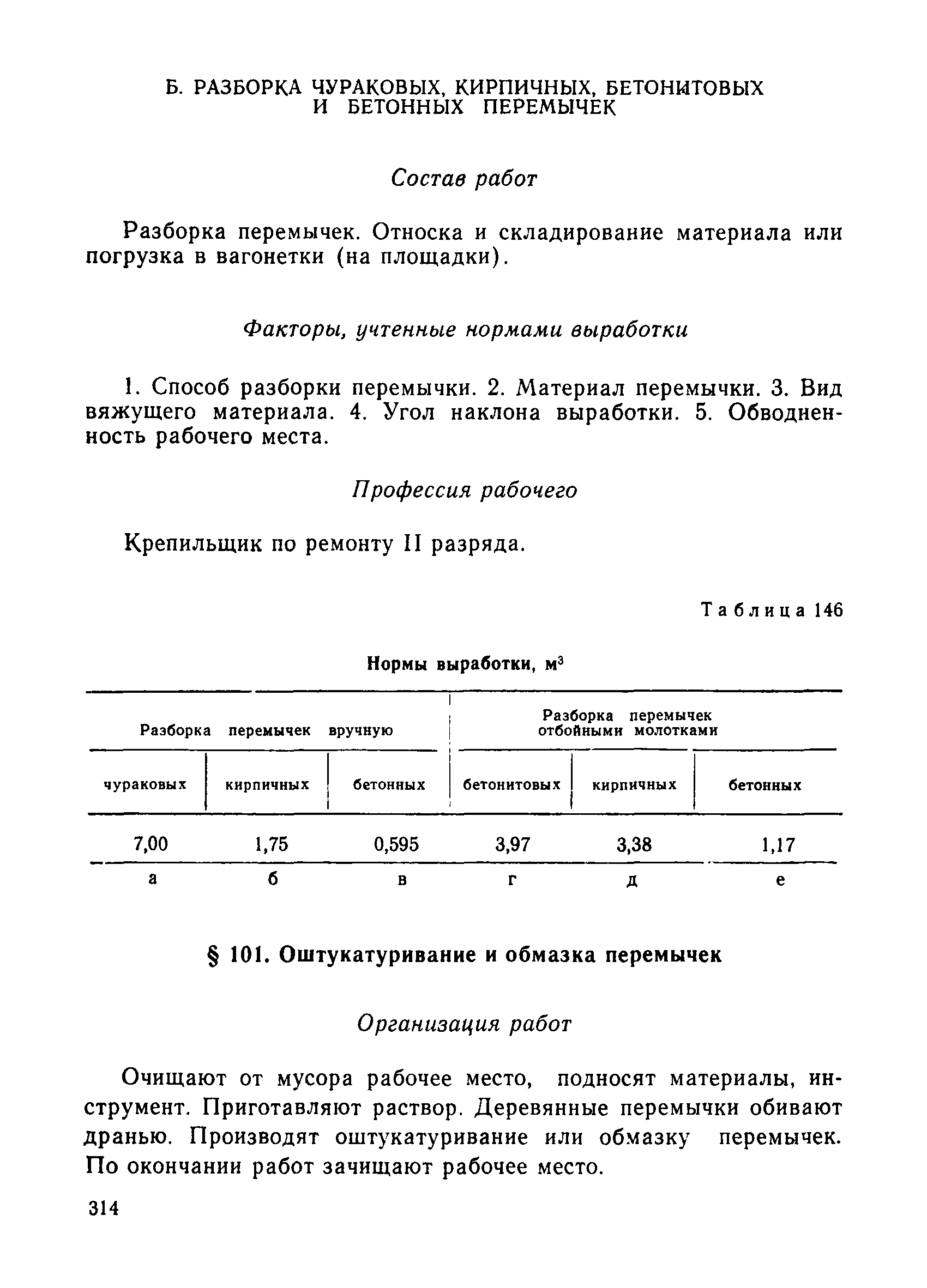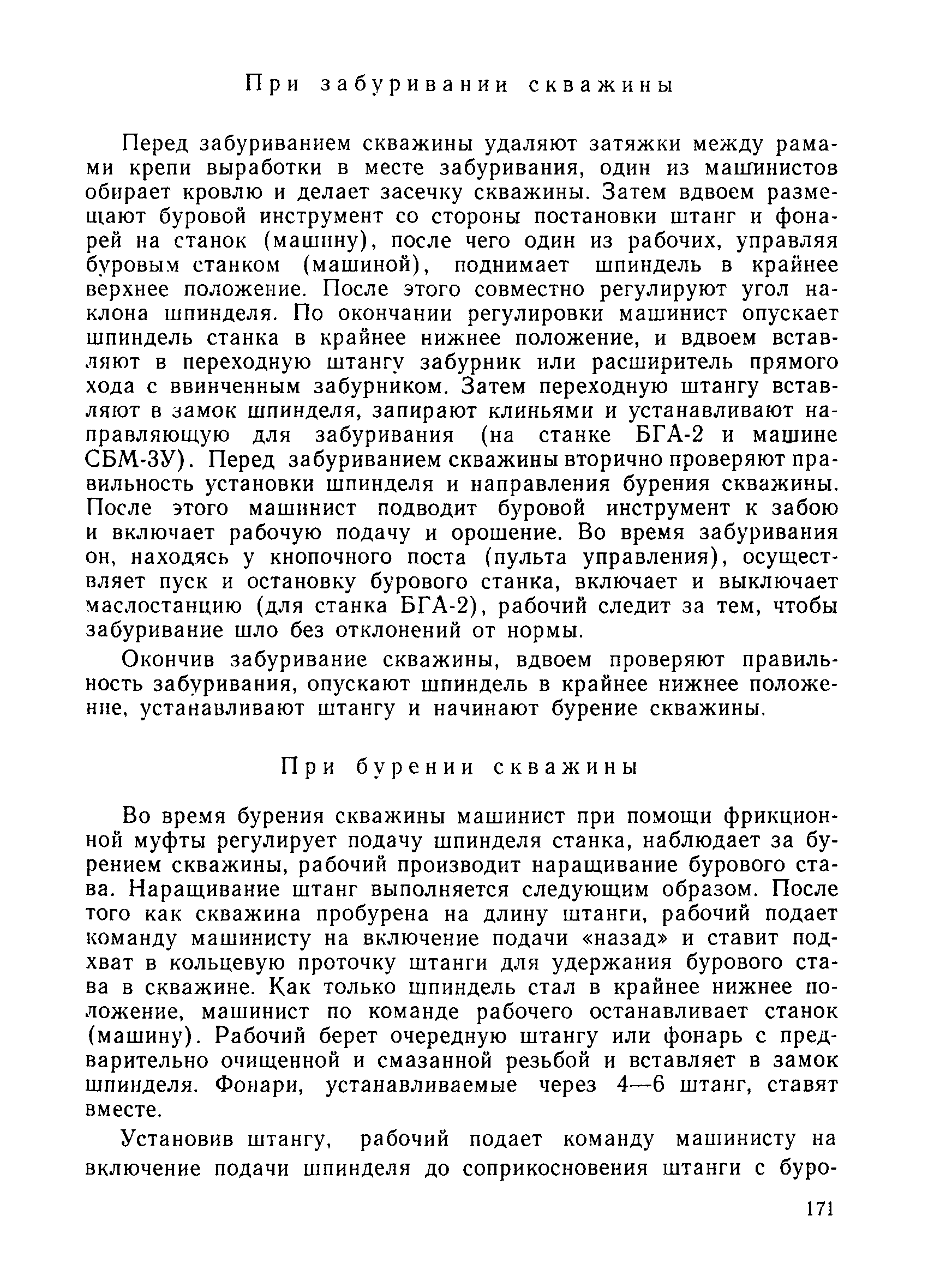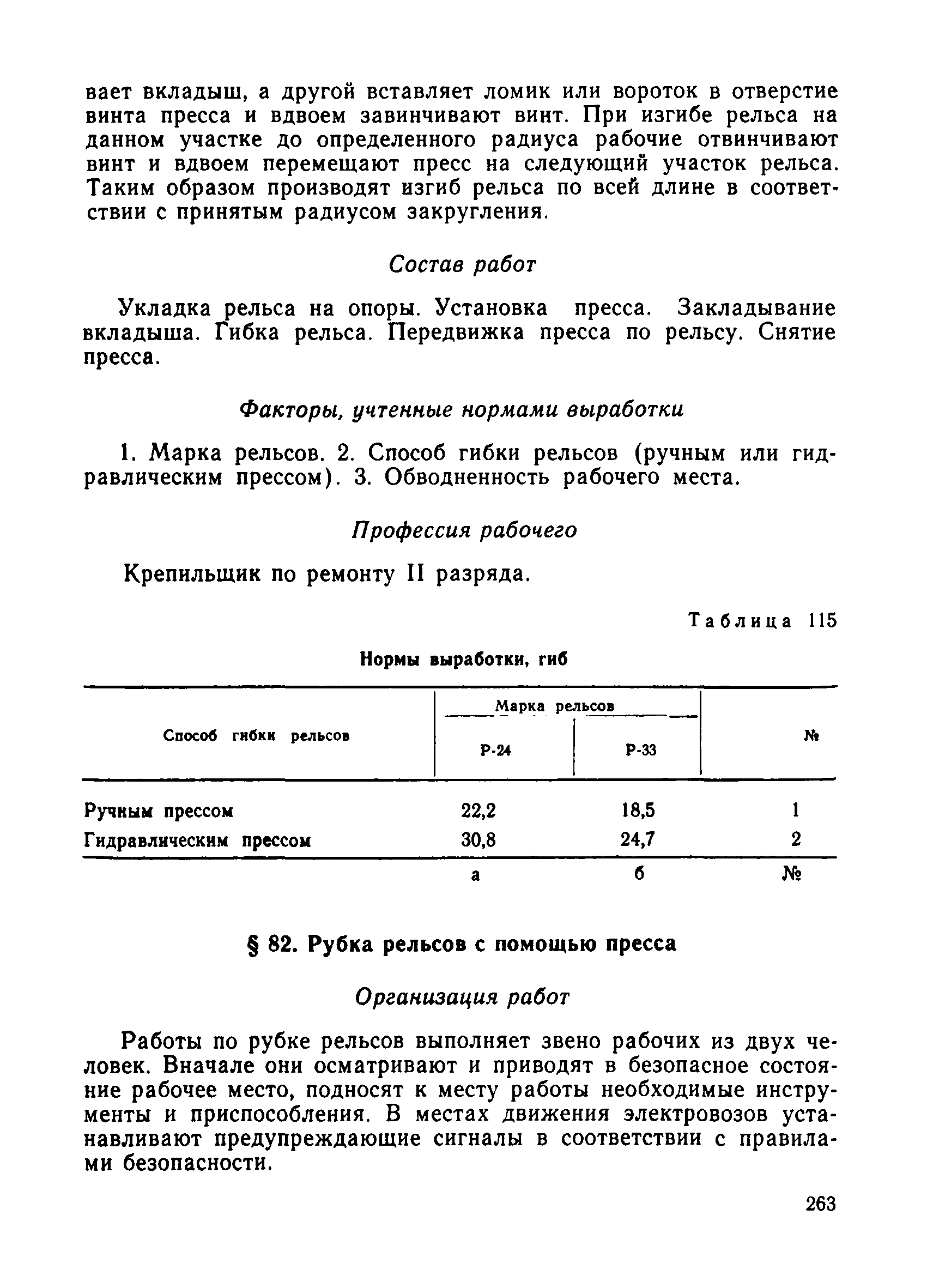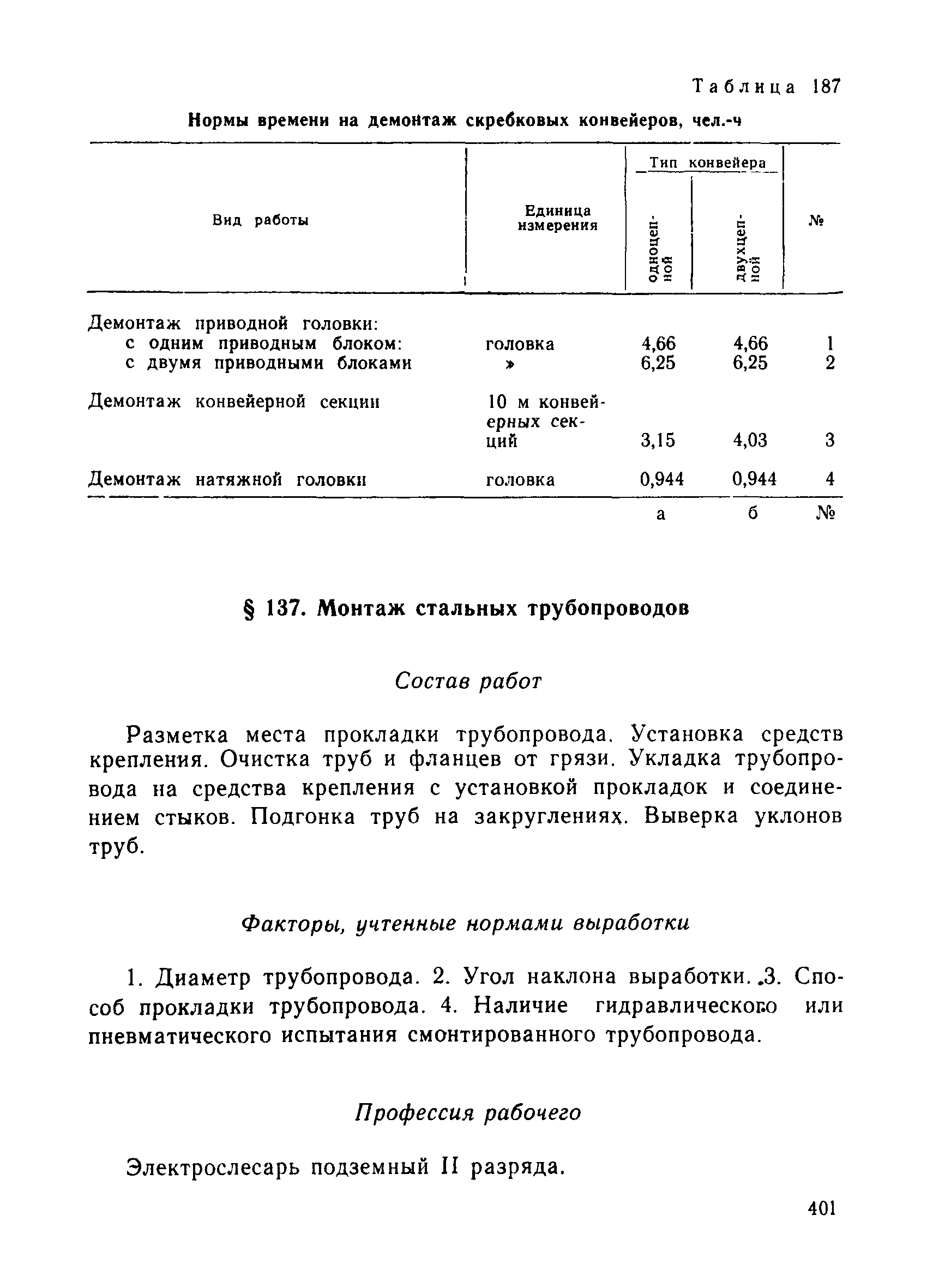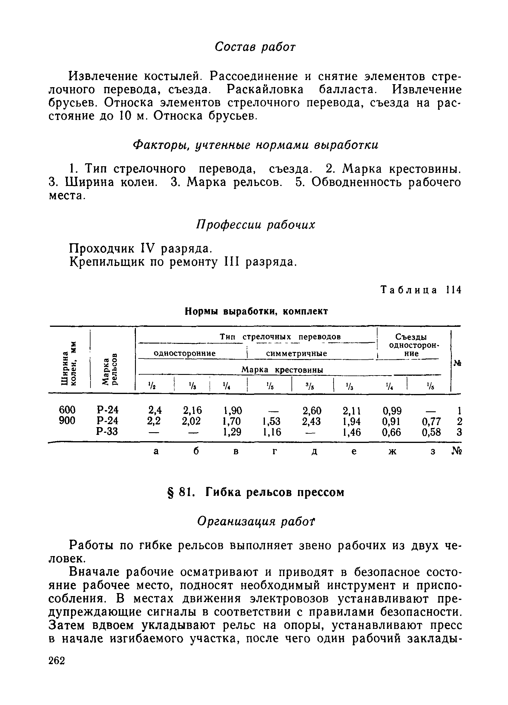 Единые нормы выработки (времени) для шахт производственного объединения "Приморскуголь"| Статус: | справочные материалы, мп, тпр | | Название рус.: | Единые нормы выработки (времени) для шахт производственного объединения "Приморскуголь" | | Дата добавления в базу: | 01.01.2018 | | Дата актуализации: | 01.01.2021 | | Область применения: | Единые нормы выработки (времени) обязательны для применения на всех действующих шахтах производственного объединения "Приморскуголь" | | Оглавление: | Общая часть Техническая часть Нормативная часть Раздел I. Очистные работы § 1. Выемка угля механизированными комплексами типа КМ-81 § 2. Выемка угля механизированными комплексами типов ОМКТ, ОКП, МК § 3. Выемка угля узкозахватными комбайнами типов КШ и ГШ-68 § 4. Оформление забоя после выемки угля узкозахватными комбайнами типов КШ и ГШ-68 § 5. Выемка угля узкозахватными комбайнами 1К-101, 2К-52, МК-67, БК-52 § 6. Оформление забоя после выемки угля узкозахватными комбайнами 1K-101, 2К-52, МК-67 и БК-52 § 7. Выемка угля комбайнами типов УКР, «Темп», КТ, А-70 в лавах на пластах наклонного и крутого падения § 8. Спуск (перегон) комбайнов типов УКР, «Темп», КТ, А-70 в лавах на пластах наклонного и крутого падения с передвижкой крана-балки § 9. Передвижка предохранительной лебедки 1ЛГКН § 10. Оформление забоя после выемки угля комбайнами типов УКР, «Темп», КТ, А-70 в лавах на пластах наклонного падения § 11. Выемка угля в лавах комбайном «Урал-2М» и подготовка его к выемке следующей полосы угля § 12. Оформление забоя после выемки угля комбайном «Урал-2М» § 13. Передвижка гидрофицированной посадочной крепи «Спутник» § 14. Выемка угля в лавах, оборудованных комбайнами К-56М A. Выемка угля Б. Разворот комбайна на пластах пологого падения B. Перегон комбайна § 15. Выемка угля проходческими комбайнами в очистных забоях на пластах пологого падения § 16. Навалоотбойка, навалка угля § 17. Бурение шпуров по углю ручными электросверлами (пневмосверлами) в лавах и камерах § 18. Уборка угля в очистных забоях с помощью скреперной установки § 19. Передвижка скреперной установки § 20. Выемка угля отбойными молотками § 21. Выемка угля с применением ВМ в очистных забоях на пластах крутого падения § 22. Крепление очистных забоев на пластах пологого и наклонного падения металлическими (клиновыми и гидравлическими) стойками § 23. Крепление очистных забоев деревянной крепью § 24. Возведение за комбайном временной деревянной крепи, предусмотренной паспортом крепления § 25. Навеска и снятие металлических шарнирных верхняков § 26. Затяжка кровли, почвы и забоя при креплении § 27. Передвижка специальной крепи типа ОКС на сопряжениях лав со штреками § 28. Установка рам на сопряжениях лав с прилегающими выработками § 29. Выбивка и извлечение металлических (клиновых и гидравлических) стоек в лавах на пластах пологого и наклонного падения при посадке кровли на металлическую органную крепь § 30. Возведение деревянной органной крепи § 31. Кладка и переноска деревянных костров § 32. Установка распорной крепи в очистных забоях § 33. Посадка кровли при помощи лебедки § 34. Бурение шпуров в стойках при посадке кровли с помощью малогабаритных патронов § 35. Передвижка перегружателей гидродомкратом при помощи упорной стойки § 36. Переноска рештаков (листов) в лавах на пластах пологого и наклонного падения § 37. Переноска деревянных рештаков (откосов) в лавах на пластах круто