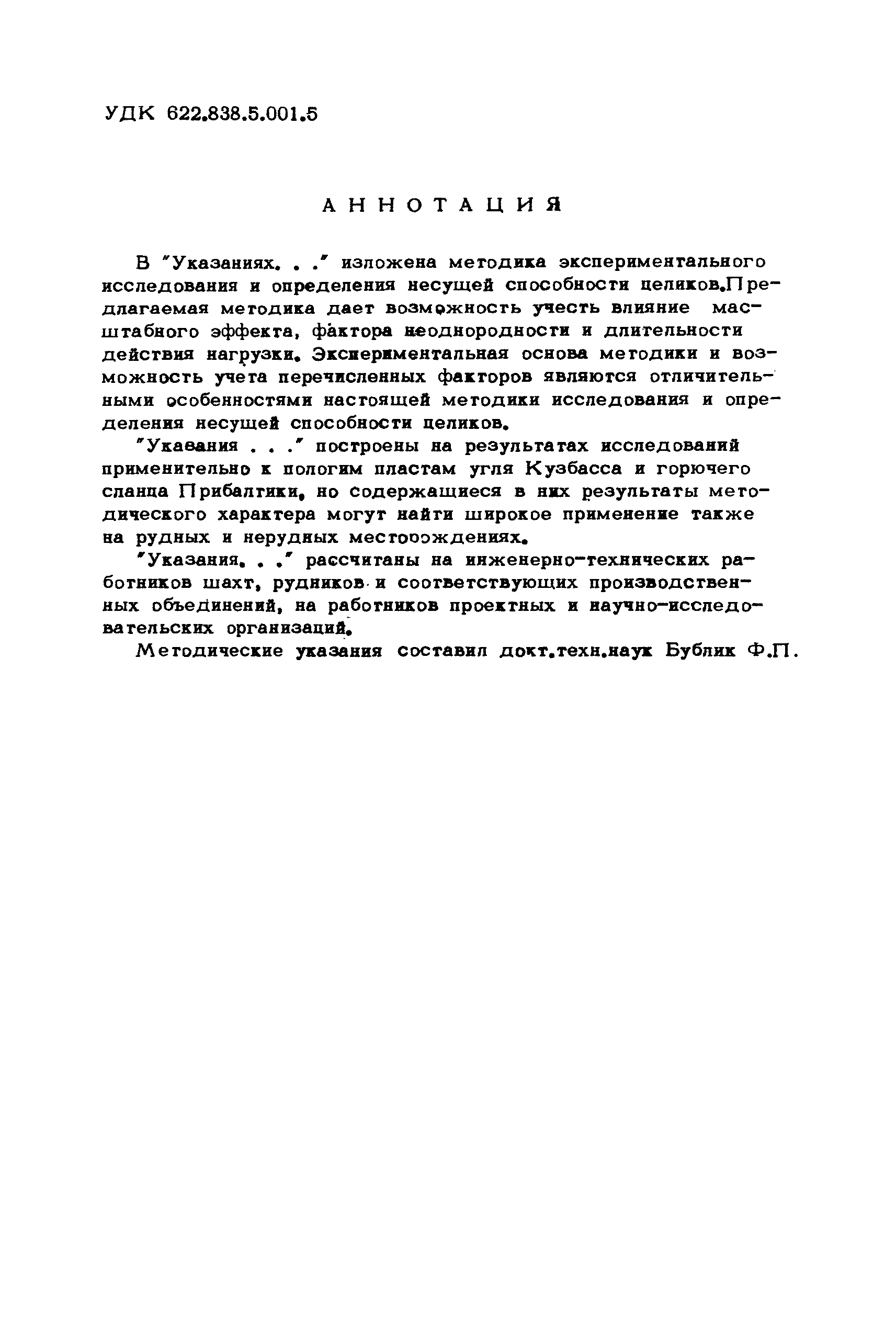 Скачать Методические указания по определению несущей способности целиковДата актуализации: 01.01.2021