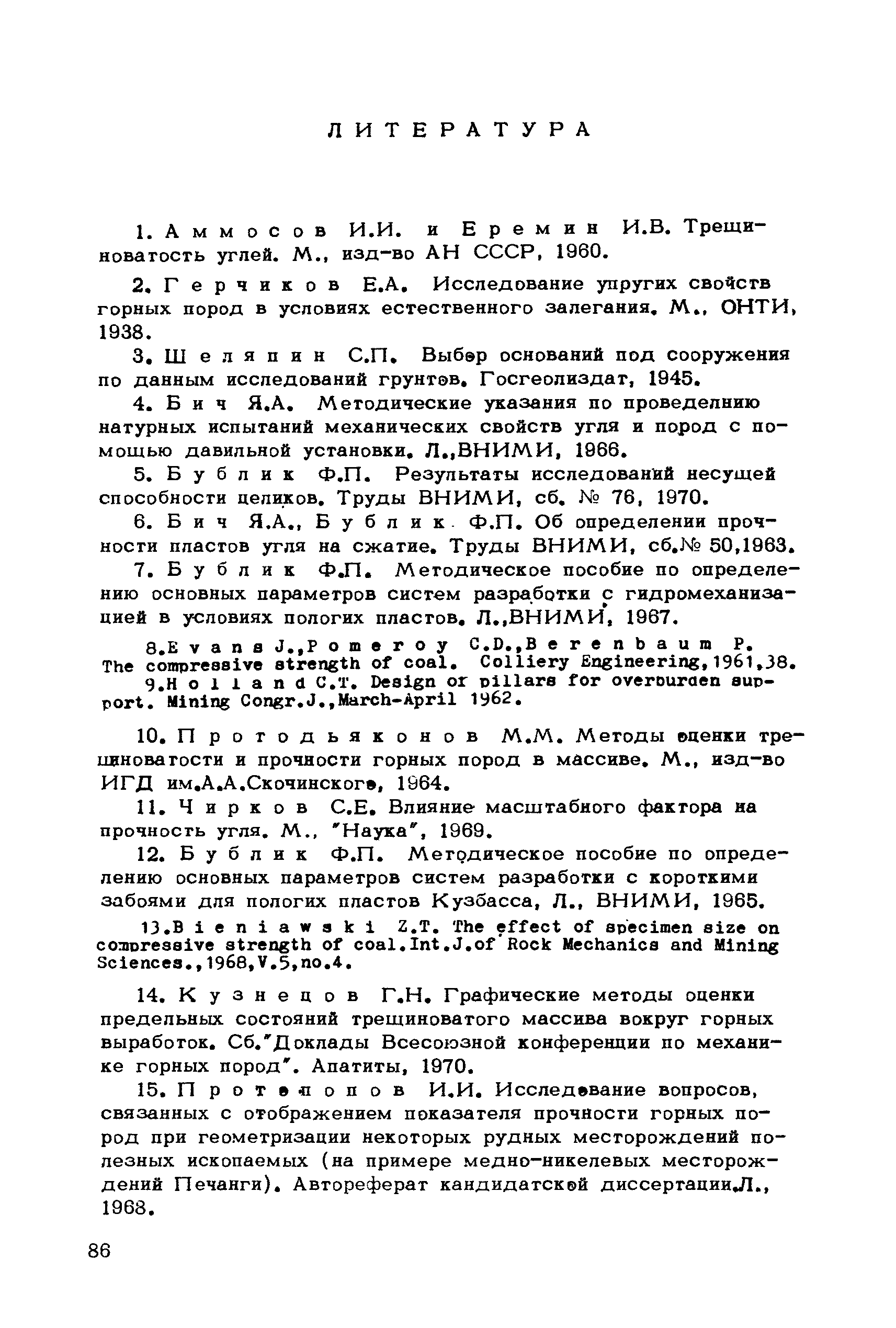 Методические указания по определению несущей способности целиков| Статус: | справочные материалы, мп, тпр | | Название рус.: | Методические указания по определению несущей способности целиков | | Дата добавления в базу: | 01.01.2018 | | Дата актуализации: | 01.01.2021 | | Область применения: | В документе изложена методика экспериментального исследования и определения несущей способности целиков. Предлагаемая методика дает возможность учесть влияние масштабного эффекта, фактора неоднородности и длительности действия нагрузки. Экспериментальная основа методики и возможность учета перечисленных факторов являются отличительными особенностями настоящей методики исследования и определения несущей способности целиков. Указания построены на результатах исследований применительно к пологим пластам угля Кузбасса и горючего сланца Прибалтики, но содержащиеся в них результаты методического характера могут найти широкое применение также на рудных и нерудных месторождениях. Указания рассчитаны на инженерно—технических работников шахт, рудников и соответствующих производственных объединений, на работников проектных и научно-исследовательских организаций. | | Оглавление: | Введение Глава I. Основные положения методики определения несущей способности целиков 1. Факторы, влияющие на прочность целиков 2. Основные положения методики определения механических свойств горных пород и несущей способности целиков Глава II. Определение основных механических характеристик однородных горных пород 1. Схемы натурных испытаний для определения основных характеристик горных пород 2. Методика натурных испытаний 3. Сравнение данных натурных и лабораторных испытаний Глава III. Исследование длительной прочности однородных горных пород 1. Методика исследований 2. Результаты исследований Глава IV. Определение прочности неоднородных горных пород 1. Исследование прочности при условно—мгновенном режиме нагружения 2. Исследование длительной прочности 3. Оценка предложенных зависимостей Глава V. Определение несущей способности целиков 1. Способы определения несущей способности однородных целиков 2. Влияние свойств боковых пород на прочность целиков 3. Влияние неоднородности строения целиков 4. Влияние длительности действия нагрузки 5. Пример определения несущей способности целика Литература | | Разработан: | ВНИМИ