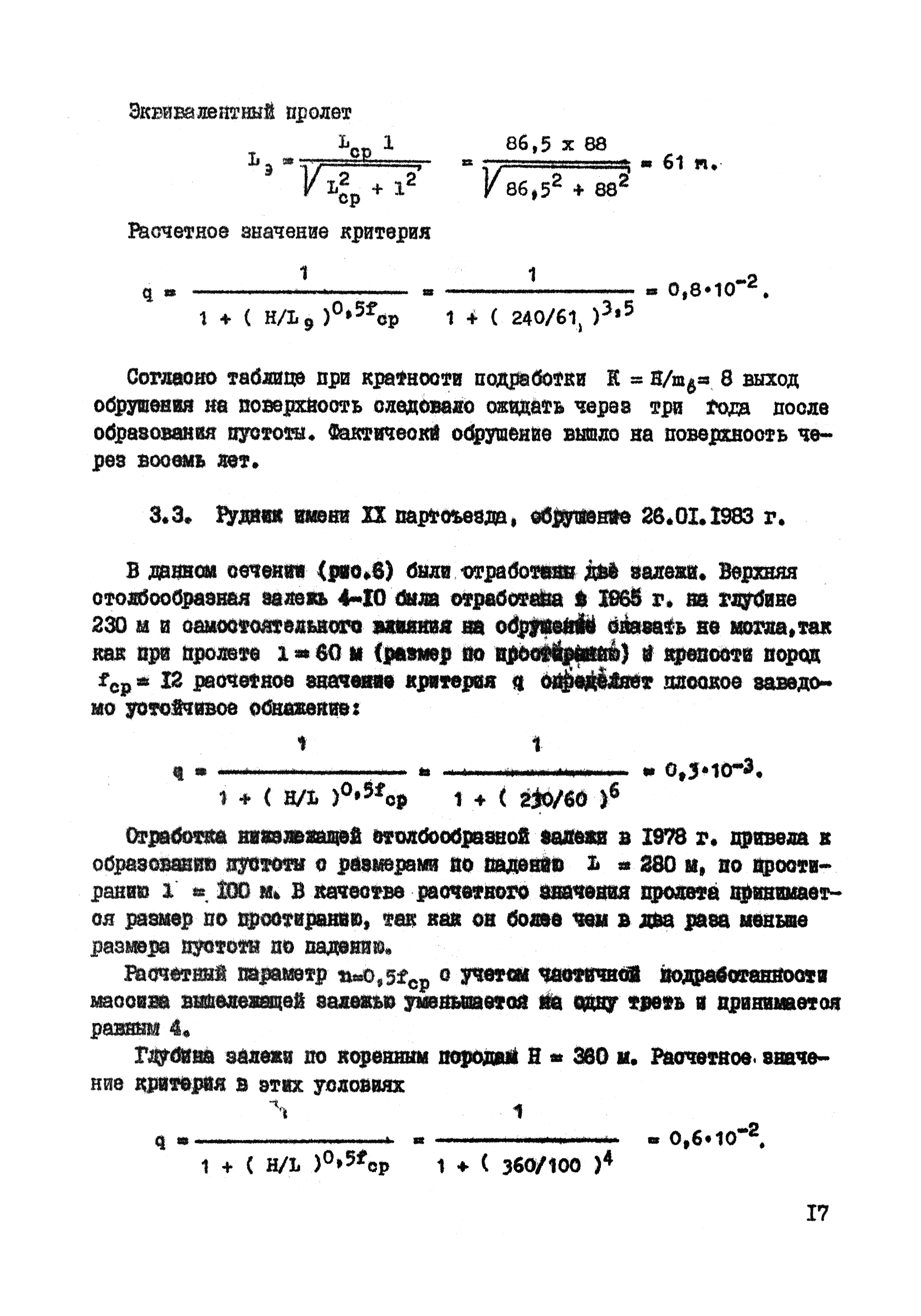 Методические указания по оценке устойчивости обнажений в массиве и условий образования провалов на поверхности в Криворожском бассейне| Статус: | справочные материалы, мп, тпр | | Название рус.: | Методические указания по оценке устойчивости обнажений в массиве и условий образования провалов на поверхности в Криворожском бассейне | | Дата добавления в базу: | 01.01.2018 | | Дата актуализации: | 01.01.2021 | | Область применения: | В документе изложен метод оценки устойчивости обнажений и условия образования провалов в зависимости от основных горно-геологических условий залегания и разработки рудных залежей. Установлены критерии устойчивости и возможное время выхода воронки обрушений на поверхность | | Оглавление: | Введение 1 Общие положения 2 Оценка устойчивости обнажений и условий образования провалов 3 Примеры контрольных расчетов 3.1 Рудник им. Коминтерна, пустота по 139 оси 3.2 Рудник им. Коминтерна, шахта "Октябрьская", обрушение 1964 год, по 48 оси 3.3 Рудник им. ХХ партсъезда, обрушение 26.01.1983 года Заключение Литература | | Разработан: | ВИОГЕМ