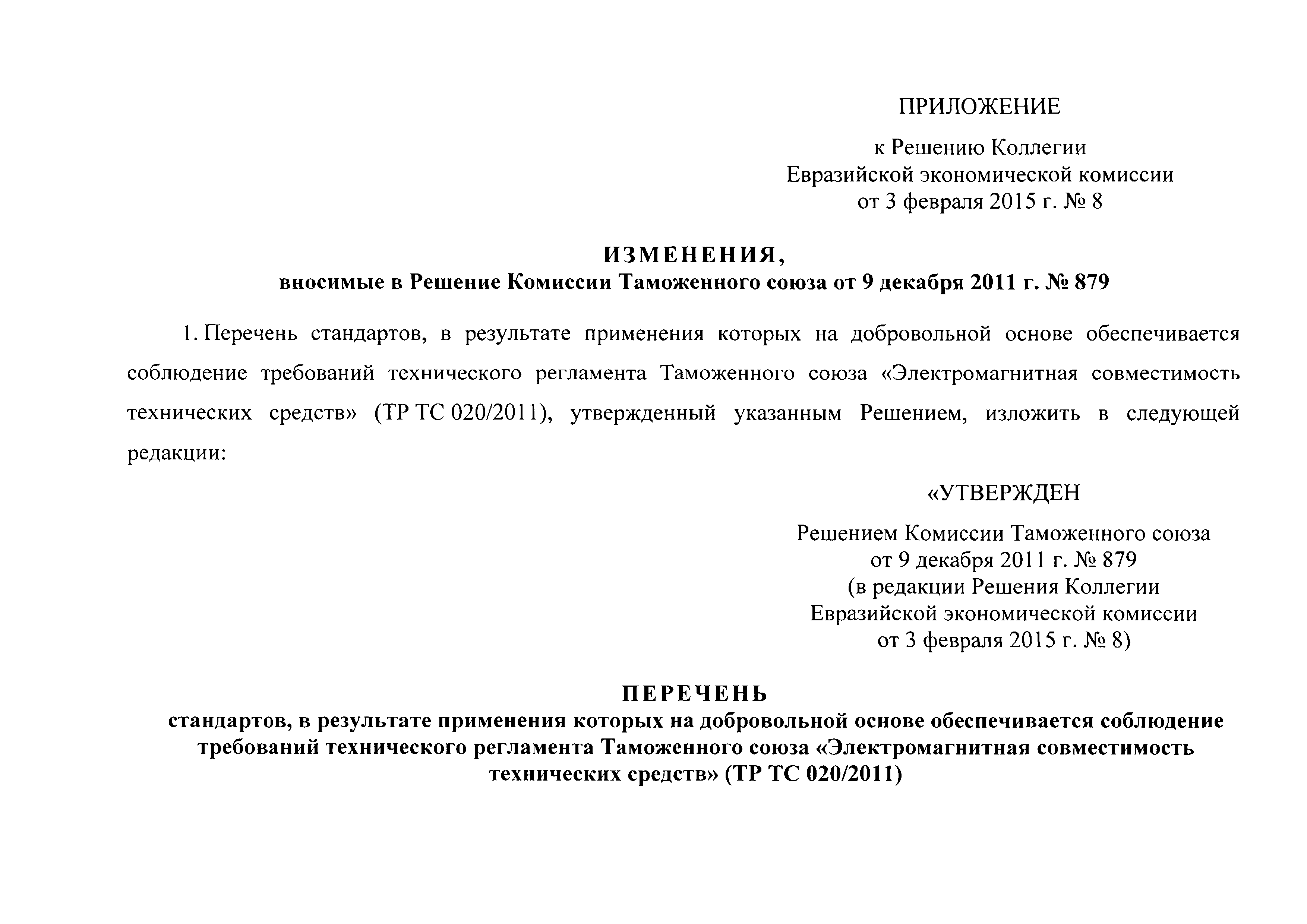| Название рус.: | Перечень стандартов, в результате применения которых на добровольной основе обеспечивается соблюдение требований технического регламента Таможенного союза "Электромагнитная совместимость технических средств" (ТР ТС 020/2011). Редакция 2 |
