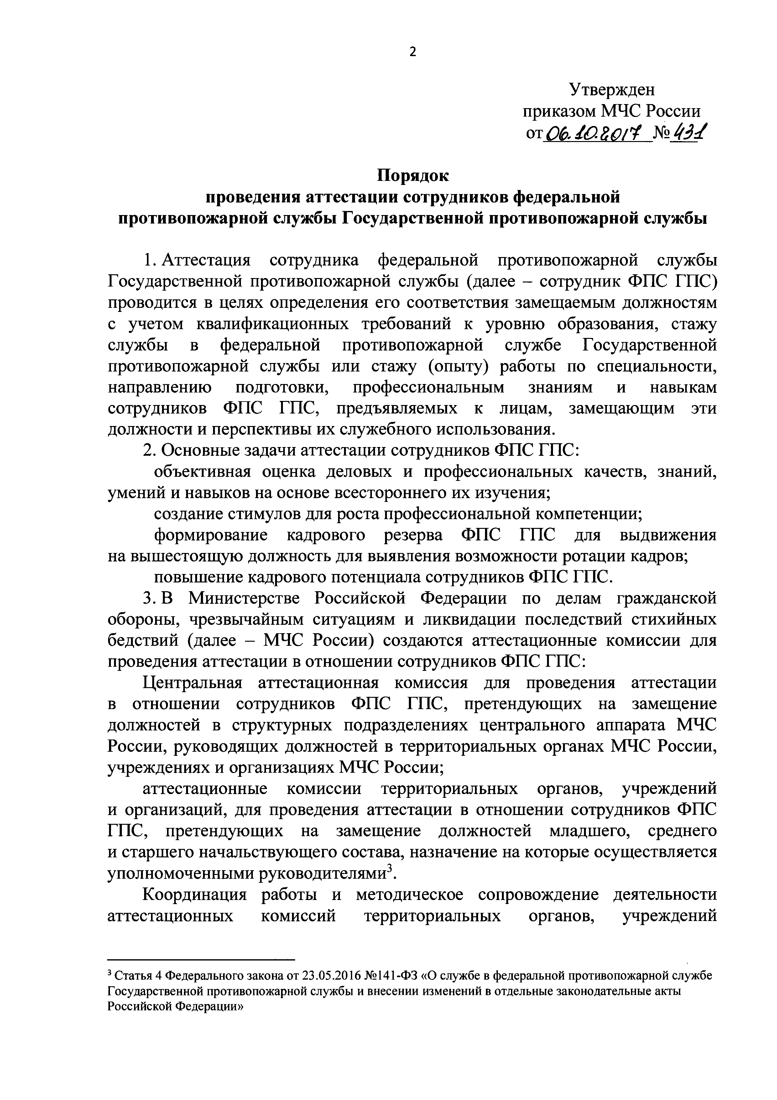 | Утверждён: | 06.10.2017 МЧС России (Russian Federation MChS 431)