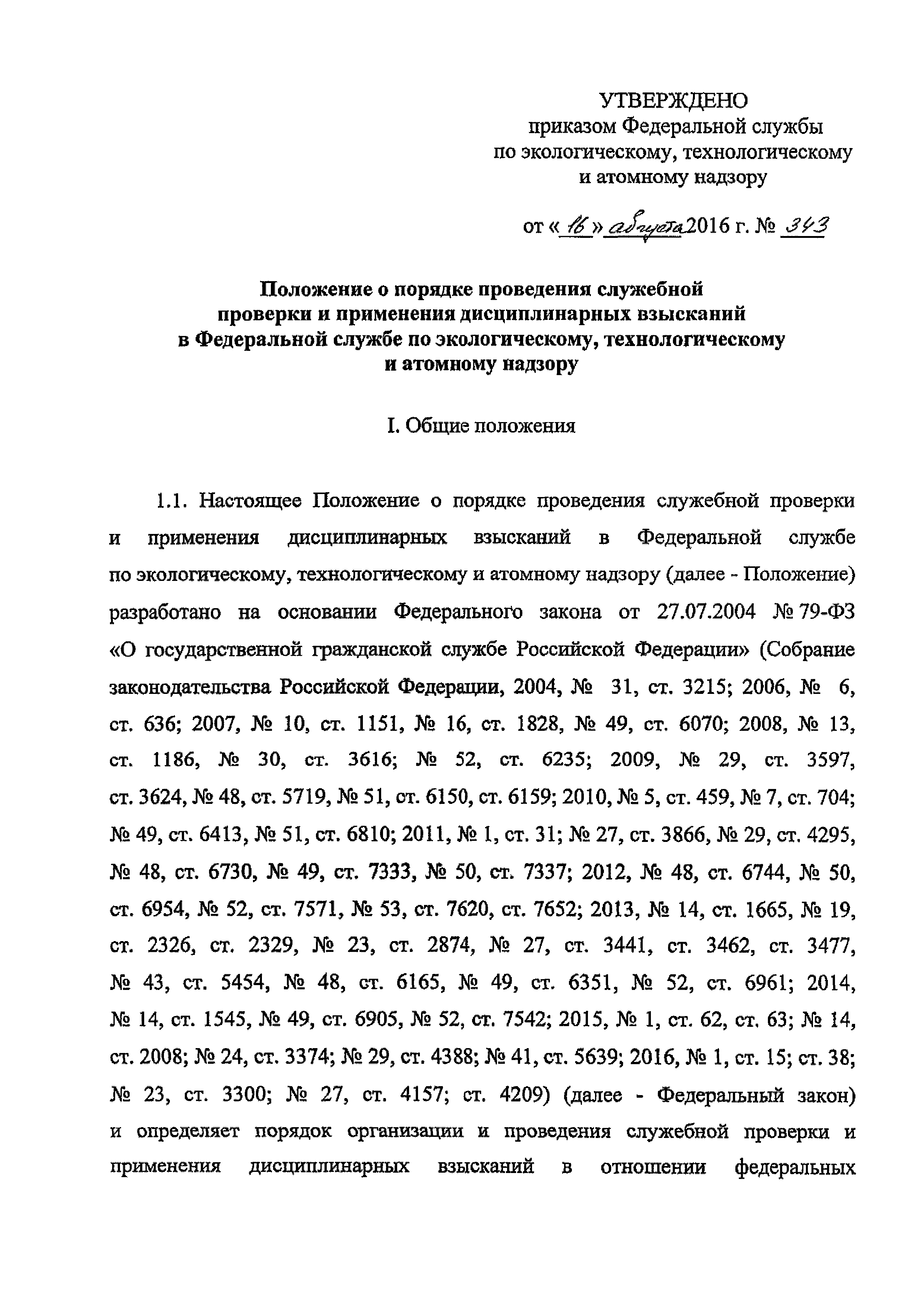 | Утверждён: | 16.08.2016 Федеральная служба по экологическому, технологическому и атомному надзору (343)