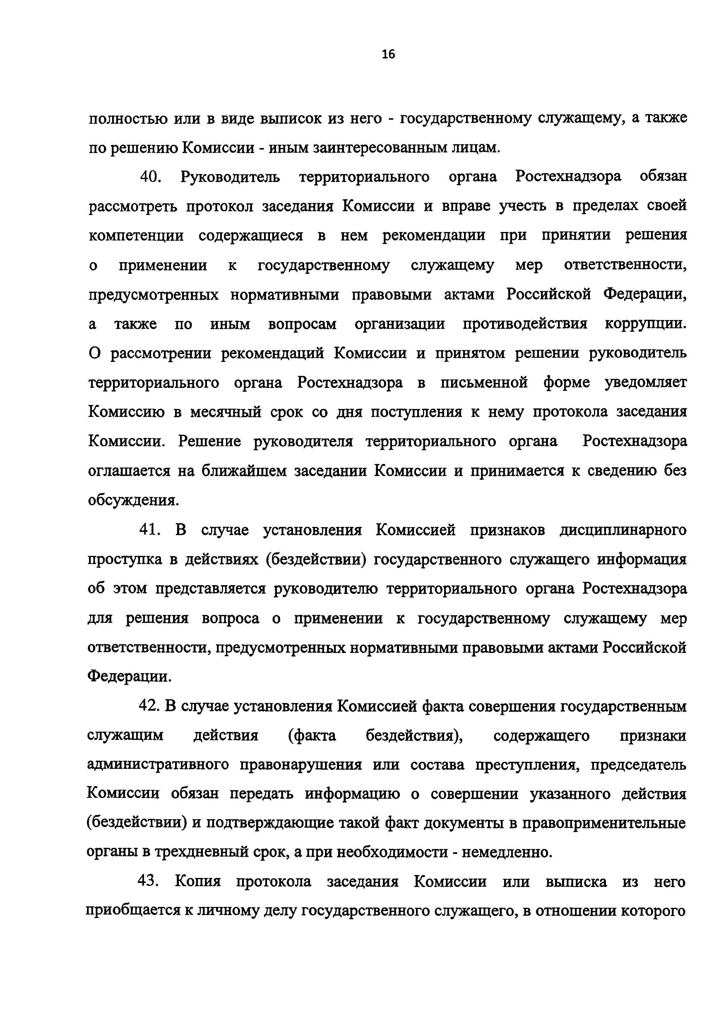 | Название рус.: | Положение о Комиссии территориального органа Федеральной службы по экологическому, технологическому и атомному надзору по соблюдению требований к служебному поведению федеральных государственных гражданских служащих и урегулированию конфликта интересов |