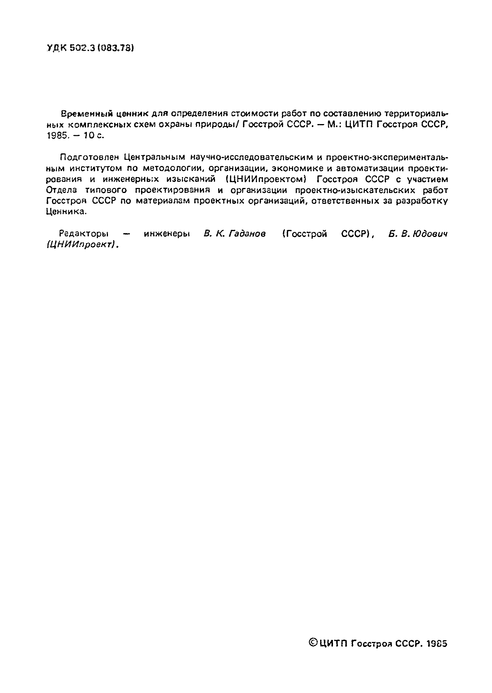 | Название рус.: | Временный ценник для определения стоимости работ по составлению территориальных комплексных схем охраны природы |