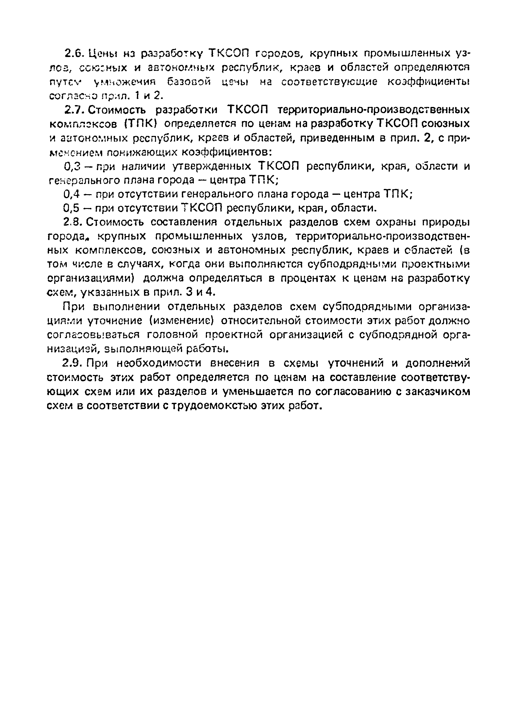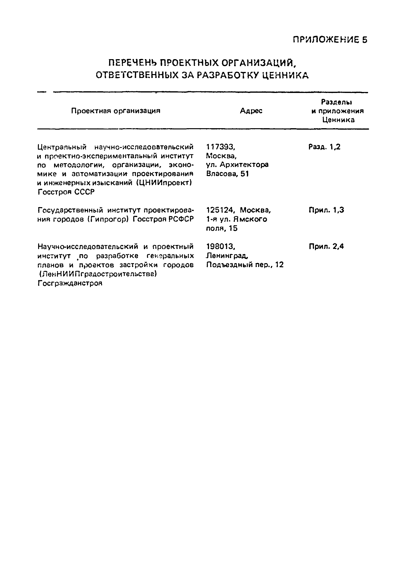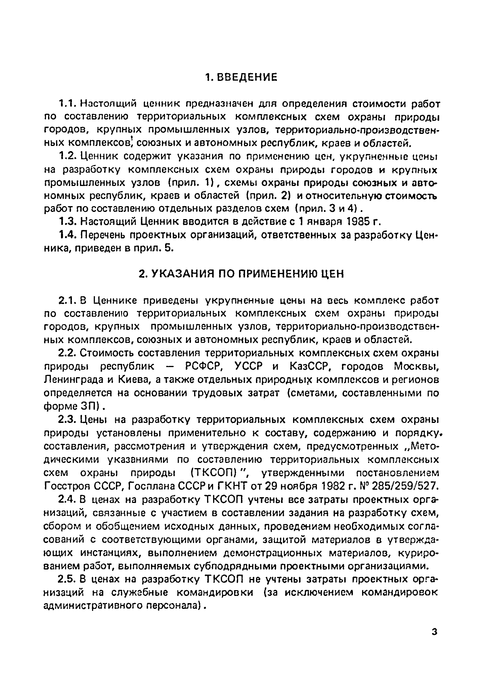| Оглавление: | 1 Введение 2 Указания по применению цен Приложение 1. Цены на разработку комплексных схем охраны природы городов и крупных промышленных узлов Приложение 2. Цены на разработку комплексных схем охраны природы союзных и автономных республик, краев и областей Приложение 3. Стоимость составления отдельных разделов схем охраны природы городов и крупных промышленных узлов Приложение 4. Стоимость составления отдельных разделов схем охраны природы союзных и автономных республик, краев и областей Приложение 5. Перечень проектных организаций, ответственных за разработку ценника |