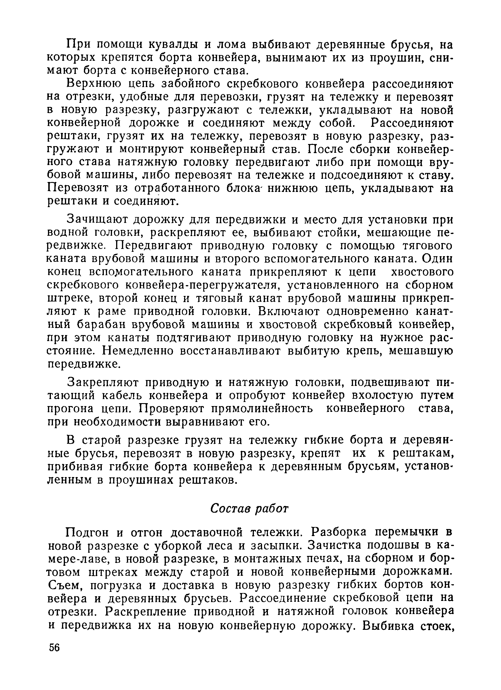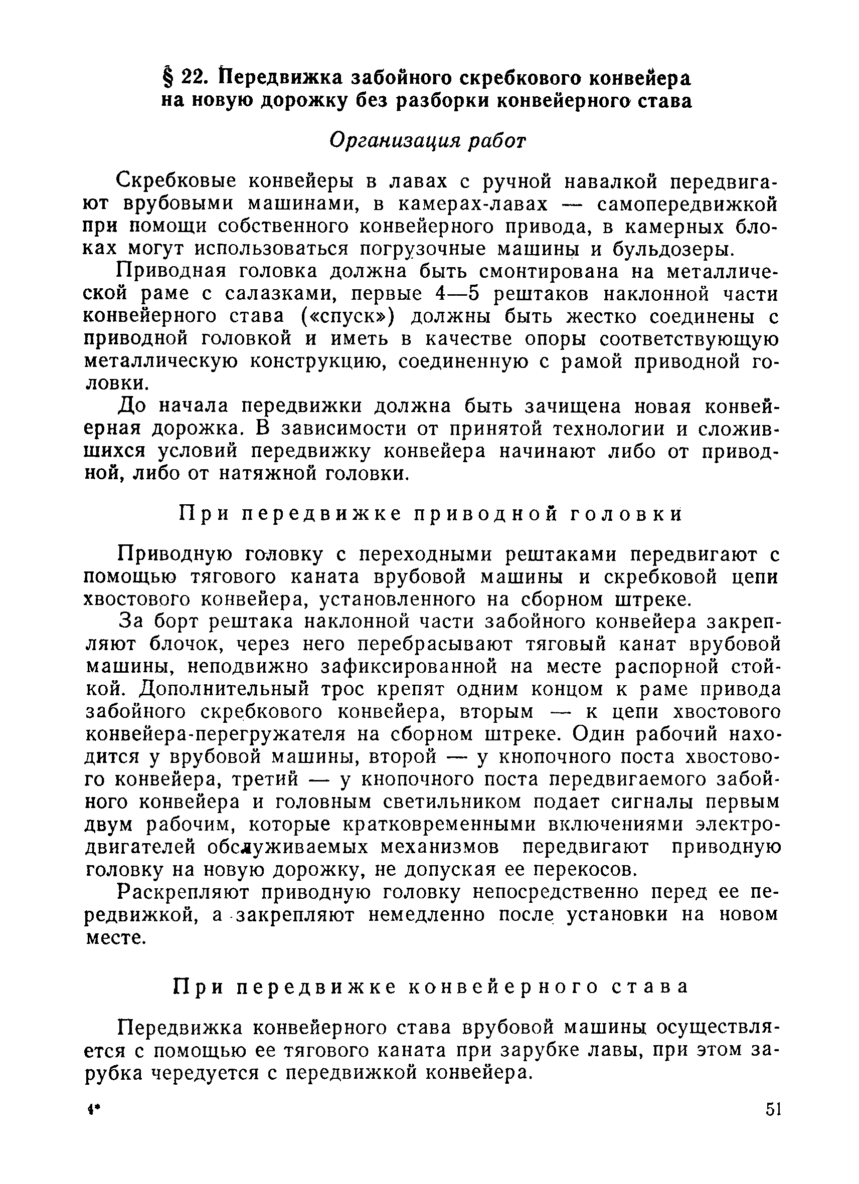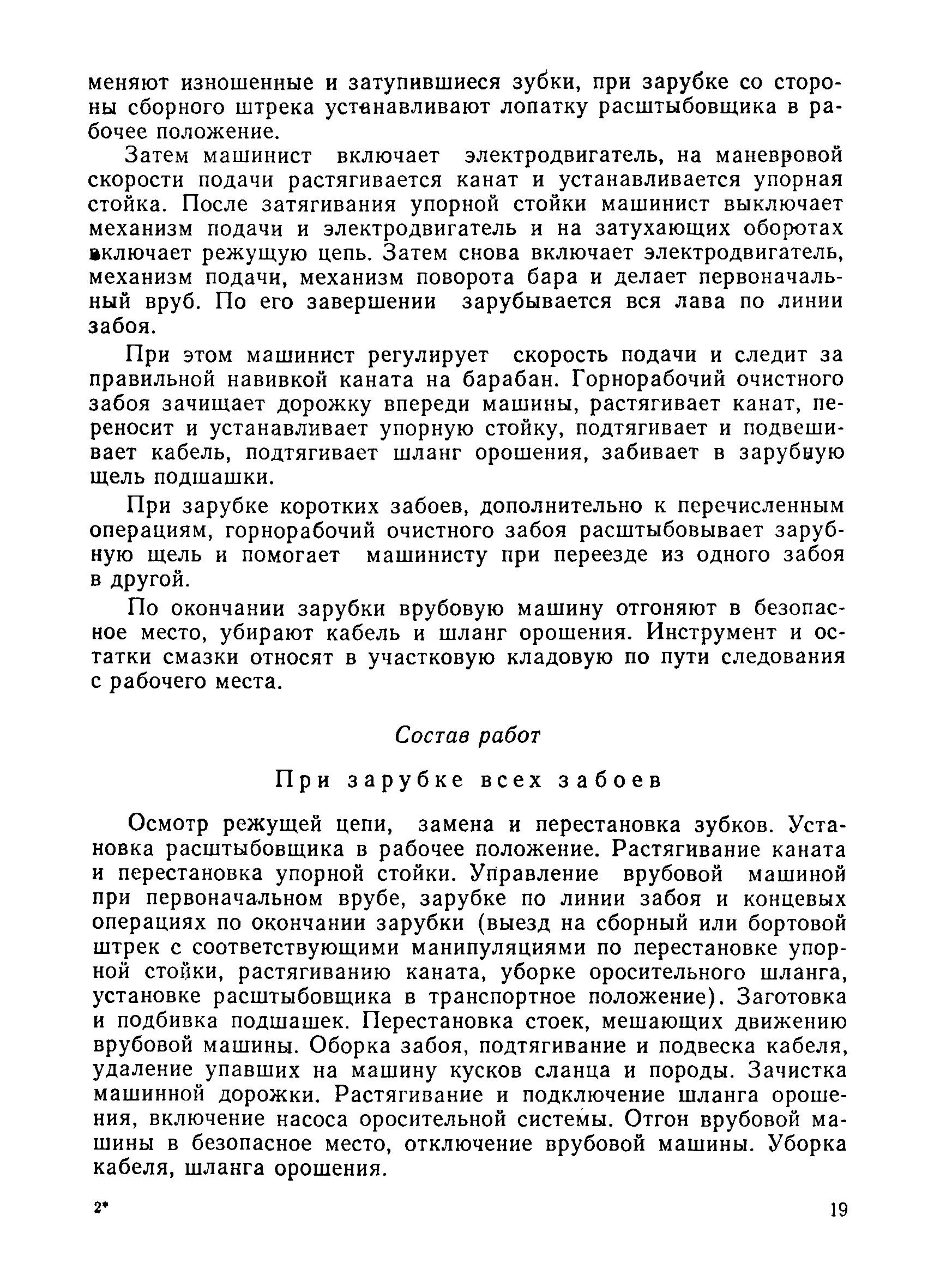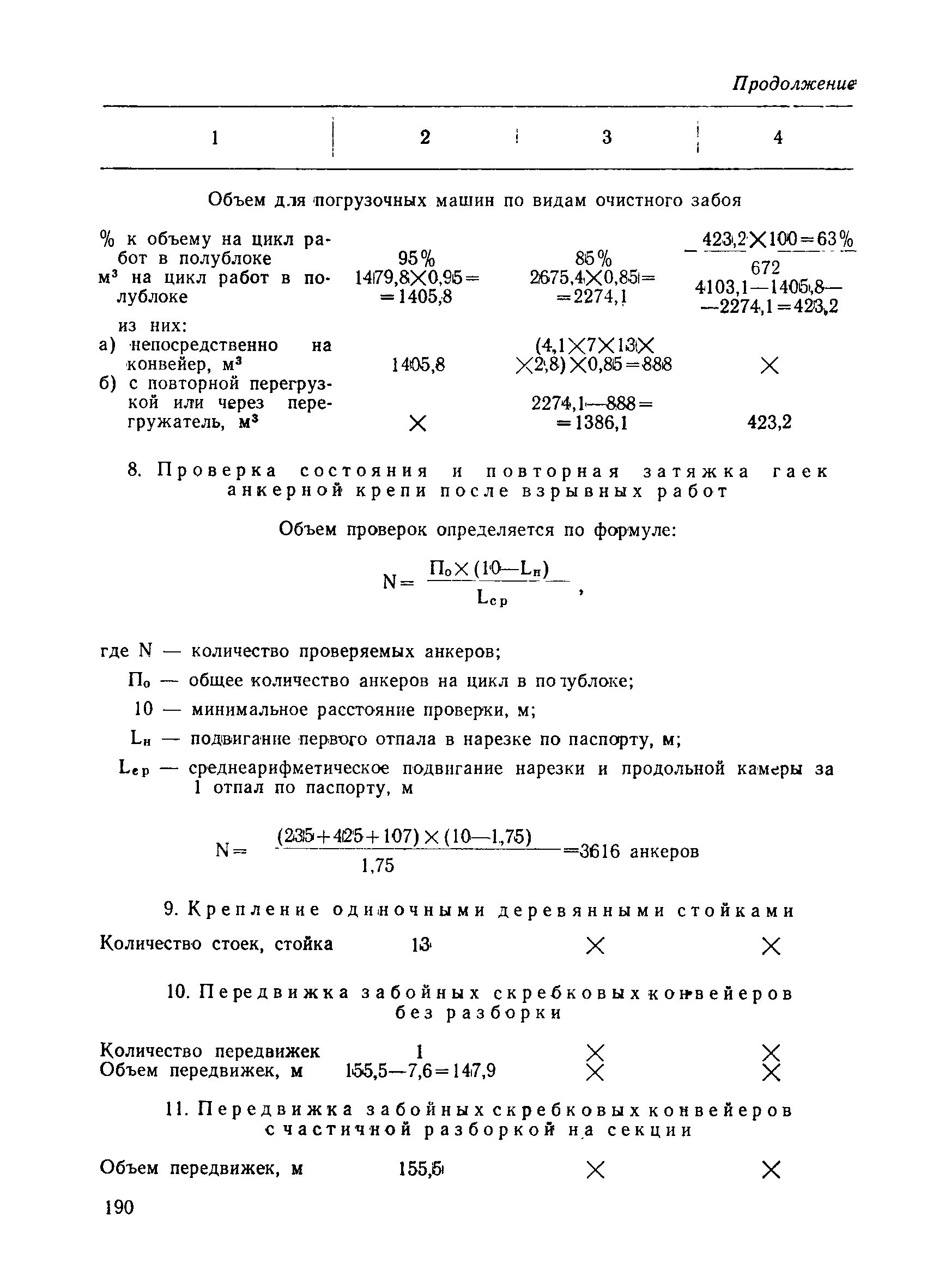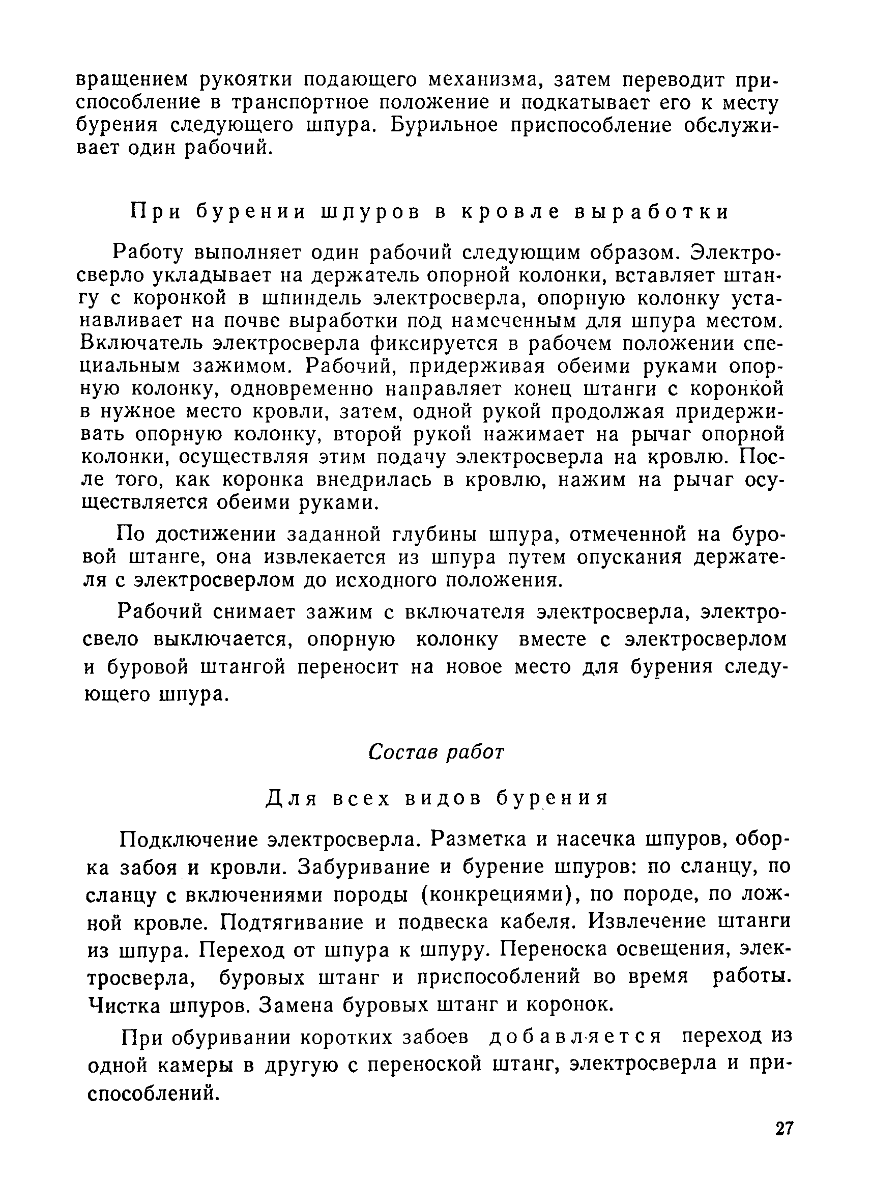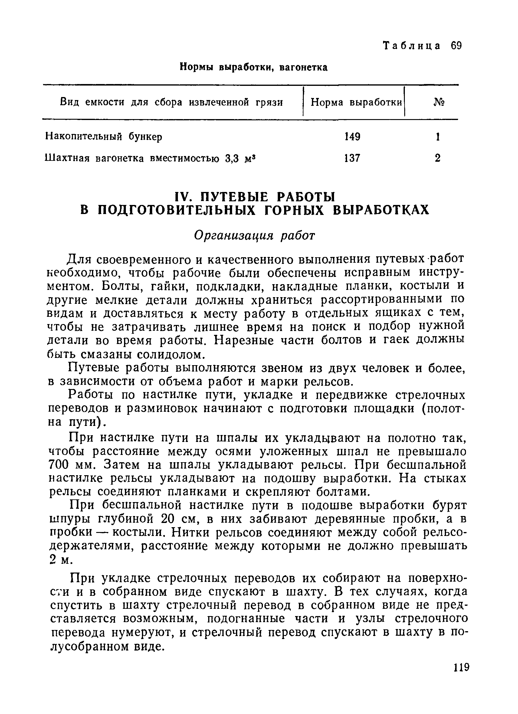 При внедрении нового оборудования, прогрессивной технологии ведения горных работ и более совершенных форм организации труда, не предусмотренных настоящим сборником, нормы должны устанавливаться с учетом технических возможностей оборудования в этих условиях. | | Оглавление: | Общая часть Нормативная часть I Очистные работы Техническая часть Нормативная часть § 1 Выемка горной массы комбайном ГШ-68 и подготовка к выемке следующей полосы § 2 Передвижка гидрофицированной посадочной крепи "Спутник" и забойного скребкового конвейера § 3 Перестановка гидравлических стоек § 4 Осевая передвижка скребкового конвейера-перегружателя на сборном штреке комбайновой лавы § 5 Выемка горной массы комбайнами 1К-101, 2К-101 и подготовка к выемке следующей полосы § 6 Оформление забоя после выемки горной массы комбайнами К-101, 2К-101 § 7 Выемка горной массы из ниш лавы, оборудованной комбайном 1К-101 или 2К-101 § 8 Зарубка сланца врубовой машиной "Урал-33" § 9 Перегон врубовой машины "Урал-33" § 10 Бурение шпуров бурильными установками БУА-3 и БУА-3с § 11 Перегон бурильных установок БУА-3 и БУА-3с § 12 Бурение шпуров ручным электросверлом § 13 Погрузка горной массы погрузочной машиной 1ПНБ-2 § 14 Навалоотбойка сланца в лавах с выкладкой бутовых полос § 15 Перестановка клиновых металлических стоек в лавах § 16 Крепление очистных забоев металлической анкерной крепью § 17 Проверка состояния и повторная затяжка гаек металлической анкерной крепи § 18 Крепление забоя деревянной крепью § 19 Возведение деревянной органной крепи § 20 Извлечение деревянной крепи из отработанных заходок камер-лав лебедкой § 21 Крепление сопряжений лав с примыкающими выработками § 22 Передвижка забойного скребкового конвейера на новую дорожку без разборки конвейерного става § 23 Передвижка забойного скребкового конвейера в новую нарезку с частичной разборкой на секции § 24 Переноска забойного скребкового конвейера из отработанного блока камеры лавы в новую разрезку § 25 Переноска забойного скребкового конвейера СП-63 с полной разборкой в лавах без машинной зарубки § 26 Разработка почвы под приводную головку забойного конвейера § 27 Уборка упавшей с кровли породы (вывалов) вручную II. Горно-подготовительные работы § 28 Проведение подготовительных горных выработок комбайнами ПК-3М, ПК-3Р § 29 Бурение шпуров ручными электросверлами в сланце и породе при буровзрывном способе прохождения выработок § 30 Погрузка горной массы погрузочной машиной 1ПНБ-2 § 31 Погрузка породы погрузочной машиной 1ПНБ-2 при проведении полевых водоотливных штреков (туннелей), кроссингов и при опускании кровли § 32 Ручная погрузка, перекидка и откатка горной массы и породы § 33 Проведение, углубка и очистка водоотливных канавок врубовой машиной "Урал-33" § 34 Уборка породы экскаватором "Беларусь" при проведении водосборников § 35 Уборка породы вручную при проведении водосборников § 36 Крепление горных выработок металлической анкерной крепью § 37 Проверка состояния и повторная затяжка гаек металлической анкерной крепи § 38 Извлечение временной металлической анкерной крепи в подготовительных горных выработках § 39 Крепление горных выработок в период эксплуатации металлическими штангами с заполнением шпура бетонной смесью § 40 Крепление горных выработок металлической трапециевидной крепью вразбежку § 41 Крепление горных выработок деревян