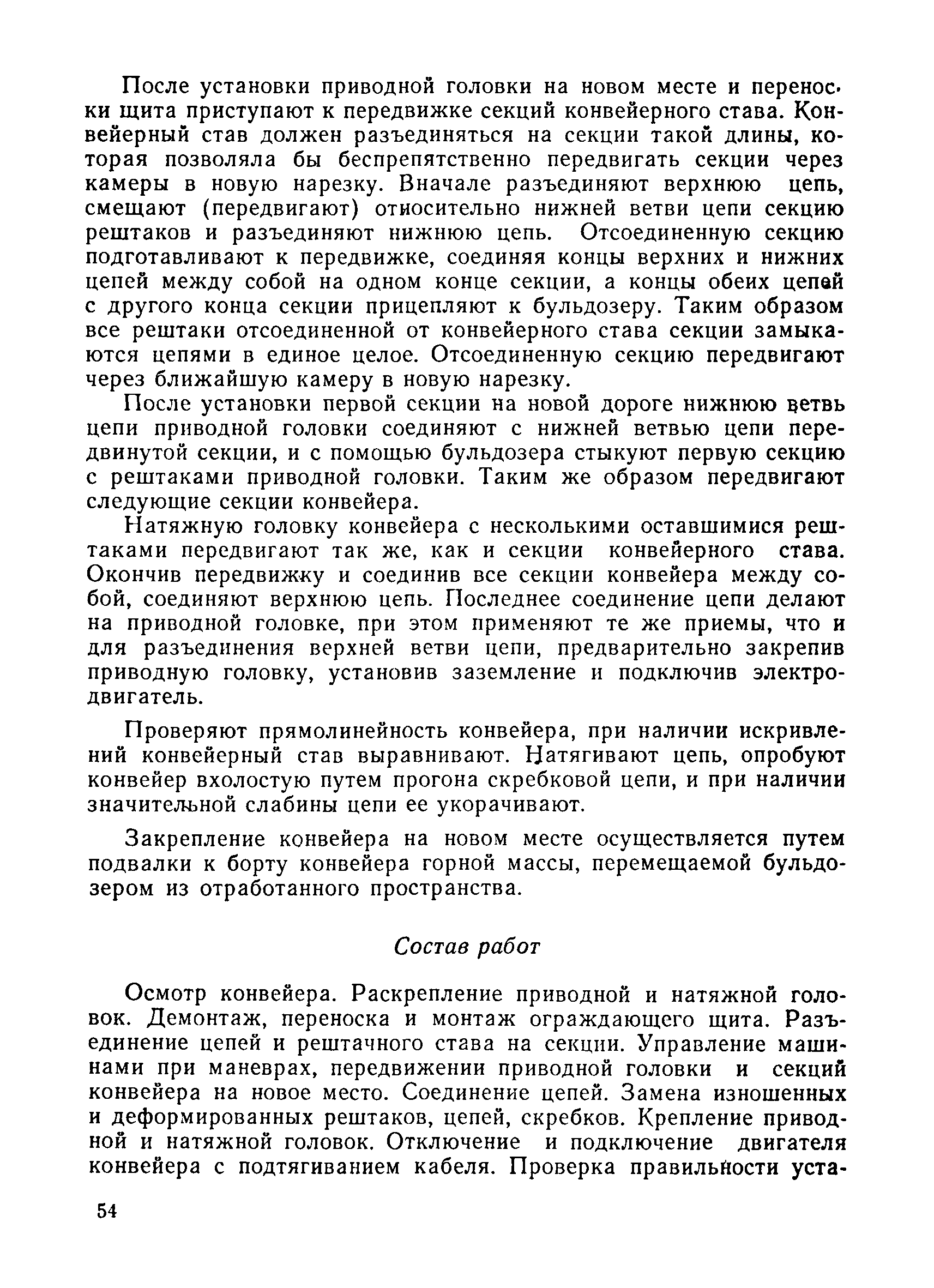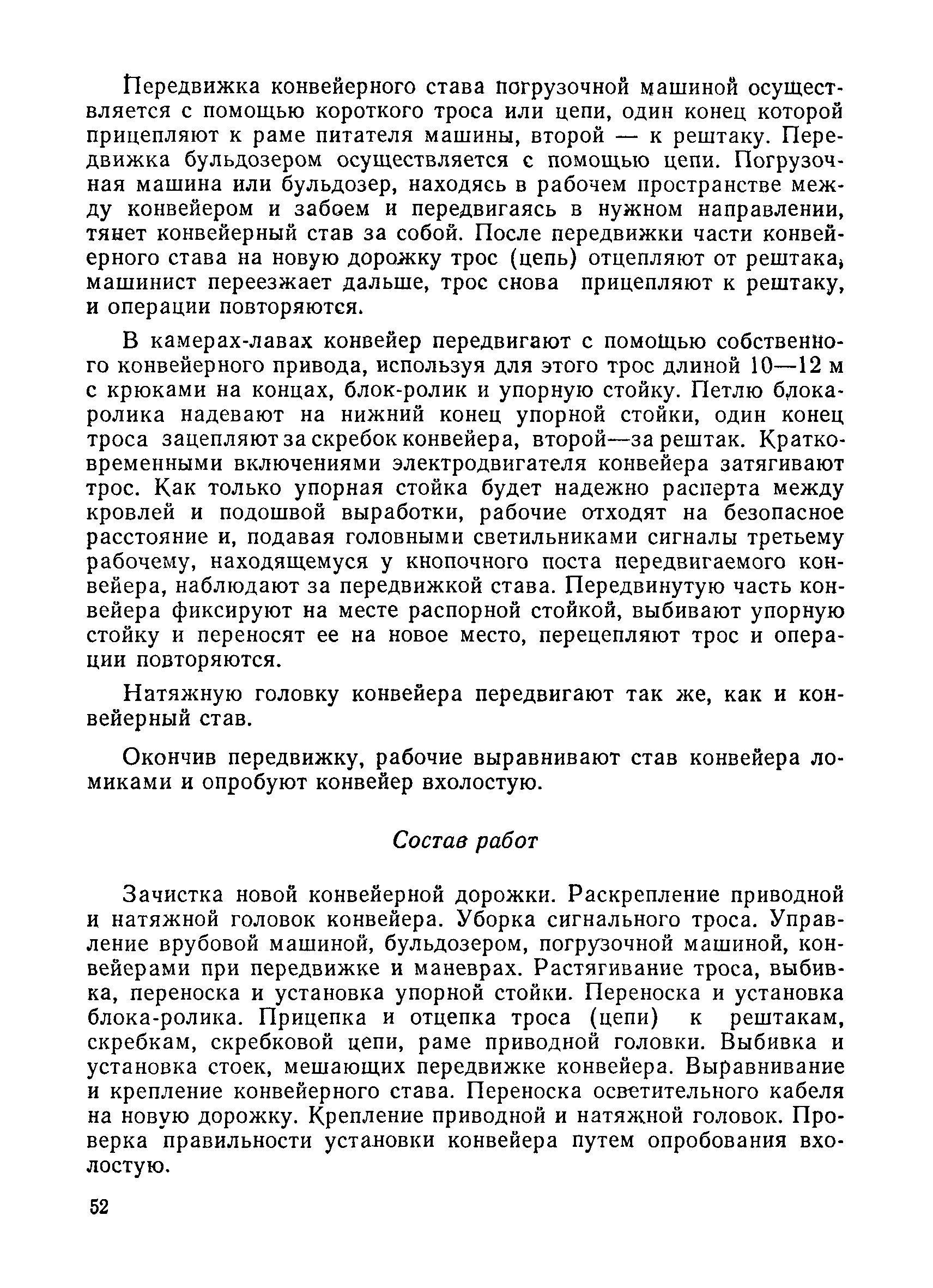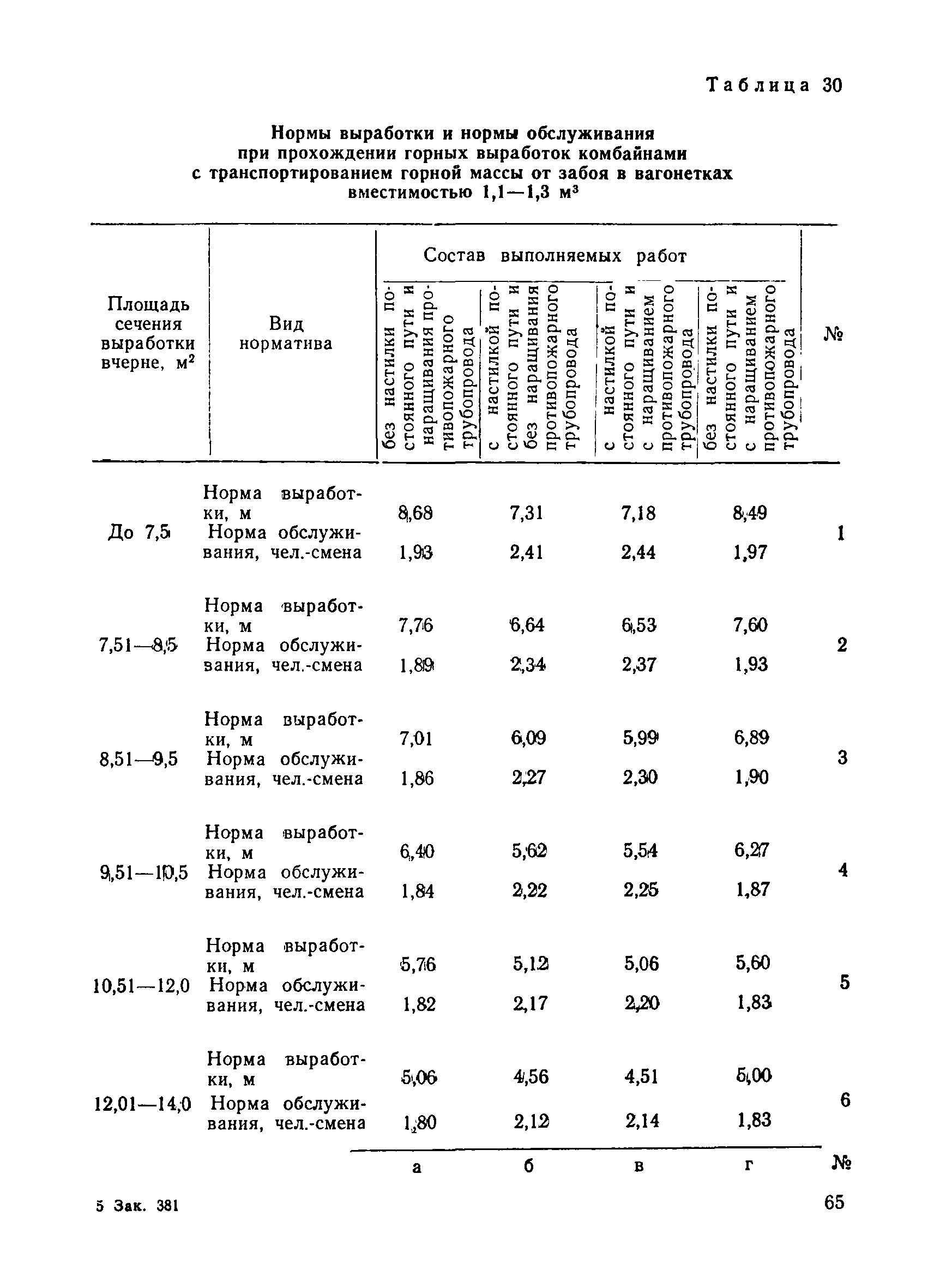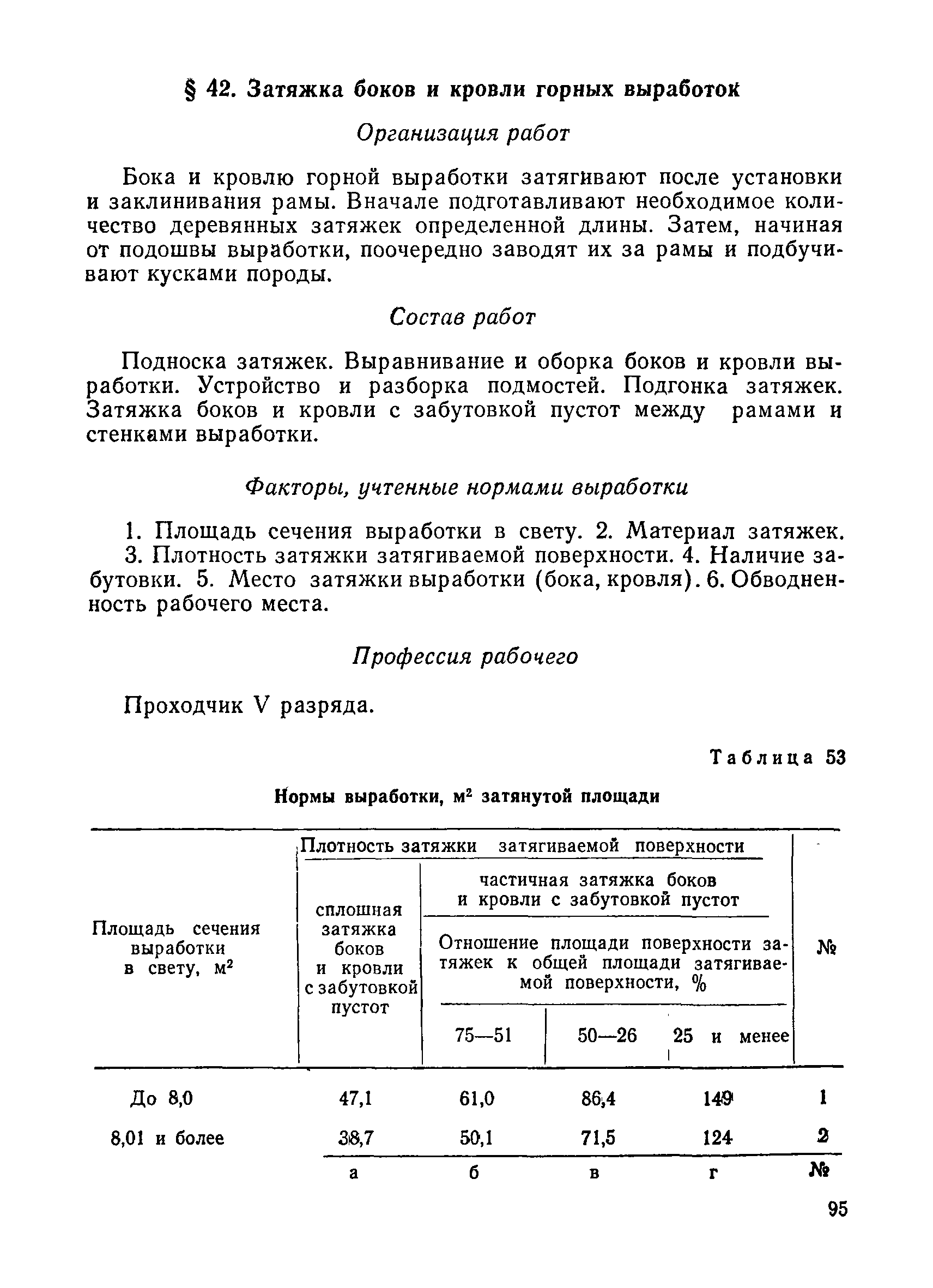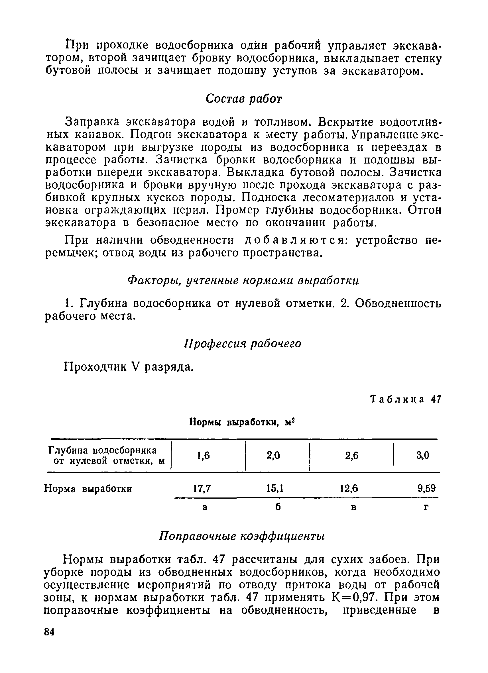 При внедрении нового оборудования, прогрессивной технологии ведения горных работ и более совершенных форм организации труда, не предусмотренных настоящим сборником, нормы должны устанавливаться с учетом технических возможностей оборудования в этих условиях. | | Оглавление: | Общая часть Нормативная часть I Очистные работы Техническая часть Нормативная часть § 1 Выемка горной массы комбайном ГШ-68 и подготовка к выемке следующей полосы § 2 Передвижка гидрофицированной посадочной крепи "Спутник" и забойного скребкового конвейера § 3 Перестановка гидравлических стоек § 4 Осевая передвижка скребкового конвейера-перегружателя на сборном штреке комбайновой лавы § 5 Выемка горной массы комбайнами 1К-101, 2К-101 и подготовка к выемке следующей полосы § 6 Оформление забоя после выемки горной массы комбайнами К-101, 2К-101 § 7 Выемка горной массы из ниш лавы, оборудованной комбайном 1К-101 или 2К-101 § 8 Зарубка сланца врубовой машиной "Урал-33" § 9 Перегон врубовой машины "Урал-33" § 10 Бурение шпуров бурильными установками БУА-3 и БУА-3с § 11 Перегон бурильных установок БУА-3 и БУА-3с § 12 Бурение шпуров ручным электросверлом § 13 Погрузка горной массы погрузочной машиной 1ПНБ-2 § 14 Навалоотбойка сланца в лавах с выкладкой бутовых полос § 15 Перестановка клиновых металлических стоек в лавах § 16 Крепление очистных забоев металлической анкерной крепью § 17 Проверка состояния и повторная затяжка гаек металлической анкерной крепи § 18 Крепление забоя деревянной крепью § 19 Возведение деревянной органной крепи § 20 Извлечение деревянной крепи из отработанных заходок камер-лав лебедкой § 21 Крепление сопряжений лав с примыкающими выработками § 22 Передвижка забойного скребкового конвейера на новую дорожку без разборки конвейерного става § 23 Передвижка забойного скребкового конвейера в новую нарезку с частичной разборкой на секции § 24 Переноска забойного скребкового конвейера из отработанного блока камеры лавы в новую разрезку § 25 Переноска забойного скребкового конвейера СП-63 с полной разборкой в лавах без машинной зарубки § 26 Разработка почвы под приводную головку забойного конвейера § 27 Уборка упавшей с кровли породы (вывалов) вручную II. Горно-подготовительные работы § 28 Проведение подготовительных горных выработок комбайнами ПК-3М, ПК-3Р § 29 Бурение шпуров ручными электросверлами в сланце и породе при буровзрывном способе прохождения выработок § 30 Погрузка горной массы погрузочной машиной 1ПНБ-2 § 31 Погрузка породы погрузочной машиной 1ПНБ-2 при проведении полевых водоотливных штреков (туннелей), кроссингов и при опускании кровли § 32 Ручная погрузка, перекидка и откатка горной массы и породы § 33 Проведение, углубка и очистка водоотливных канавок врубовой машиной "Урал-33" § 34 Уборка породы экскаватором "Беларусь" при проведении водосборников § 35 Уборка породы вручную при проведении водосборников § 36 Крепление горных выработок металлической анкерной крепью § 37 Проверка состояния и повторная затяжка гаек металлической анкерной крепи § 38 Извлечение временной металлической анкерной крепи в подготовительных горных выработках § 39 Крепление горных выработок в период эксплуатации металлическими штангами с заполнением шпура бетонной смесью § 40 Крепление горных выработок металлической трапециевидной крепью вразбежку § 41 Крепление горных выработок деревян