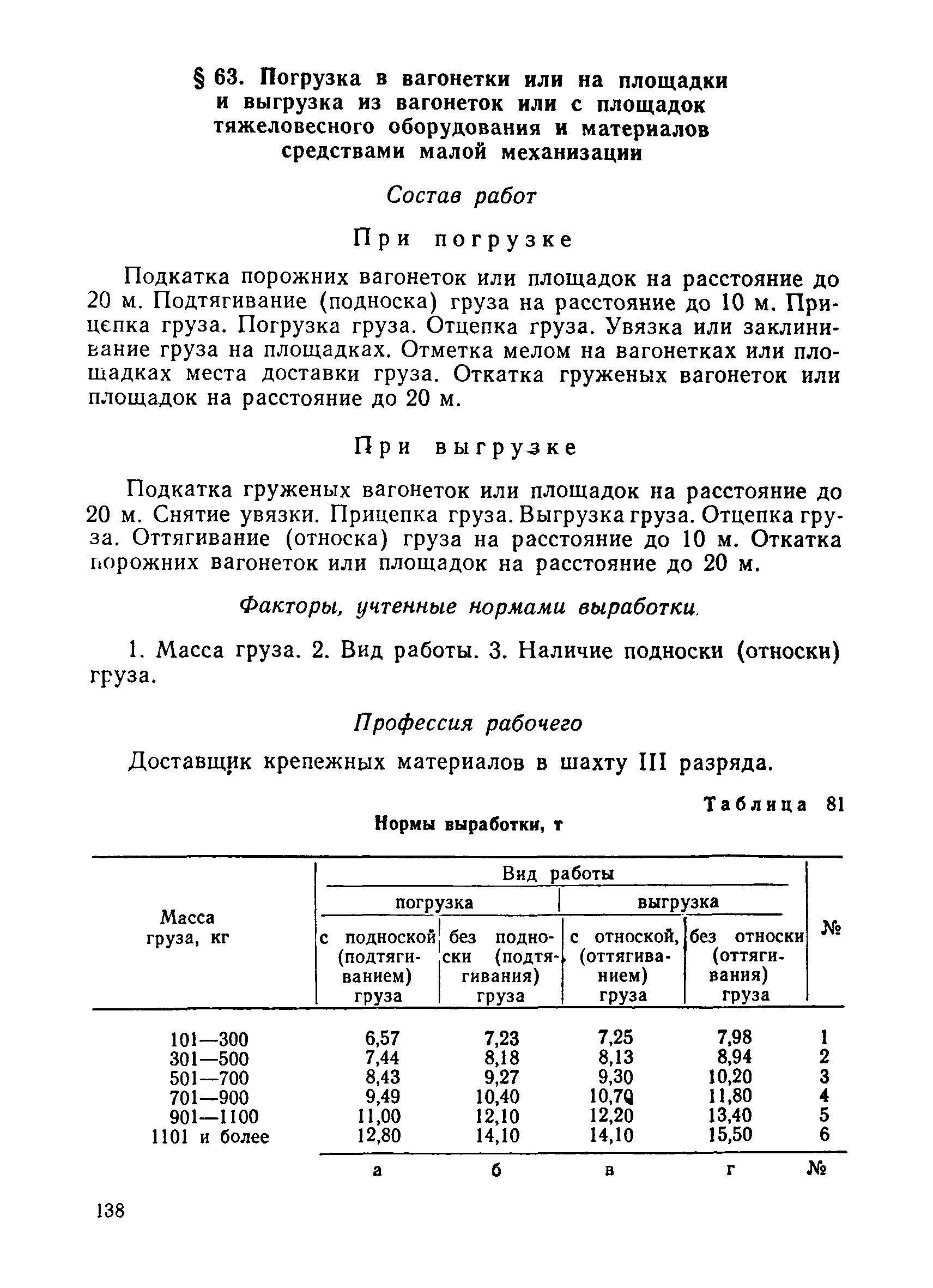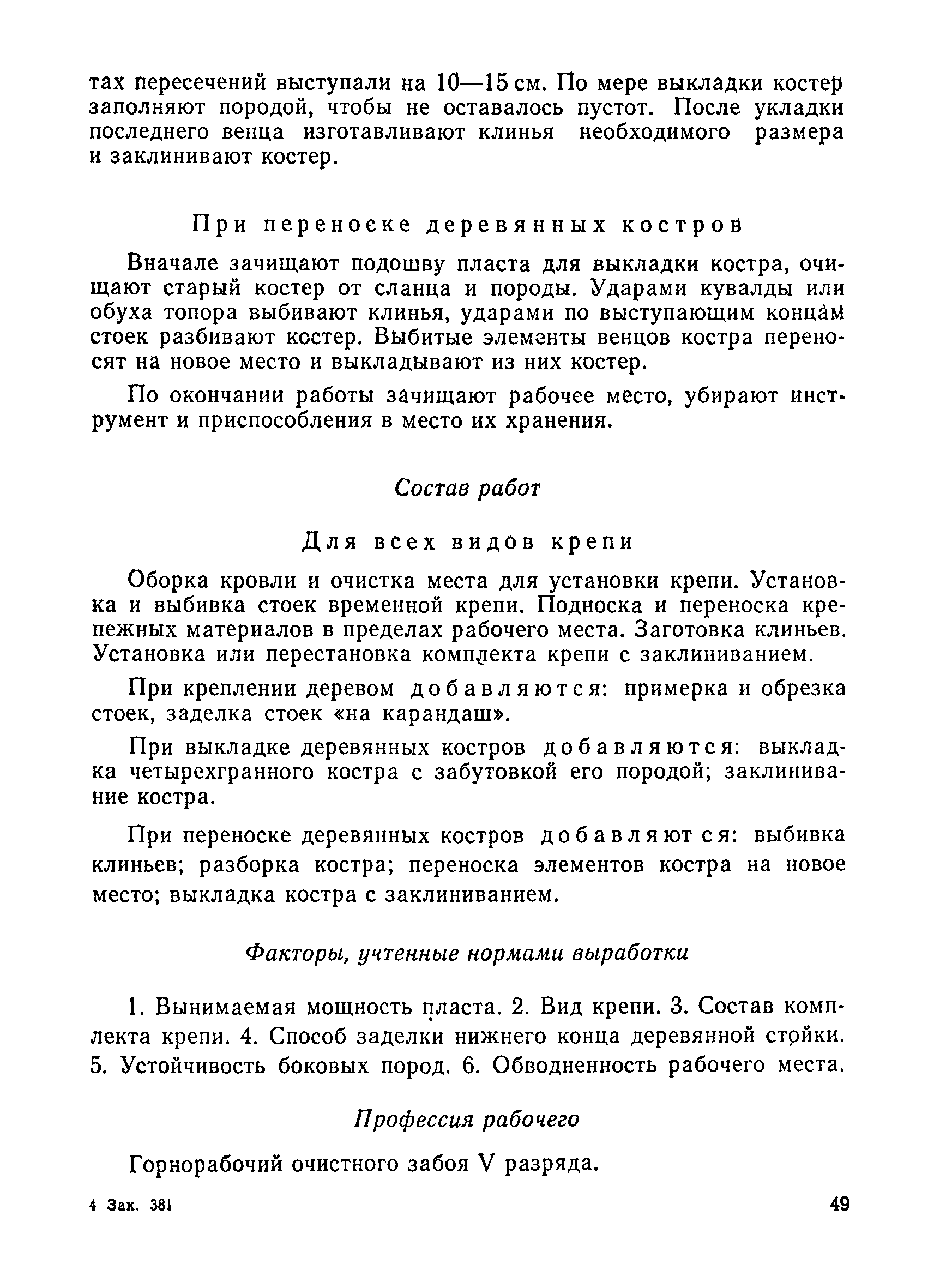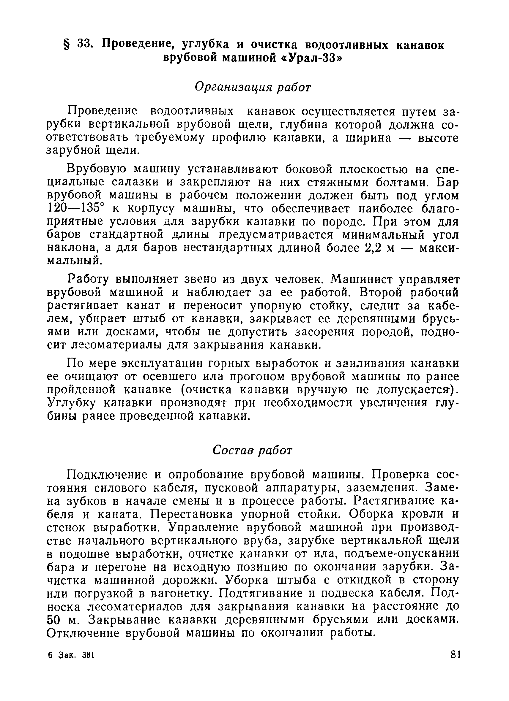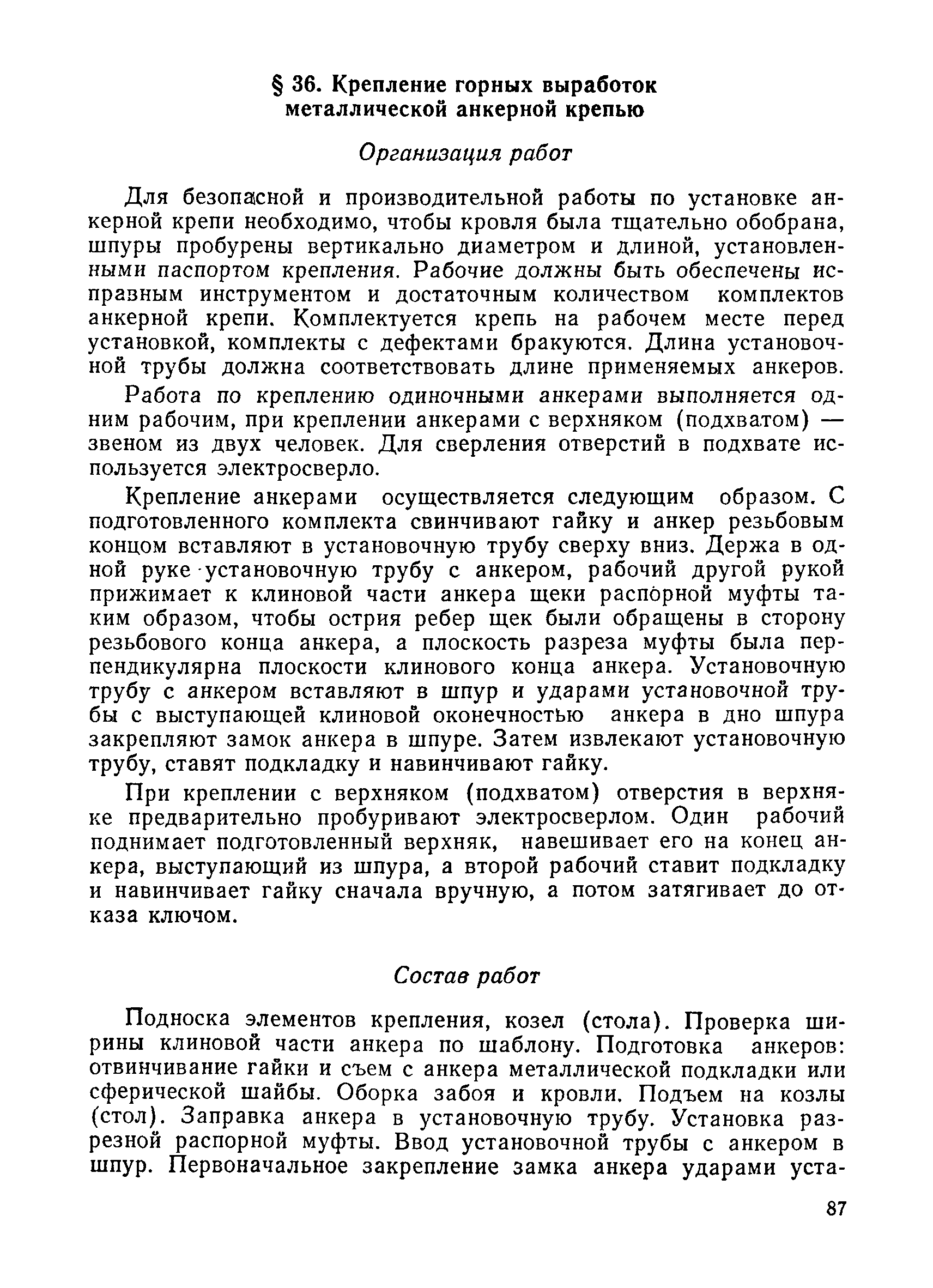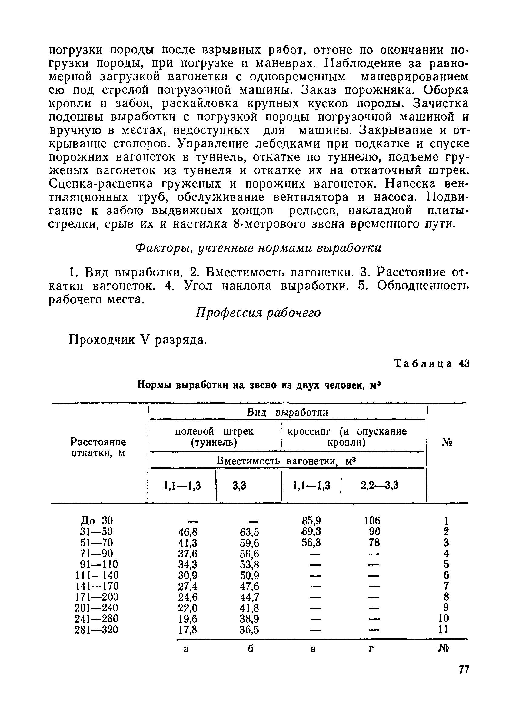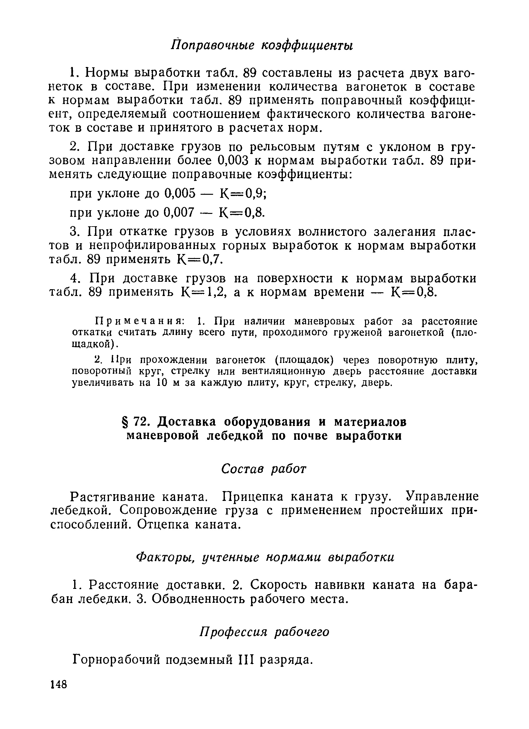 При внедрении нового оборудования, прогрессивной технологии ведения горных работ и более совершенных форм организации труда, не предусмотренных настоящим сборником, нормы должны устанавливаться с учетом технических возможностей оборудования в этих условиях. | | Оглавление: | Общая часть Нормативная часть I Очистные работы Техническая часть Нормативная часть § 1 Выемка горной массы комбайном ГШ-68 и подготовка к выемке следующей полосы § 2 Передвижка гидрофицированной посадочной крепи "Спутник" и забойного скребкового конвейера § 3 Перестановка гидравлических стоек § 4 Осевая передвижка скребкового конвейера-перегружателя на сборном штреке комбайновой лавы § 5 Выемка горной массы комбайнами 1К-101, 2К-101 и подготовка к выемке следующей полосы § 6 Оформление забоя после выемки горной массы комбайнами К-101, 2К-101 § 7 Выемка горной массы из ниш лавы, оборудованной комбайном 1К-101 или 2К-101 § 8 Зарубка сланца врубовой машиной "Урал-33" § 9 Перегон врубовой машины "Урал-33" § 10 Бурение шпуров бурильными установками БУА-3 и БУА-3с § 11 Перегон бурильных установок БУА-3 и БУА-3с § 12 Бурение шпуров ручным электросверлом § 13 Погрузка горной массы погрузочной машиной 1ПНБ-2 § 14 Навалоотбойка сланца в лавах с выкладкой бутовых полос § 15 Перестановка клиновых металлических стоек в лавах § 16 Крепление очистных забоев металлической анкерной крепью § 17 Проверка состояния и повторная затяжка гаек металлической анкерной крепи § 18 Крепление забоя деревянной крепью § 19 Возведение деревянной органной крепи § 20 Извлечение деревянной крепи из отработанных заходок камер-лав лебедкой § 21 Крепление сопряжений лав с примыкающими выработками § 22 Передвижка забойного скребкового конвейера на новую дорожку без разборки конвейерного става § 23 Передвижка забойного скребкового конвейера в новую нарезку с частичной разборкой на секции § 24 Переноска забойного скребкового конвейера из отработанного блока камеры лавы в новую разрезку § 25 Переноска забойного скребкового конвейера СП-63 с полной разборкой в лавах без машинной зарубки § 26 Разработка почвы под приводную головку забойного конвейера § 27 Уборка упавшей с кровли породы (вывалов) вручную II. Горно-подготовительные работы § 28 Проведение подготовительных горных выработок комбайнами ПК-3М, ПК-3Р § 29 Бурение шпуров ручными электросверлами в сланце и породе при буровзрывном способе прохождения выработок § 30 Погрузка горной массы погрузочной машиной 1ПНБ-2 § 31 Погрузка породы погрузочной машиной 1ПНБ-2 при проведении полевых водоотливных штреков (туннелей), кроссингов и при опускании кровли § 32 Ручная погрузка, перекидка и откатка горной массы и породы § 33 Проведение, углубка и очистка водоотливных канавок врубовой машиной "Урал-33" § 34 Уборка породы экскаватором "Беларусь" при проведении водосборников § 35 Уборка породы вручную при проведении водосборников § 36 Крепление горных выработок металлической анкерной крепью § 37 Проверка состояния и повторная затяжка гаек металлической анкерной крепи § 38 Извлечение временной металлической анкерной крепи в подготовительных горных выработках § 39 Крепление горных выработок в период эксплуатации металлическими штангами с заполнением шпура бетонной смесью § 40 Крепление горных выработок металлической трапециевидной крепью вразбежку § 41 Крепление горных выработок деревян