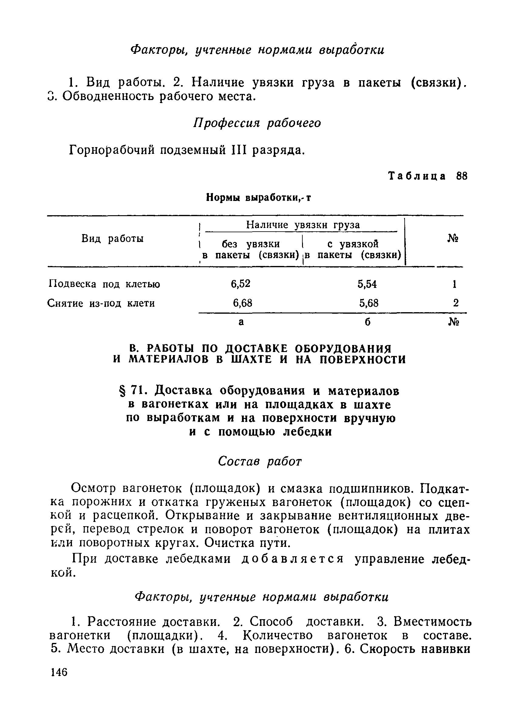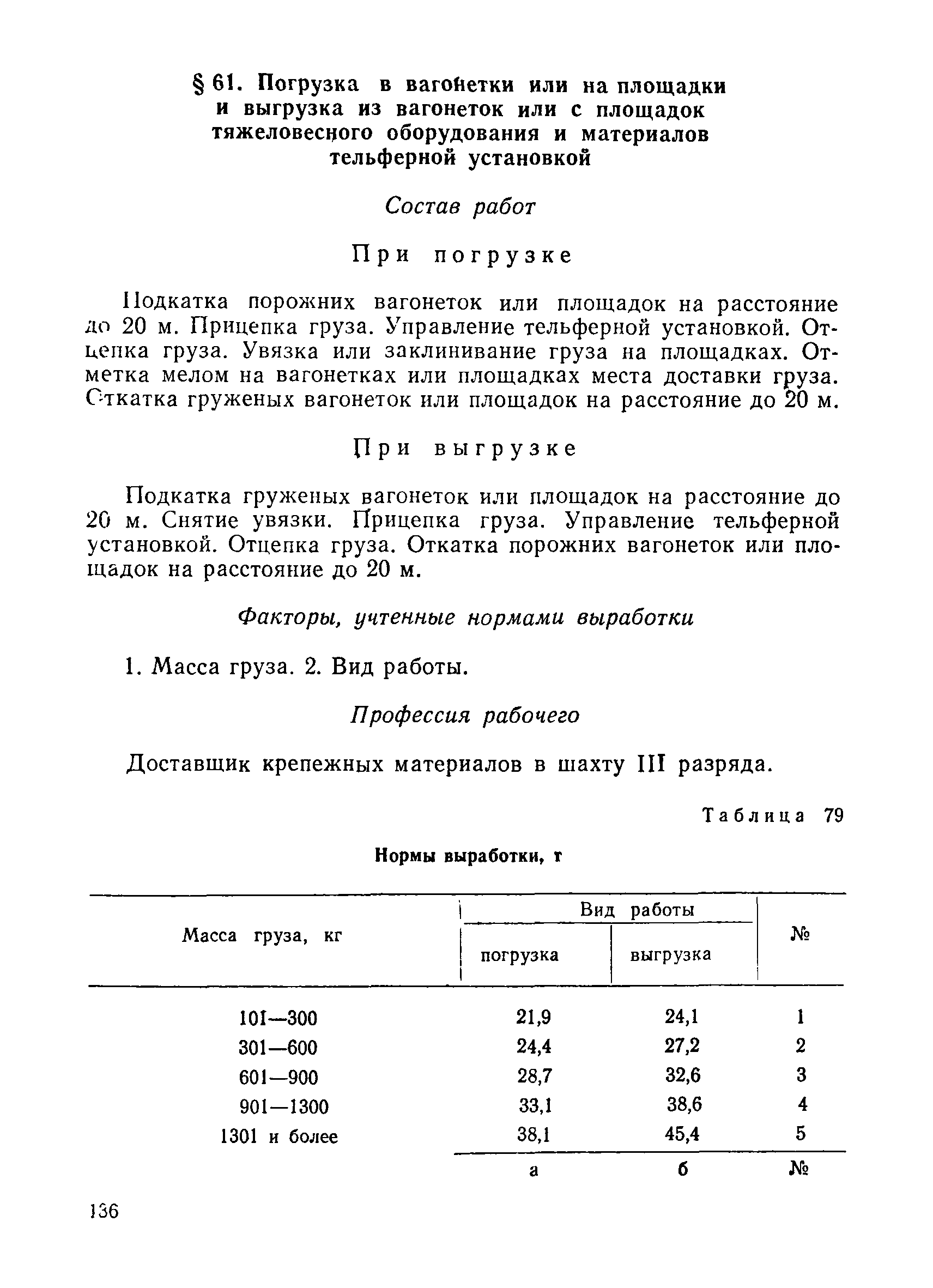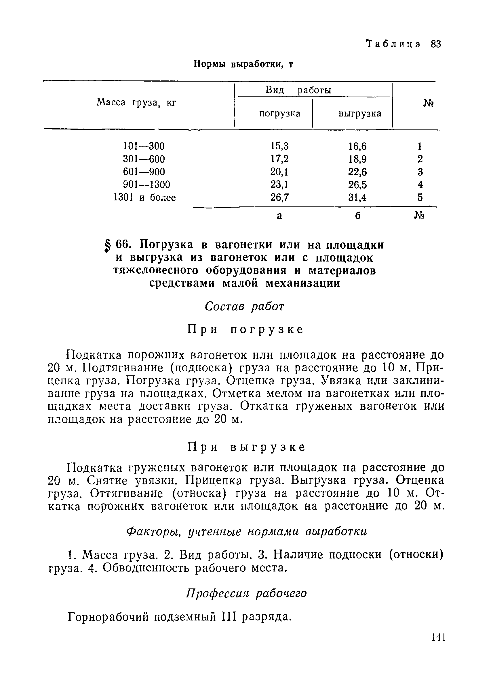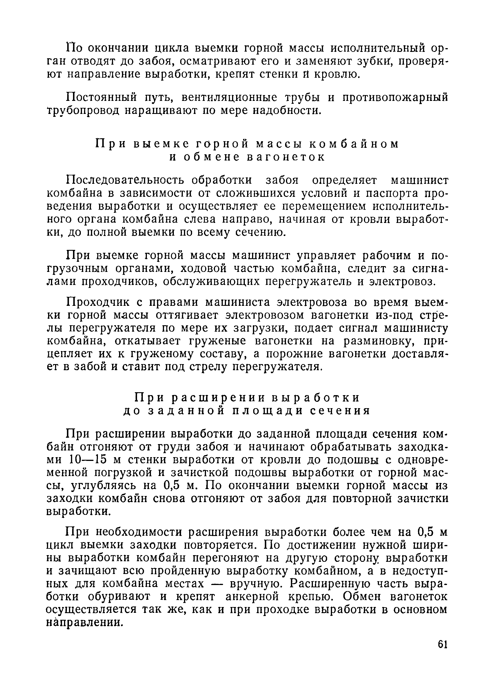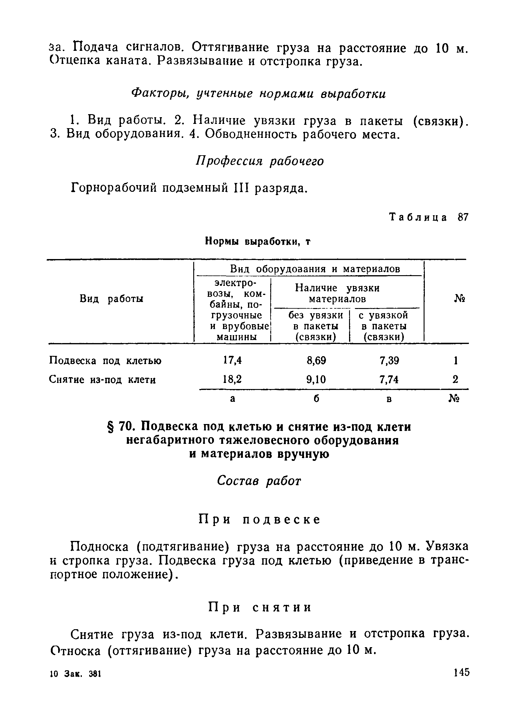 При внедрении нового оборудования, прогрессивной технологии ведения горных работ и более совершенных форм организации труда, не предусмотренных настоящим сборником, нормы должны устанавливаться с учетом технических возможностей оборудования в этих условиях. | | Оглавление: | Общая часть Нормативная часть I Очистные работы Техническая часть Нормативная часть § 1 Выемка горной массы комбайном ГШ-68 и подготовка к выемке следующей полосы § 2 Передвижка гидрофицированной посадочной крепи "Спутник" и забойного скребкового конвейера § 3 Перестановка гидравлических стоек § 4 Осевая передвижка скребкового конвейера-перегружателя на сборном штреке комбайновой лавы § 5 Выемка горной массы комбайнами 1К-101, 2К-101 и подготовка к выемке следующей полосы § 6 Оформление забоя после выемки горной массы комбайнами К-101, 2К-101 § 7 Выемка горной массы из ниш лавы, оборудованной комбайном 1К-101 или 2К-101 § 8 Зарубка сланца врубовой машиной "Урал-33" § 9 Перегон врубовой машины "Урал-33" § 10 Бурение шпуров бурильными установками БУА-3 и БУА-3с § 11 Перегон бурильных установок БУА-3 и БУА-3с § 12 Бурение шпуров ручным электросверлом § 13 Погрузка горной массы погрузочной машиной 1ПНБ-2 § 14 Навалоотбойка сланца в лавах с выкладкой бутовых полос § 15 Перестановка клиновых металлических стоек в лавах § 16 Крепление очистных забоев металлической анкерной крепью § 17 Проверка состояния и повторная затяжка гаек металлической анкерной крепи § 18 Крепление забоя деревянной крепью § 19 Возведение деревянной органной крепи § 20 Извлечение деревянной крепи из отработанных заходок камер-лав лебедкой § 21 Крепление сопряжений лав с примыкающими выработками § 22 Передвижка забойного скребкового конвейера на новую дорожку без разборки конвейерного става § 23 Передвижка забойного скребкового конвейера в новую нарезку с частичной разборкой на секции § 24 Переноска забойного скребкового конвейера из отработанного блока камеры лавы в новую разрезку § 25 Переноска забойного скребкового конвейера СП-63 с полной разборкой в лавах без машинной зарубки § 26 Разработка почвы под приводную головку забойного конвейера § 27 Уборка упавшей с кровли породы (вывалов) вручную II. Горно-подготовительные работы § 28 Проведение подготовительных горных выработок комбайнами ПК-3М, ПК-3Р § 29 Бурение шпуров ручными электросверлами в сланце и породе при буровзрывном способе прохождения выработок § 30 Погрузка горной массы погрузочной машиной 1ПНБ-2 § 31 Погрузка породы погрузочной машиной 1ПНБ-2 при проведении полевых водоотливных штреков (туннелей), кроссингов и при опускании кровли § 32 Ручная погрузка, перекидка и откатка горной массы и породы § 33 Проведение, углубка и очистка водоотливных канавок врубовой машиной "Урал-33" § 34 Уборка породы экскаватором "Беларусь" при проведении водосборников § 35 Уборка породы вручную при проведении водосборников § 36 Крепление горных выработок металлической анкерной крепью § 37 Проверка состояния и повторная затяжка гаек металлической анкерной крепи § 38 Извлечение временной металлической анкерной крепи в подготовительных горных выработках § 39 Крепление горных выработок в период эксплуатации металлическими штангами с заполнением шпура бетонной смесью § 40 Крепление горных выработок металлической трапециевидной крепью вразбежку § 41 Крепление горных выработок деревян