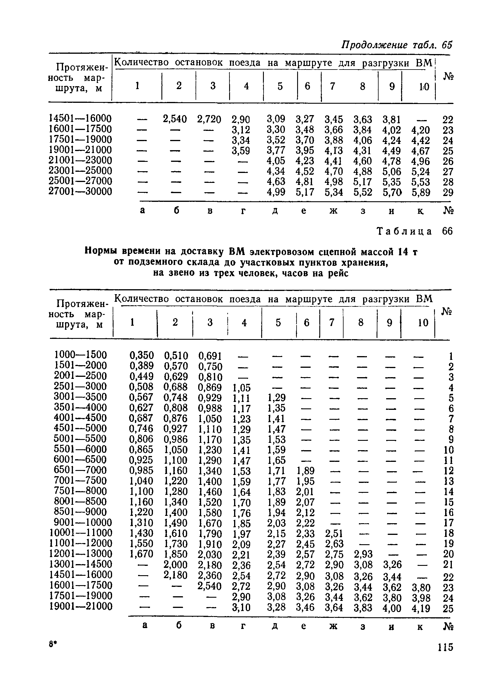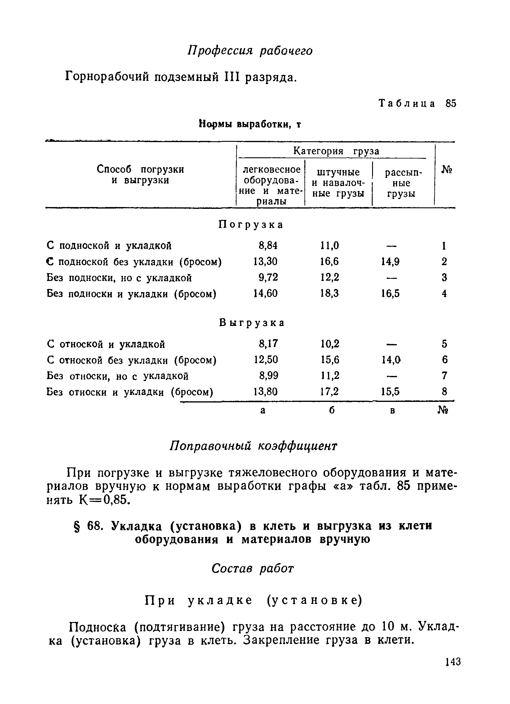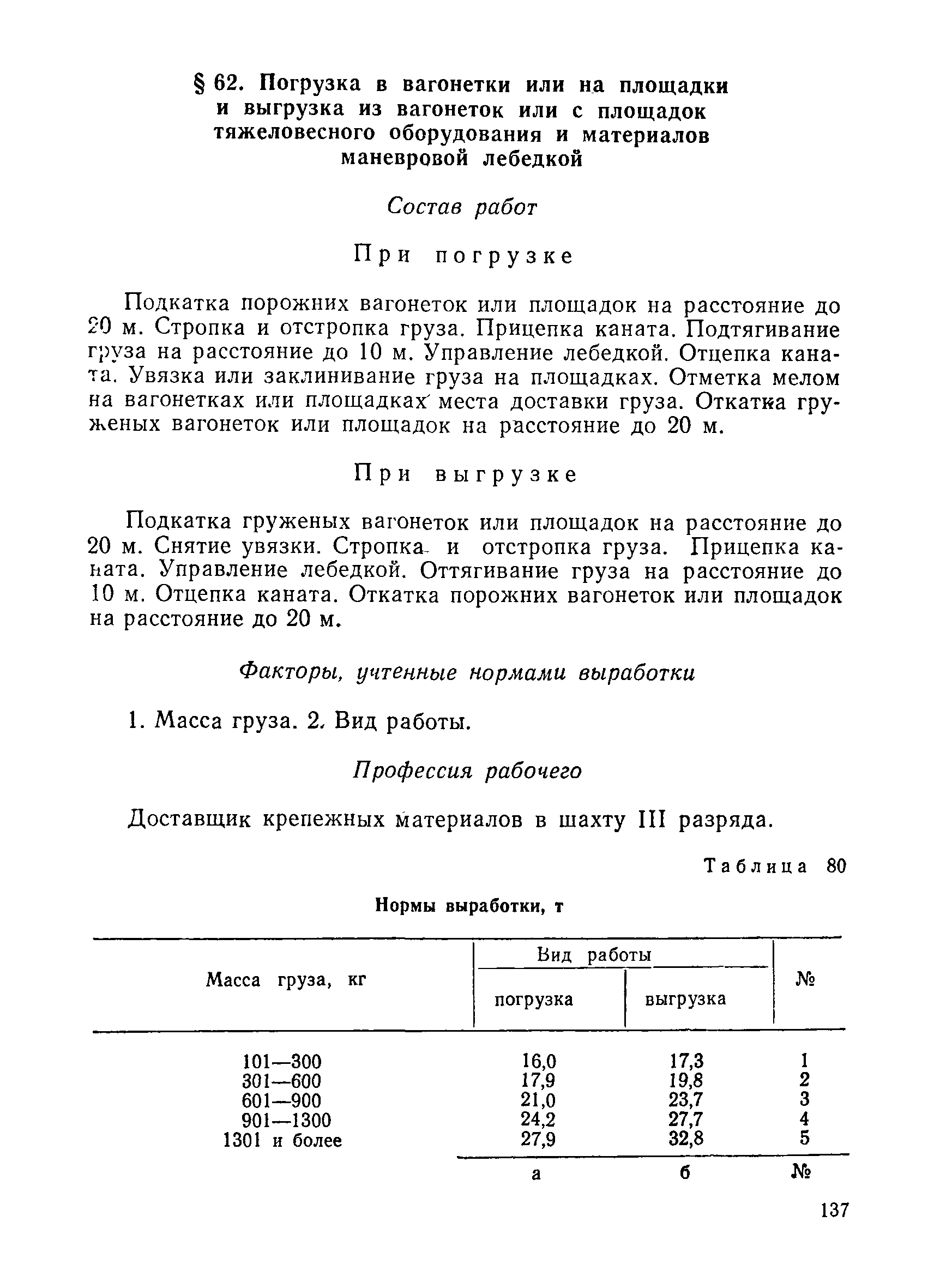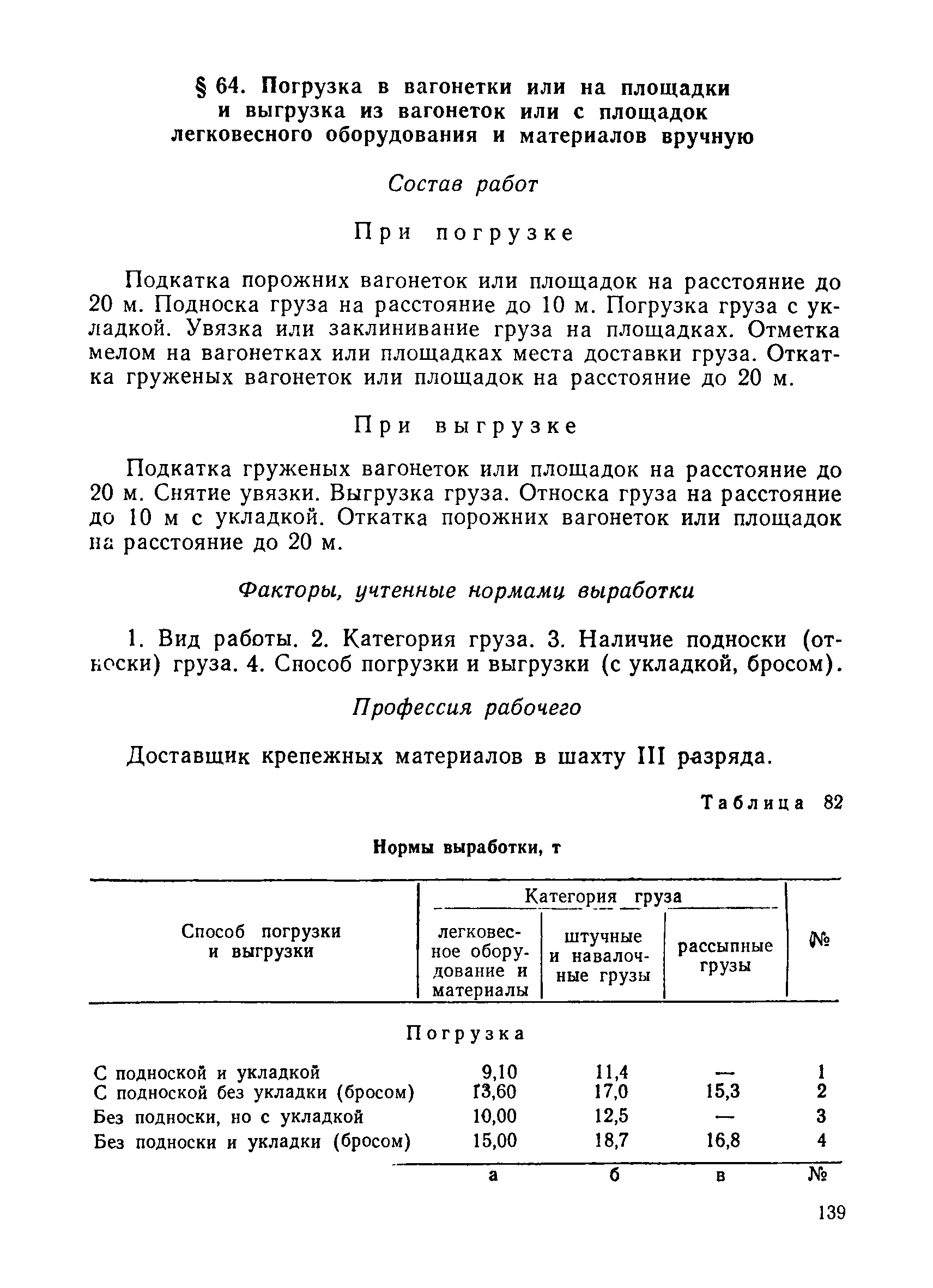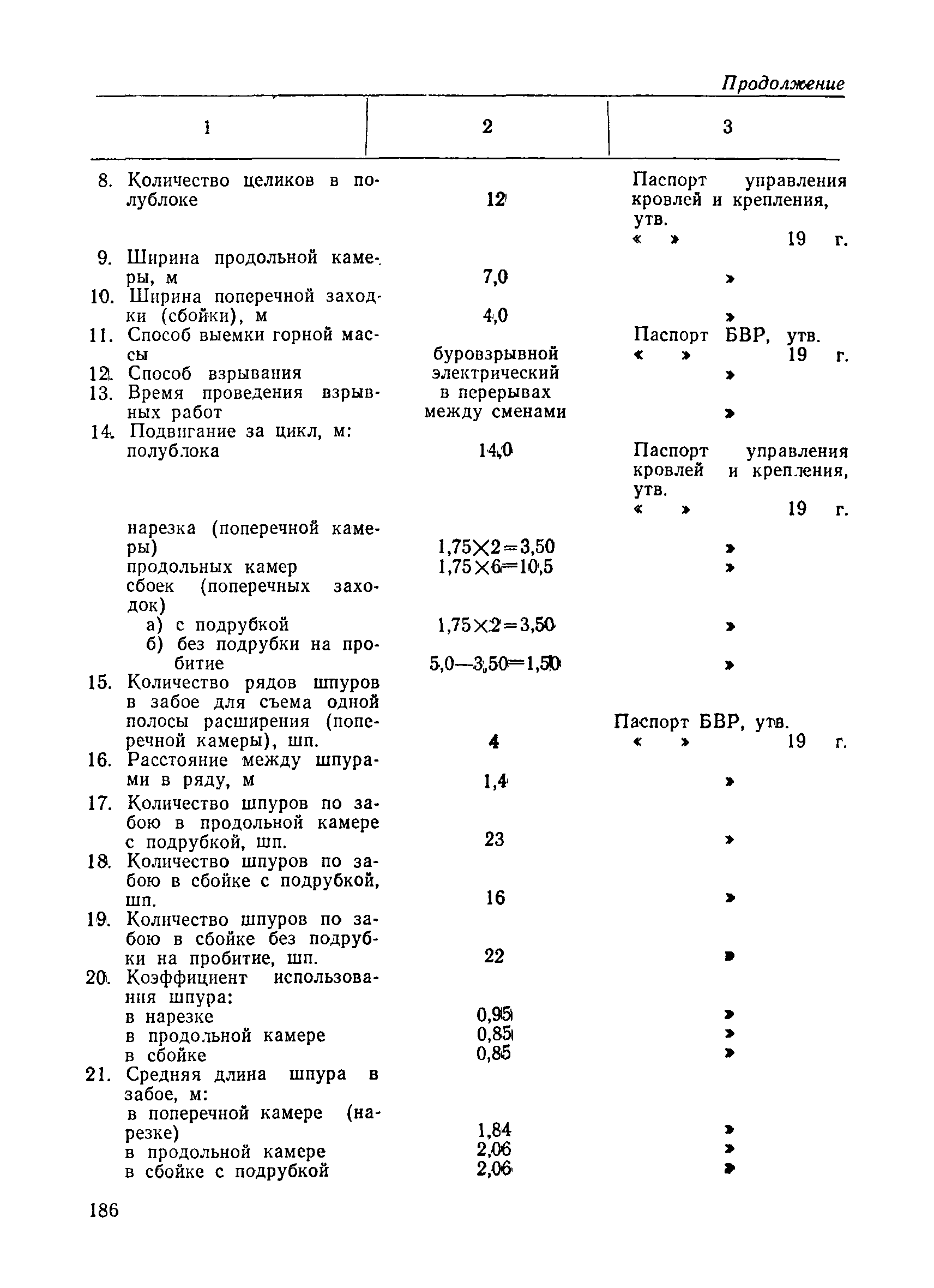 При внедрении нового оборудования, прогрессивной технологии ведения горных работ и более совершенных форм организации труда, не предусмотренных настоящим сборником, нормы должны устанавливаться с учетом технических возможностей оборудования в этих условиях. | | Оглавление: | Общая часть Нормативная часть I Очистные работы Техническая часть Нормативная часть § 1 Выемка горной массы комбайном ГШ-68 и подготовка к выемке следующей полосы § 2 Передвижка гидрофицированной посадочной крепи "Спутник" и забойного скребкового конвейера § 3 Перестановка гидравлических стоек § 4 Осевая передвижка скребкового конвейера-перегружателя на сборном штреке комбайновой лавы § 5 Выемка горной массы комбайнами 1К-101, 2К-101 и подготовка к выемке следующей полосы § 6 Оформление забоя после выемки горной массы комбайнами К-101, 2К-101 § 7 Выемка горной массы из ниш лавы, оборудованной комбайном 1К-101 или 2К-101 § 8 Зарубка сланца врубовой машиной "Урал-33" § 9 Перегон врубовой машины "Урал-33" § 10 Бурение шпуров бурильными установками БУА-3 и БУА-3с § 11 Перегон бурильных установок БУА-3 и БУА-3с § 12 Бурение шпуров ручным электросверлом § 13 Погрузка горной массы погрузочной машиной 1ПНБ-2 § 14 Навалоотбойка сланца в лавах с выкладкой бутовых полос § 15 Перестановка клиновых металлических стоек в лавах § 16 Крепление очистных забоев металлической анкерной крепью § 17 Проверка состояния и повторная затяжка гаек металлической анкерной крепи § 18 Крепление забоя деревянной крепью § 19 Возведение деревянной органной крепи § 20 Извлечение деревянной крепи из отработанных заходок камер-лав лебедкой § 21 Крепление сопряжений лав с примыкающими выработками § 22 Передвижка забойного скребкового конвейера на новую дорожку без разборки конвейерного става § 23 Передвижка забойного скребкового конвейера в новую нарезку с частичной разборкой на секции § 24 Переноска забойного скребкового конвейера из отработанного блока камеры лавы в новую разрезку § 25 Переноска забойного скребкового конвейера СП-63 с полной разборкой в лавах без машинной зарубки § 26 Разработка почвы под приводную головку забойного конвейера § 27 Уборка упавшей с кровли породы (вывалов) вручную II. Горно-подготовительные работы § 28 Проведение подготовительных горных выработок комбайнами ПК-3М, ПК-3Р § 29 Бурение шпуров ручными электросверлами в сланце и породе при буровзрывном способе прохождения выработок § 30 Погрузка горной массы погрузочной машиной 1ПНБ-2 § 31 Погрузка породы погрузочной машиной 1ПНБ-2 при проведении полевых водоотливных штреков (туннелей), кроссингов и при опускании кровли § 32 Ручная погрузка, перекидка и откатка горной массы и породы § 33 Проведение, углубка и очистка водоотливных канавок врубовой машиной "Урал-33" § 34 Уборка породы экскаватором "Беларусь" при проведении водосборников § 35 Уборка породы вручную при проведении водосборников § 36 Крепление горных выработок металлической анкерной крепью § 37 Проверка состояния и повторная затяжка гаек металлической анкерной крепи § 38 Извлечение временной металлической анкерной крепи в подготовительных горных выработках § 39 Крепление горных выработок в период эксплуатации металлическими штангами с заполнением шпура бетонной смесью § 40 Крепление горных выработок металлической трапециевидной крепью вразбежку § 41 Крепление горных выработок деревян