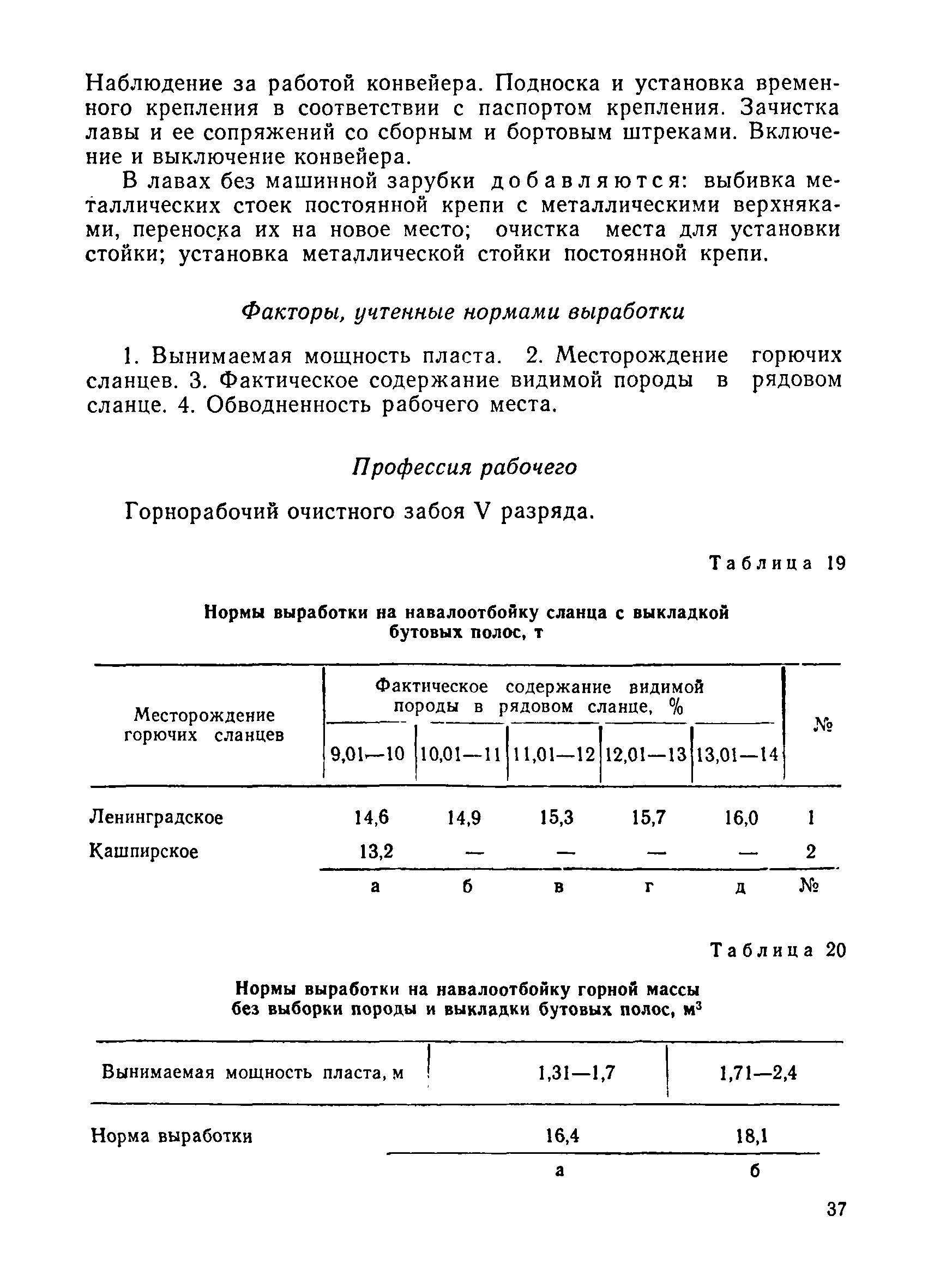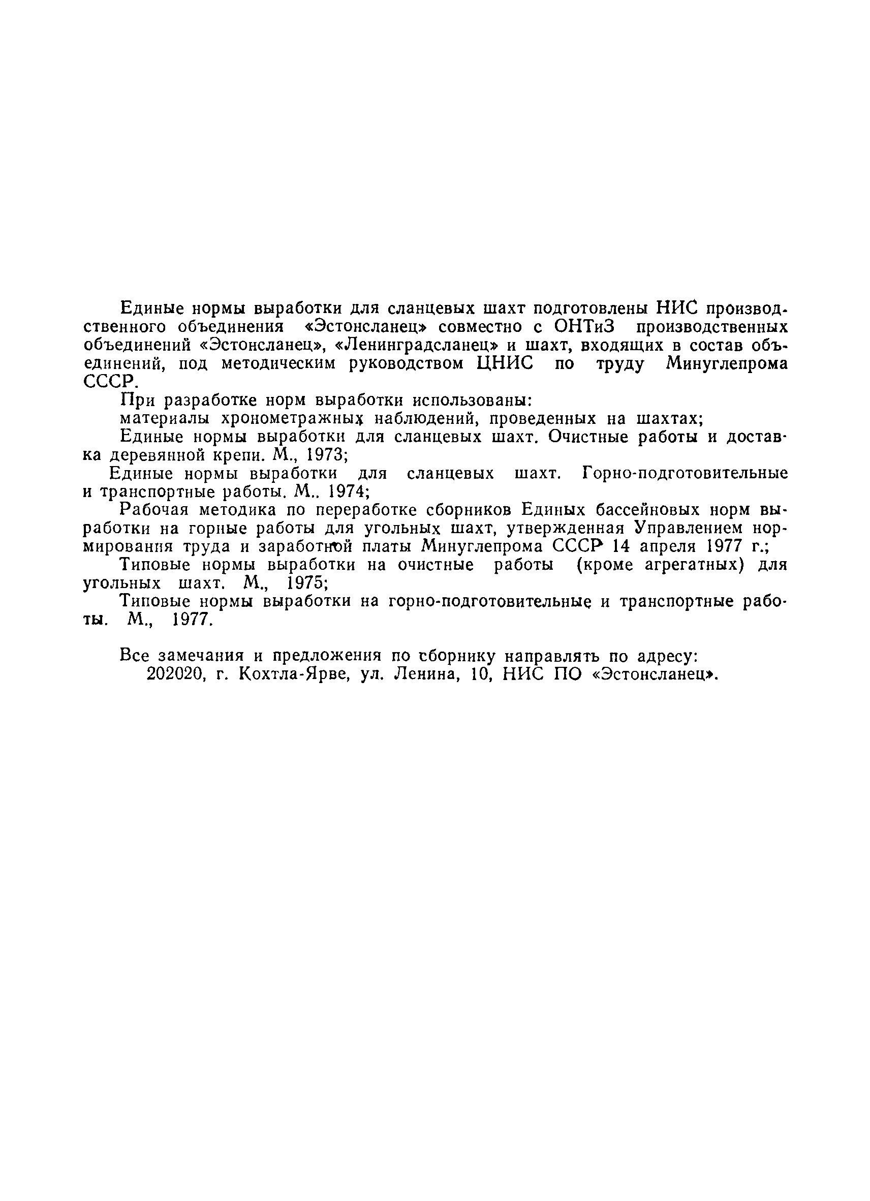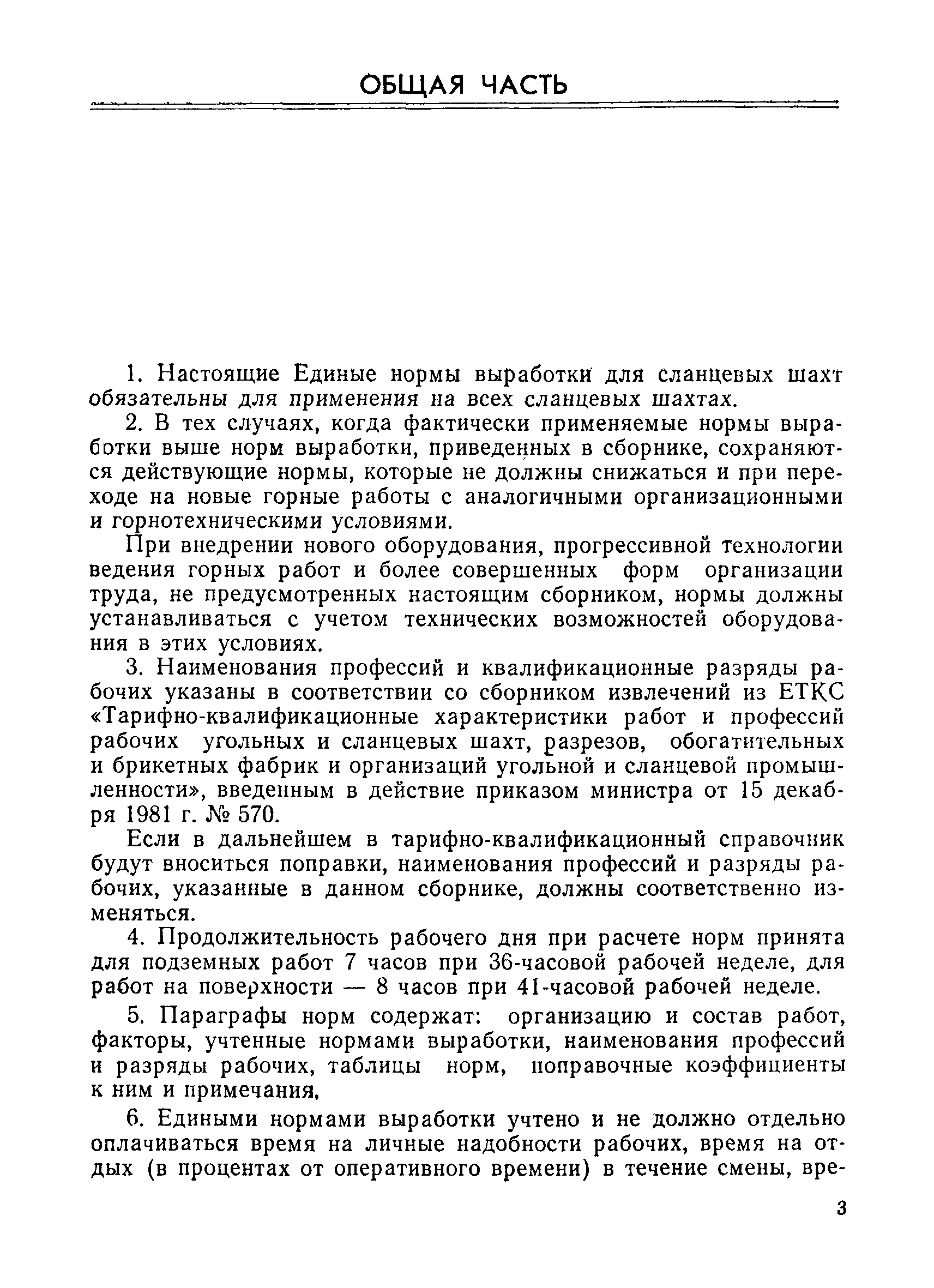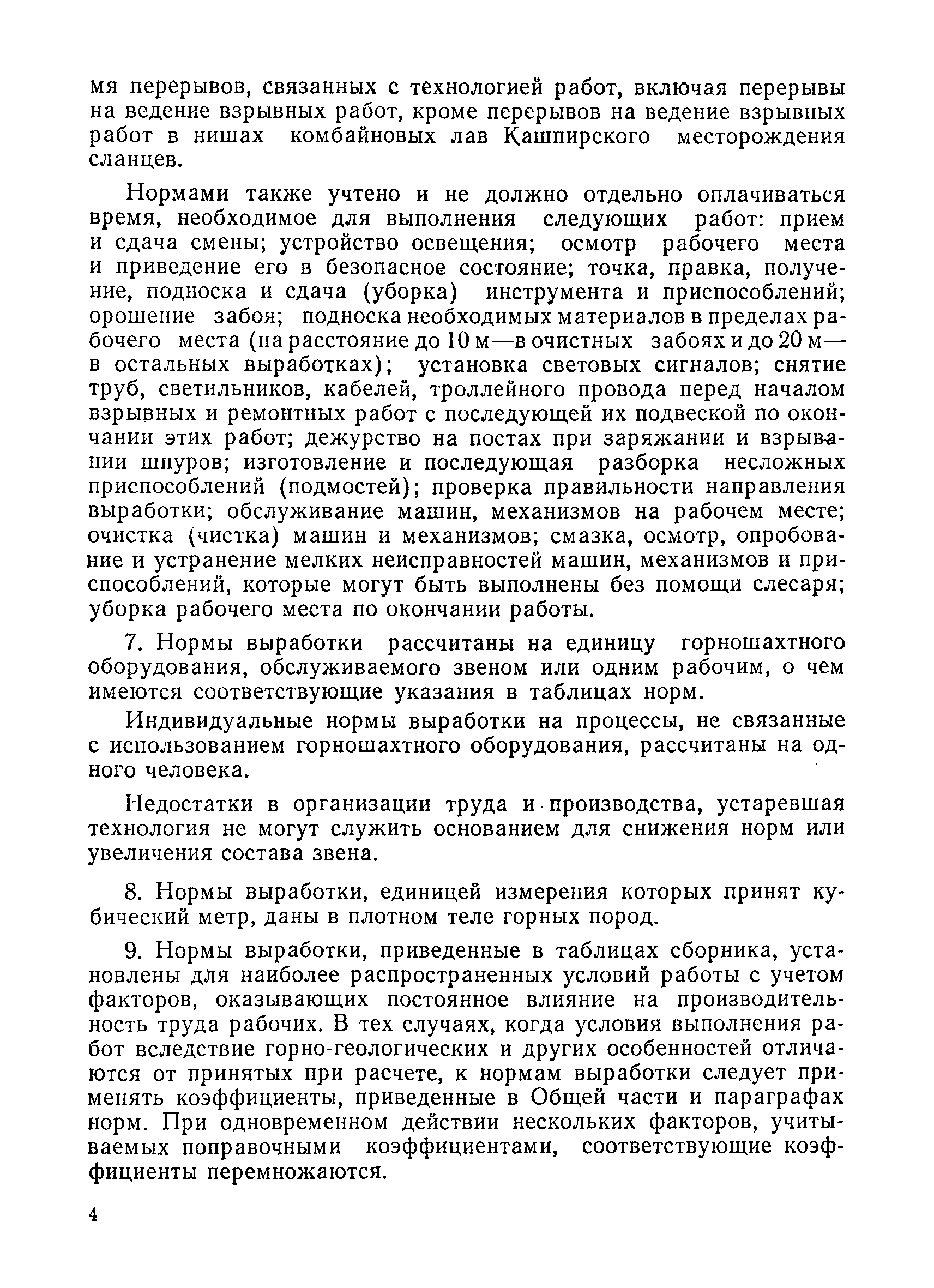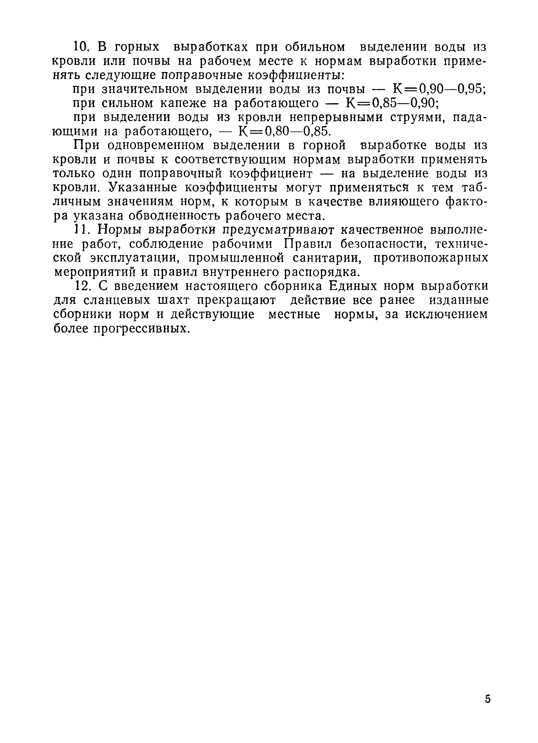 Единые нормы выработки для сланцевых шахт| Статус: | истек срок действия | | Название рус.: | Единые нормы выработки для сланцевых шахт | | Дата добавления в базу: | 01.01.2018 | | Дата актуализации: | 01.01.2021 | | Область применения: | Единые нормы выработки для сланцевых шахт обязательны для применения на всех сланцевых шахтах. В тех случаях, когда фактически применяемые нормы выработки выше норм выработки, приведенных в сборнике, сохраняются действующие нормы, которые не должны снижаться и при переходе на новые горные работы с аналогичными организационными и горнотехническими условиями.