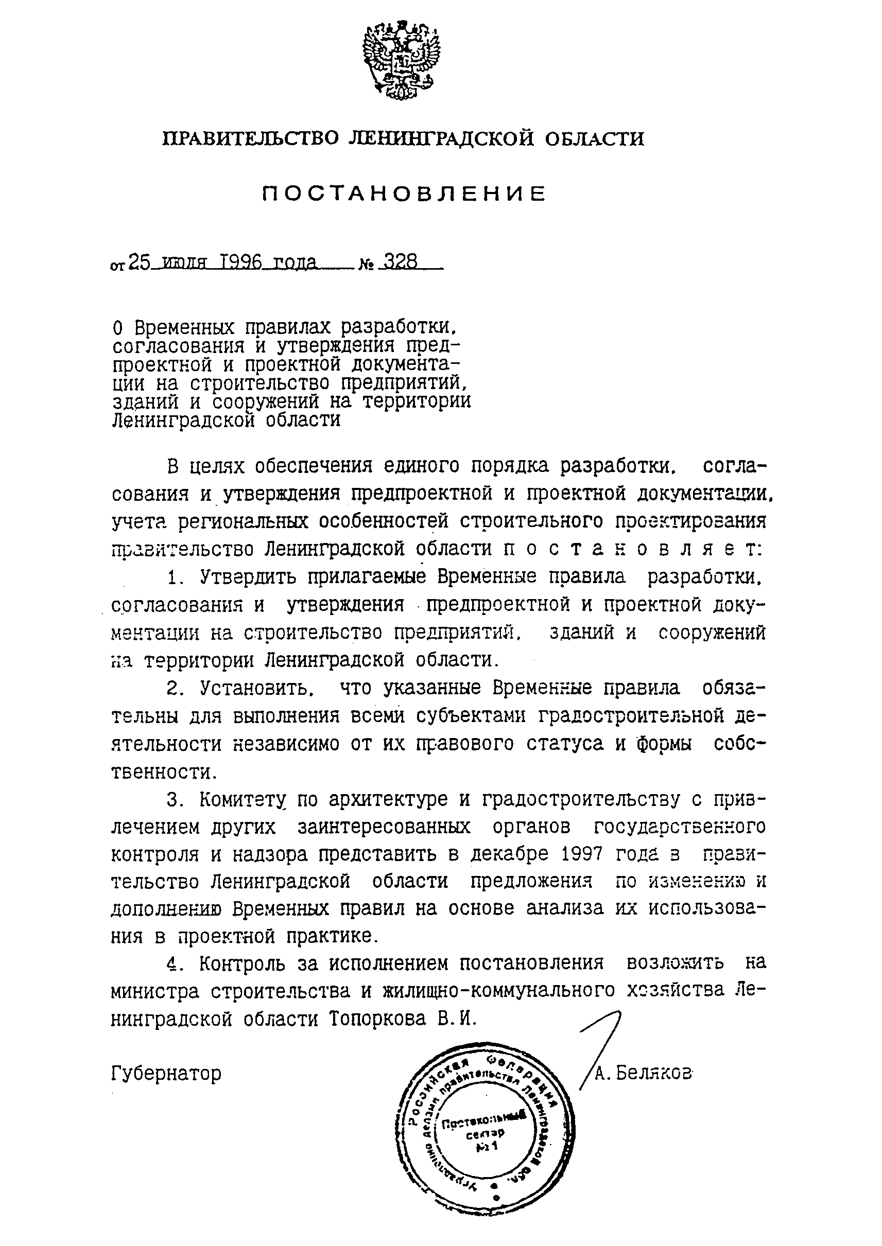| Утверждён: | 25.07.1996 Правительство Ленинградской области (328) |