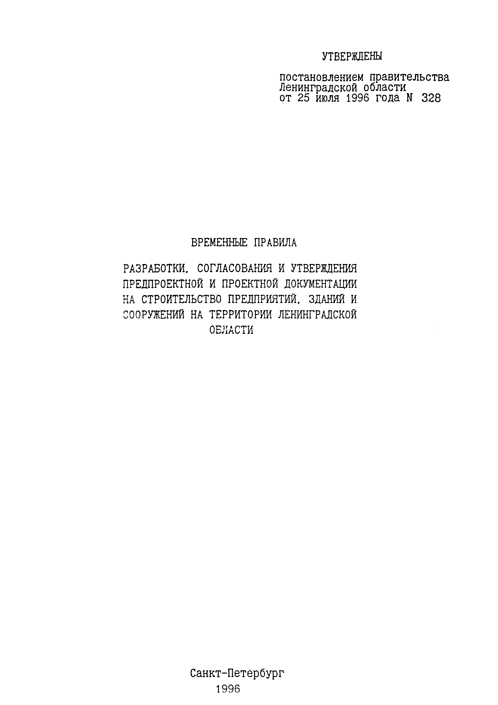 | Название рус.: | Временные правила разработки, согласования и утверждения предпроектной и проектной документации на строительство предприятий, зданий и сооружений на территории Ленинградской области |