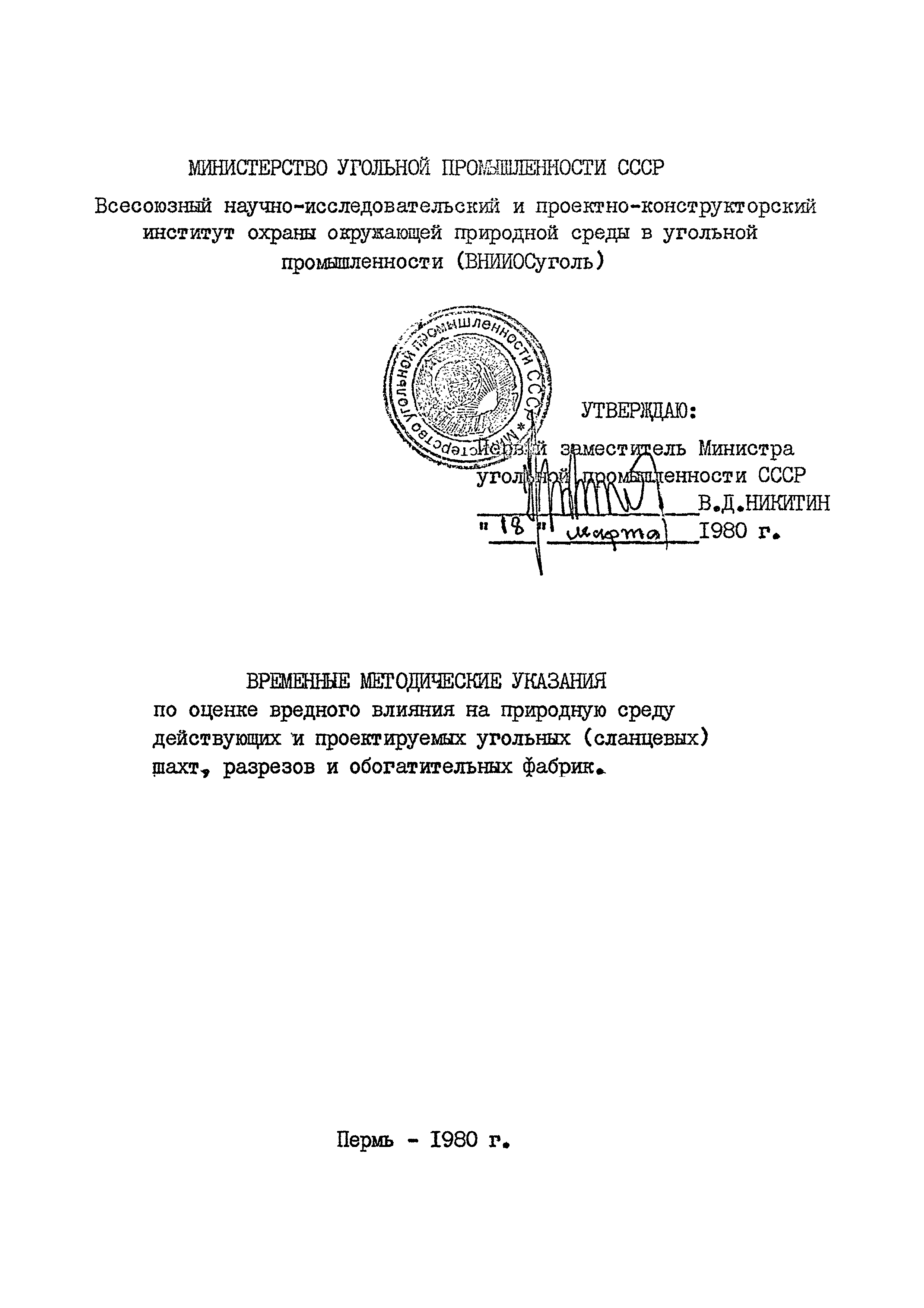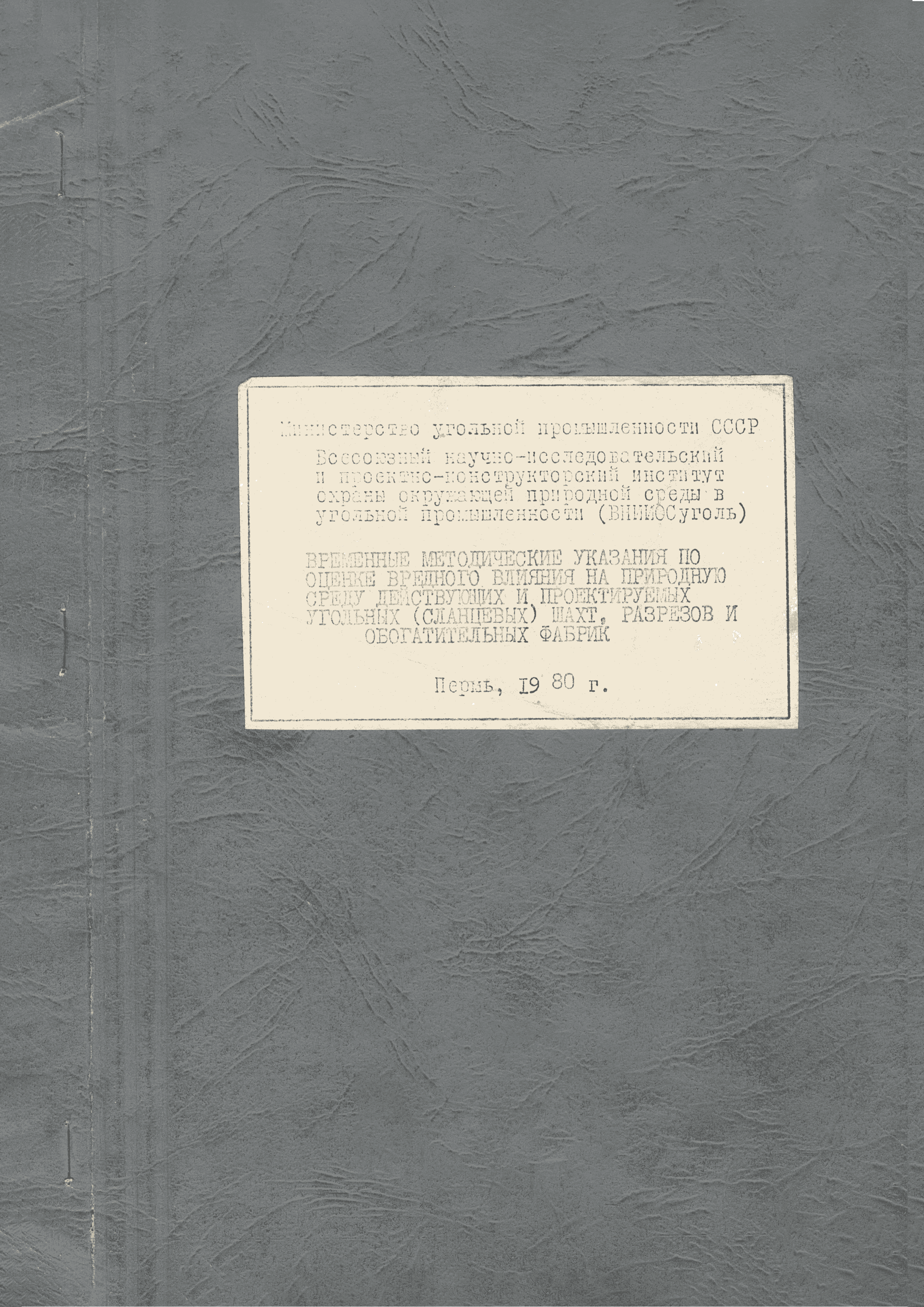 | Название рус.: | Временные методические указания по оценке вредного влияния на природную среду действующих и проектируемых угольных (сланцевых) шахт, разрезов и обогатительных фабрик |