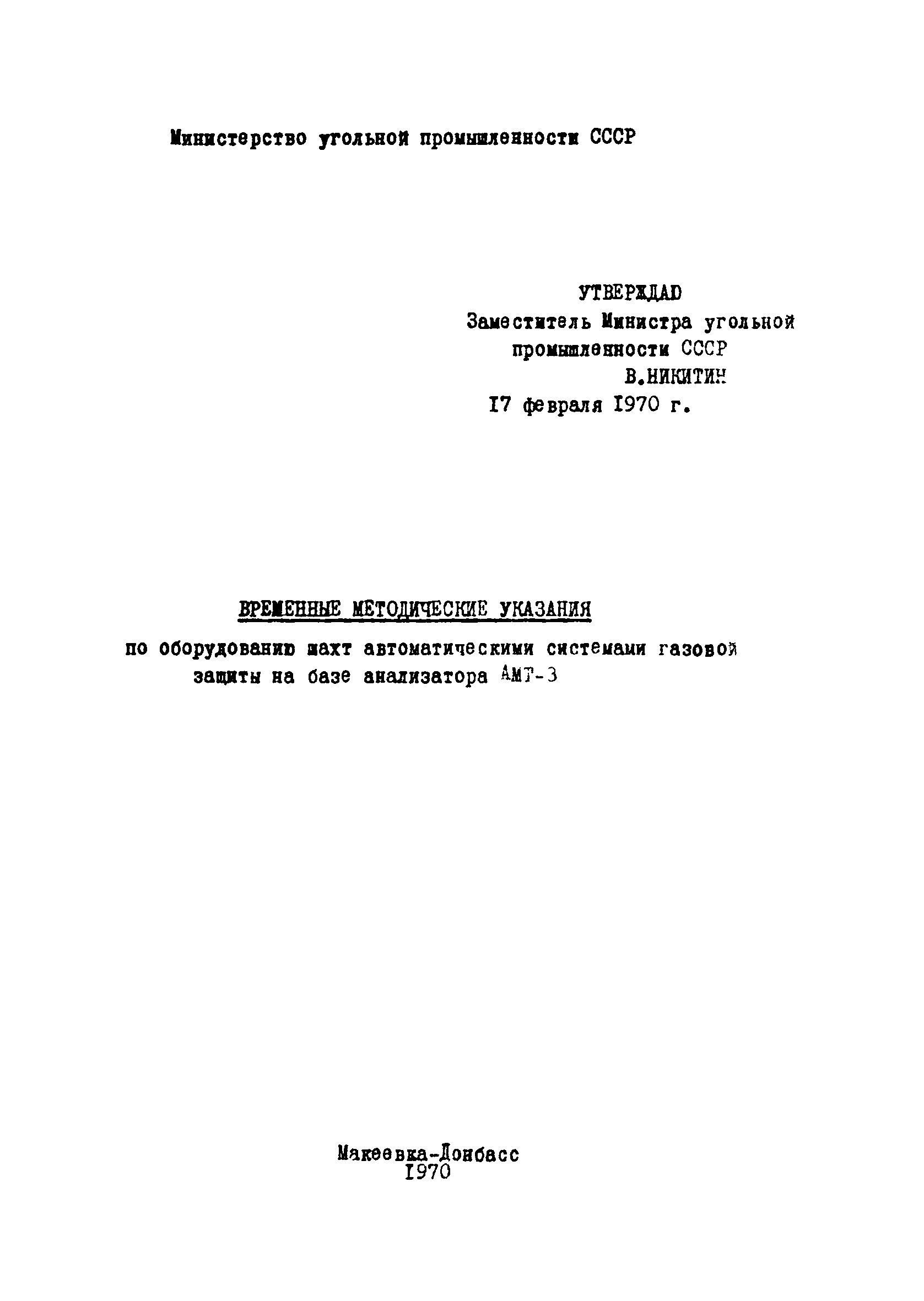 | Утверждён: | 17.02.1970 Министерство угольной промышленности СССР (USSR Ministry of the Coal Industry )