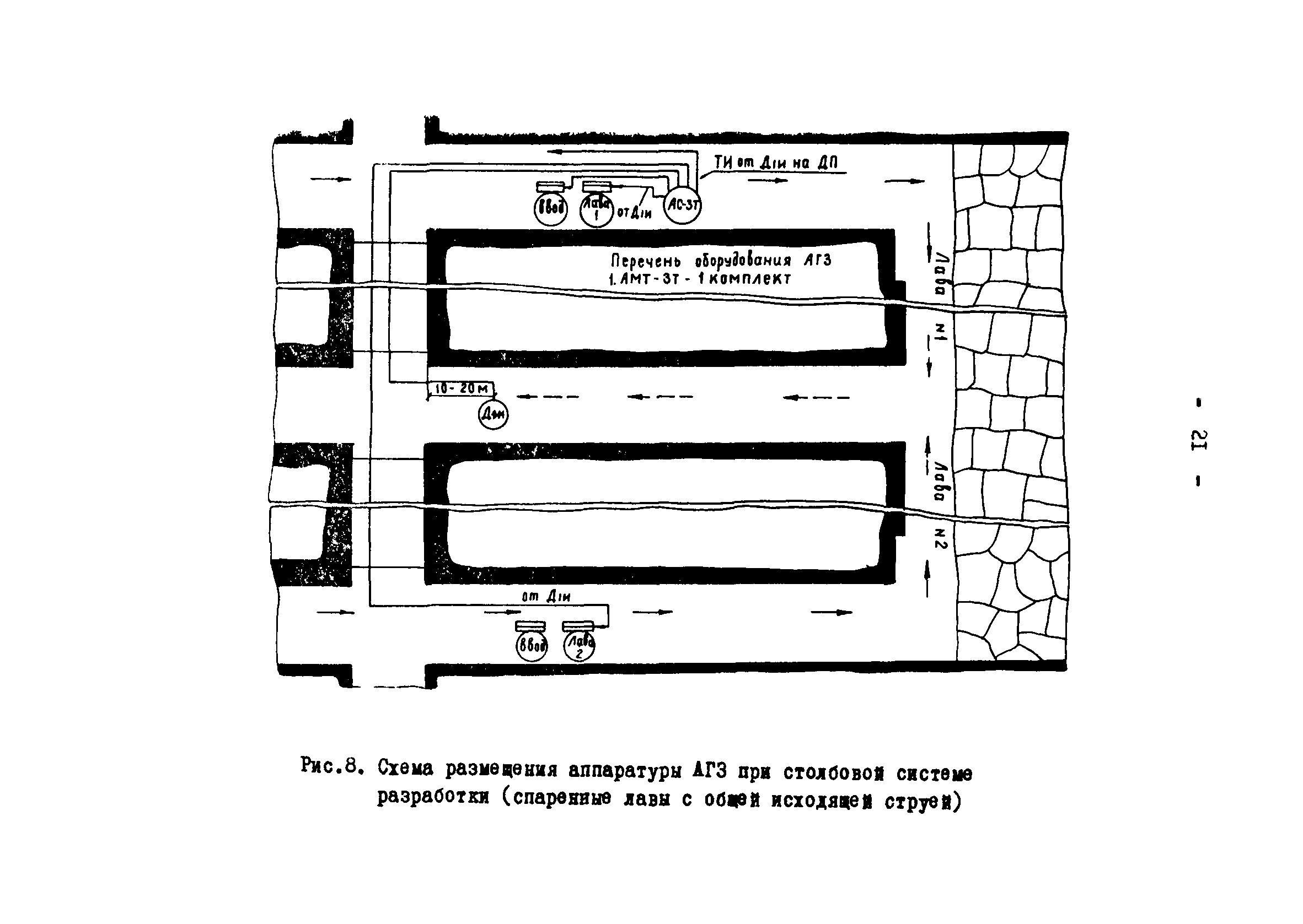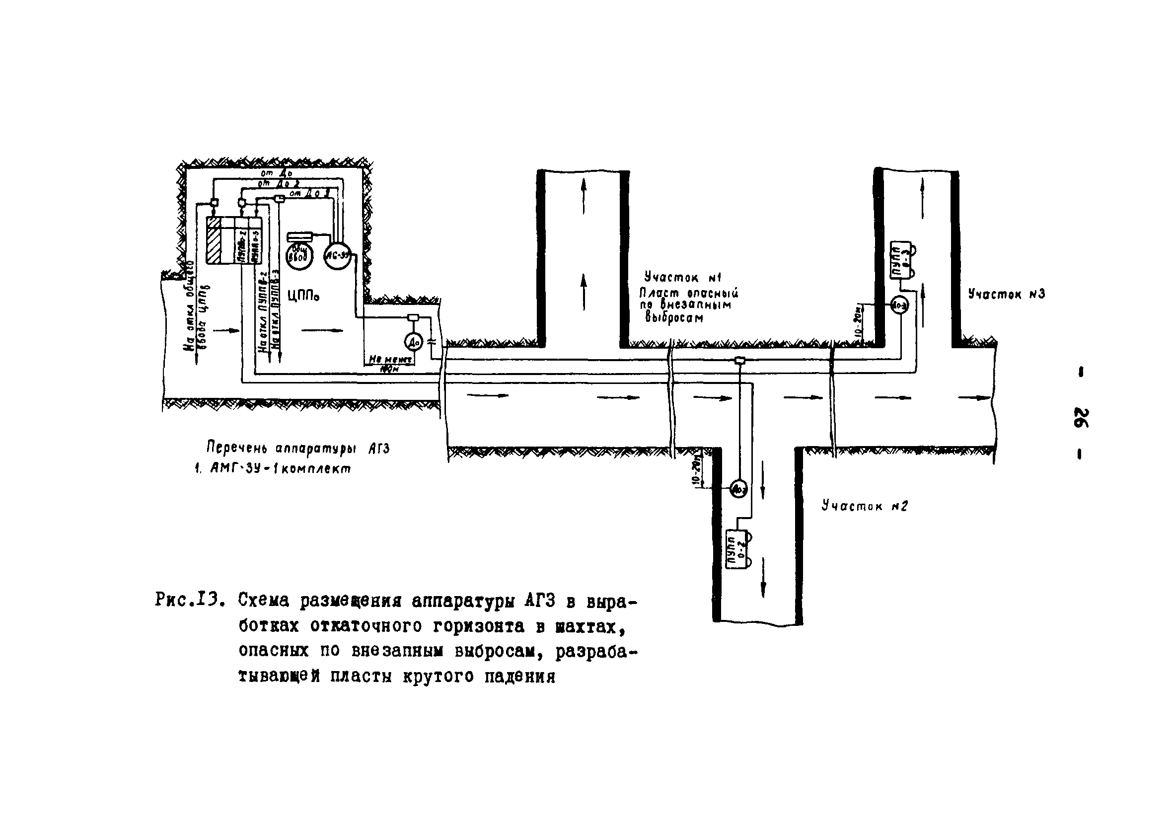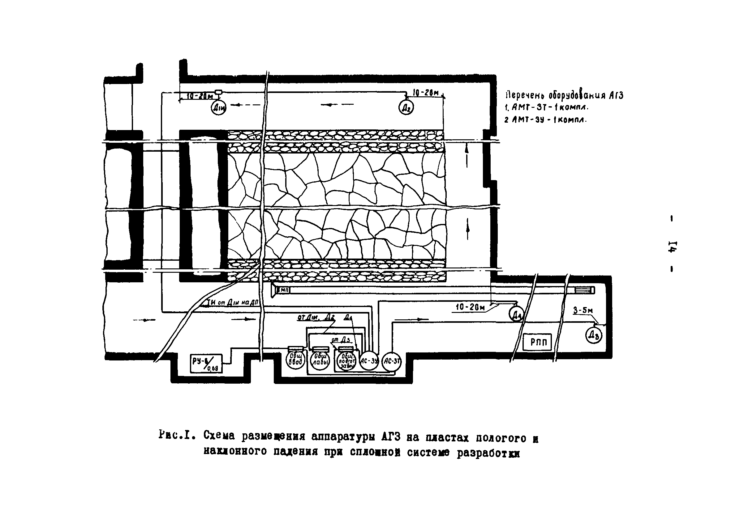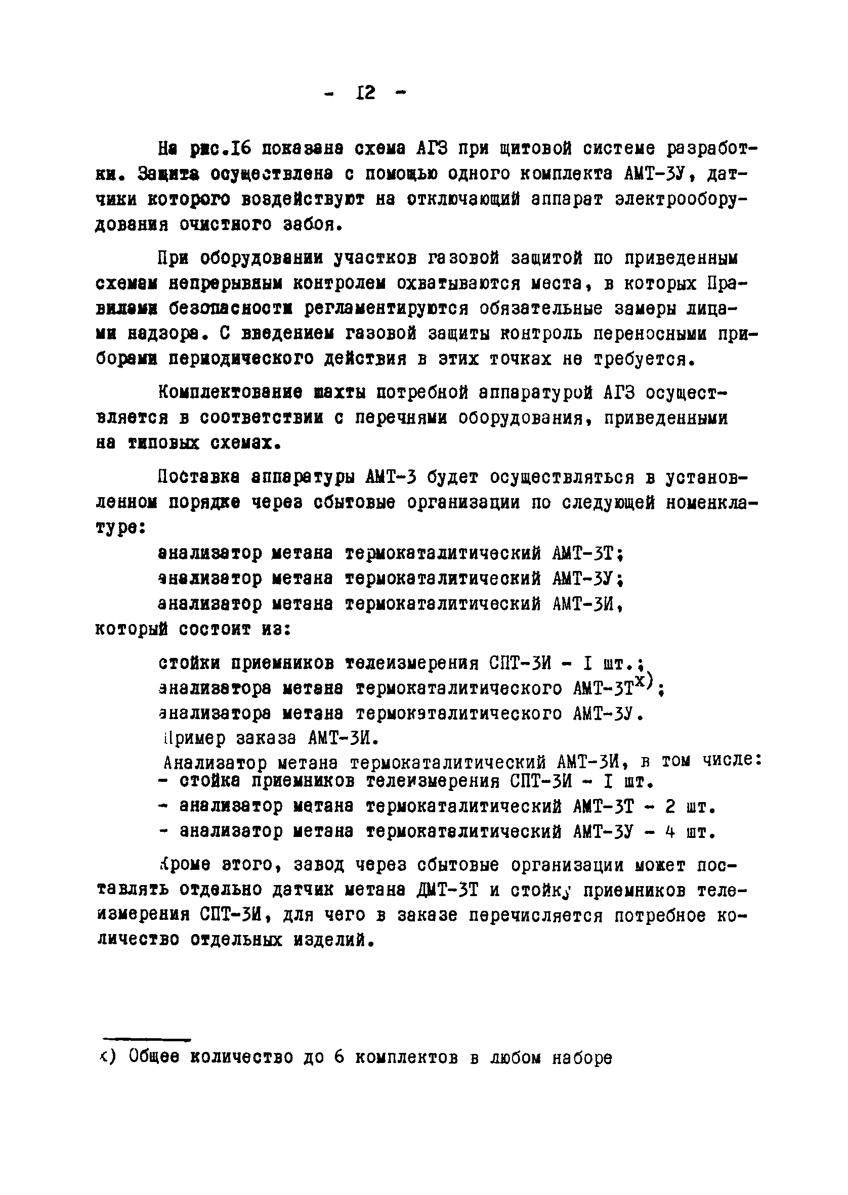 | Оглавление: | Назначение системы автоматической газовой защиты и телеавтоматического централизованного контроля содержания метана в рудничной атмосфере (АГЗ) 1 Аппаратура АМТ-3Т 2 Аппаратура АМТ-3У 3 Комплект аппаратуры АМТ-3И Область применения аппаратуры АГЗ Основные правила размещения и монтажа аппаратуры АГЗ Типовые схемы оборудования АГЗ очистных забоев и подготовительных выработок Условные сокращения и обозначения, использованные во временных методических указаниях Схемы размещения аппаратуры АГЗ |